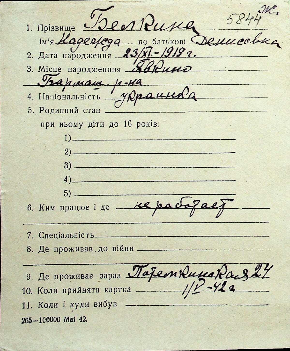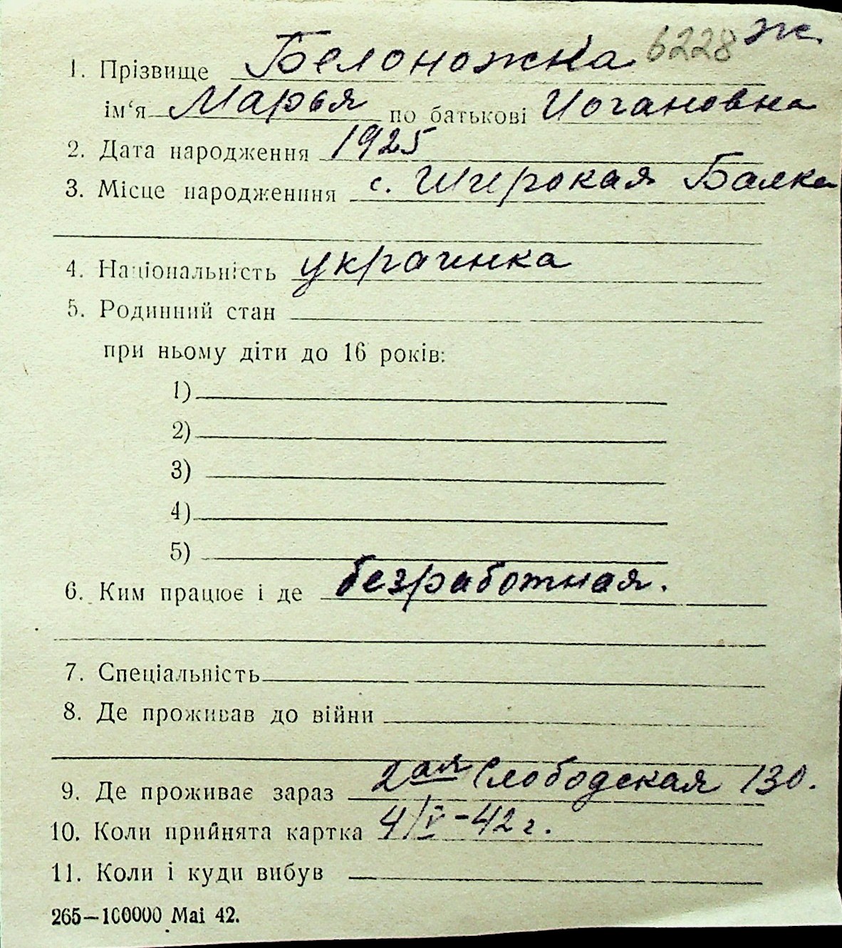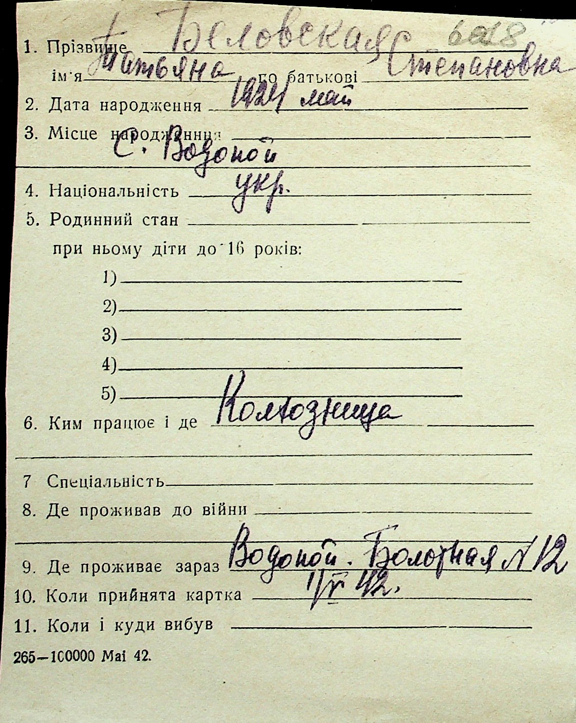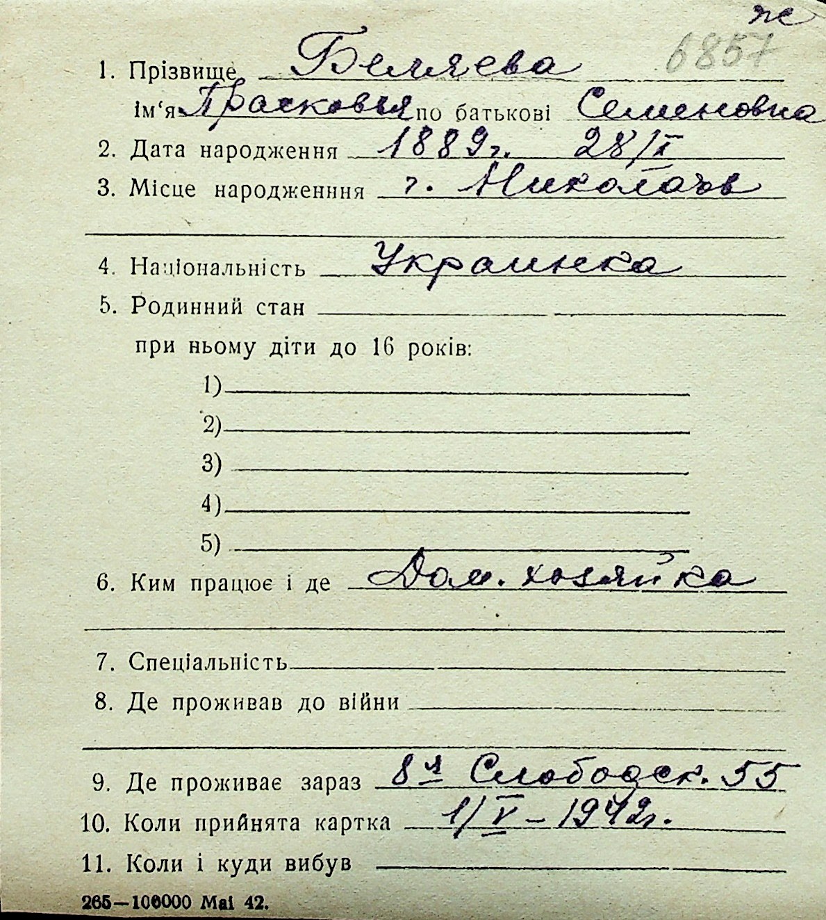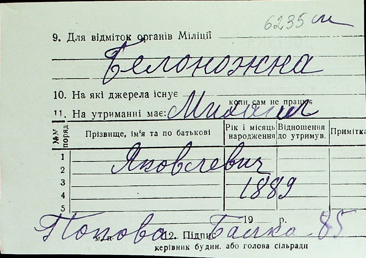 ◦ ◦ Перелік карток на осіб, які мешкали у м. Миколаїв у період окупації 1941–1944 років