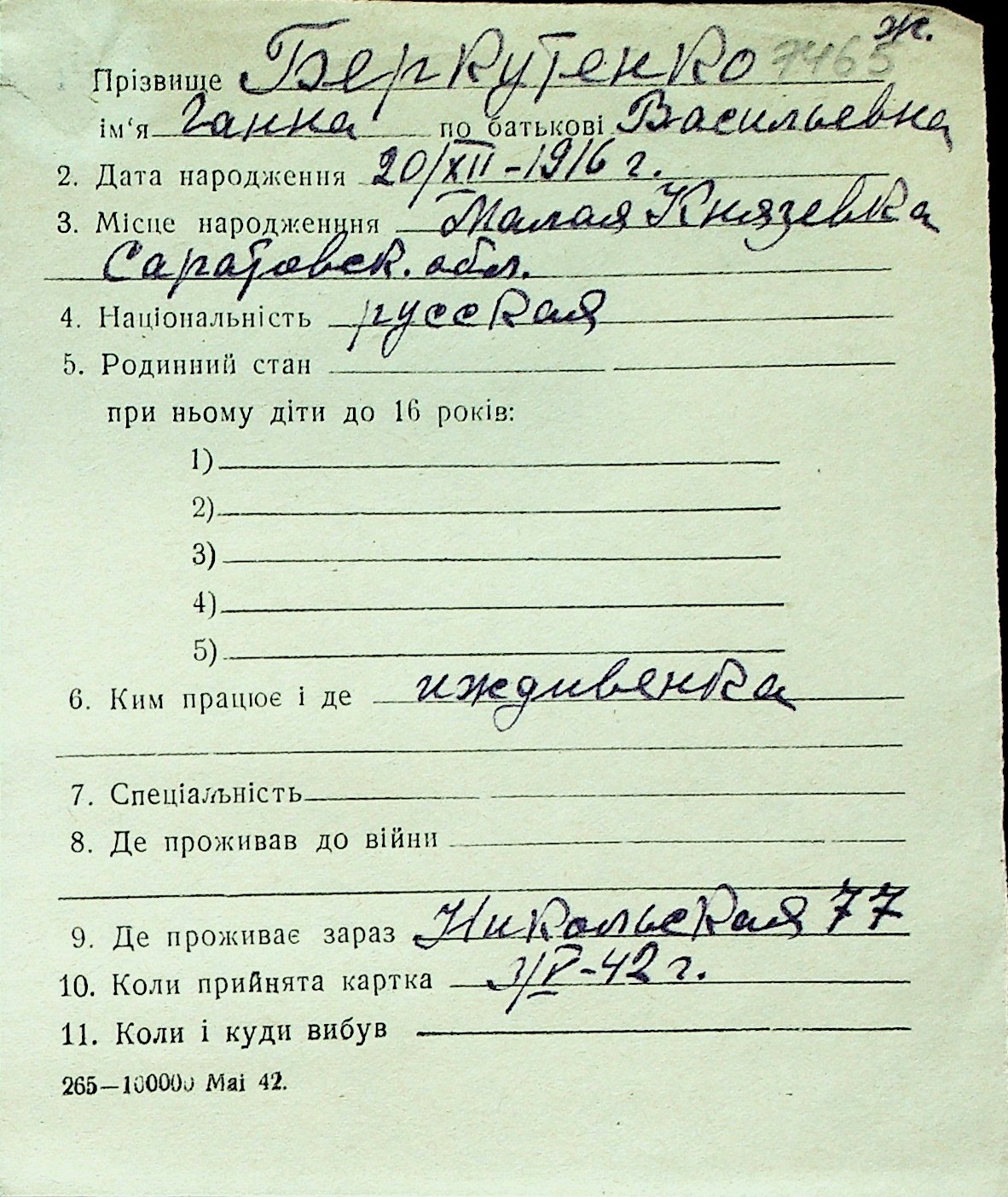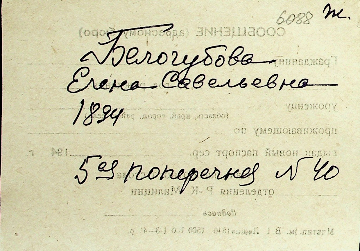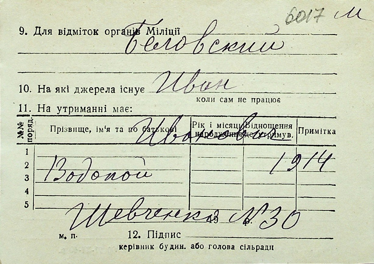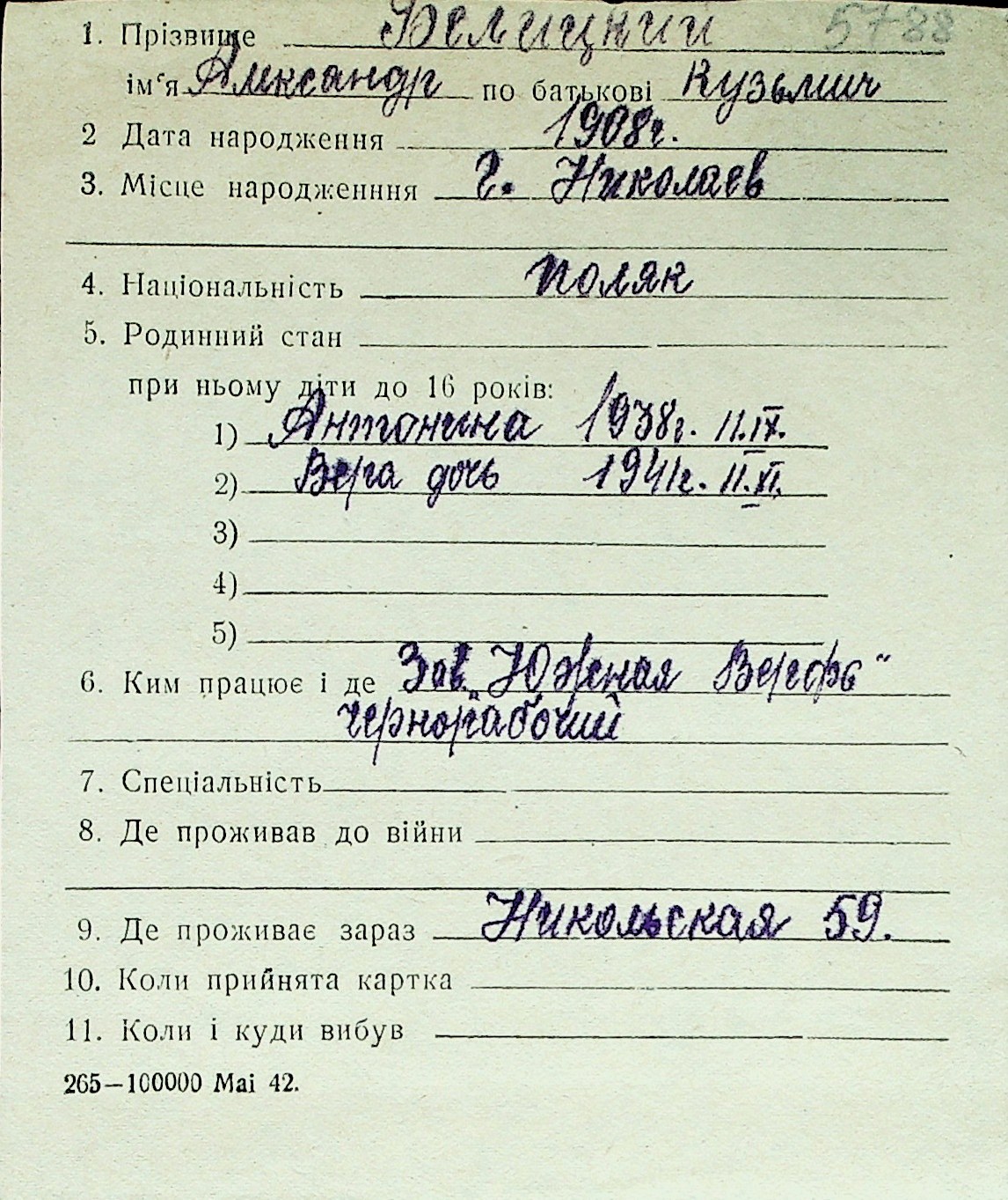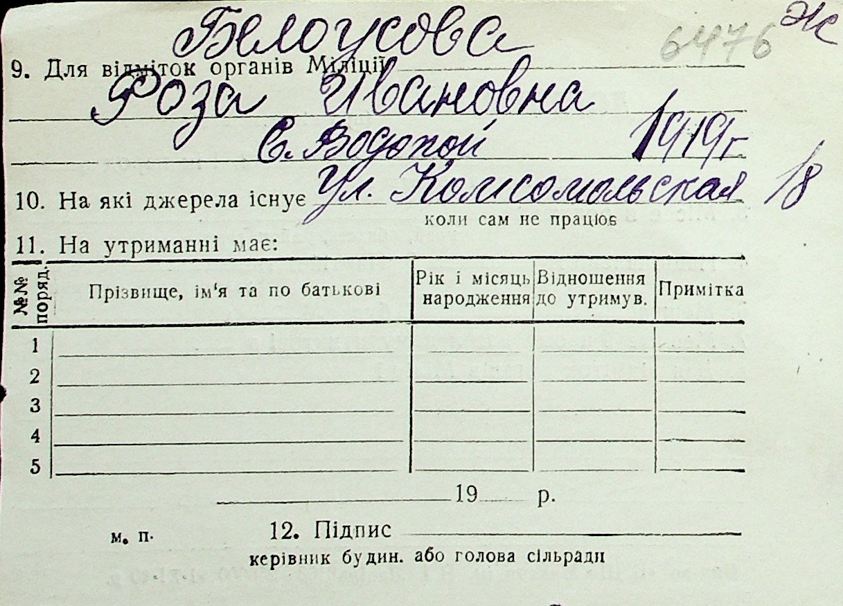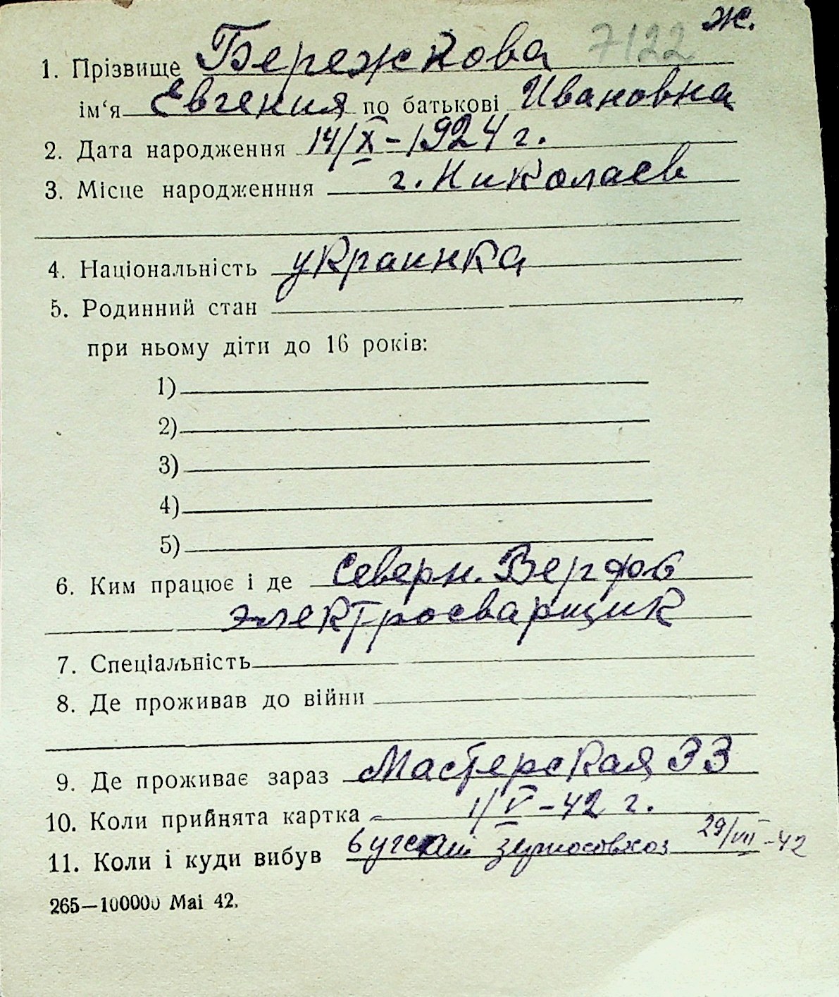 ◦ ◦ Перелік карток на осіб, які мешкали у м. Миколаїв у період окупації 1941–1944 років