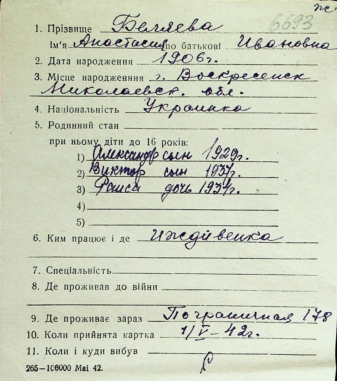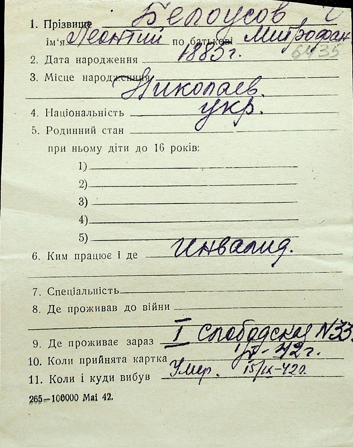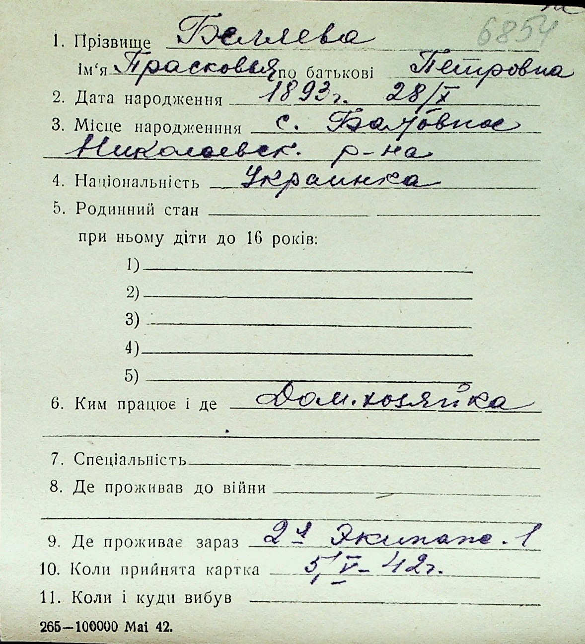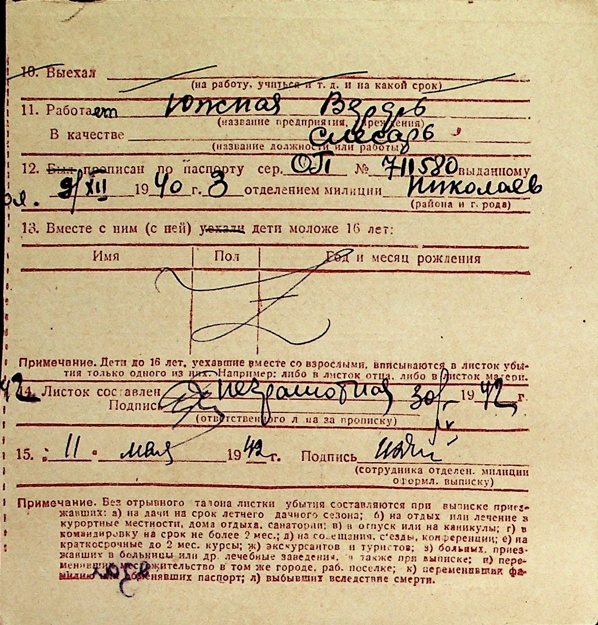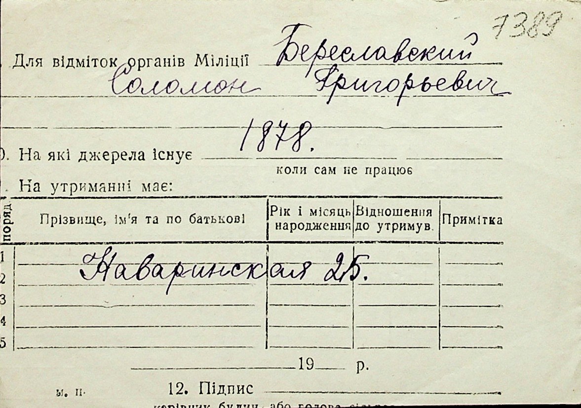 ◦ ◦ Перелік карток на осіб, які мешкали у м. Миколаїв у період окупації 1941–1944 років
