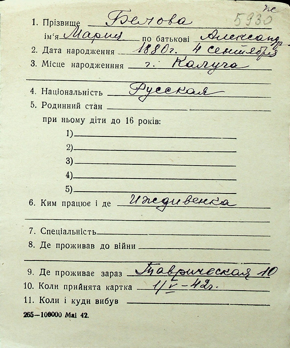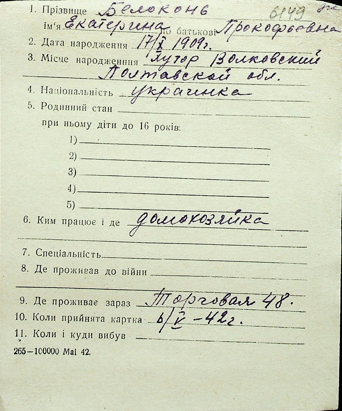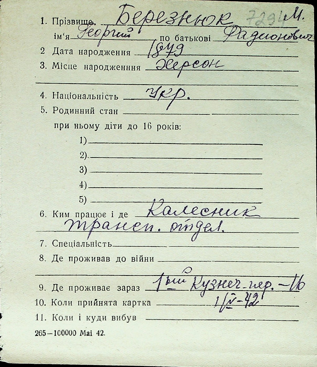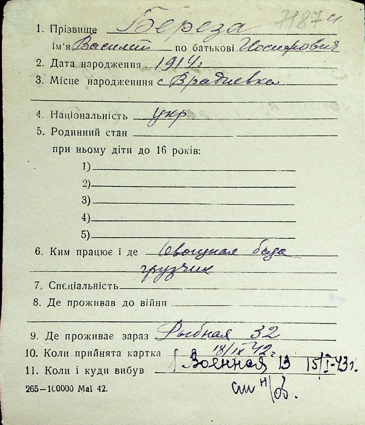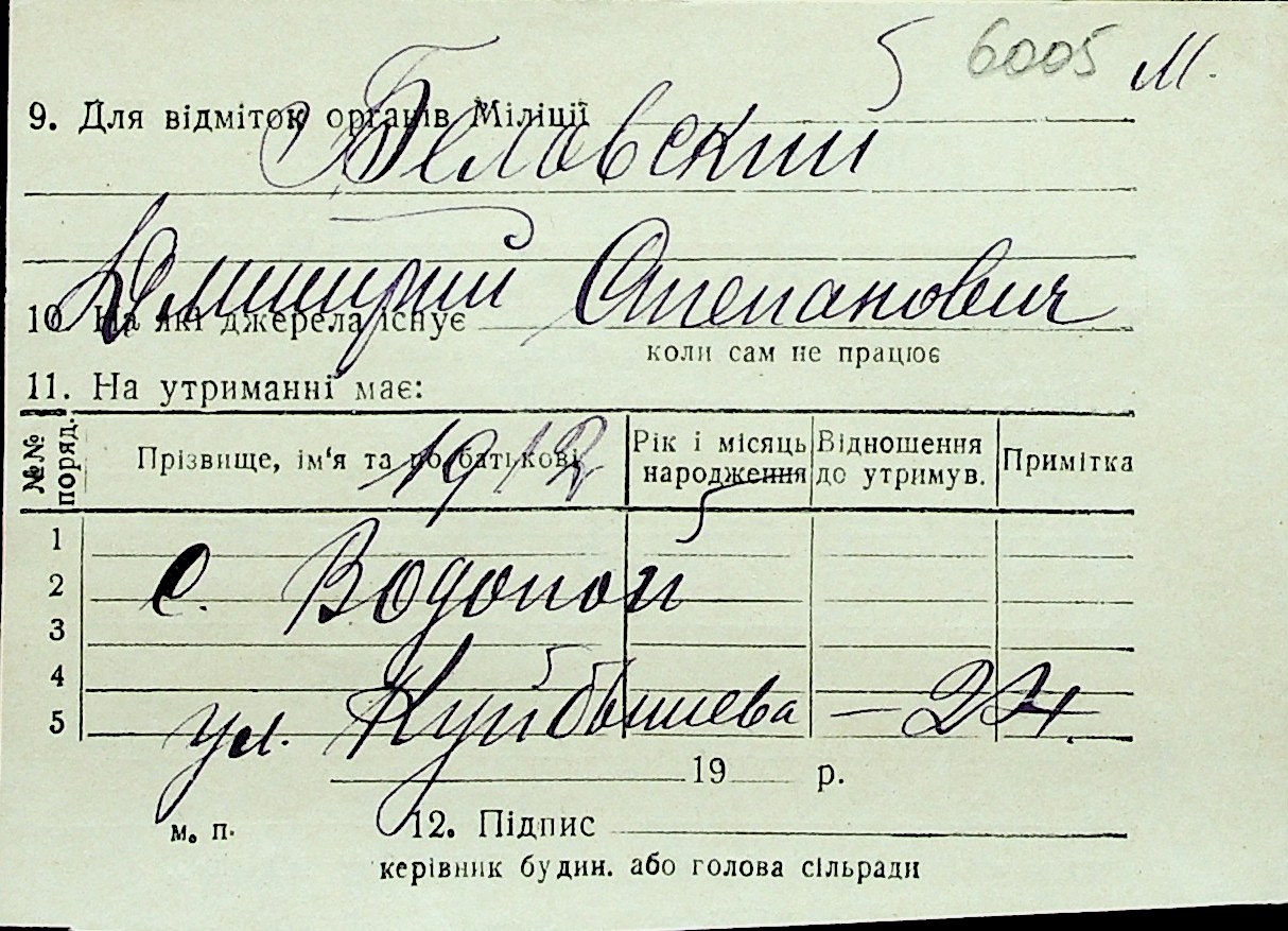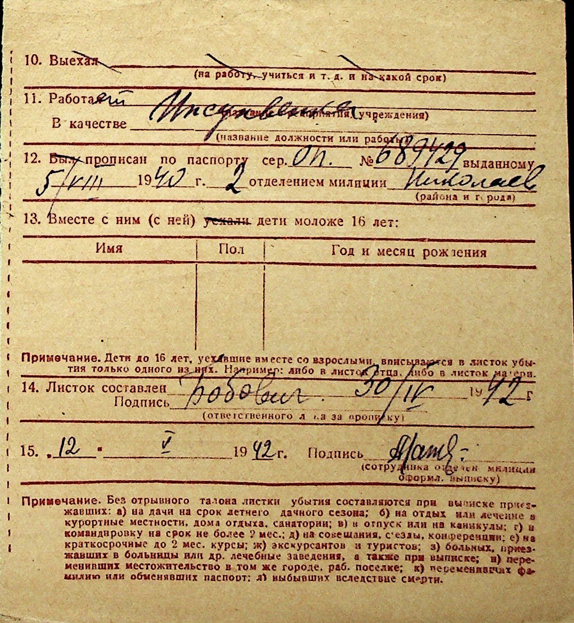 ◦ ◦ Перелік карток на осіб, які мешкали у м. Миколаїв у період окупації 1941–1944 років