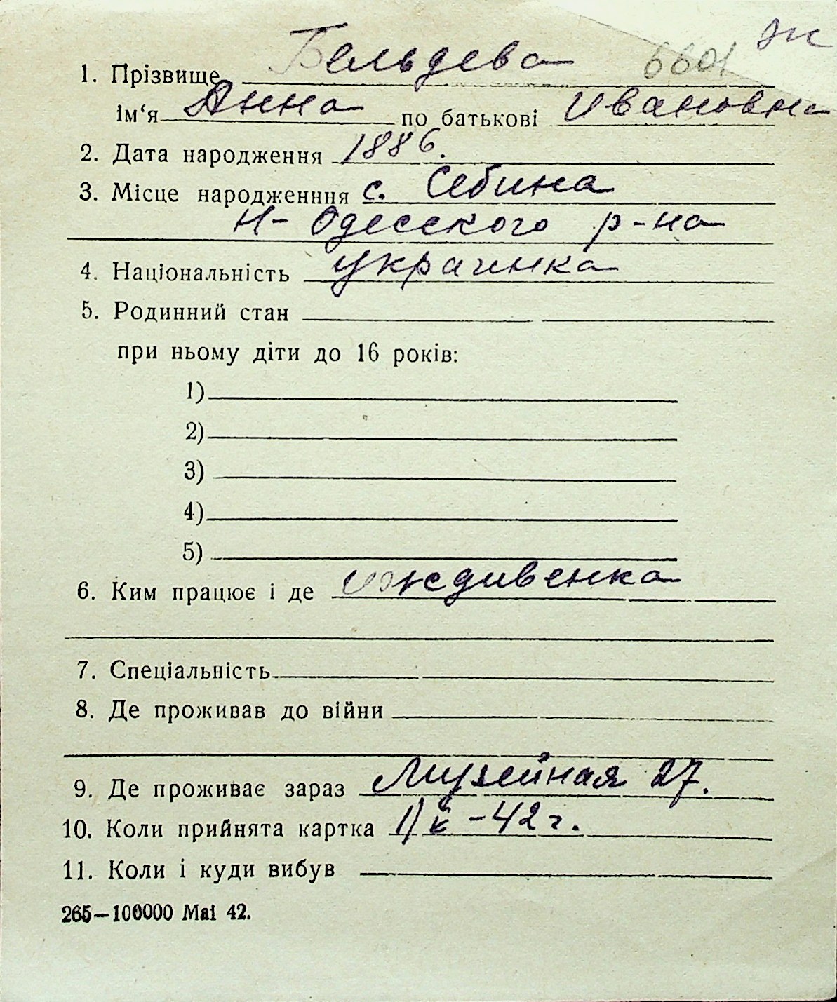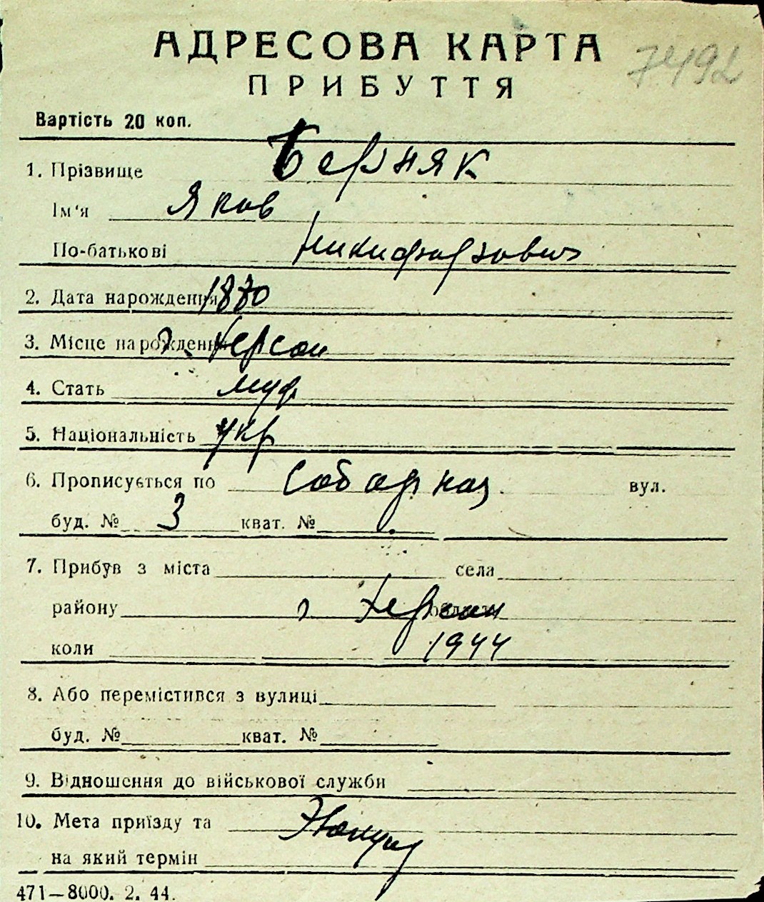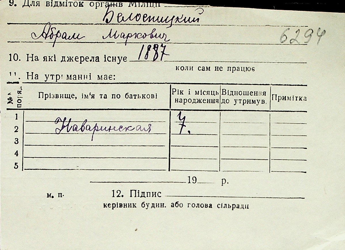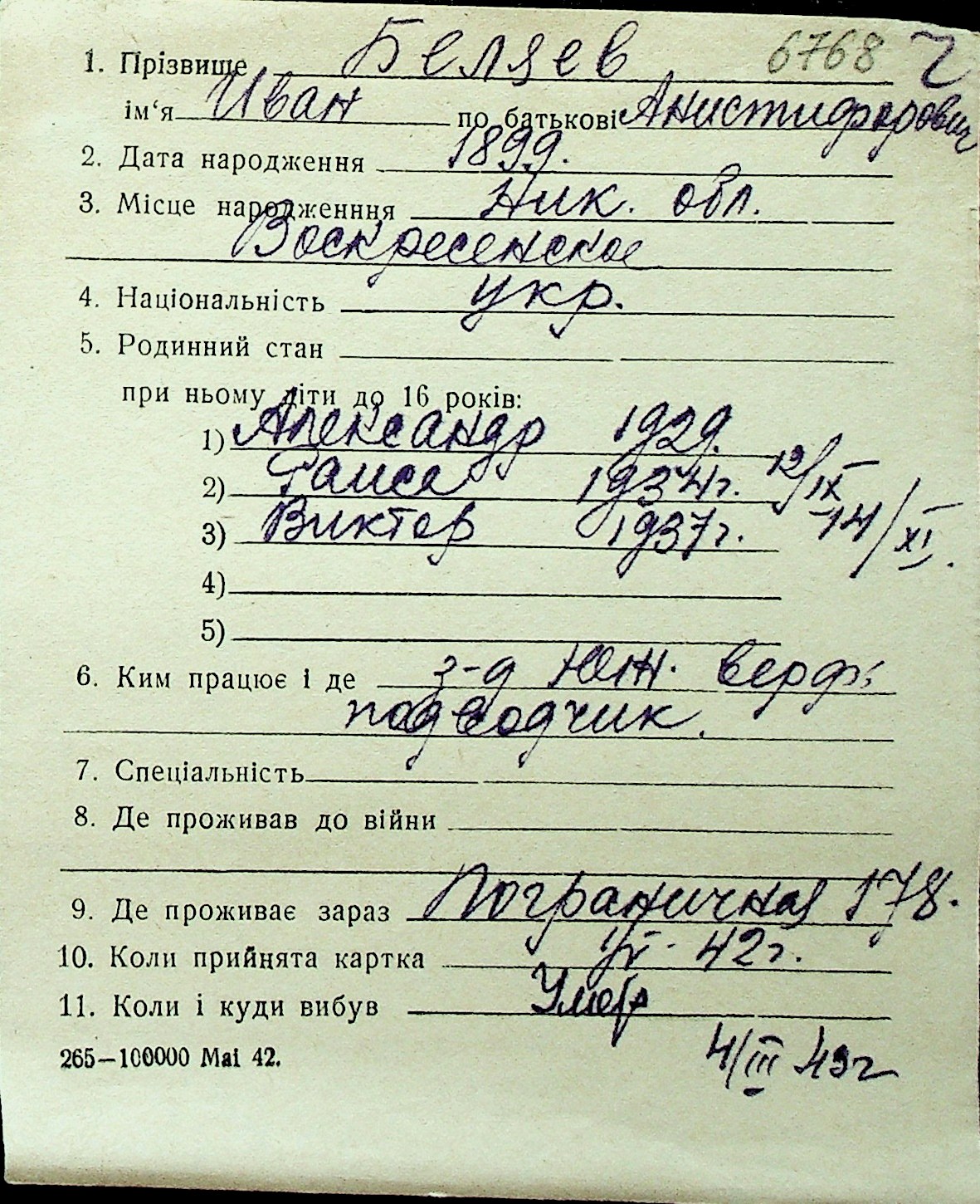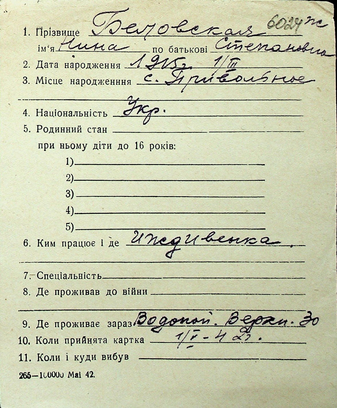 ◦ ◦ Перелік карток на осіб, які мешкали у м. Миколаїв у період окупації 1941–1944 років