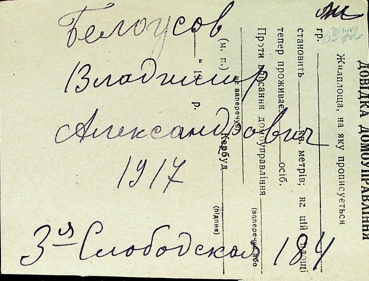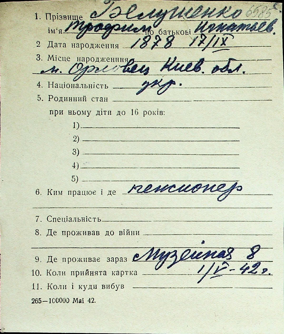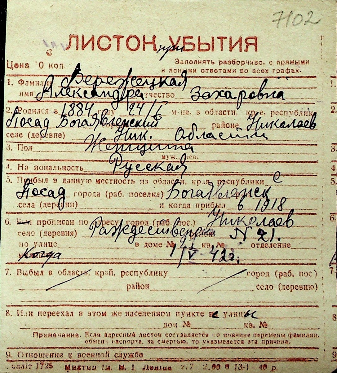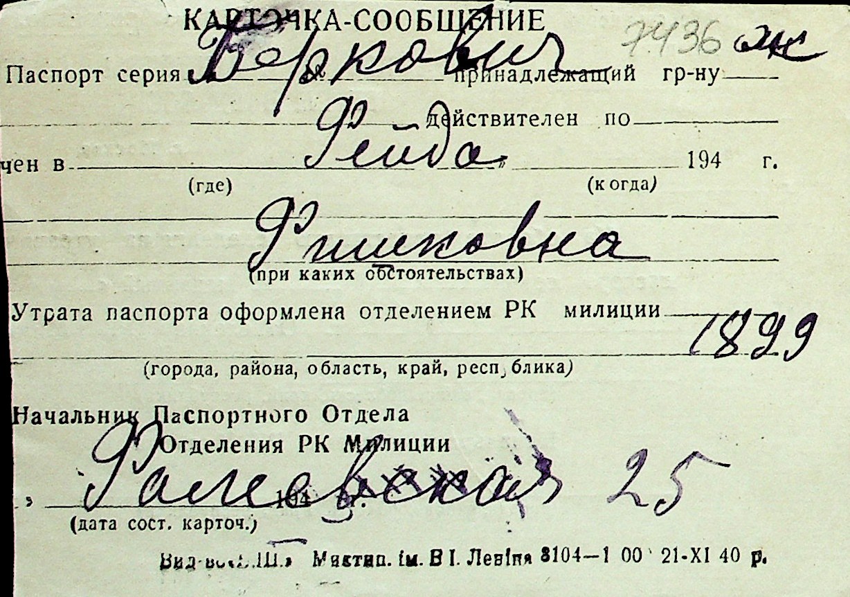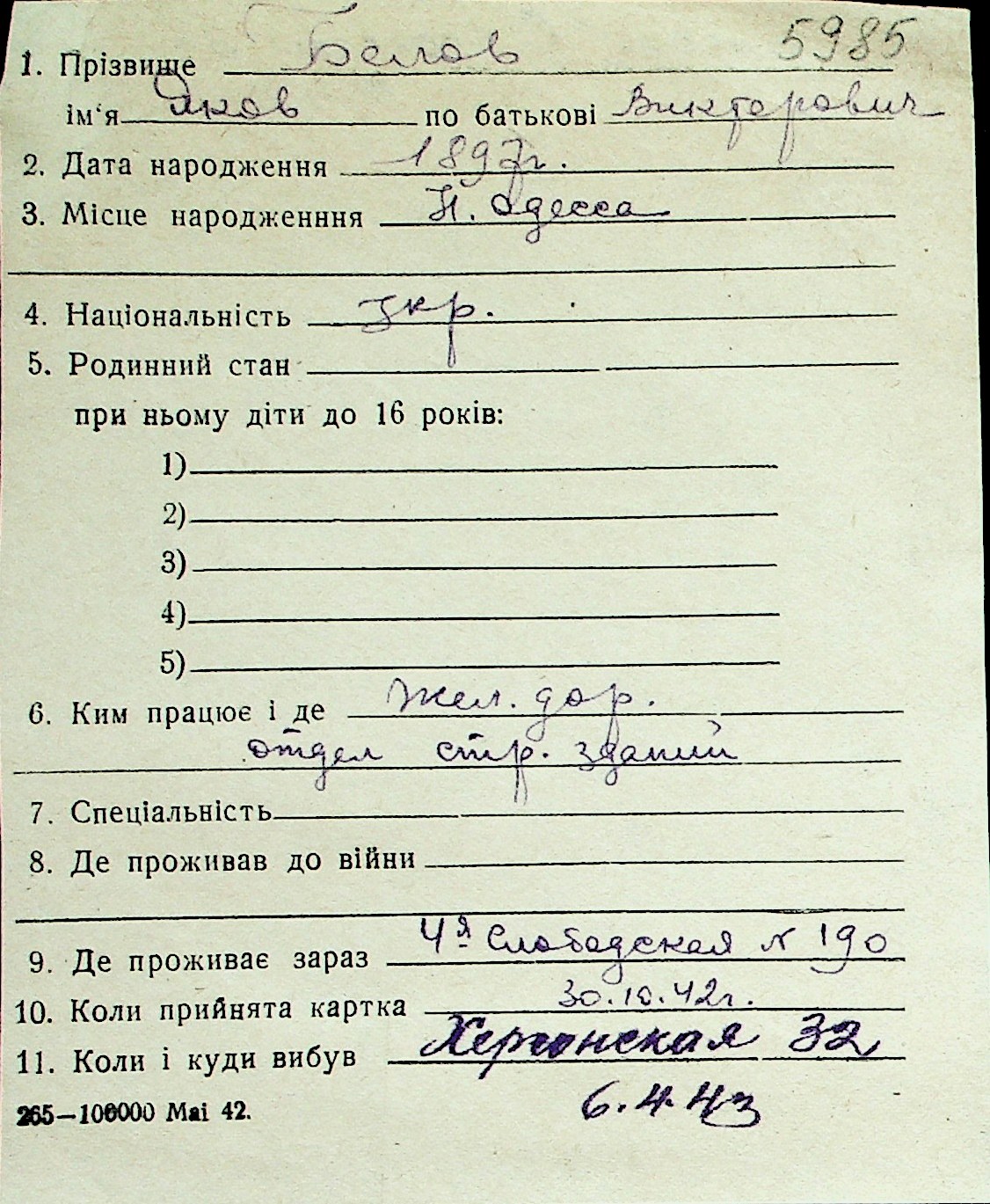 ◦ ◦ Перелік карток на осіб, які мешкали у м. Миколаїв у період окупації 1941–1944 років