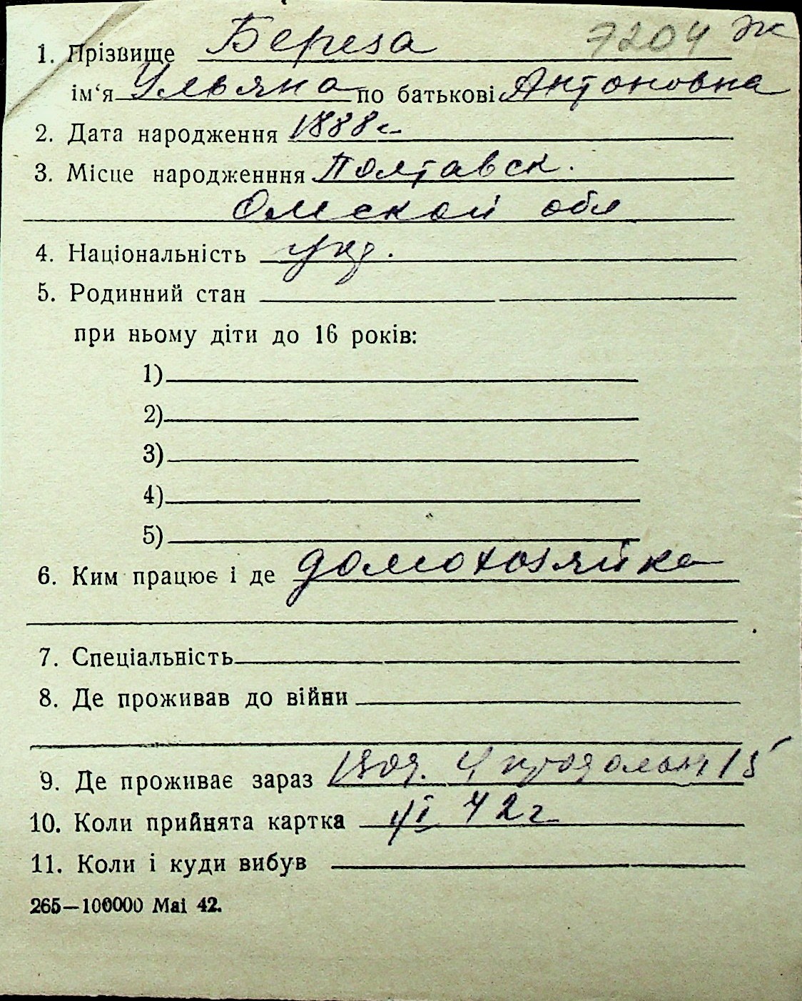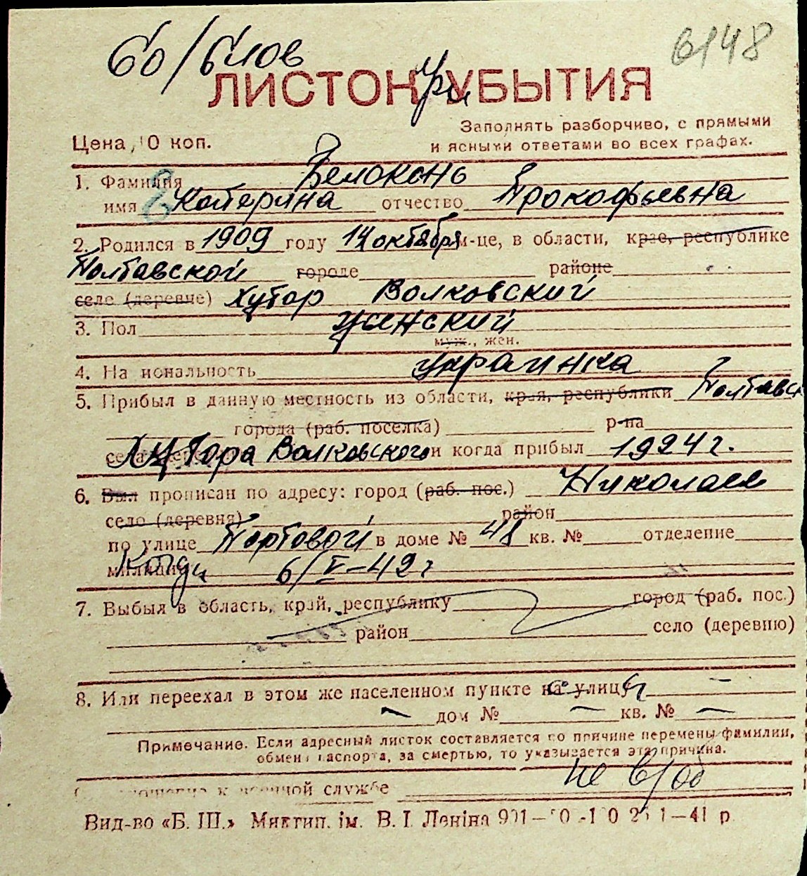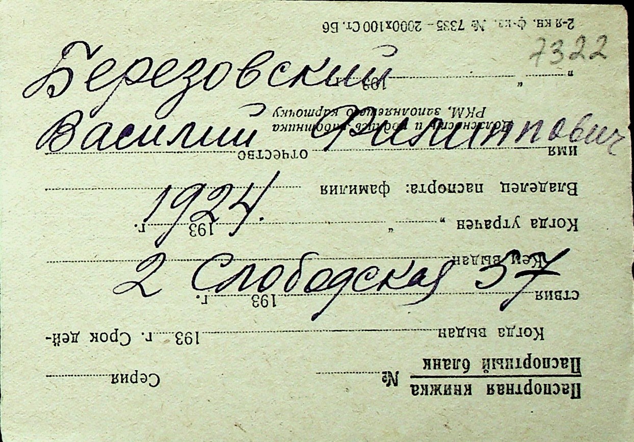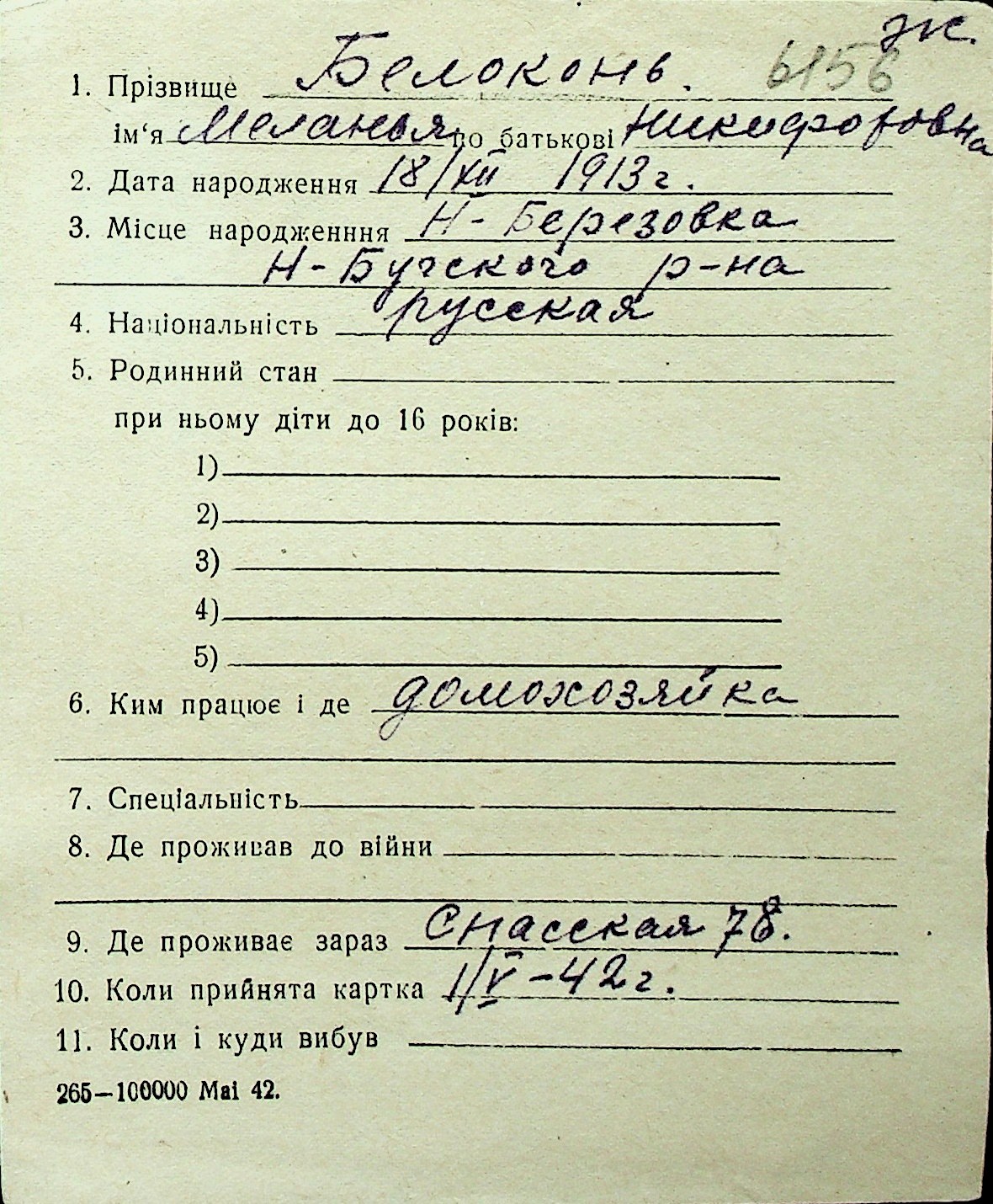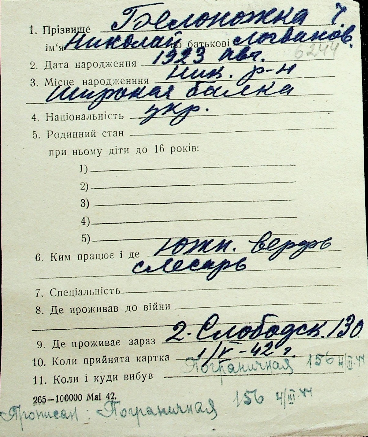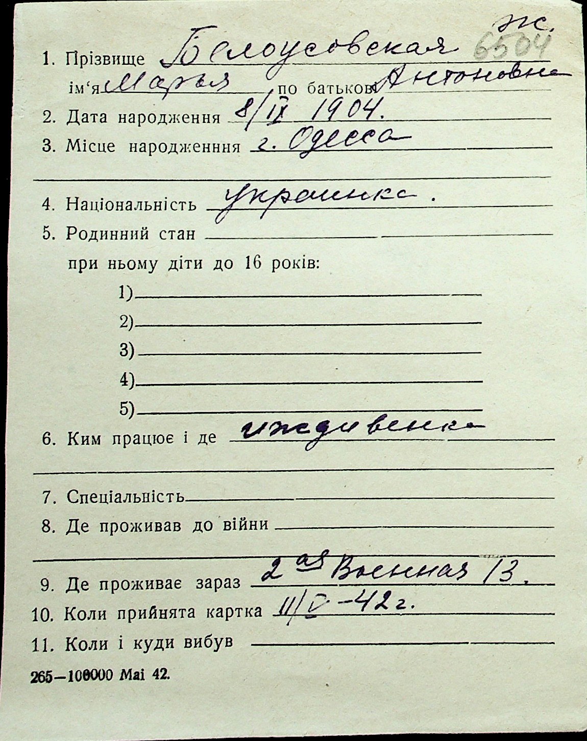 ◦ ◦ Перелік карток на осіб, які мешкали у м. Миколаїв у період окупації 1941–1944 років