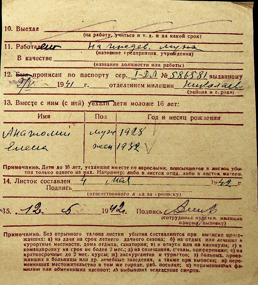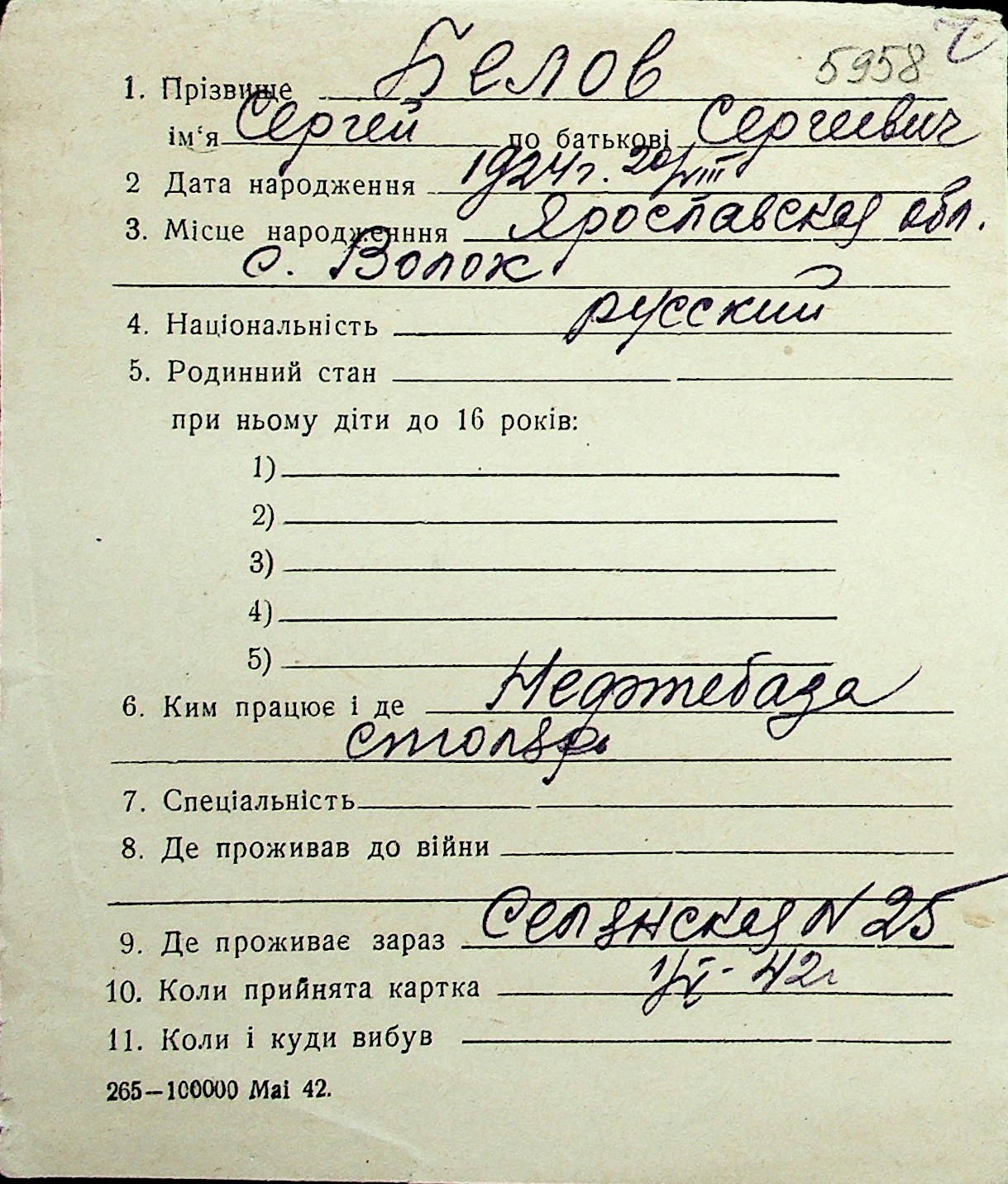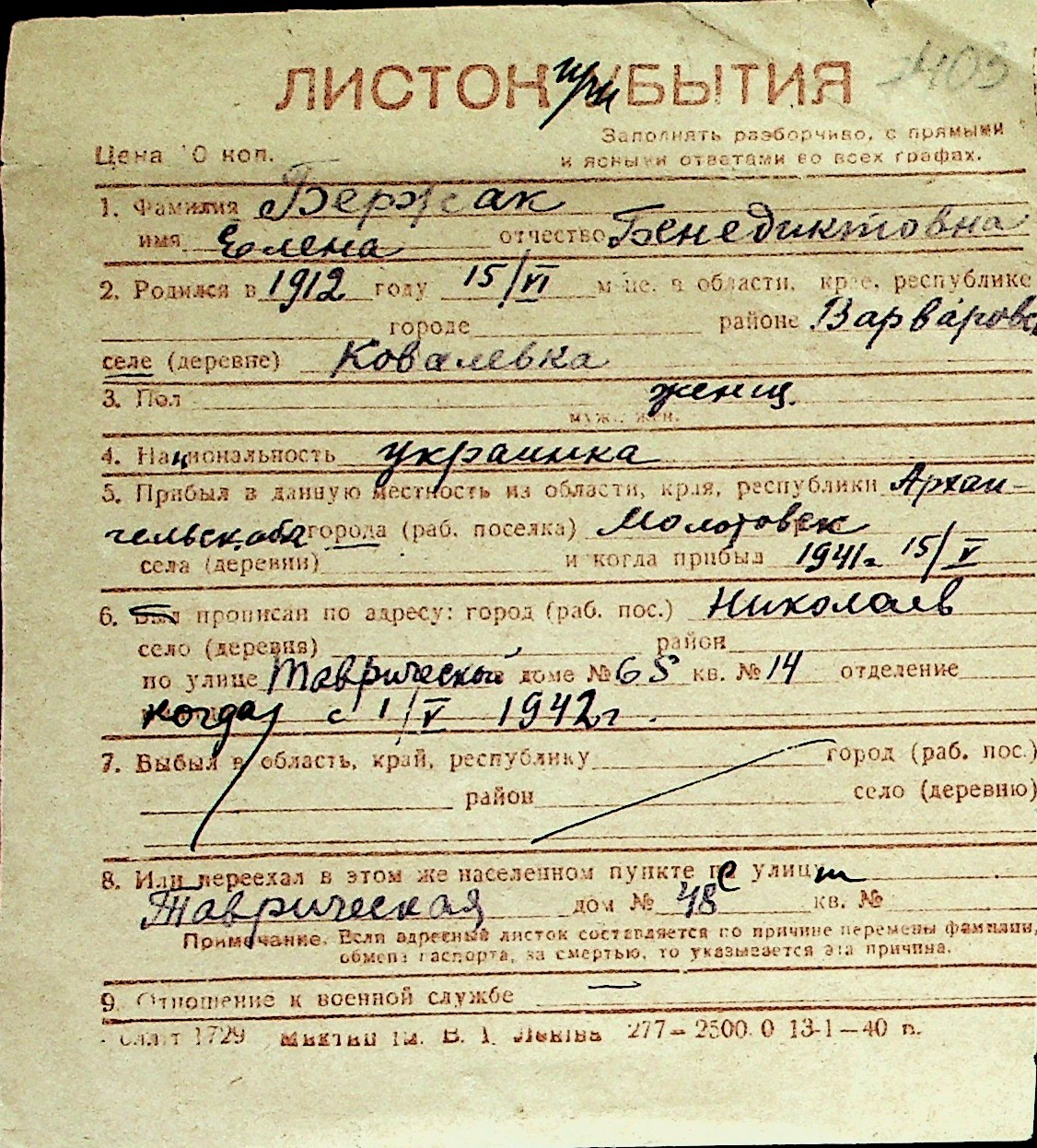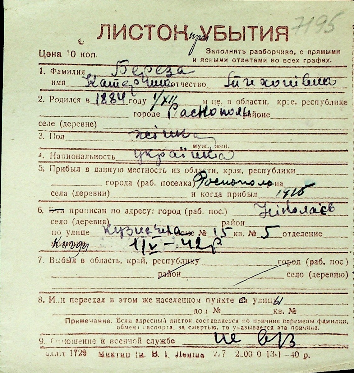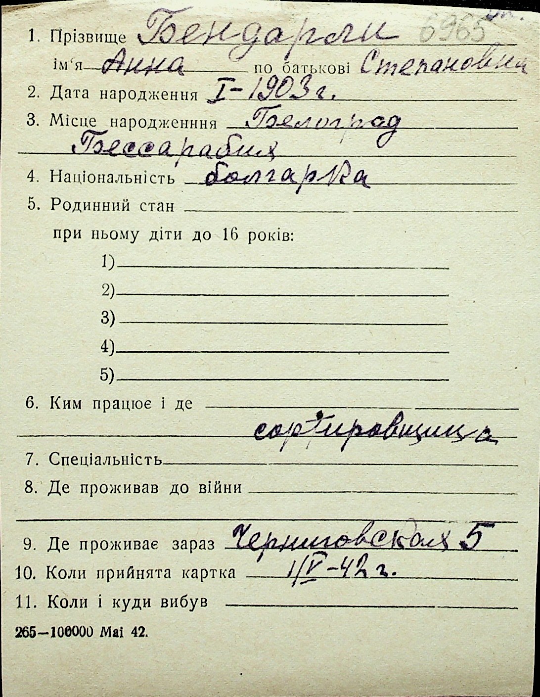 ◦ ◦ Перелік карток на осіб, які мешкали у м. Миколаїв у період окупації 1941–1944 років