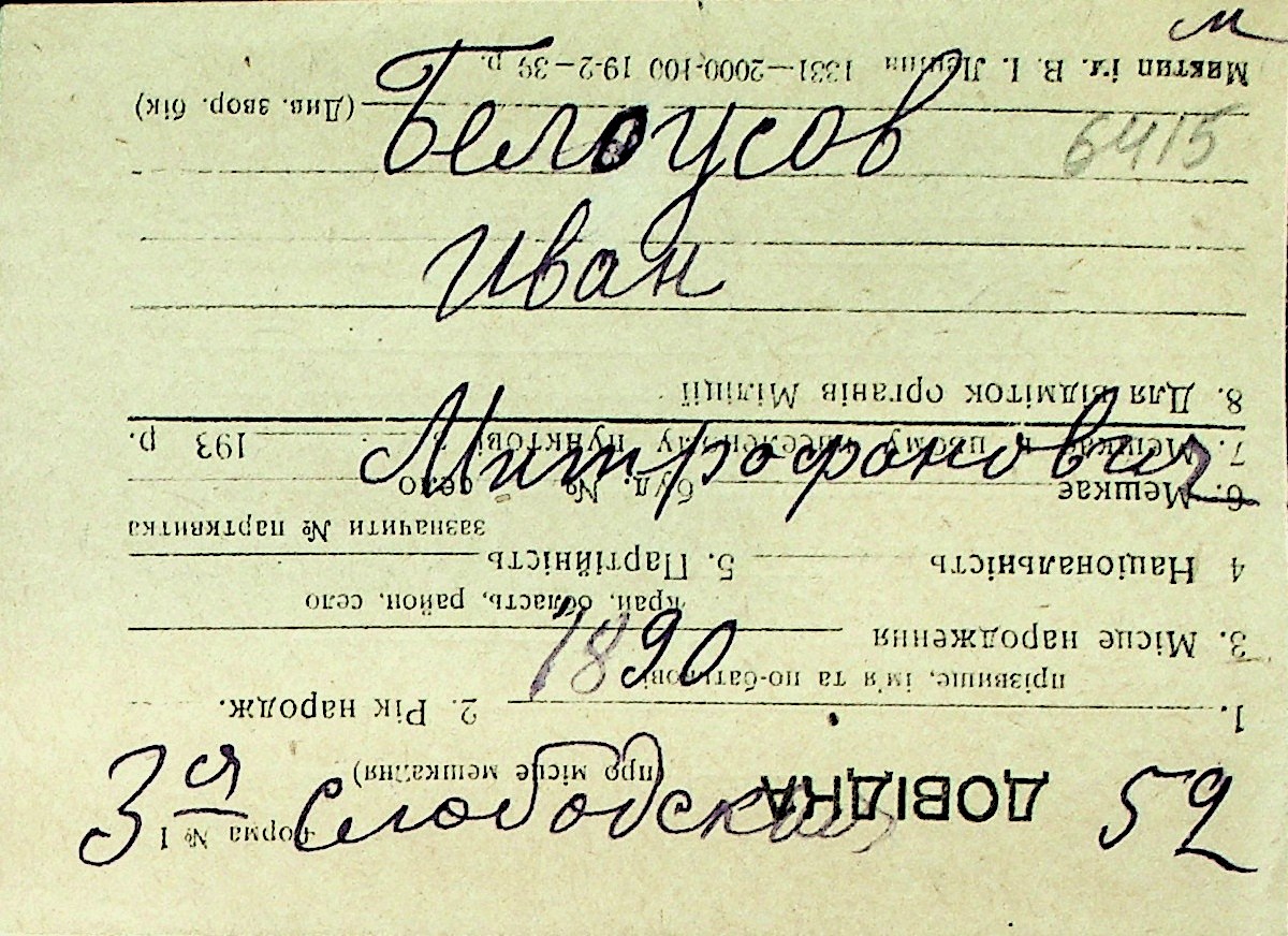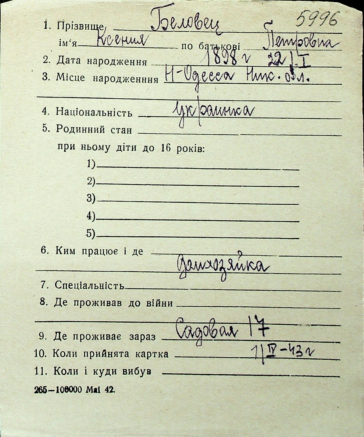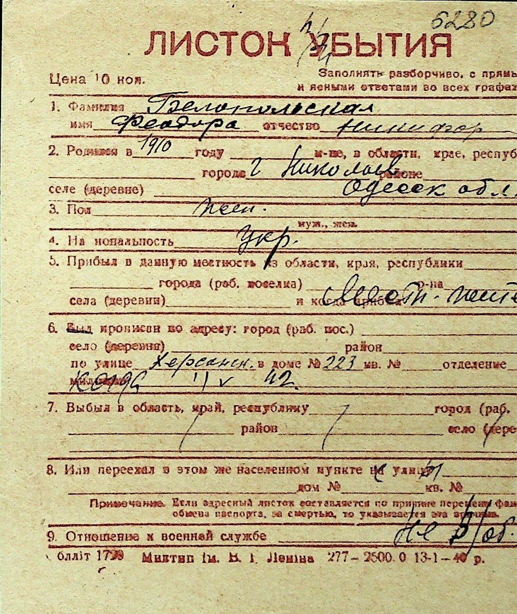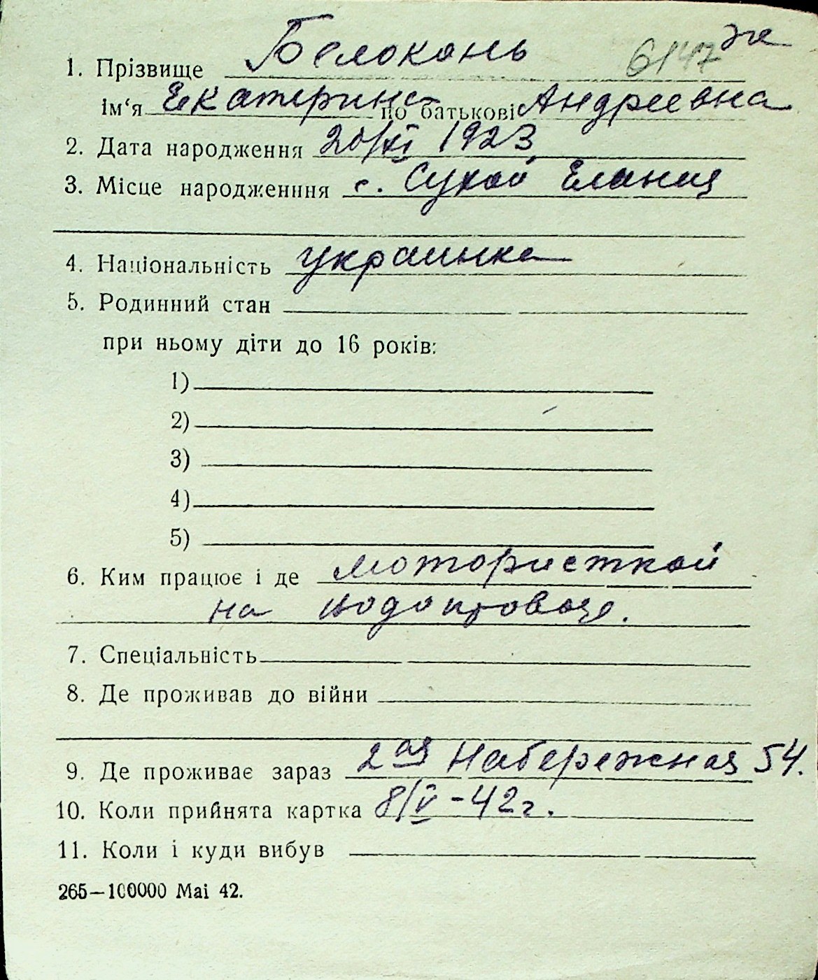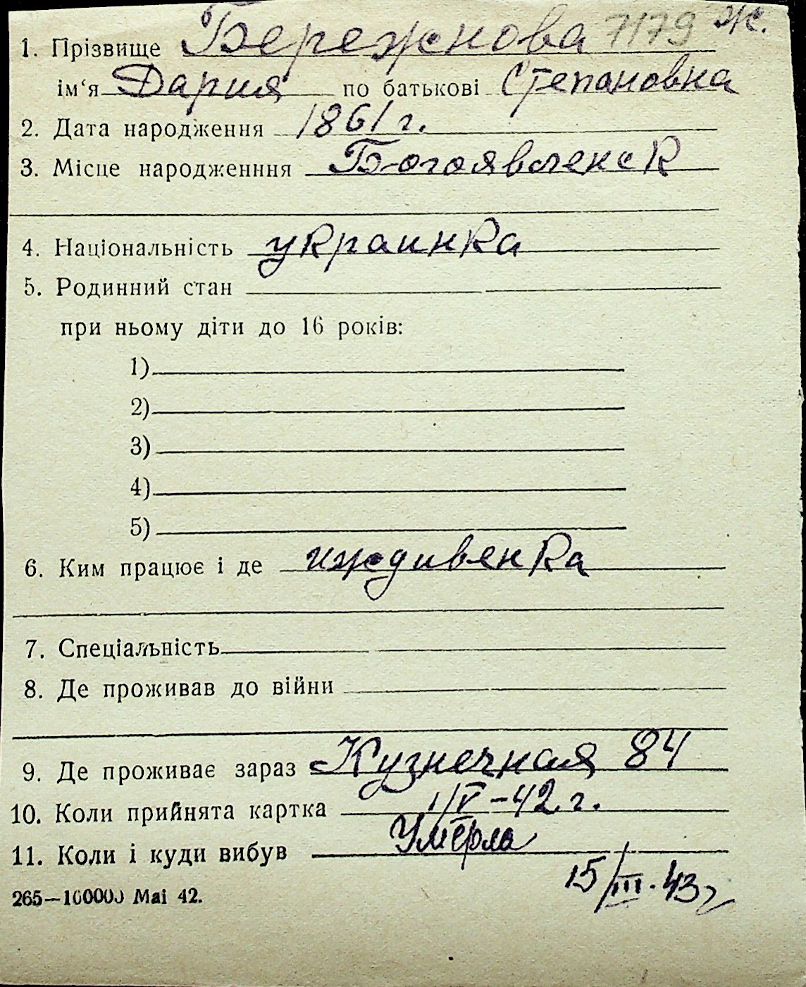 ◦ ◦ Перелік карток на осіб, які мешкали у м. Миколаїв у період окупації 1941–1944 років