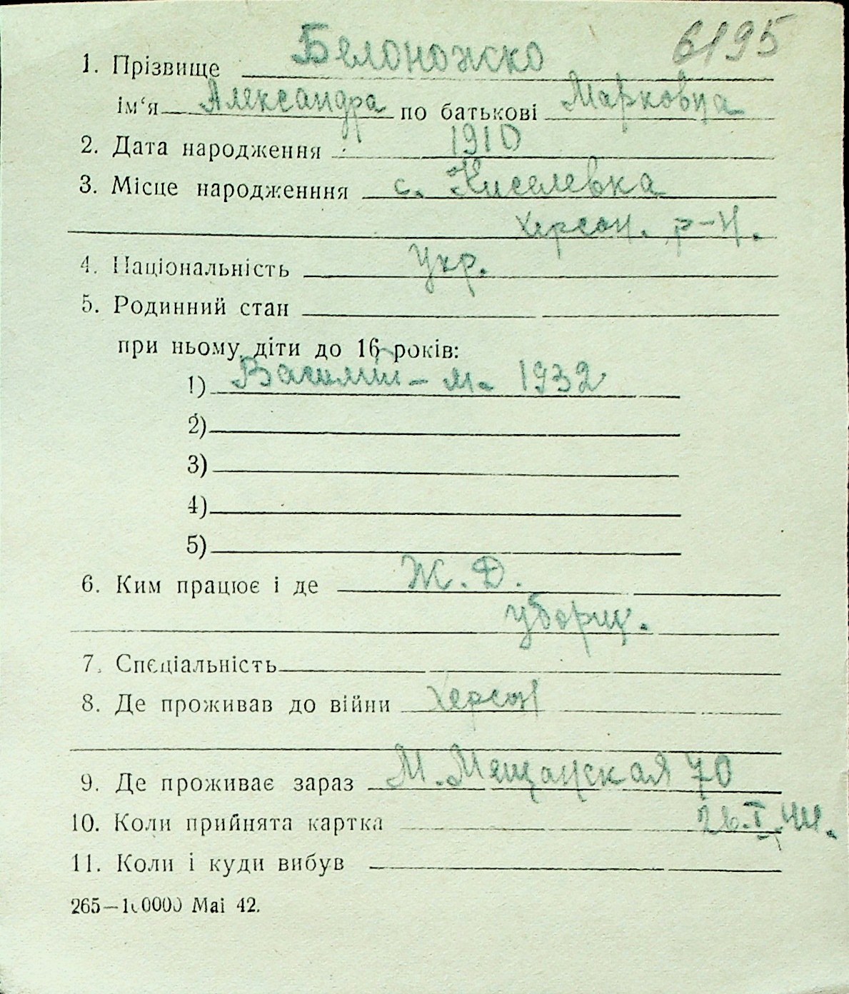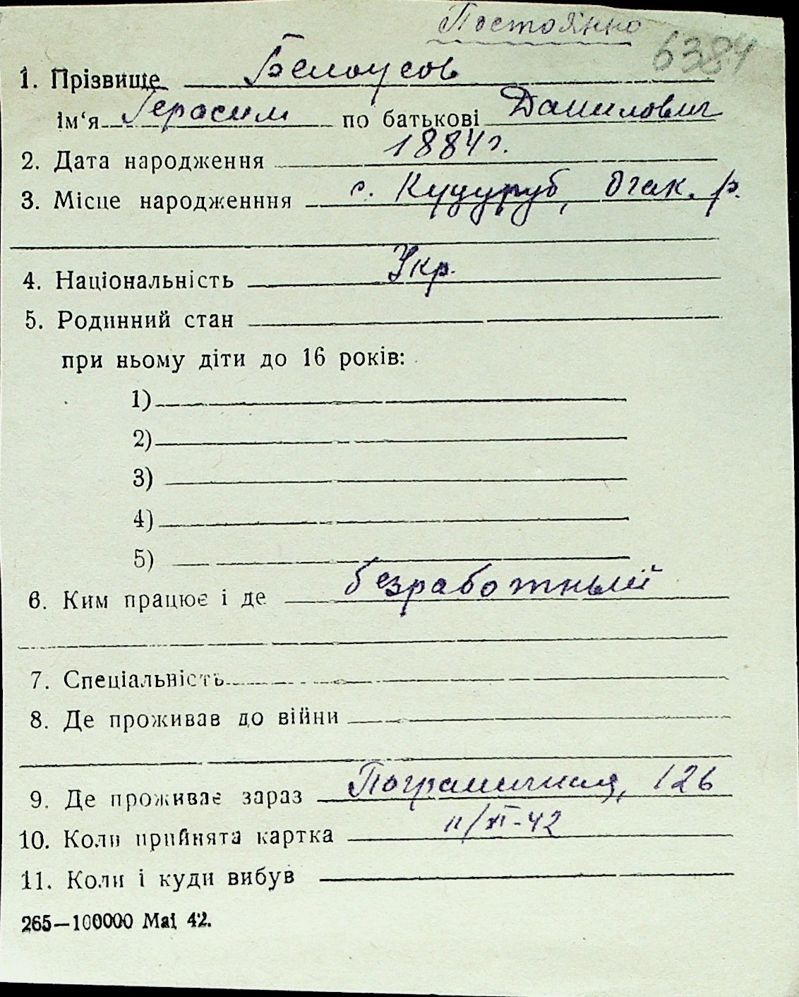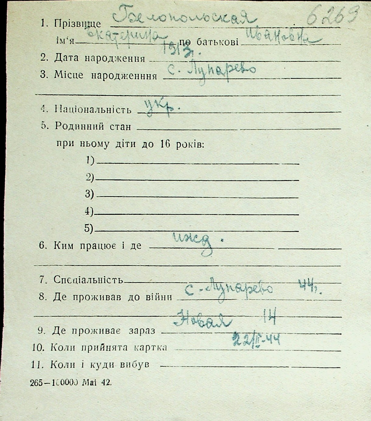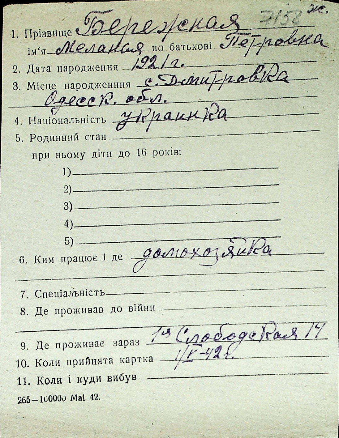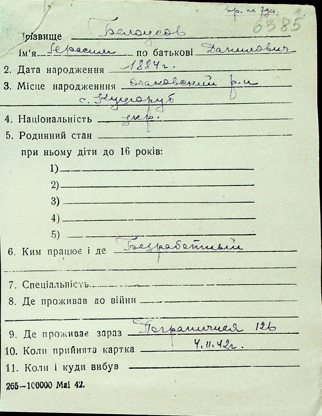 ◦ ◦ Перелік карток на осіб, які мешкали у м. Миколаїв у період окупації 1941–1944 років