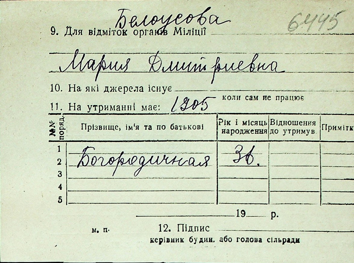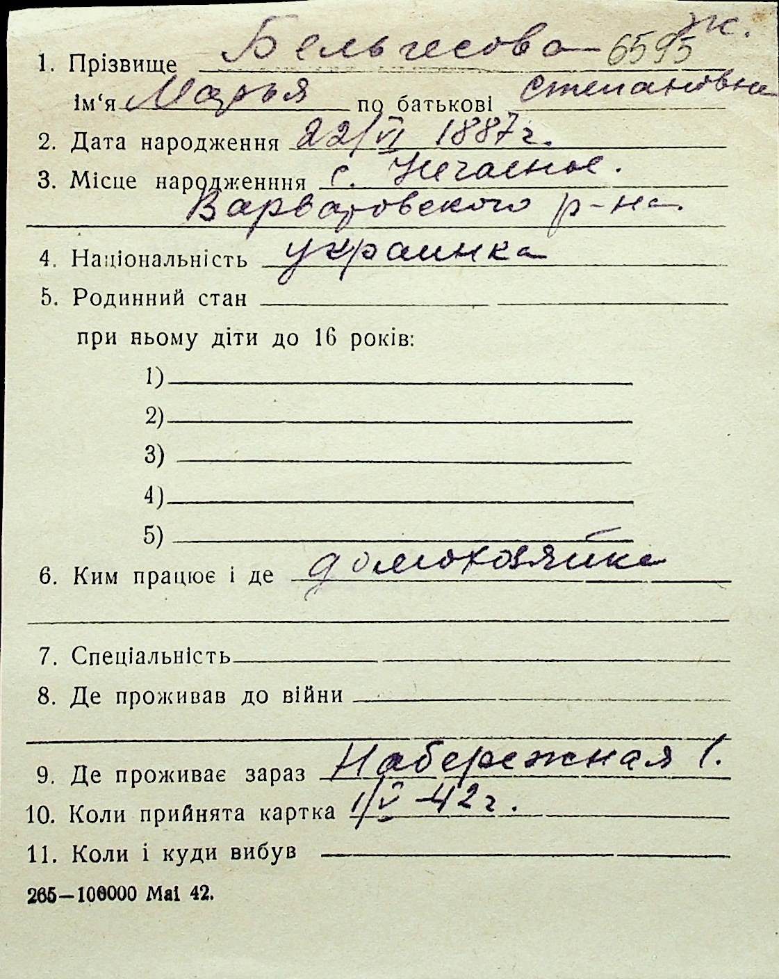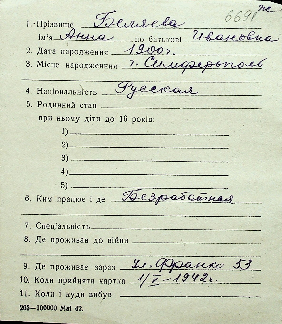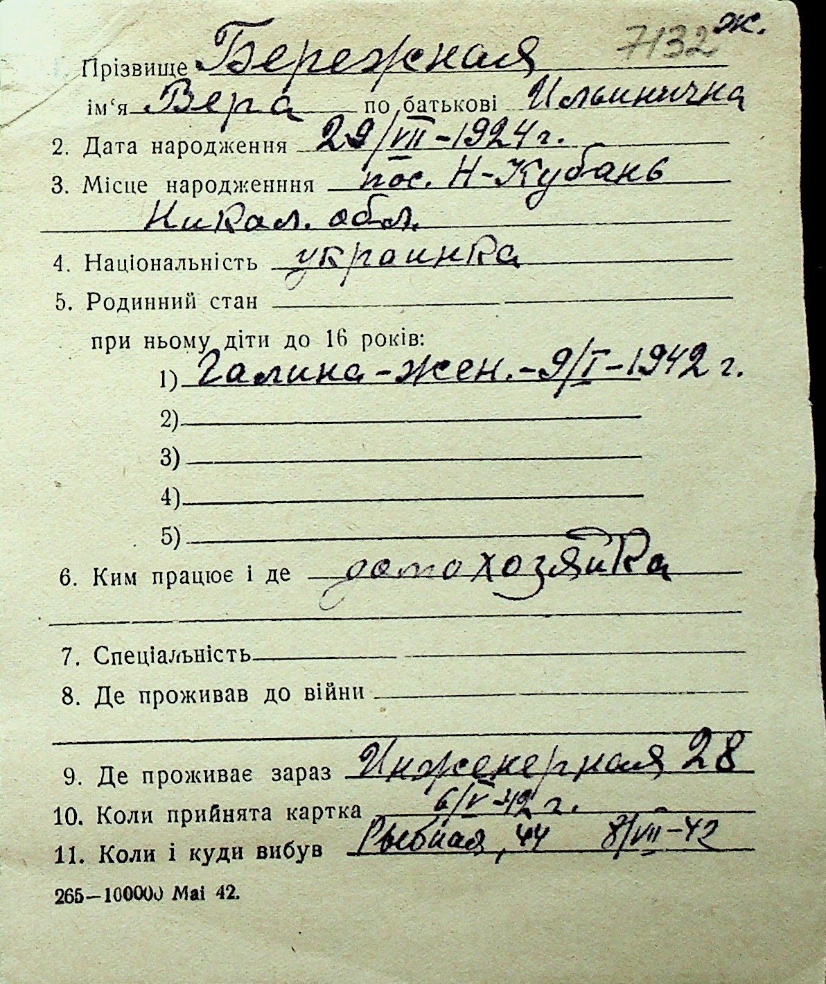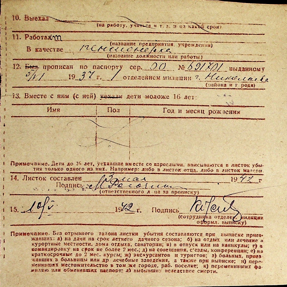 ◦ ◦ Перелік карток на осіб, які мешкали у м. Миколаїв у період окупації 1941–1944 років