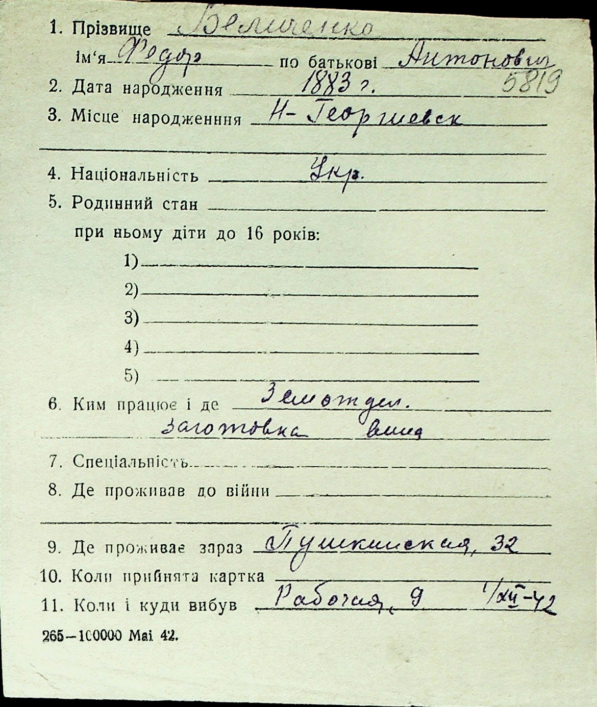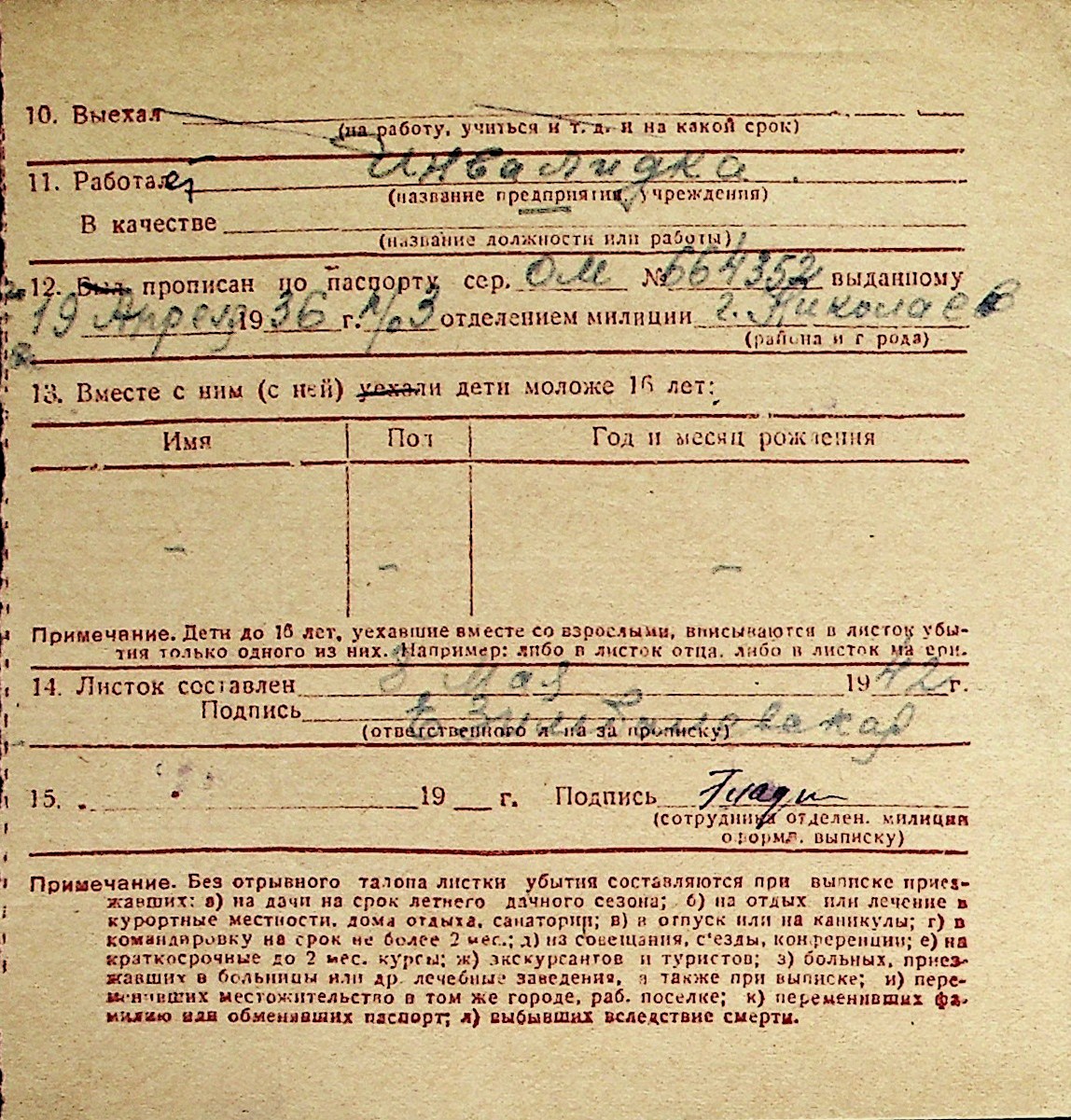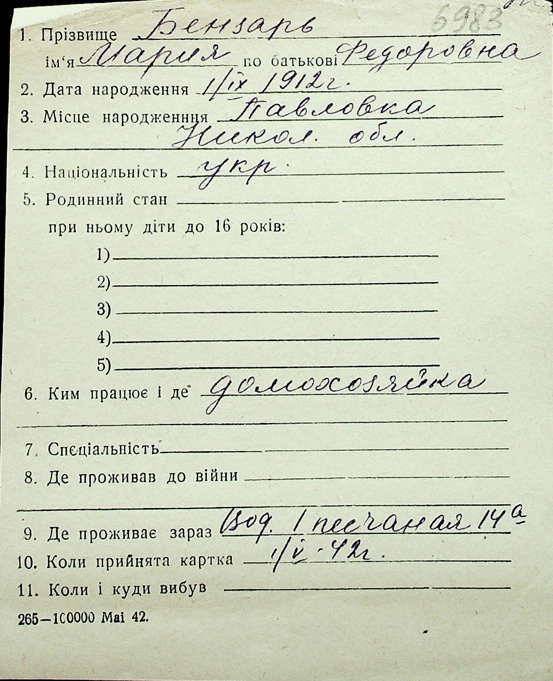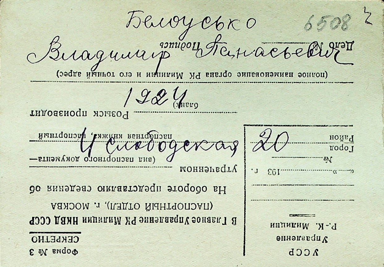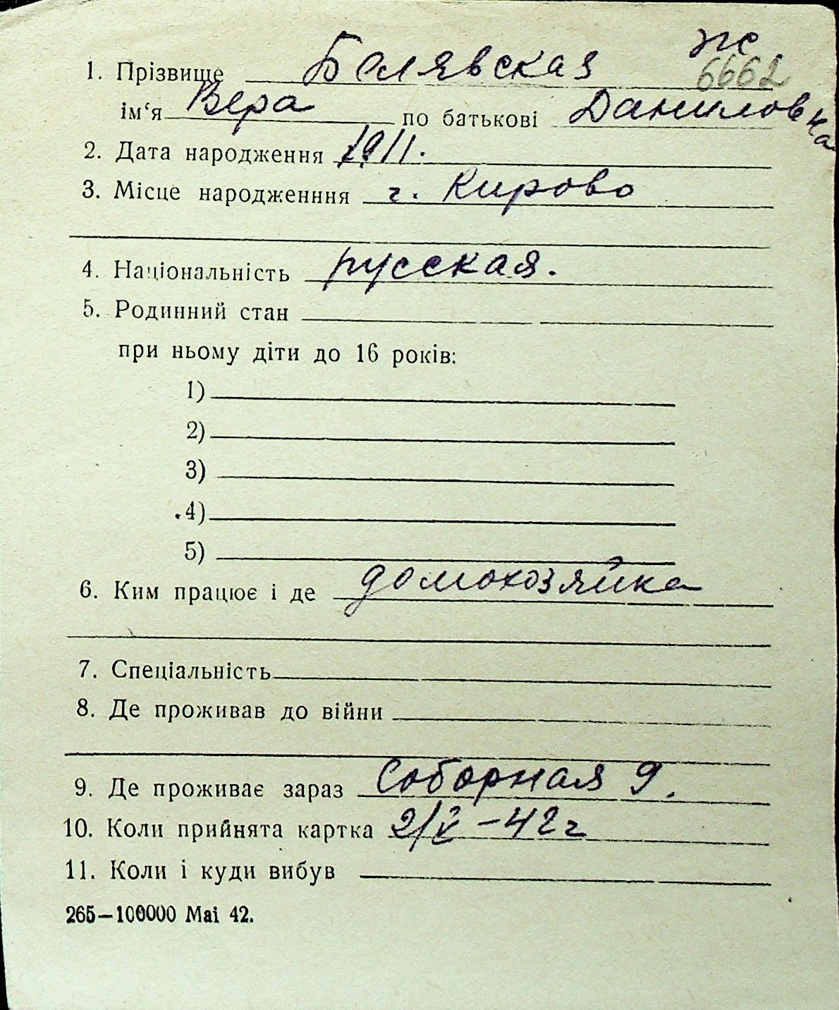 ◦ ◦ Перелік карток на осіб, які мешкали у м. Миколаїв у період окупації 1941–1944 років