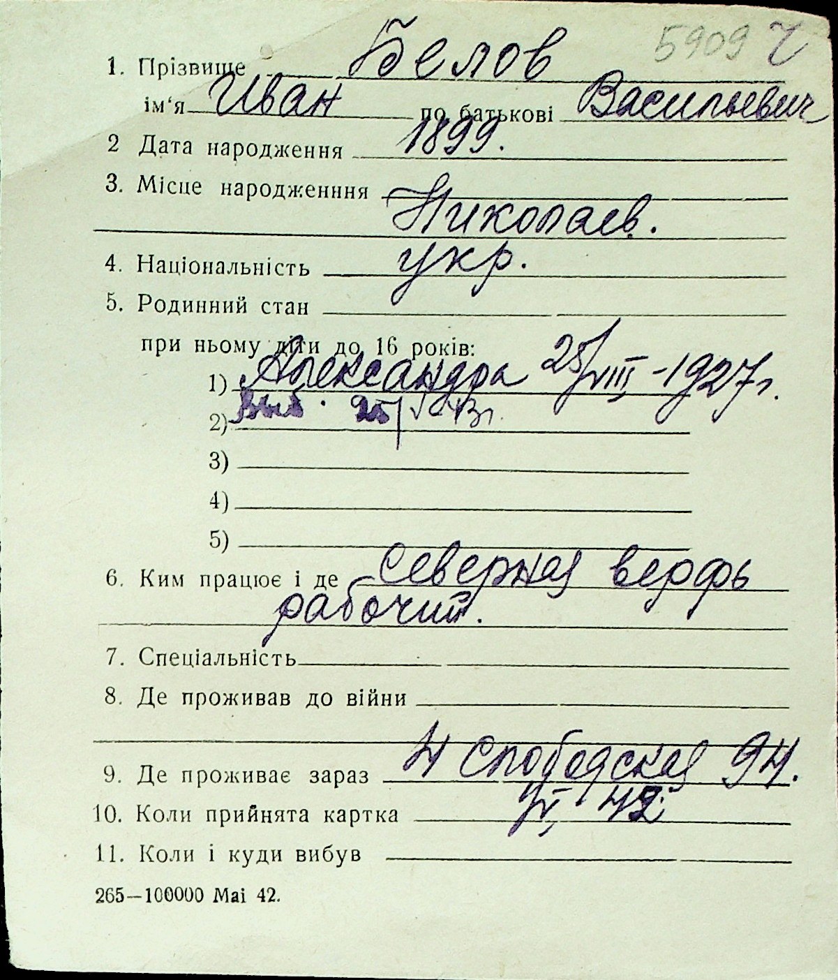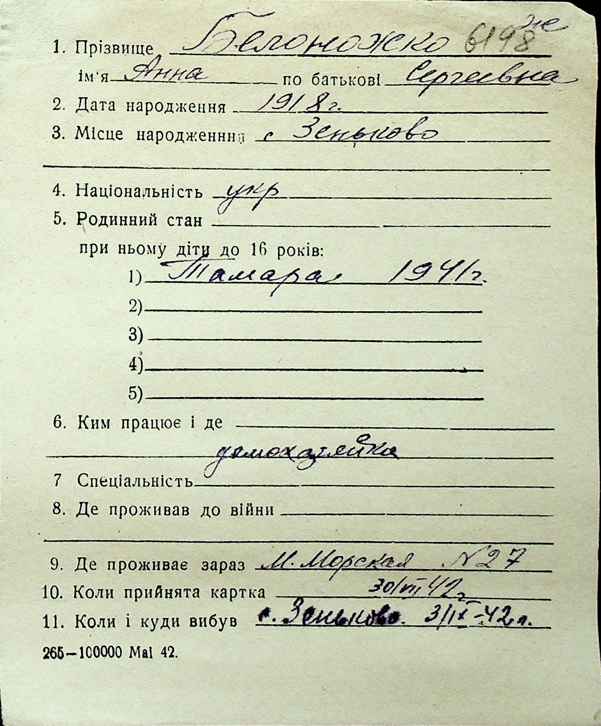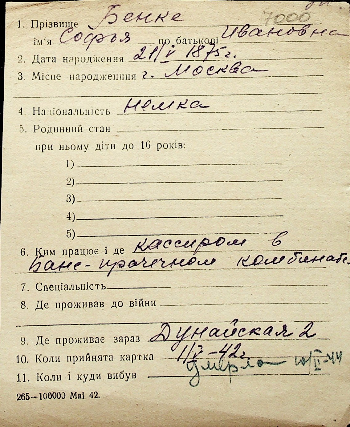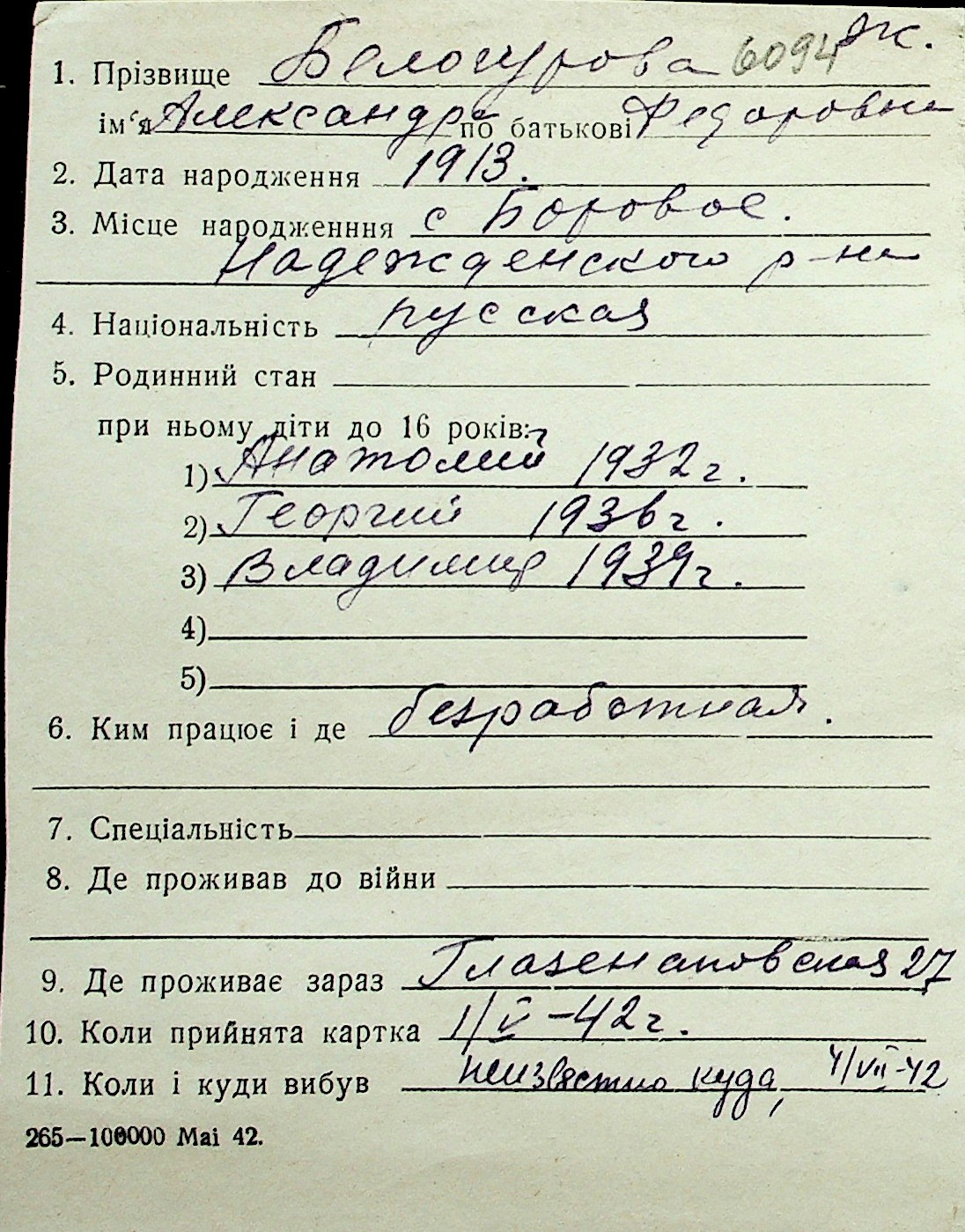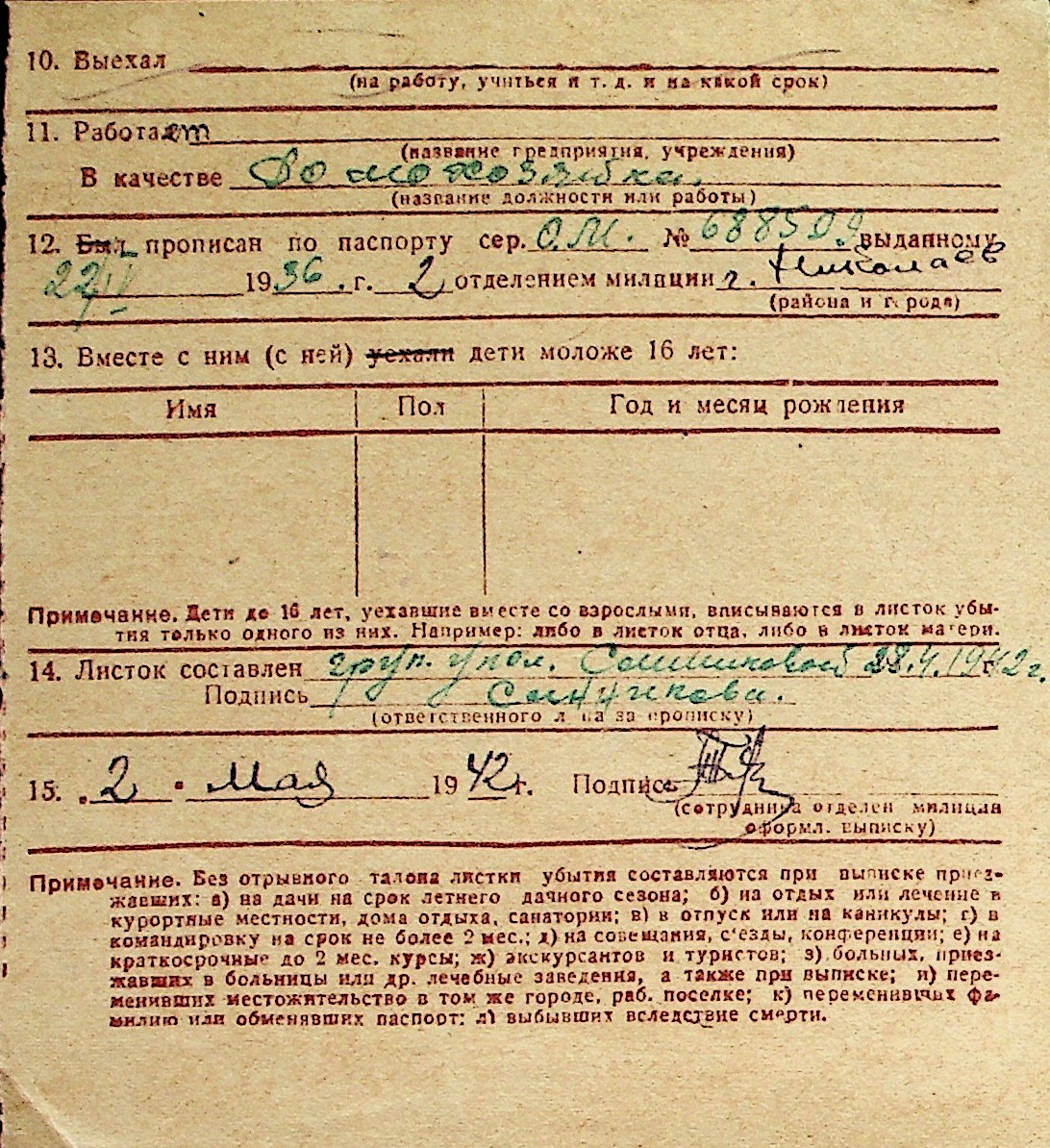 ◦ ◦ Перелік карток на осіб, які мешкали у м. Миколаїв у період окупації 1941–1944 років