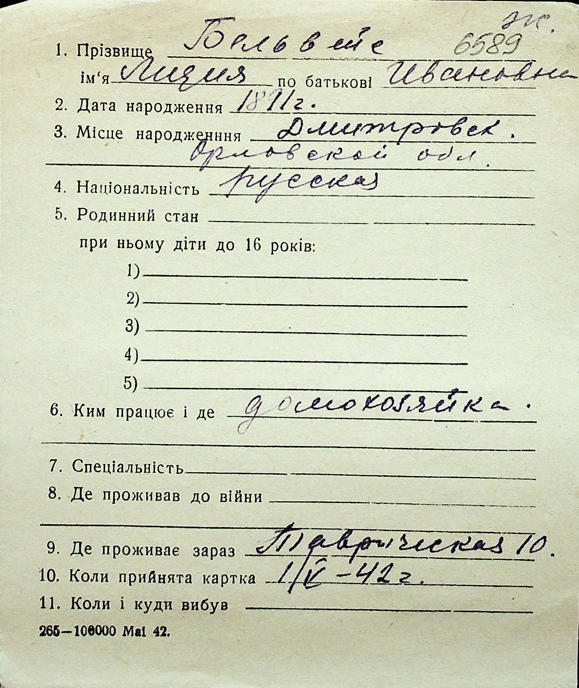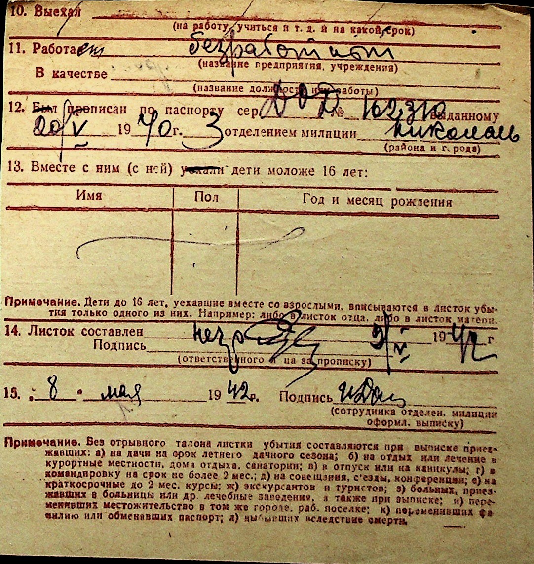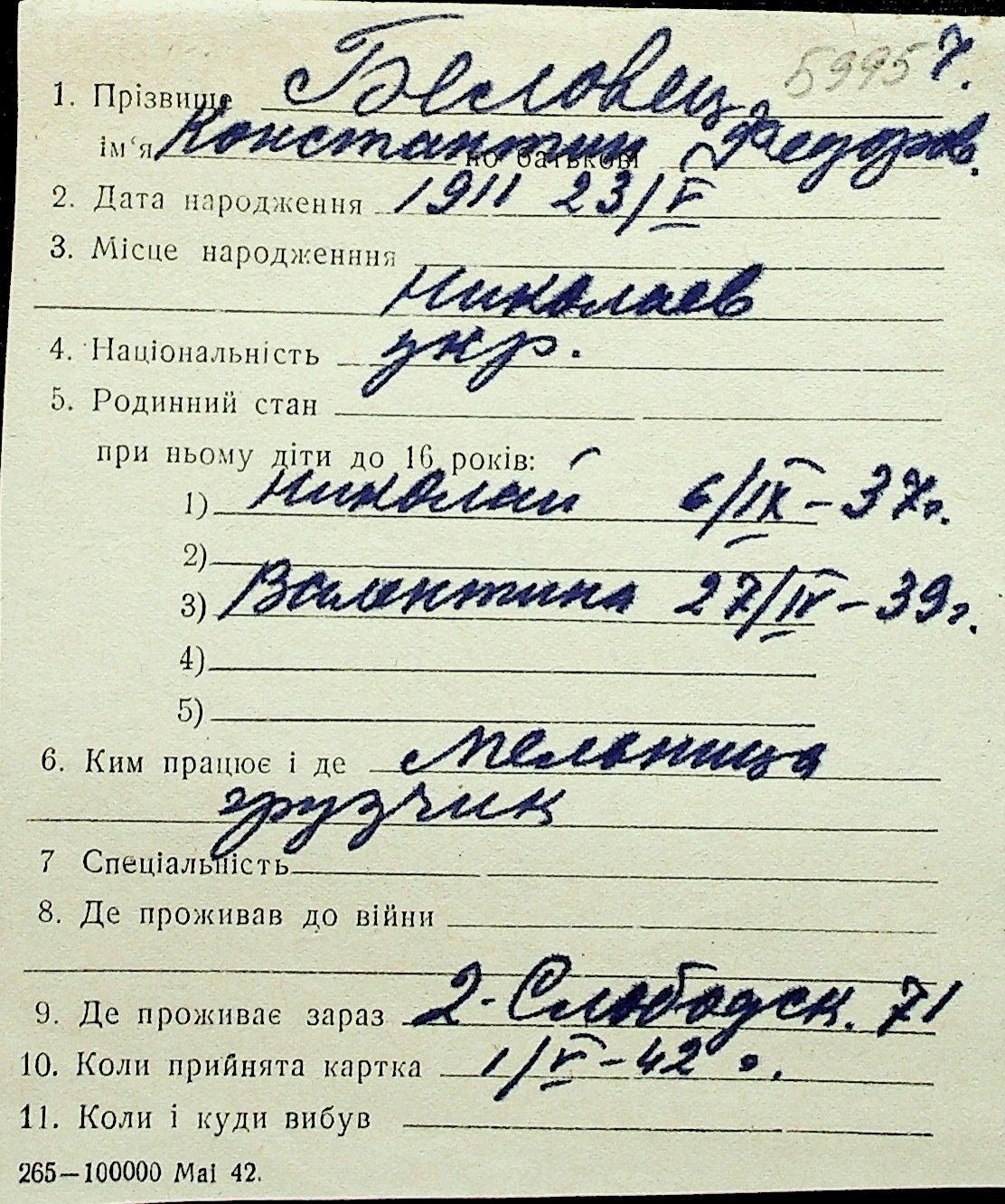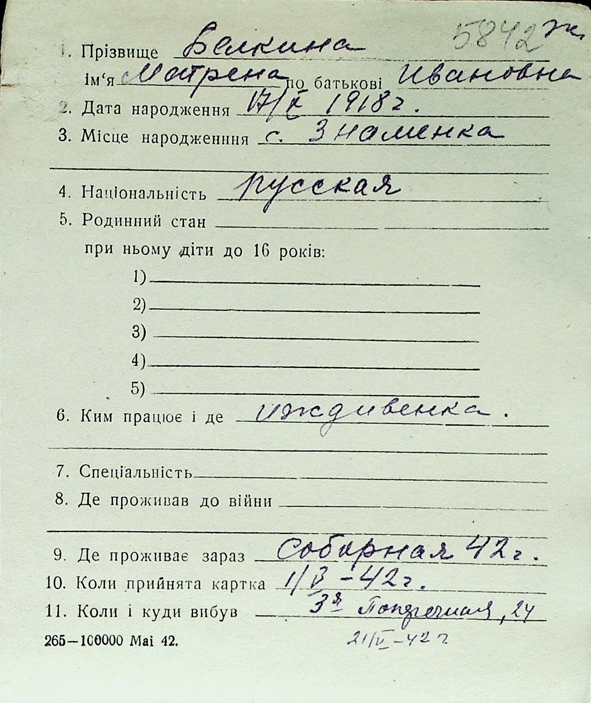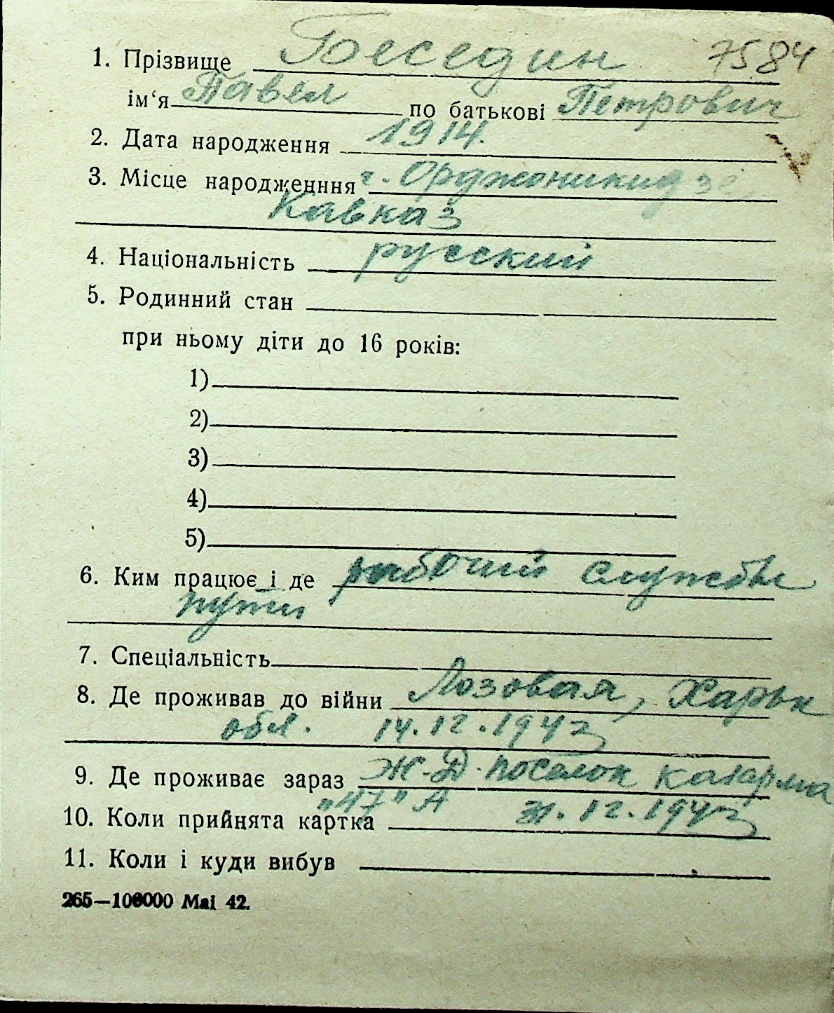 ◦ ◦ Перелік карток на осіб, які мешкали у м. Миколаїв у період окупації 1941–1944 років