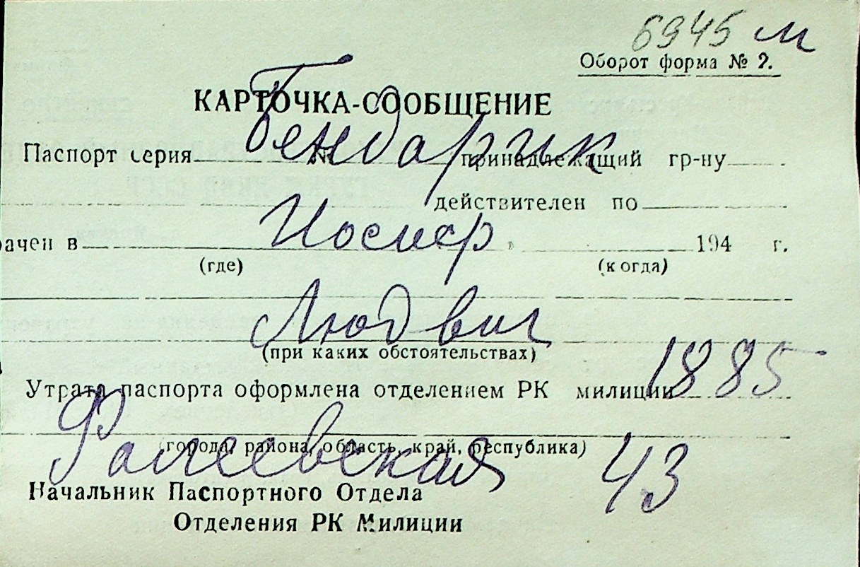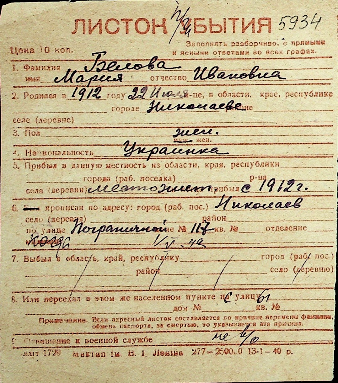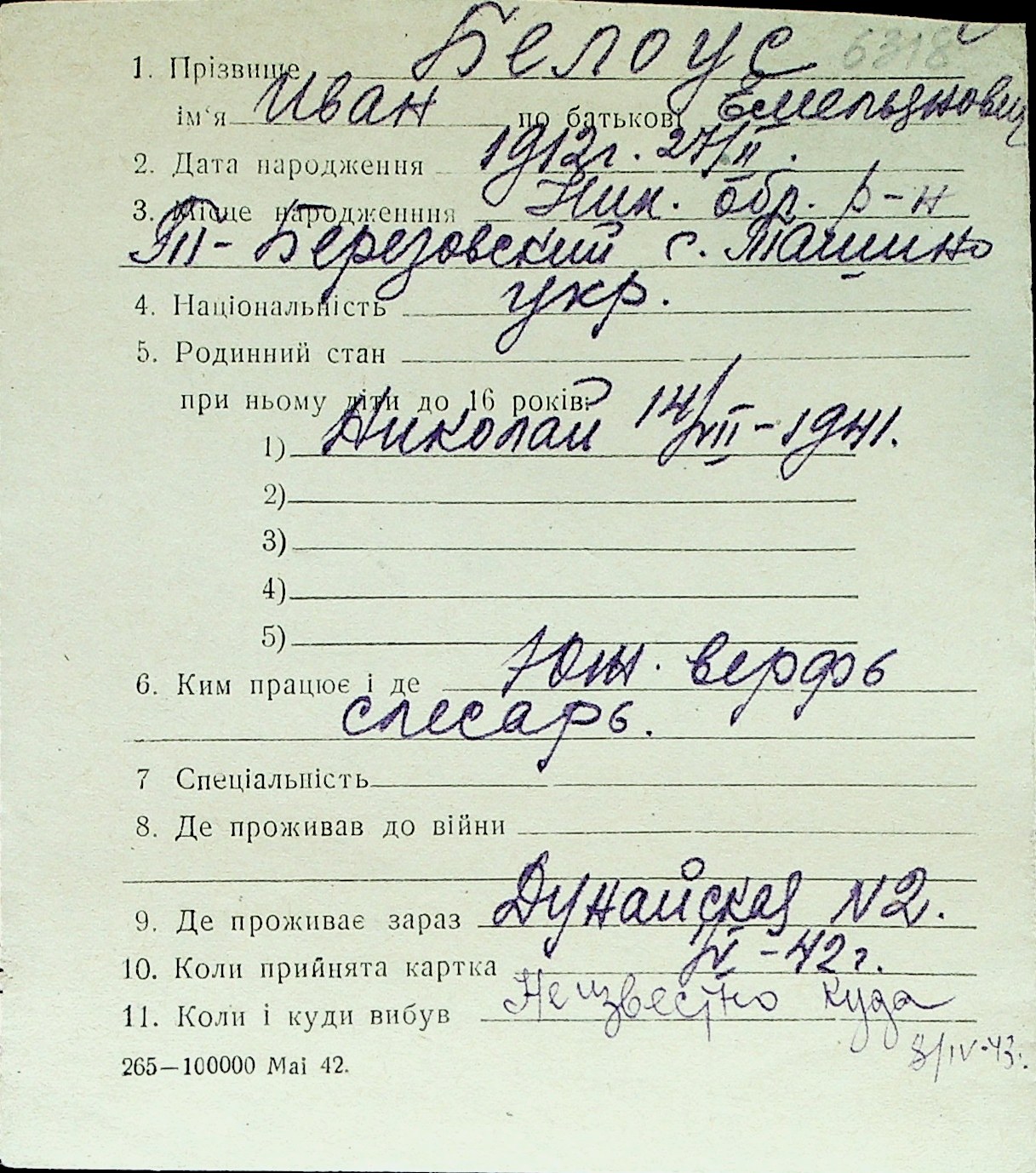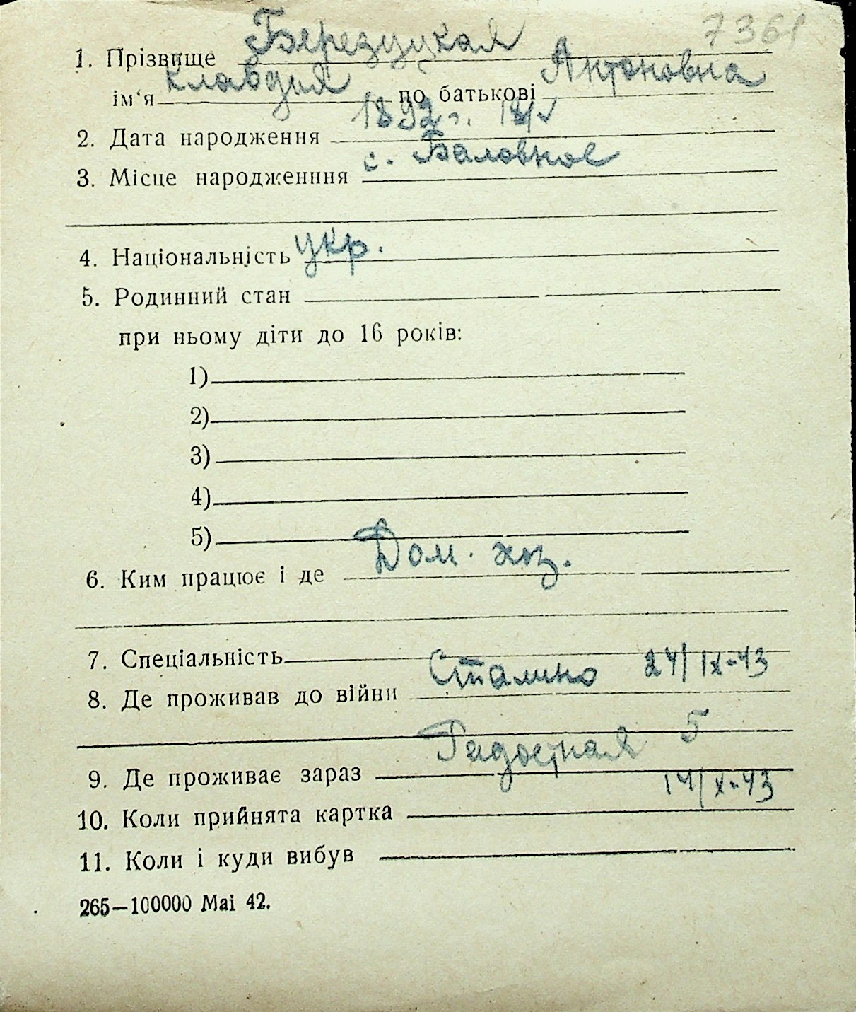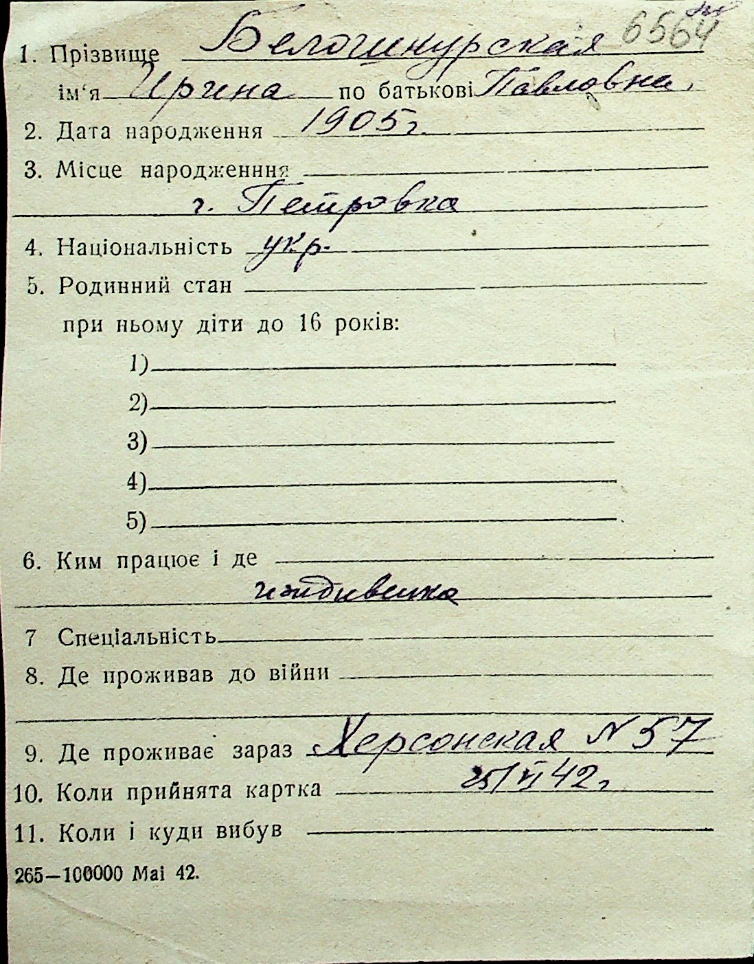 ◦ ◦ Перелік карток на осіб, які мешкали у м. Миколаїв у період окупації 1941–1944 років