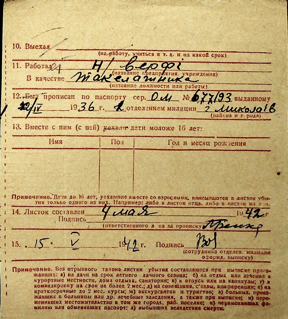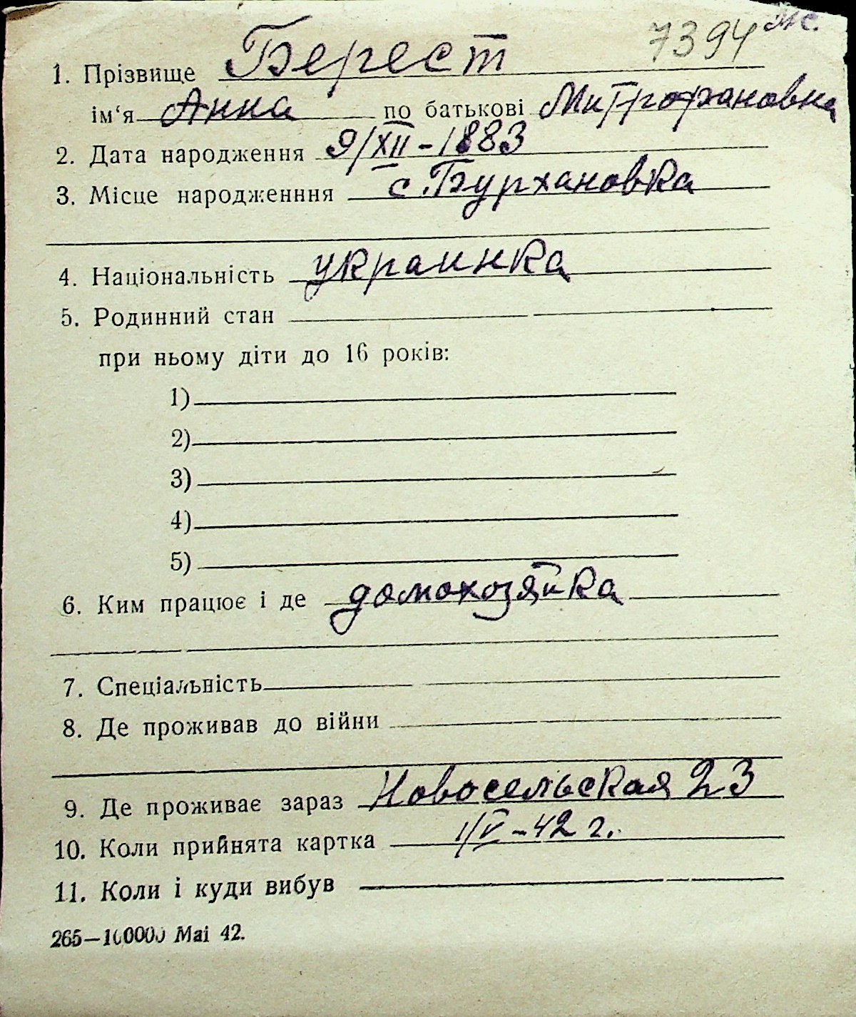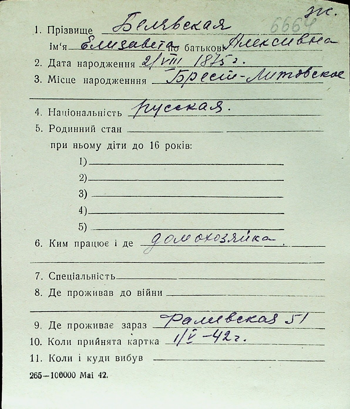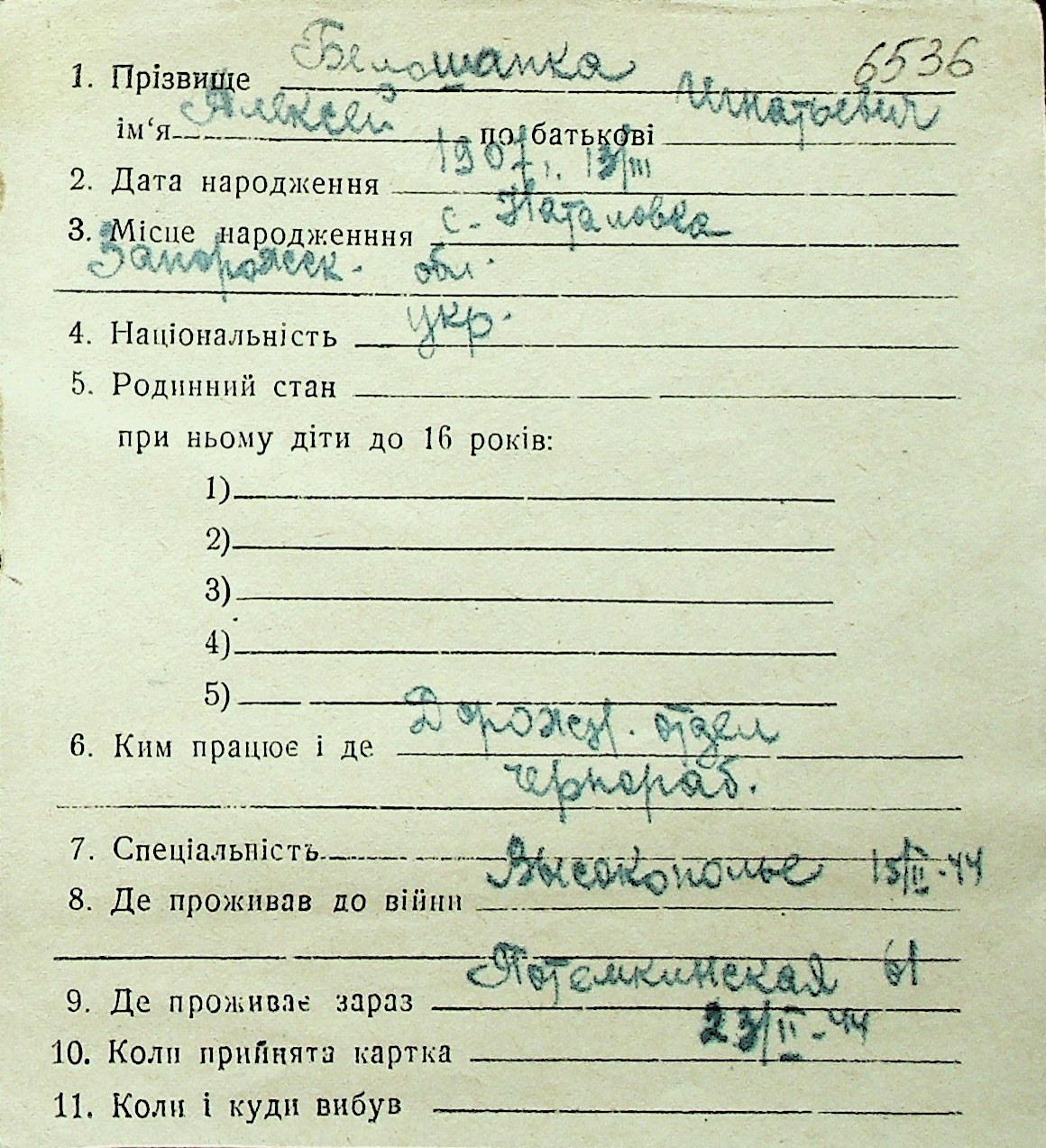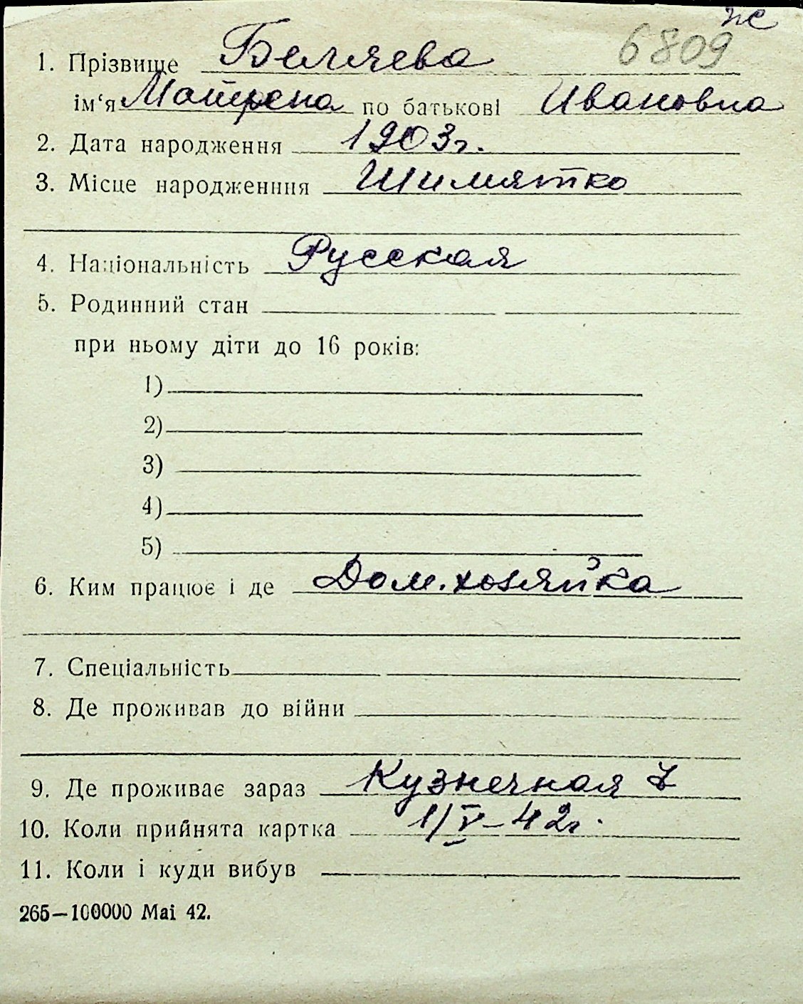 ◦ ◦ Перелік карток на осіб, які мешкали у м. Миколаїв у період окупації 1941–1944 років