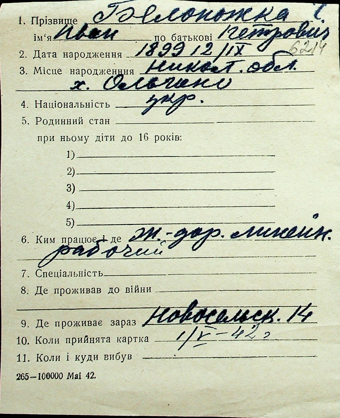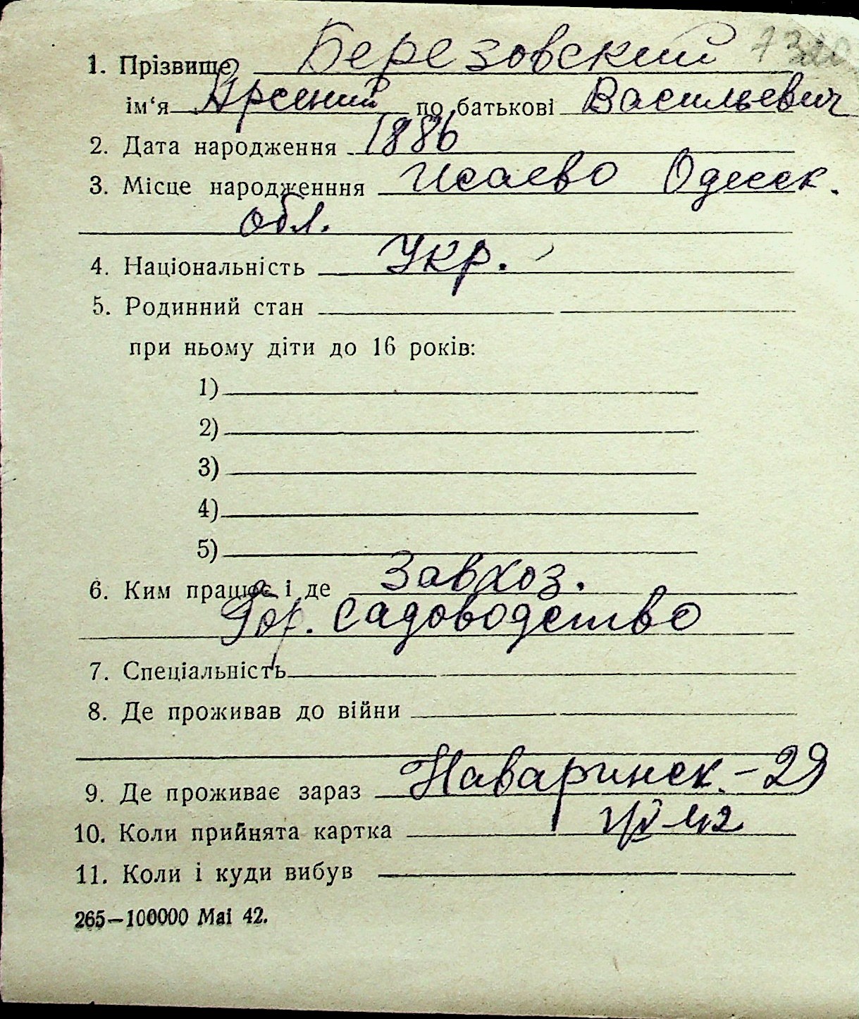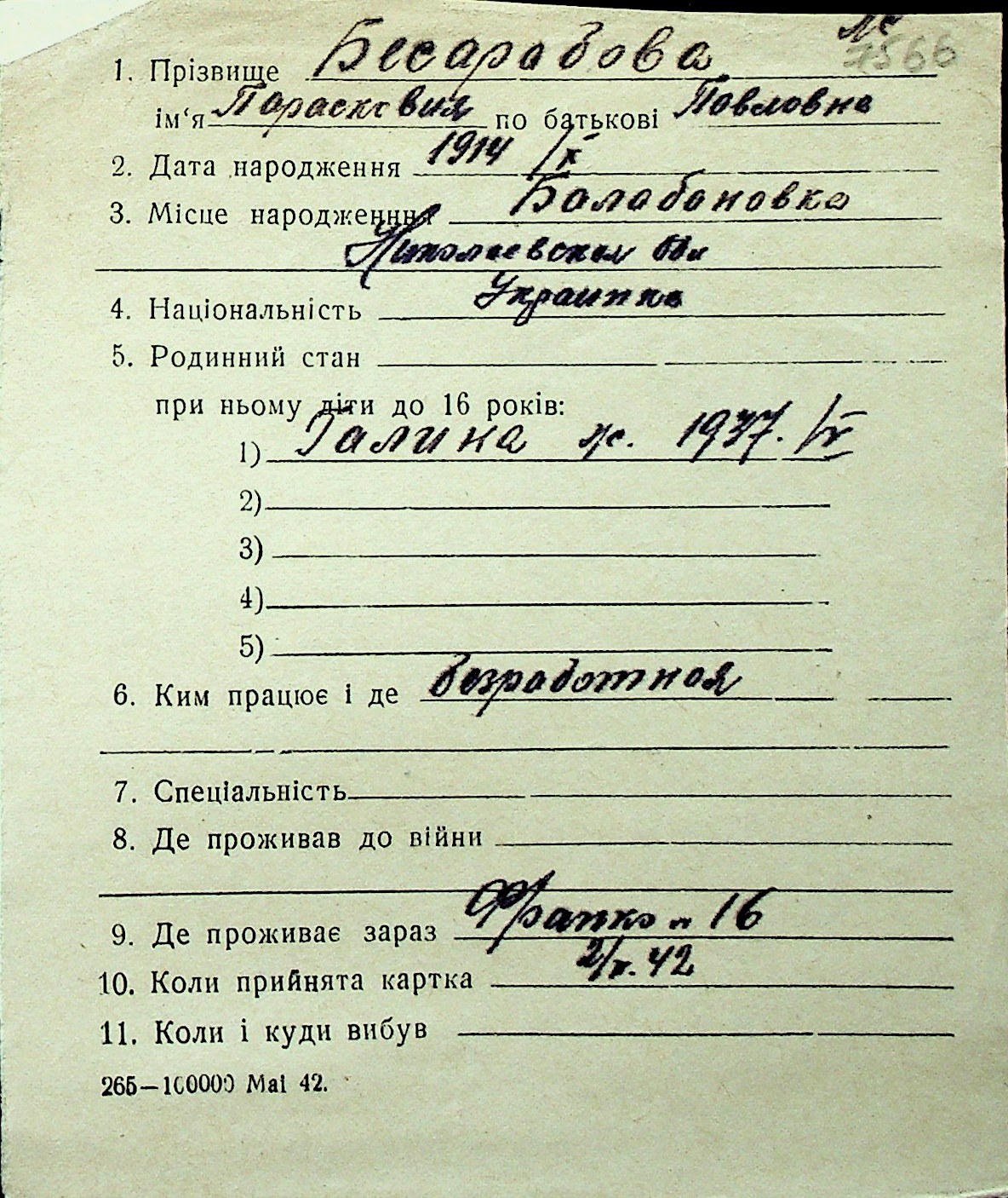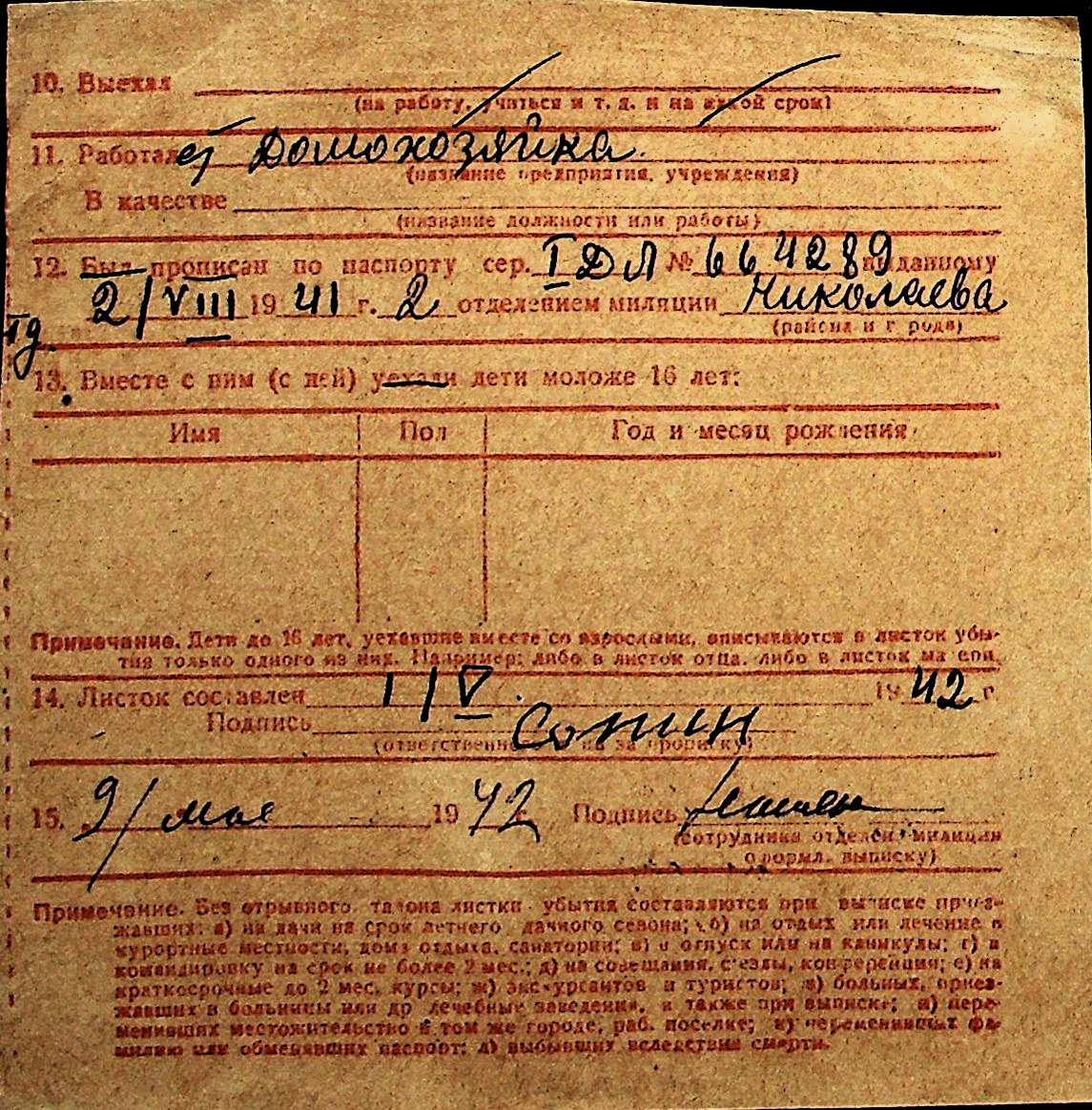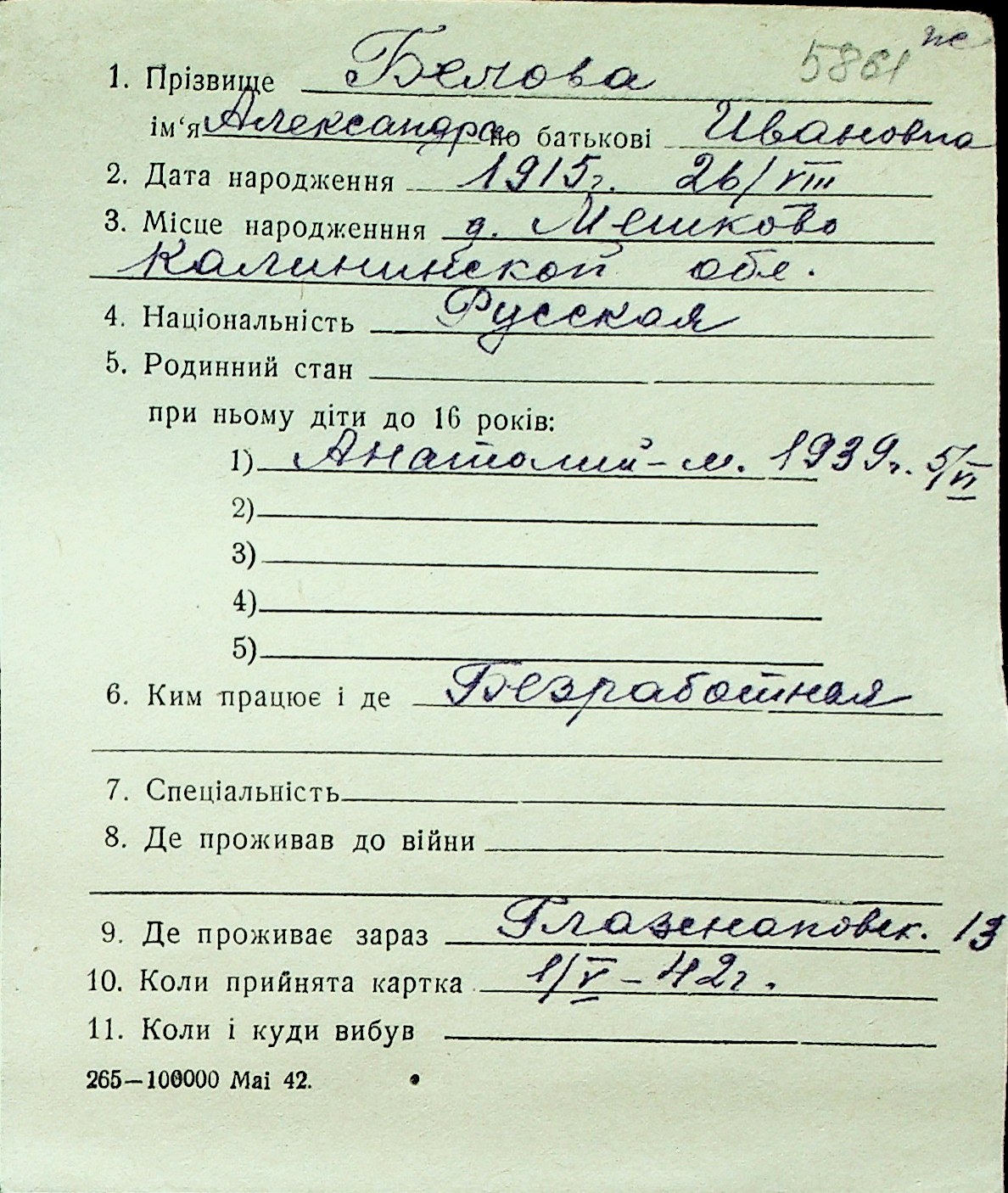 ◦ ◦ Перелік карток на осіб, які мешкали у м. Миколаїв у період окупації 1941–1944 років