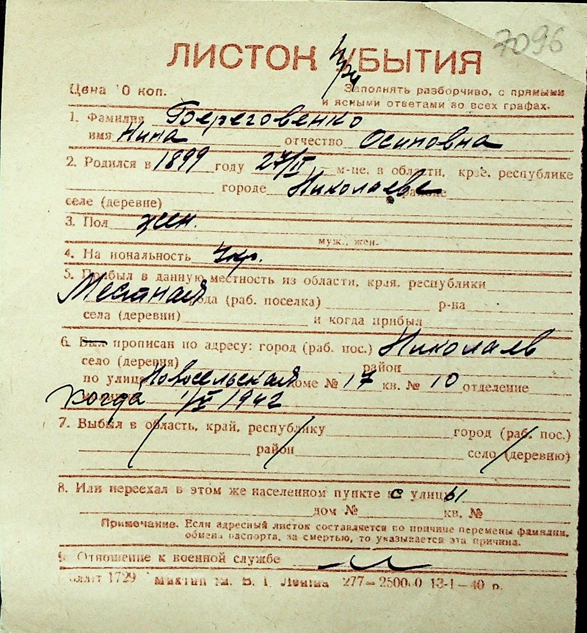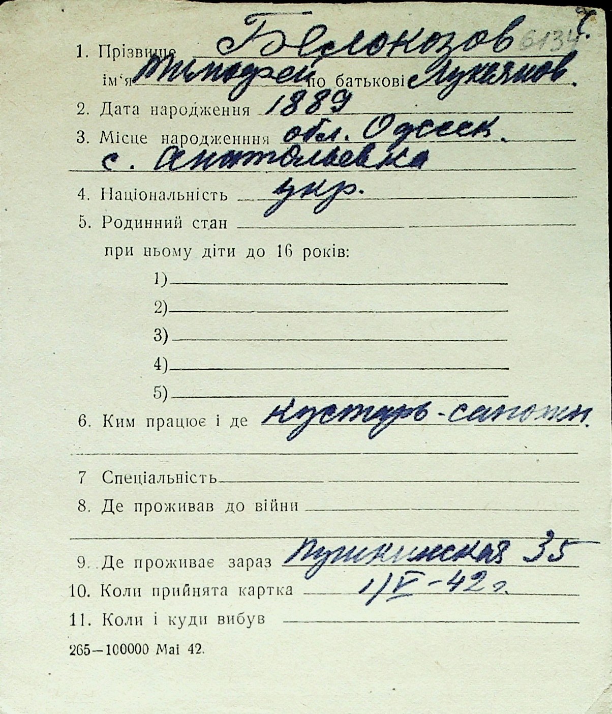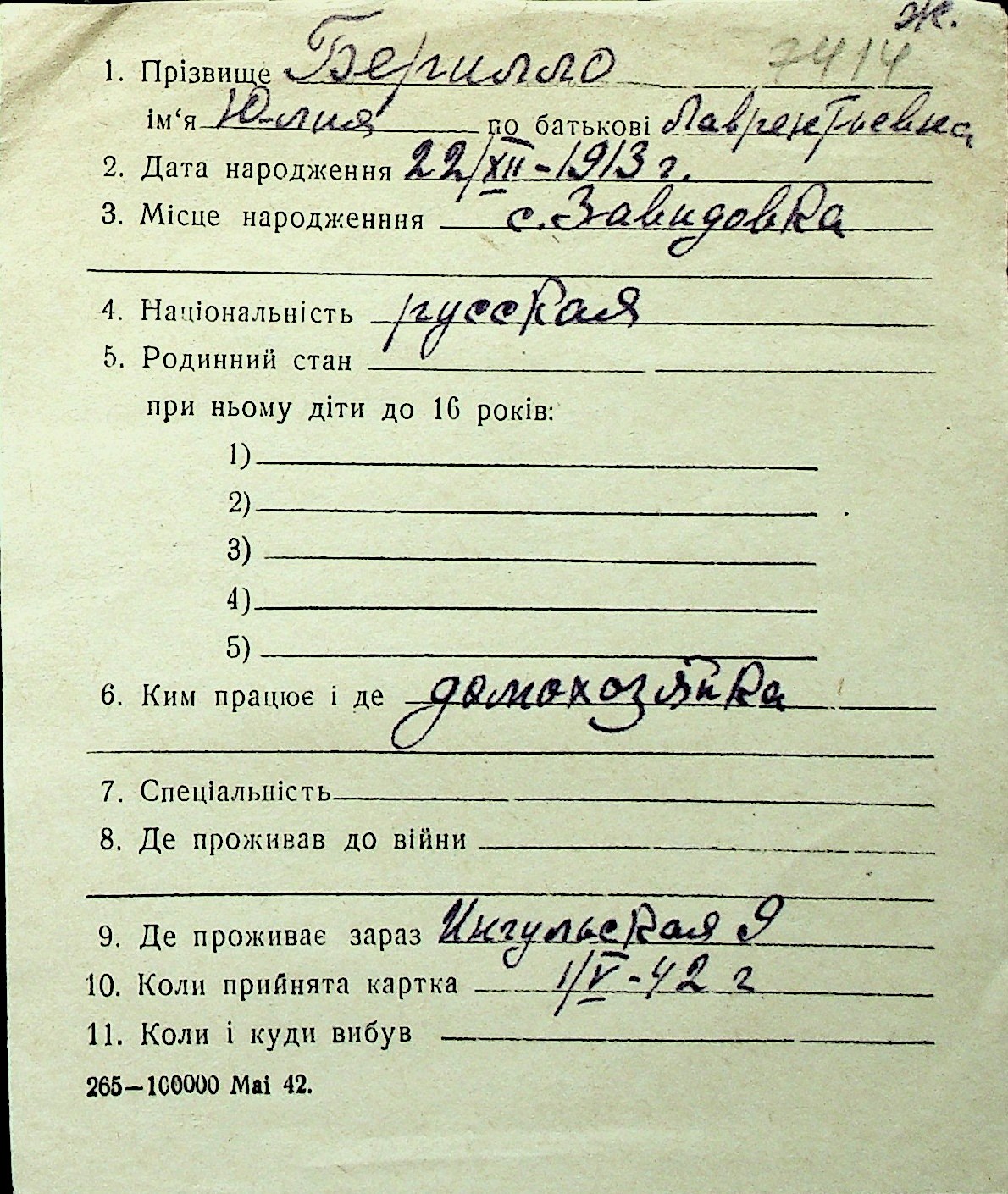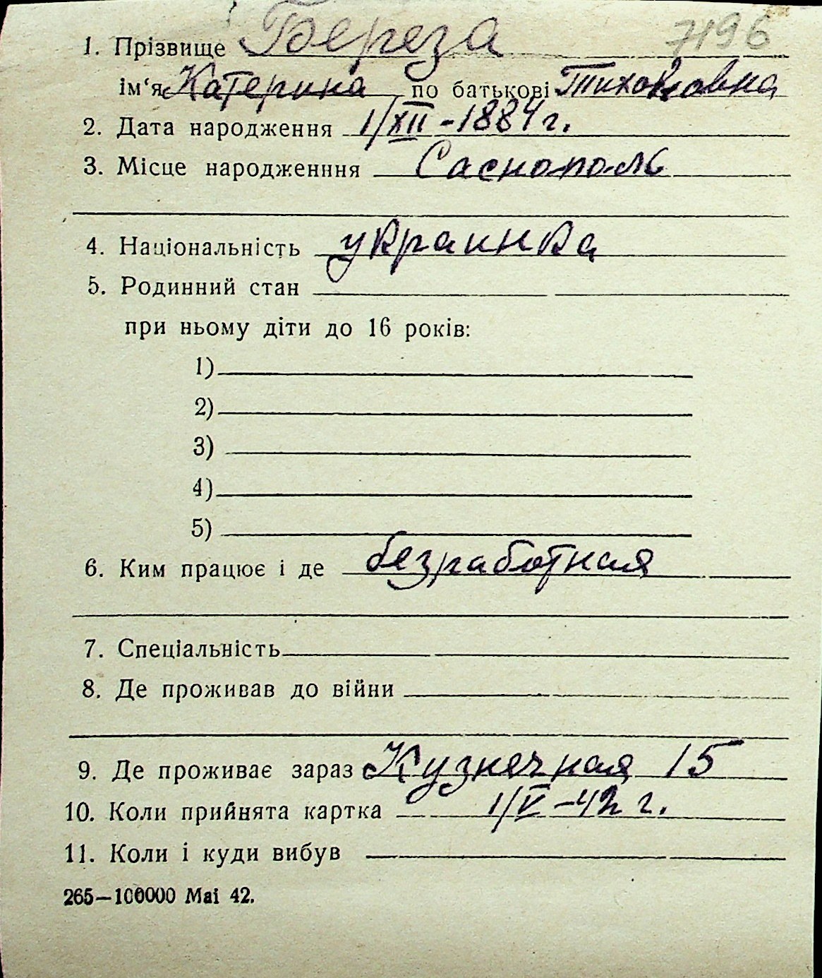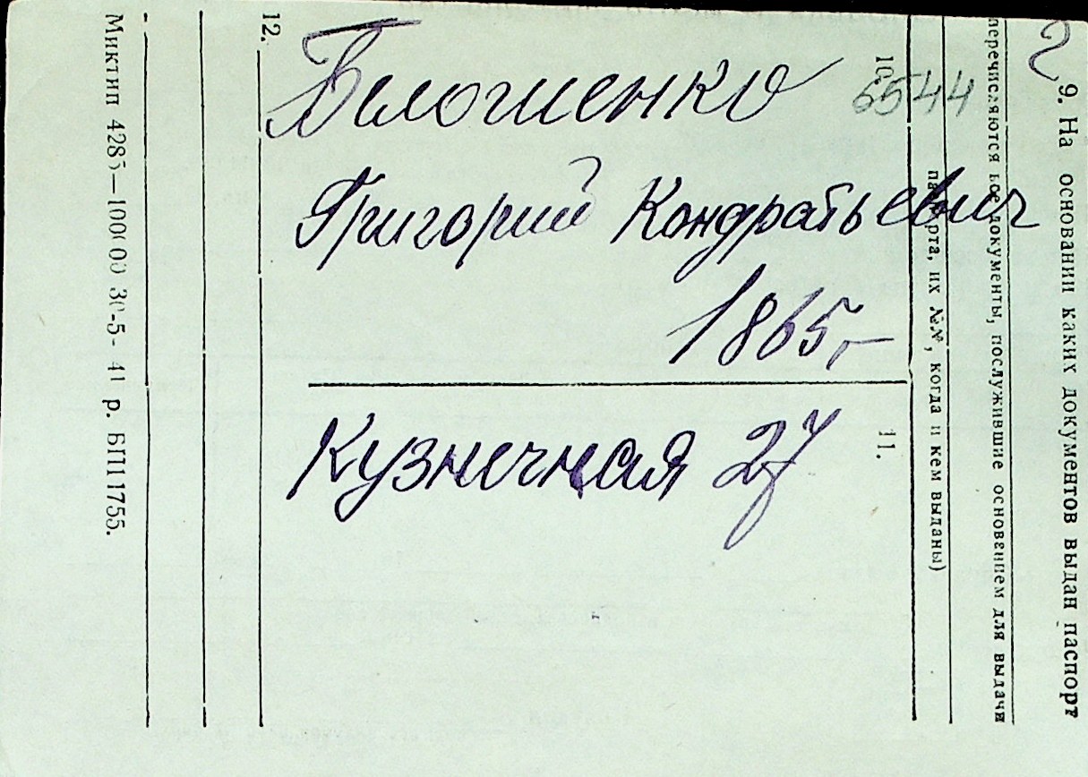 ◦ ◦ Перелік карток на осіб, які мешкали у м. Миколаїв у період окупації 1941–1944 років