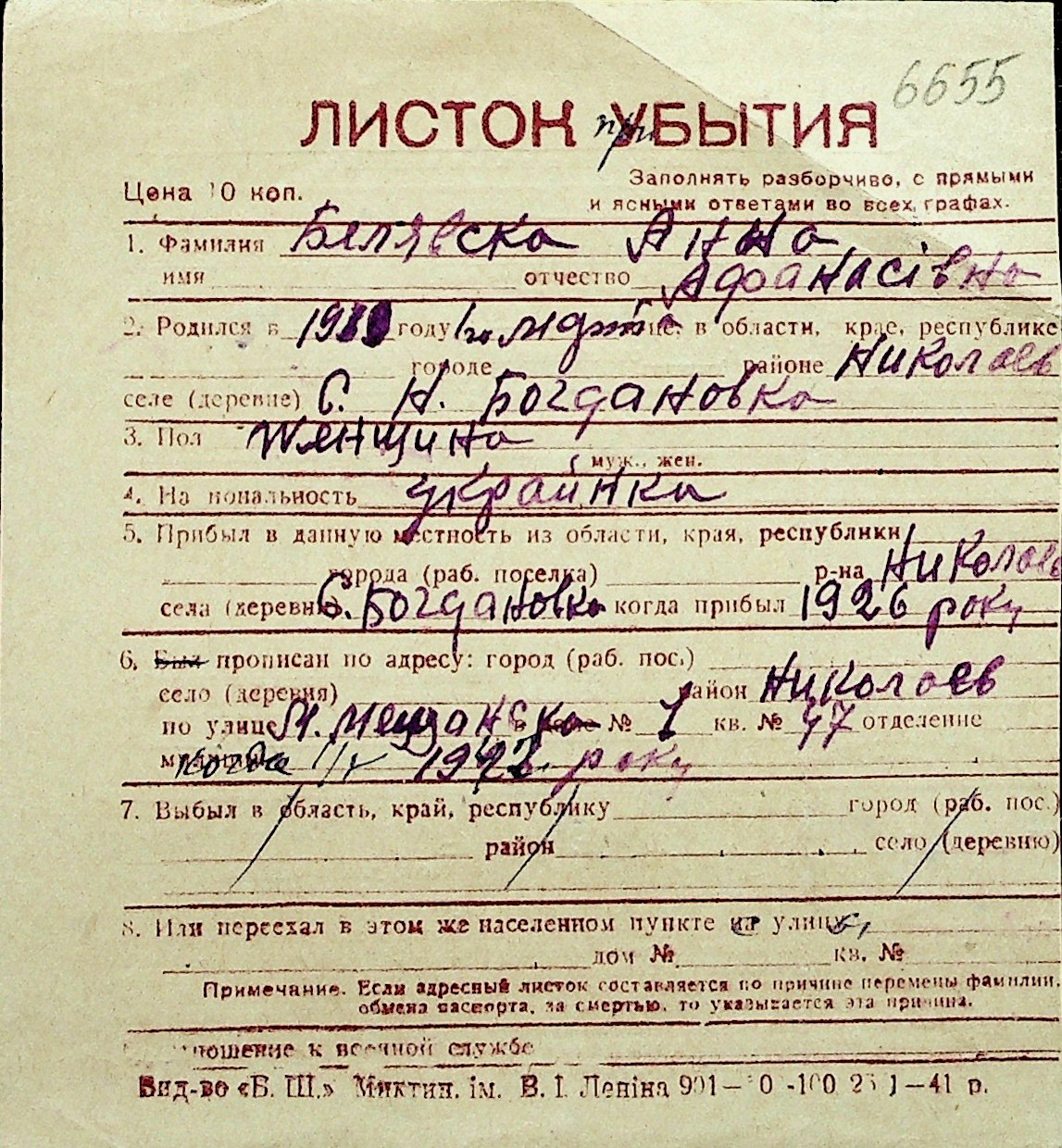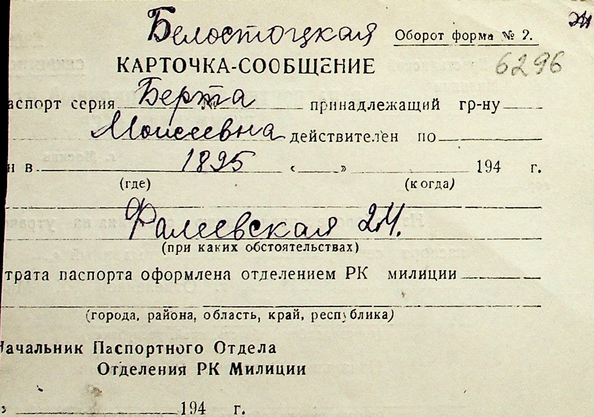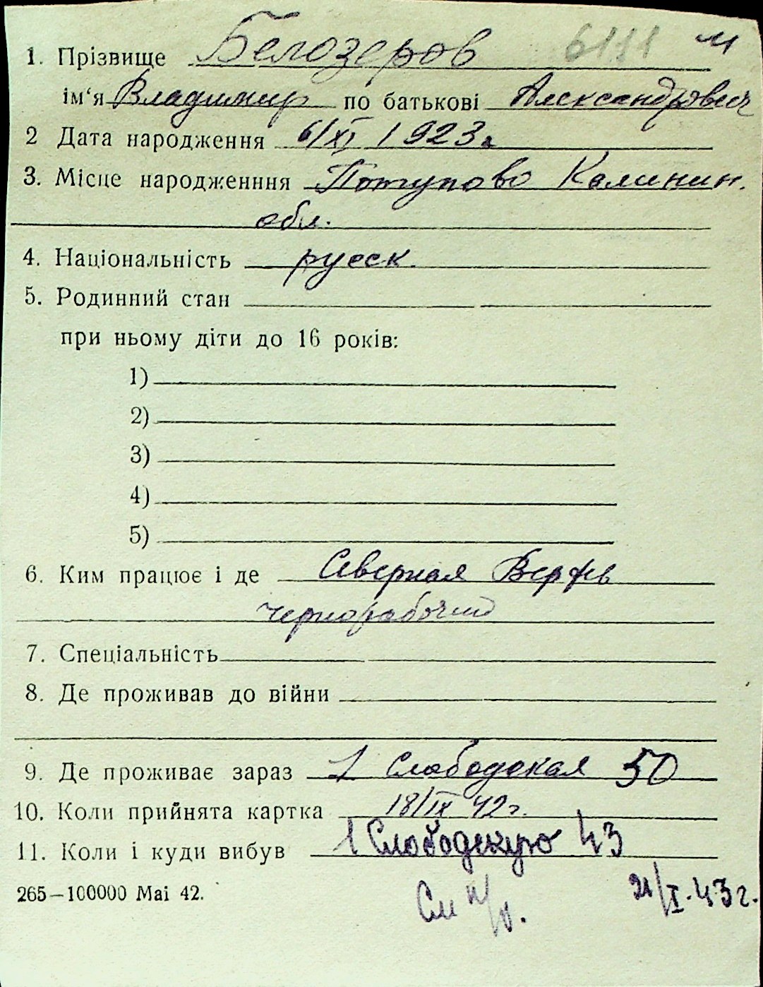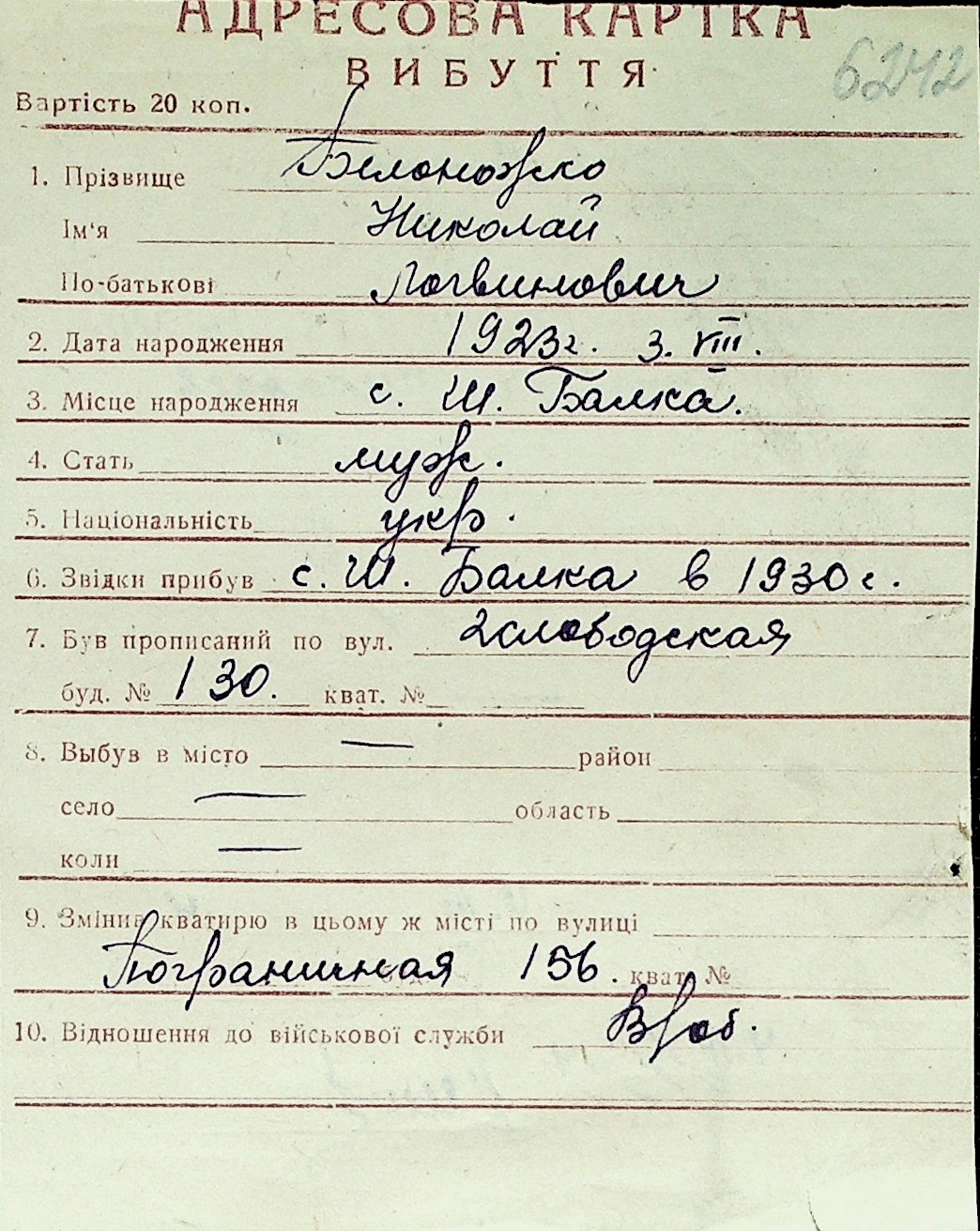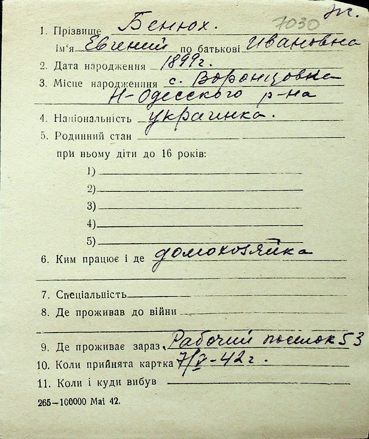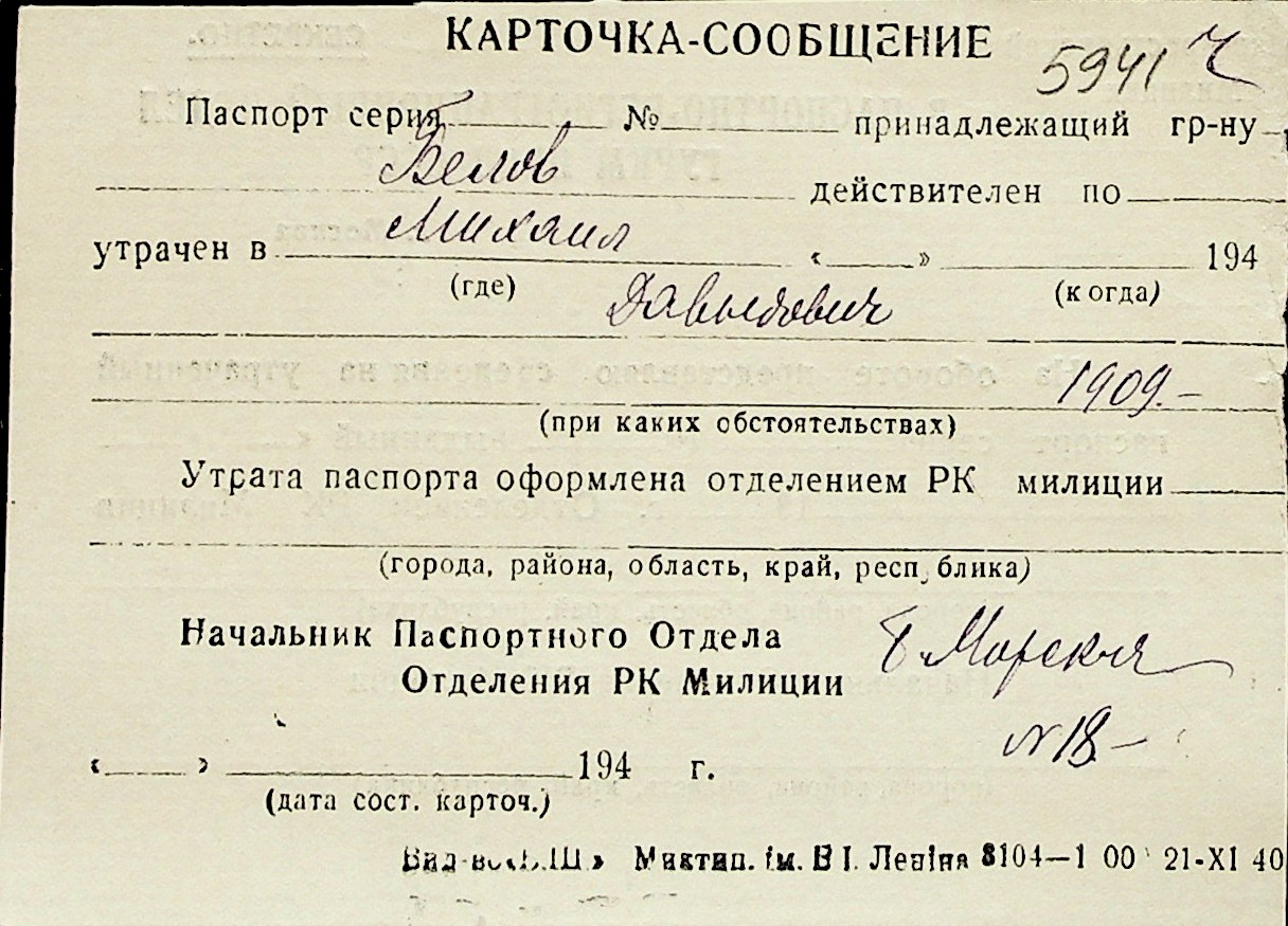 ◦ ◦ Перелік карток на осіб, які мешкали у м. Миколаїв у період окупації 1941–1944 років