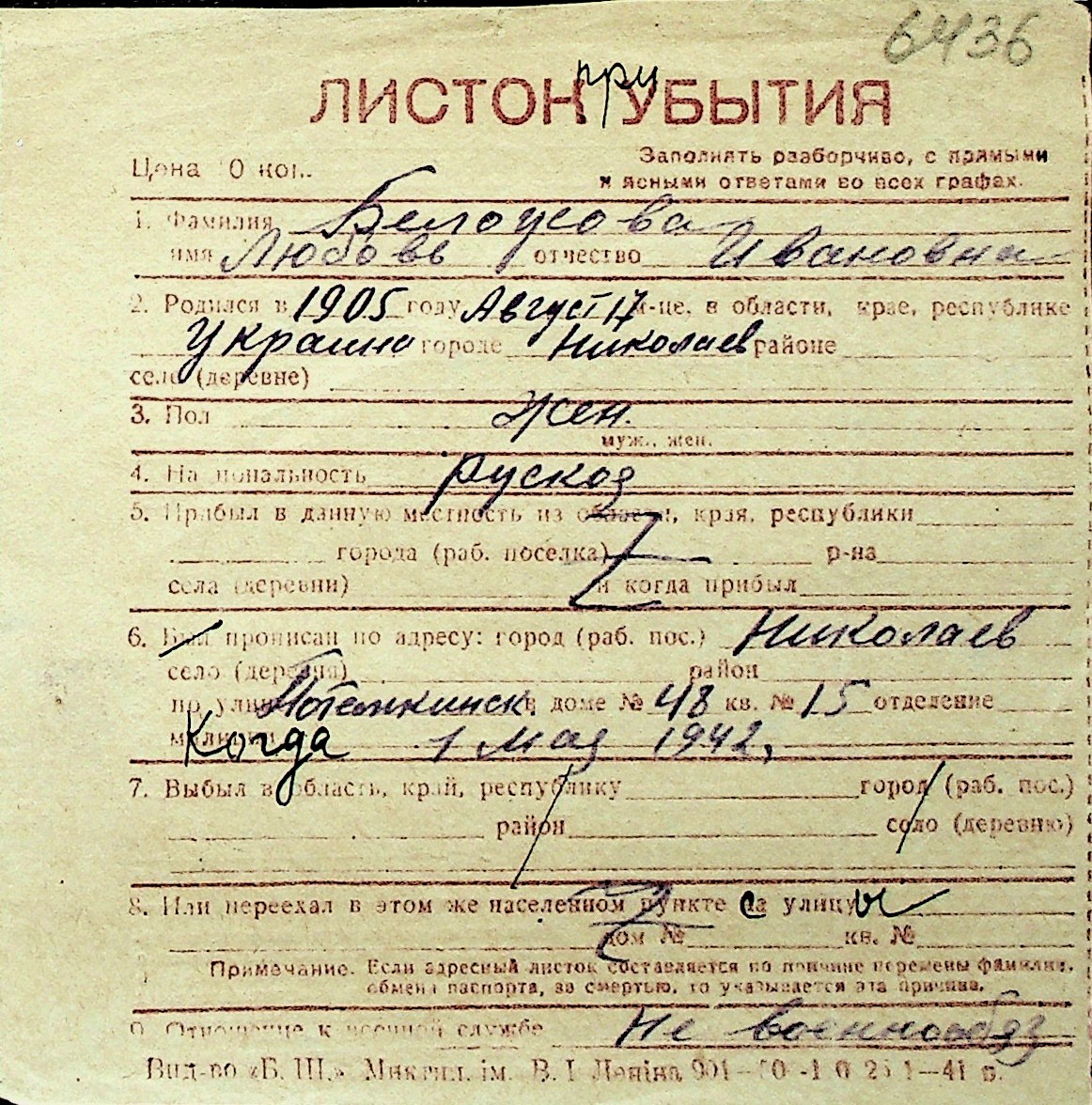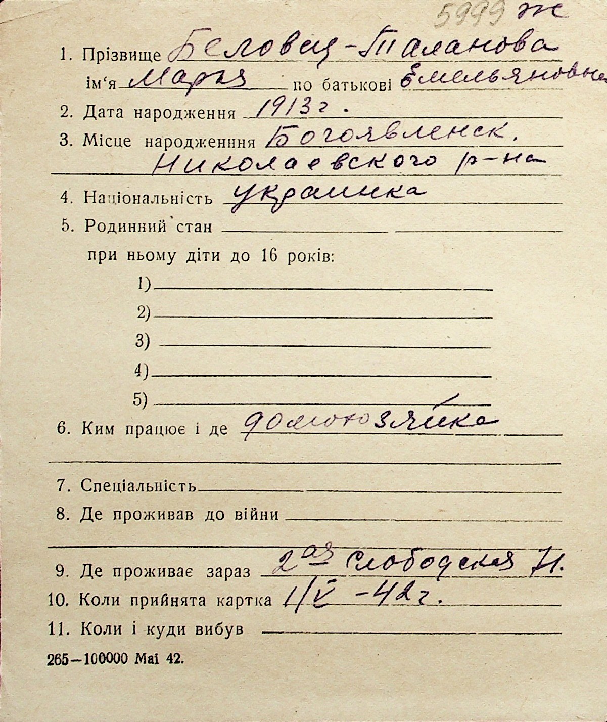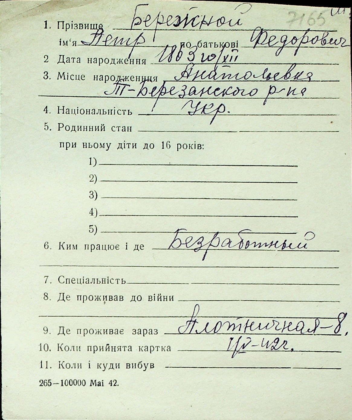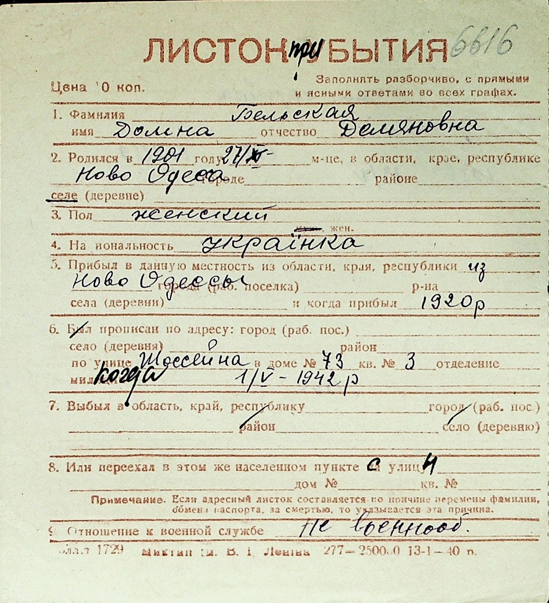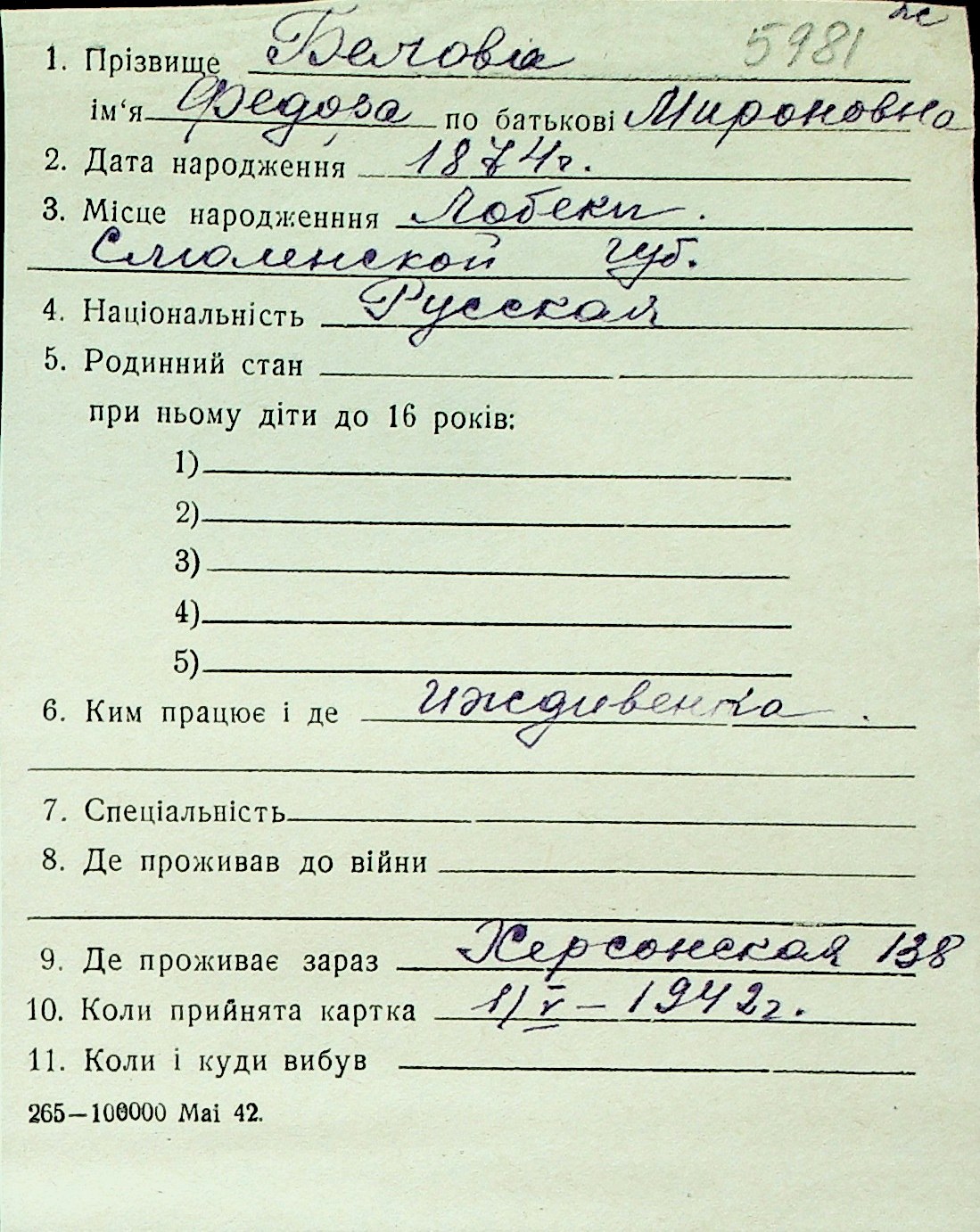 ◦ ◦ Перелік карток на осіб, які мешкали у м. Миколаїв у період окупації 1941–1944 років
