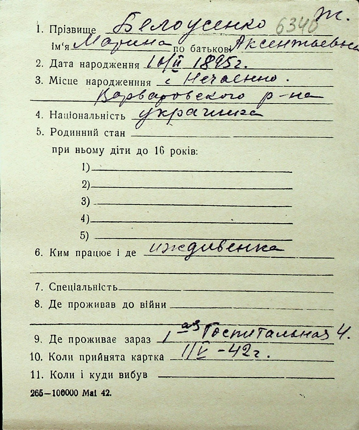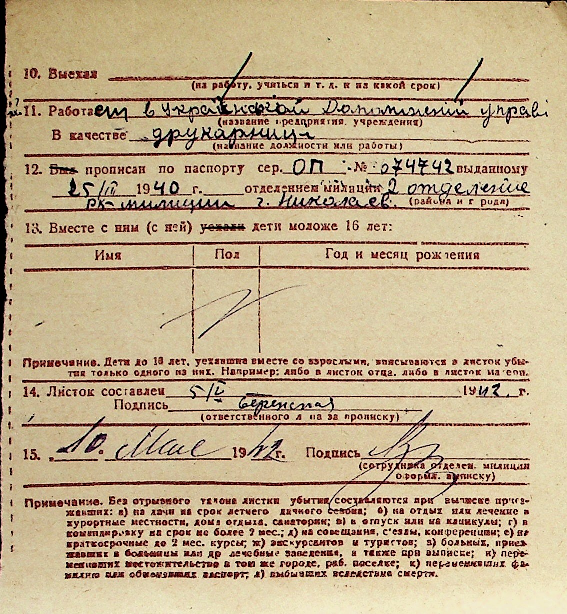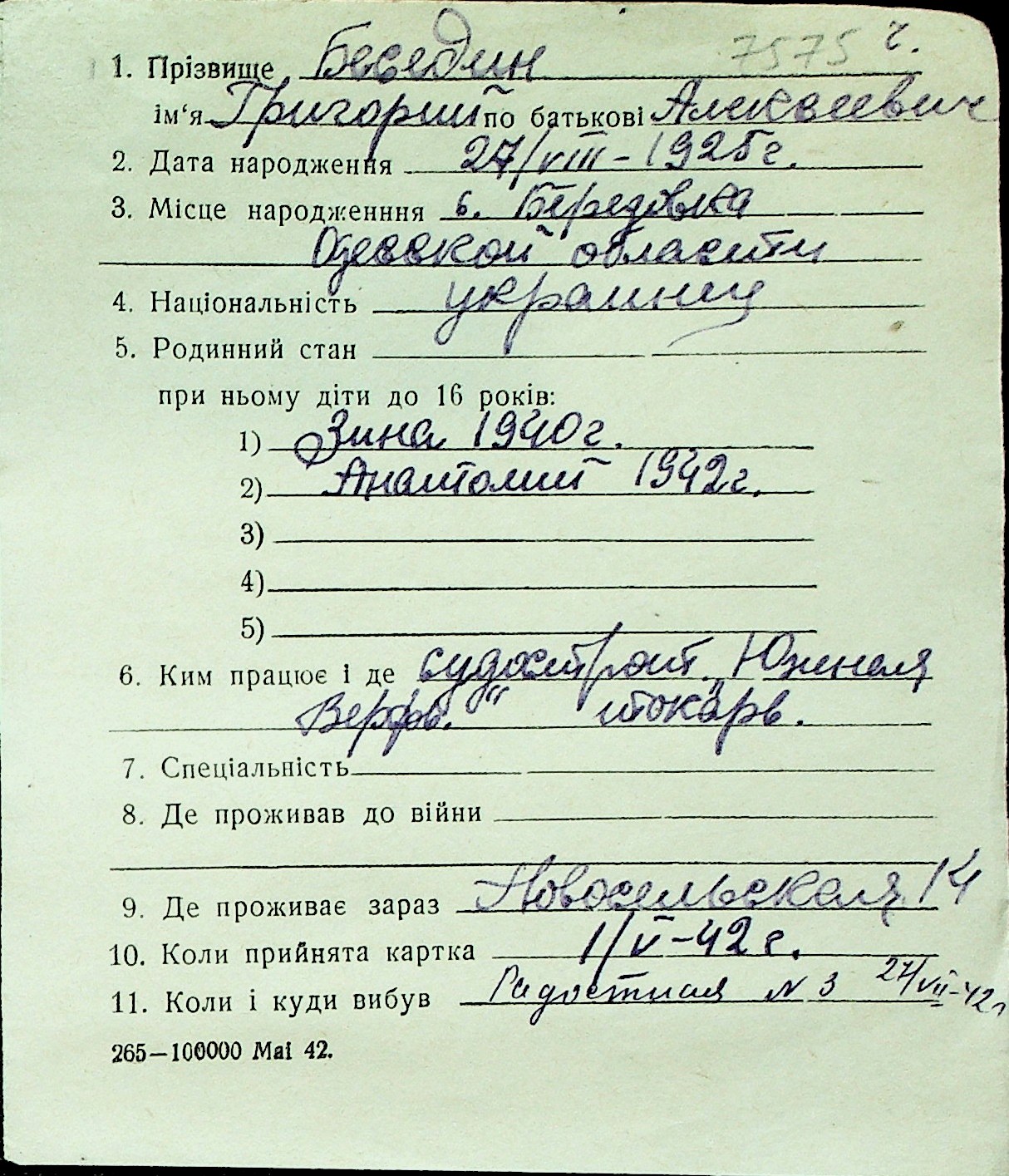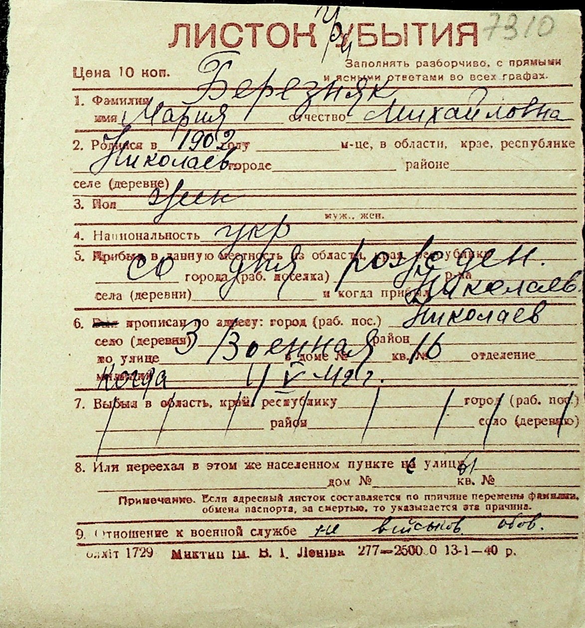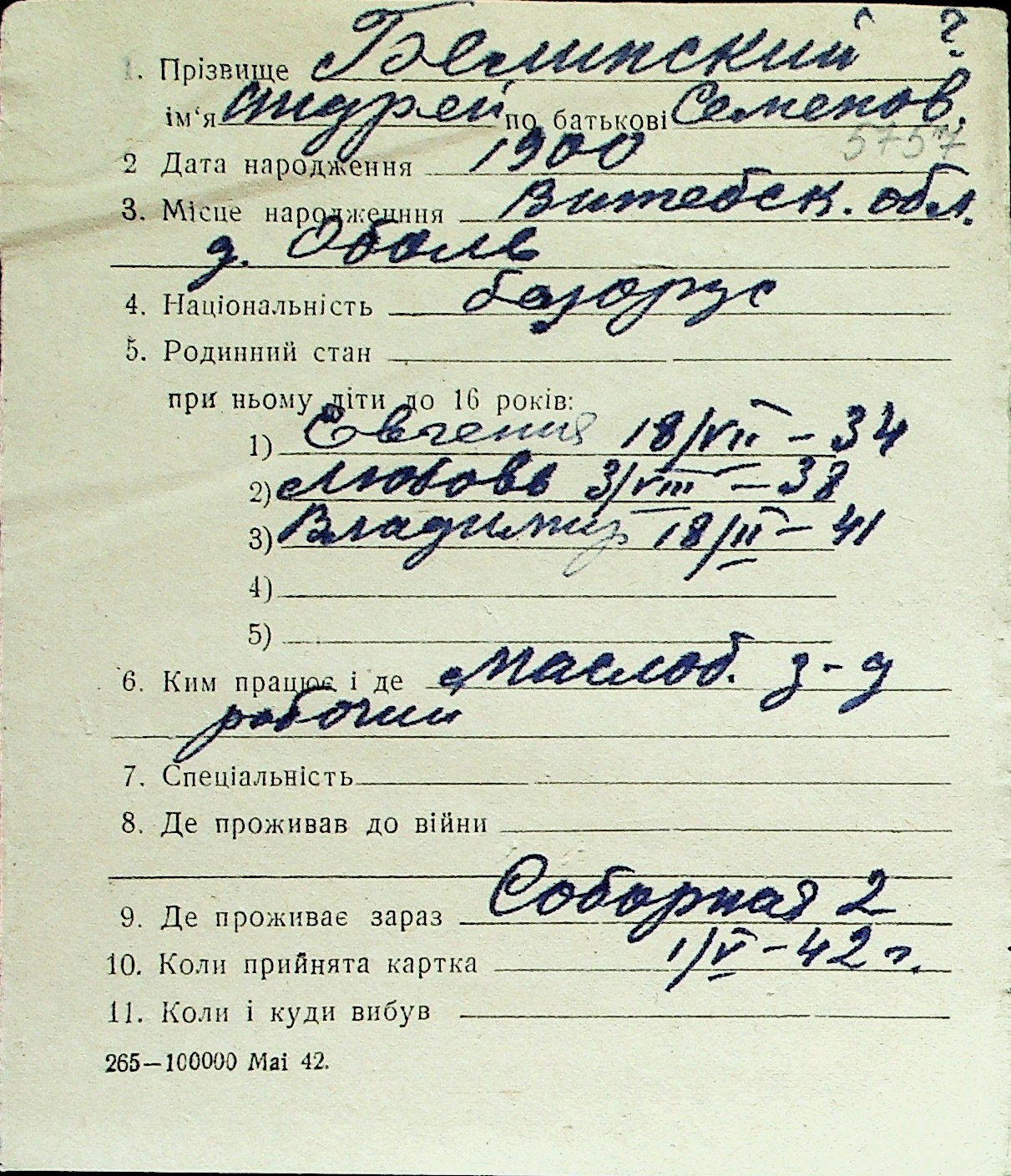 ◦ ◦ Перелік карток на осіб, які мешкали у м. Миколаїв у період окупації 1941–1944 років