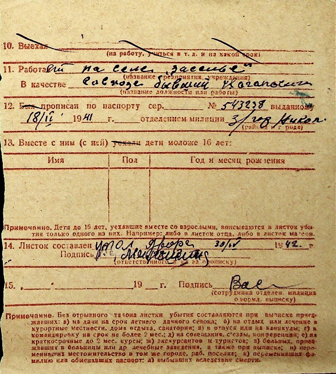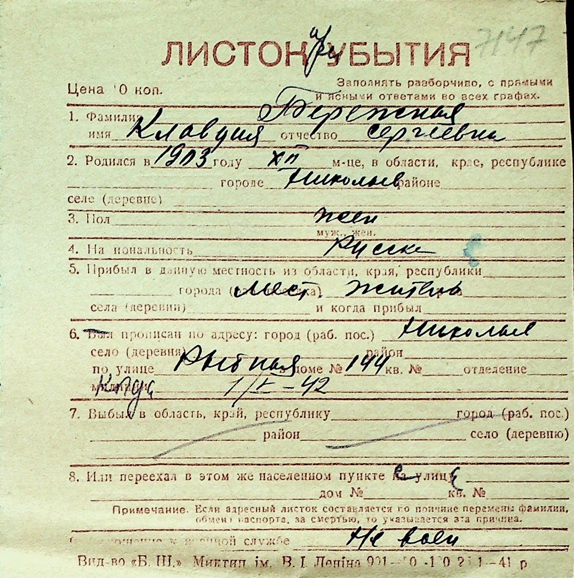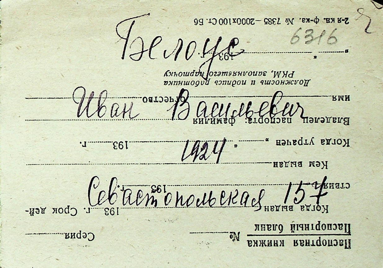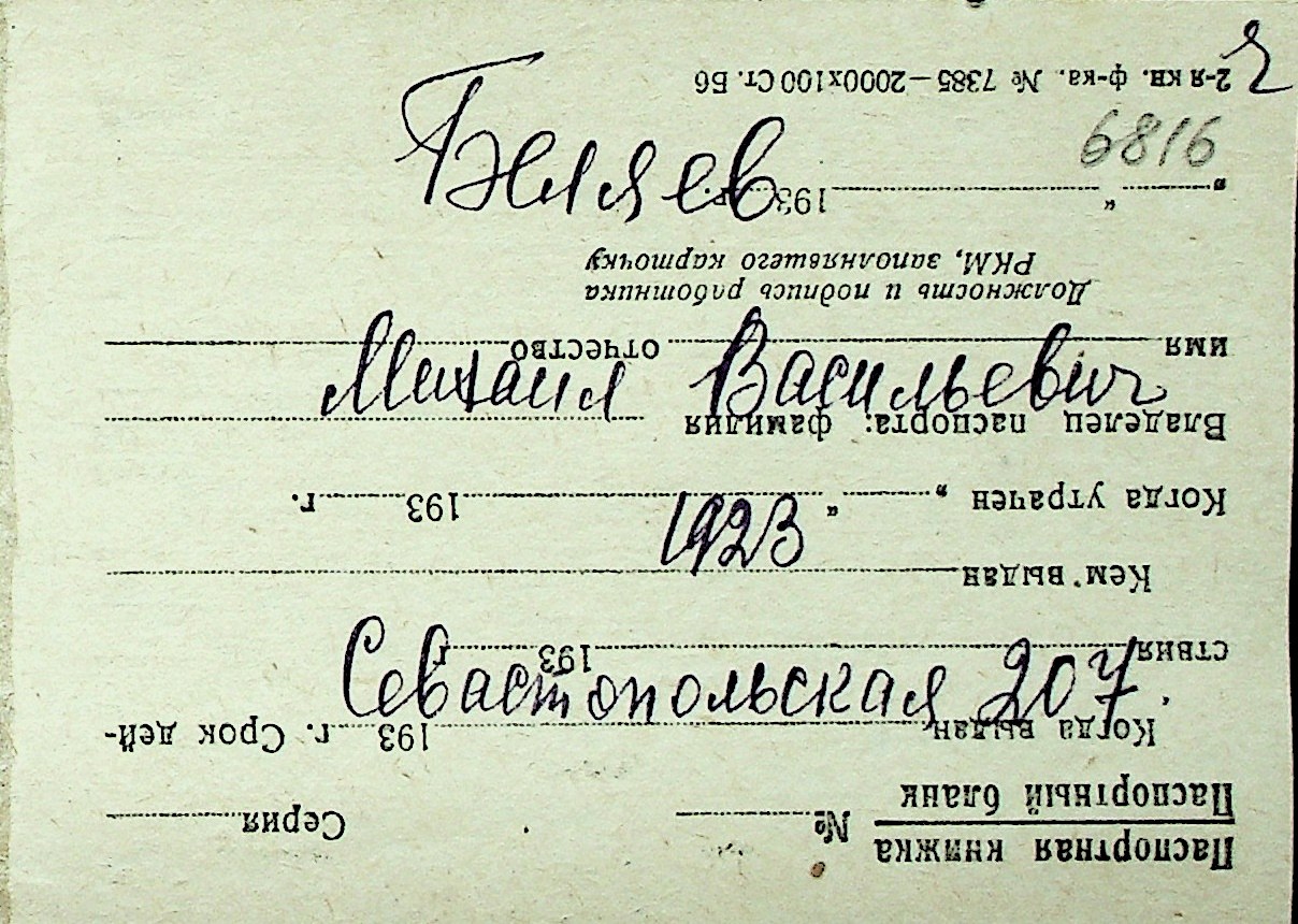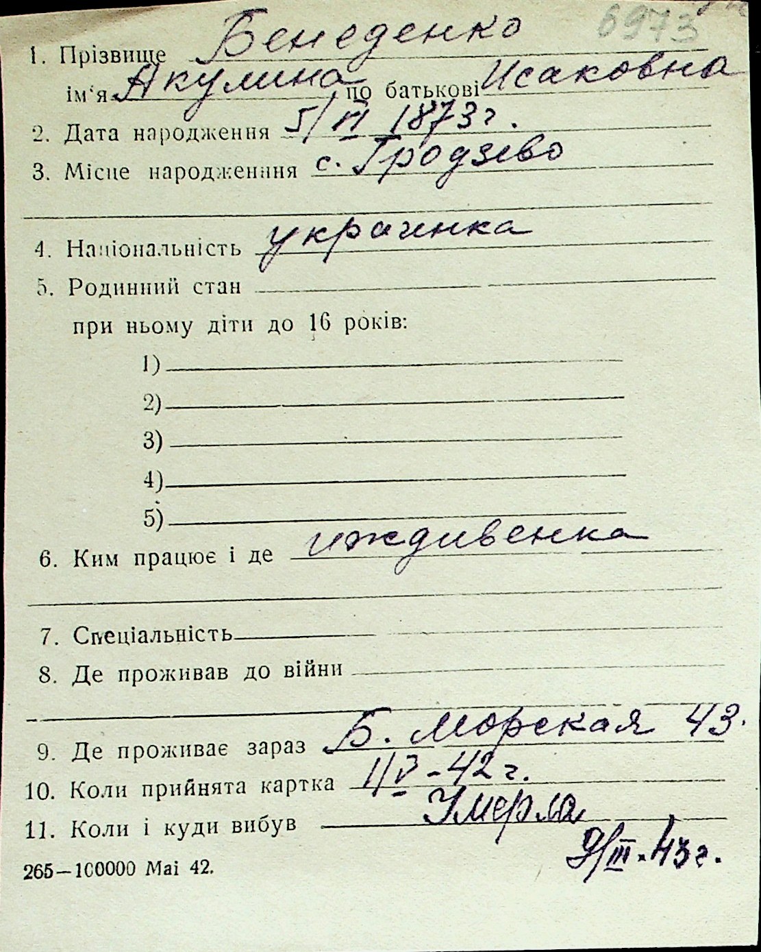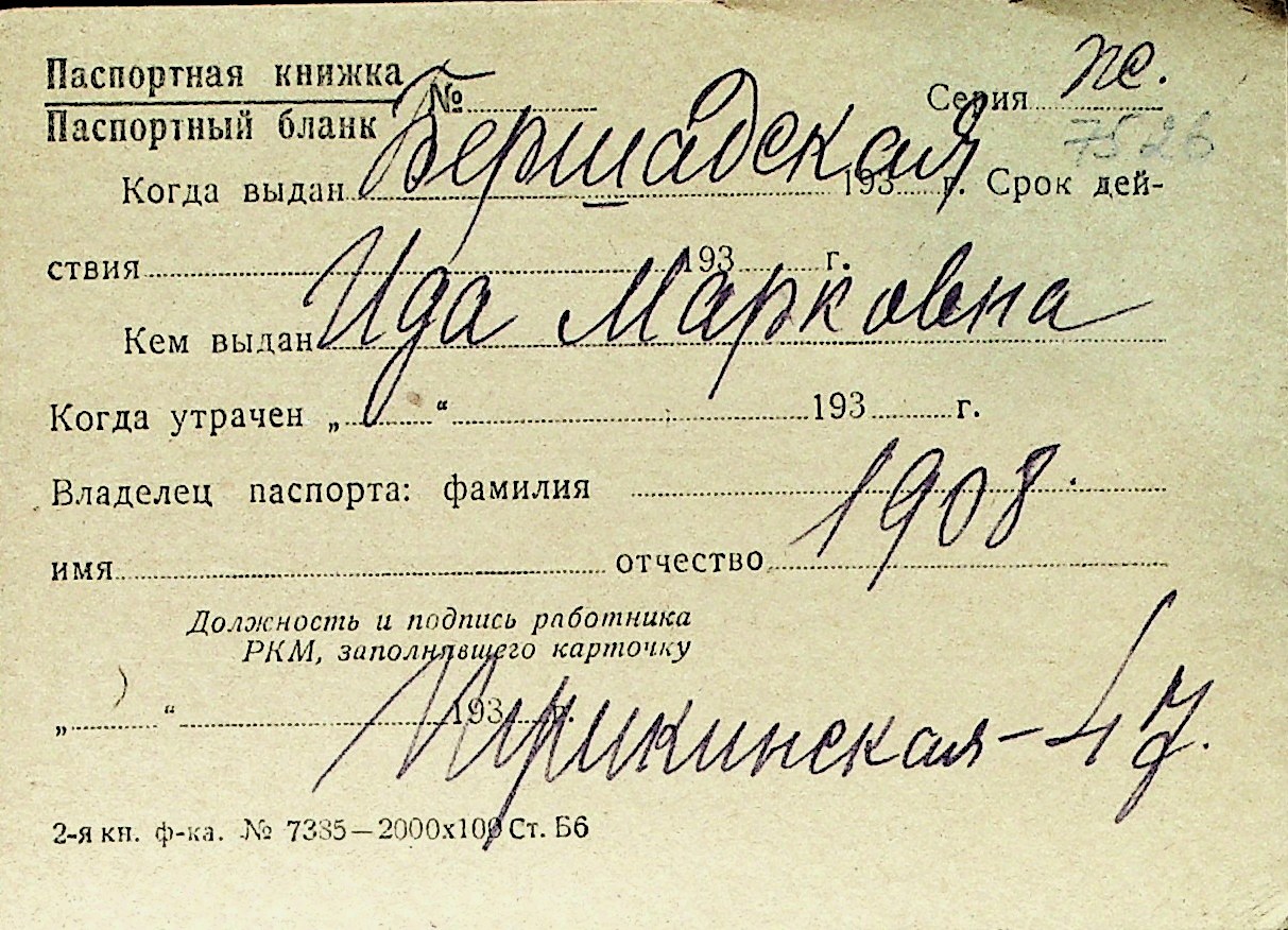 ◦ ◦ Перелік карток на осіб, які мешкали у м. Миколаїв у період окупації 1941–1944 років