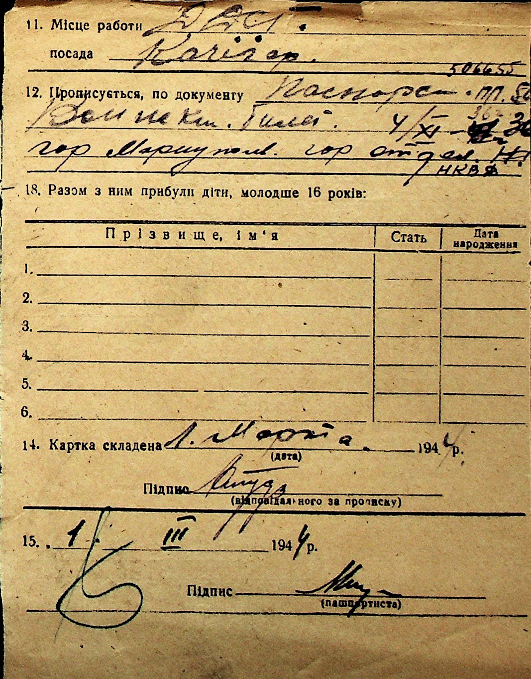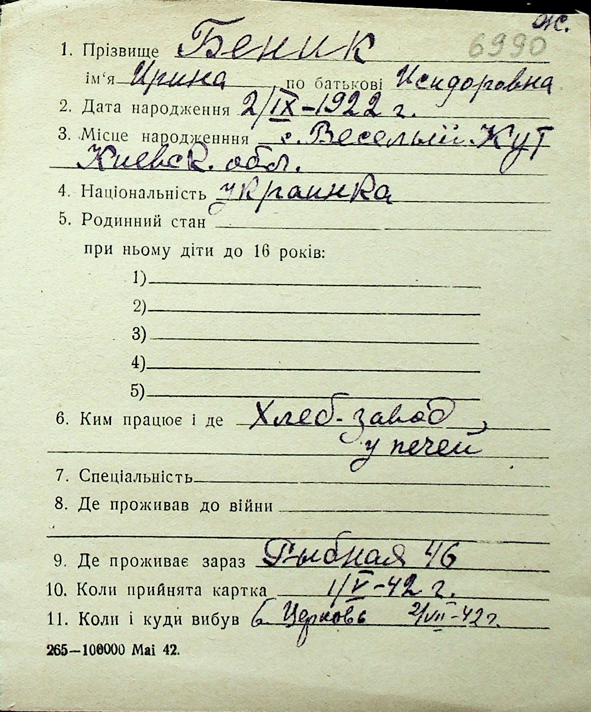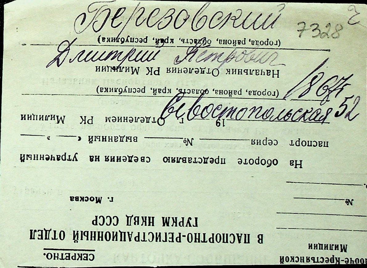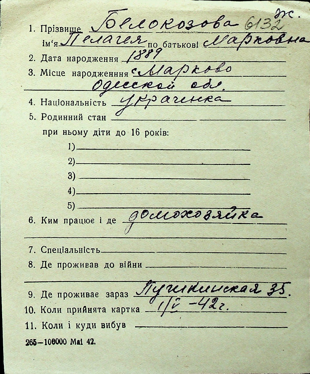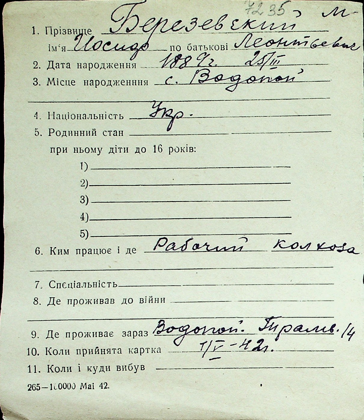 ◦ ◦ Перелік карток на осіб, які мешкали у м. Миколаїв у період окупації 1941–1944 років