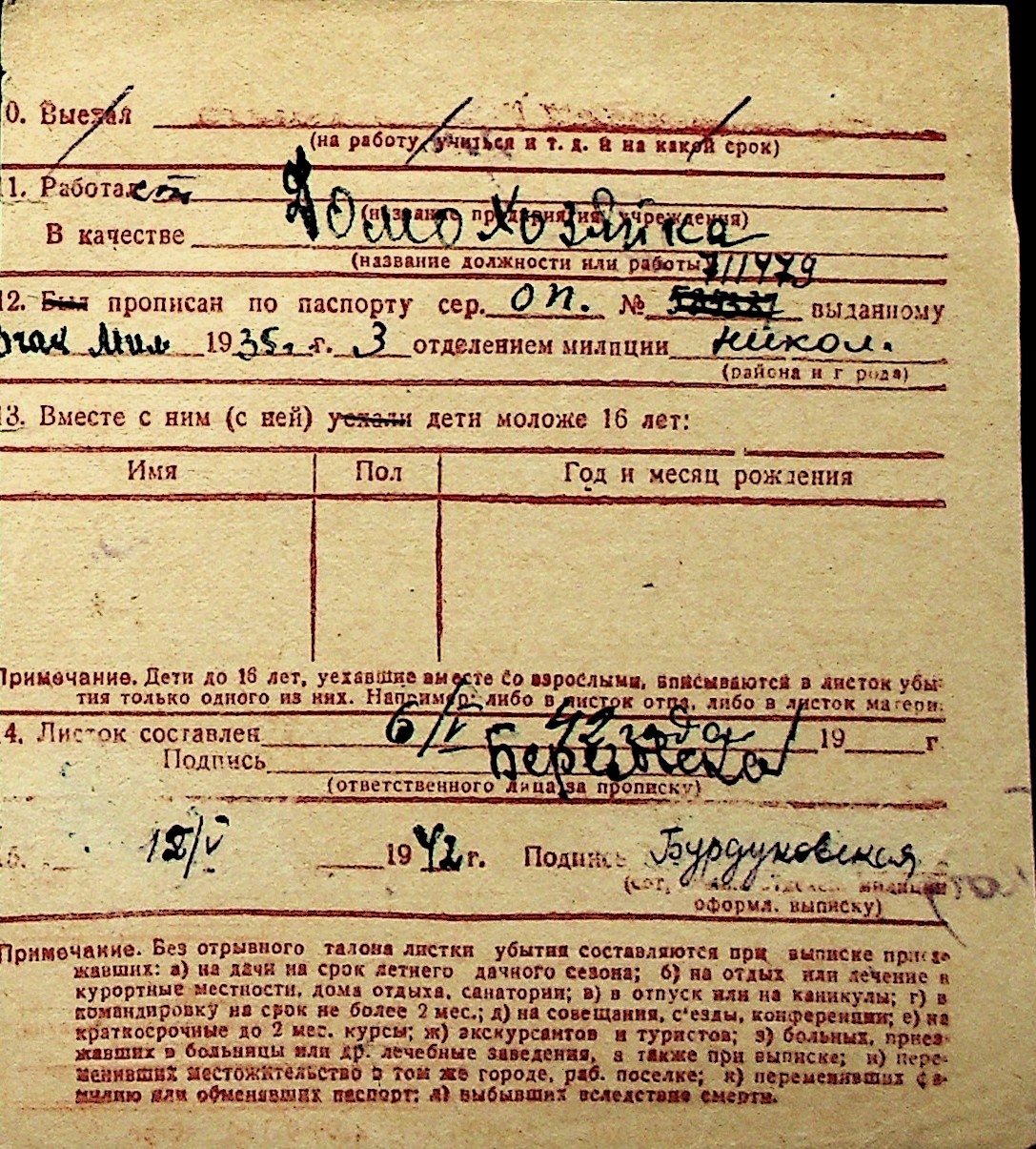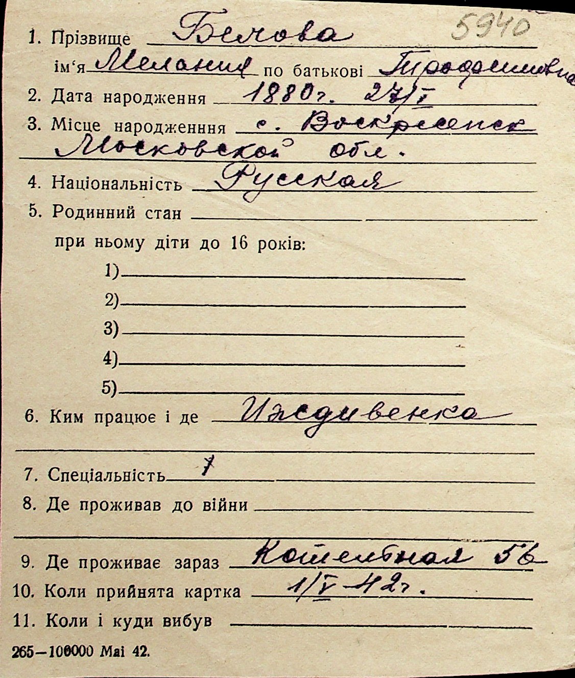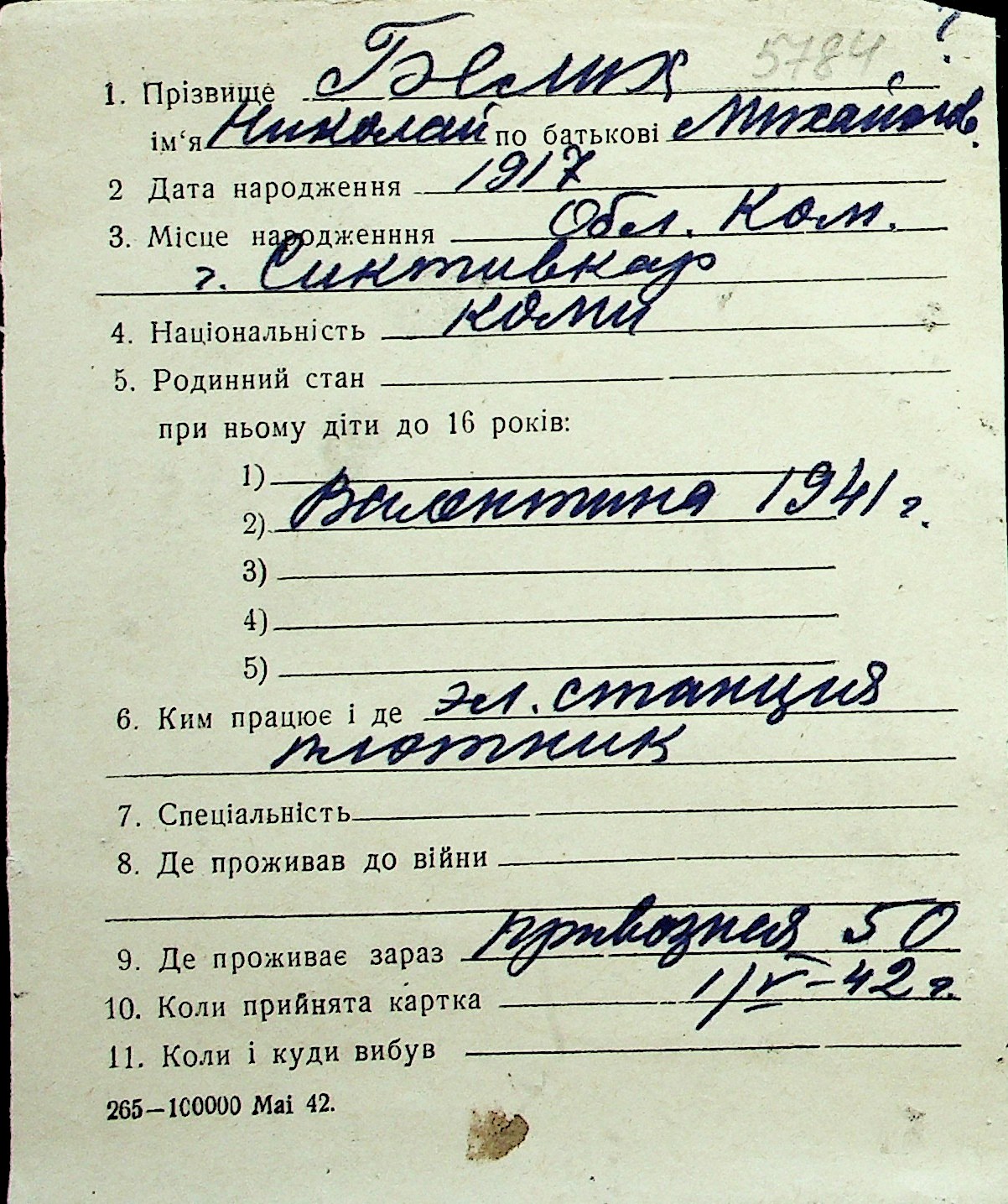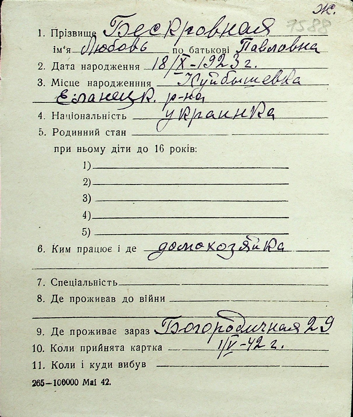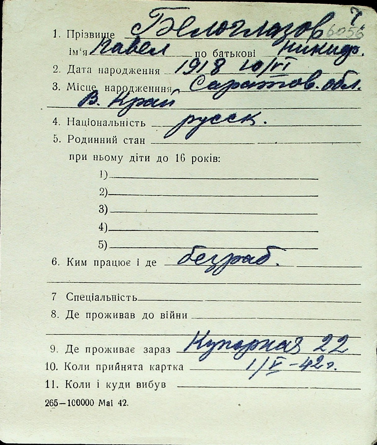 ◦ ◦ Перелік карток на осіб, які мешкали у м. Миколаїв у період окупації 1941–1944 років