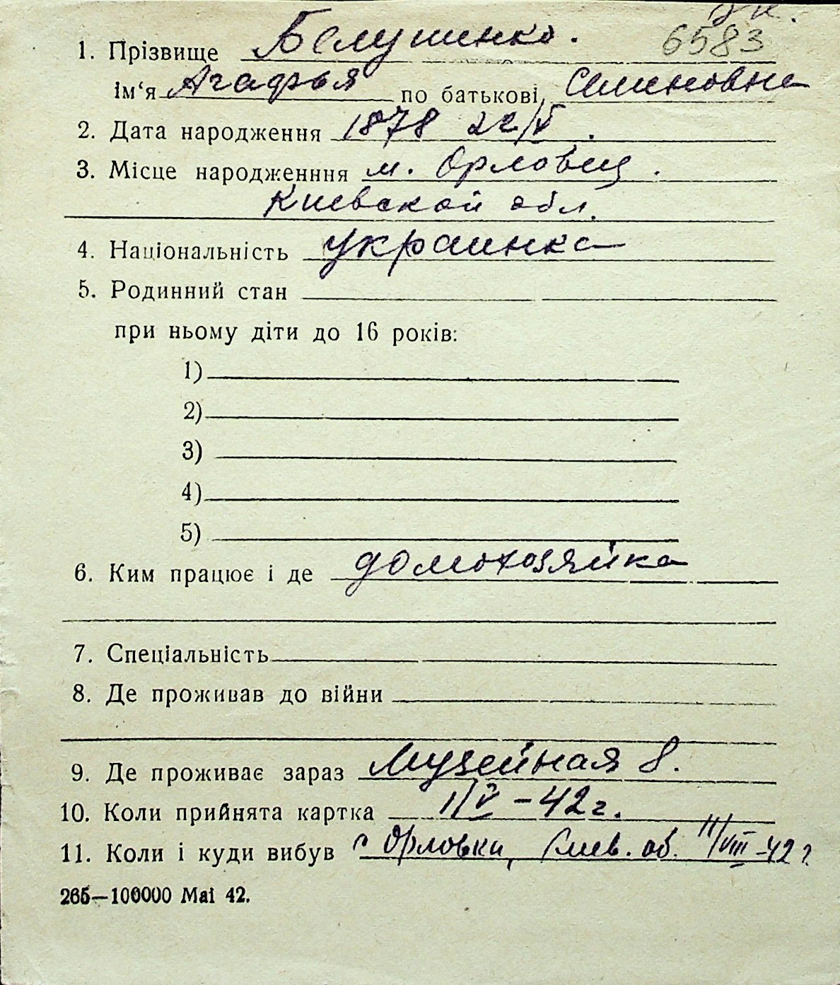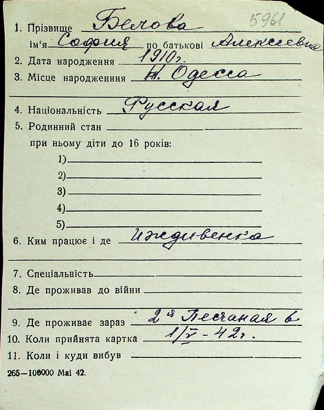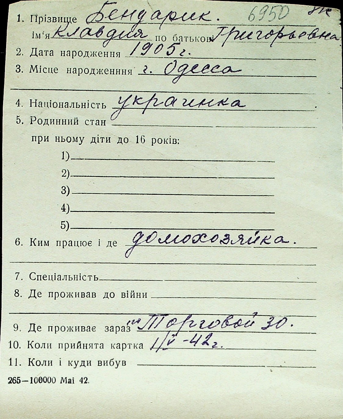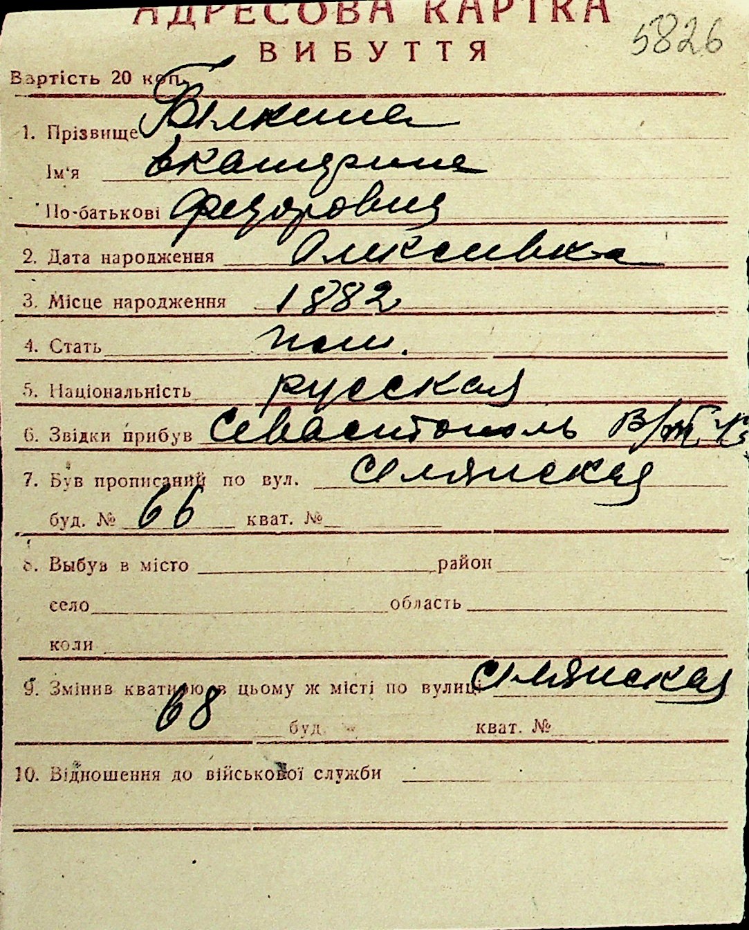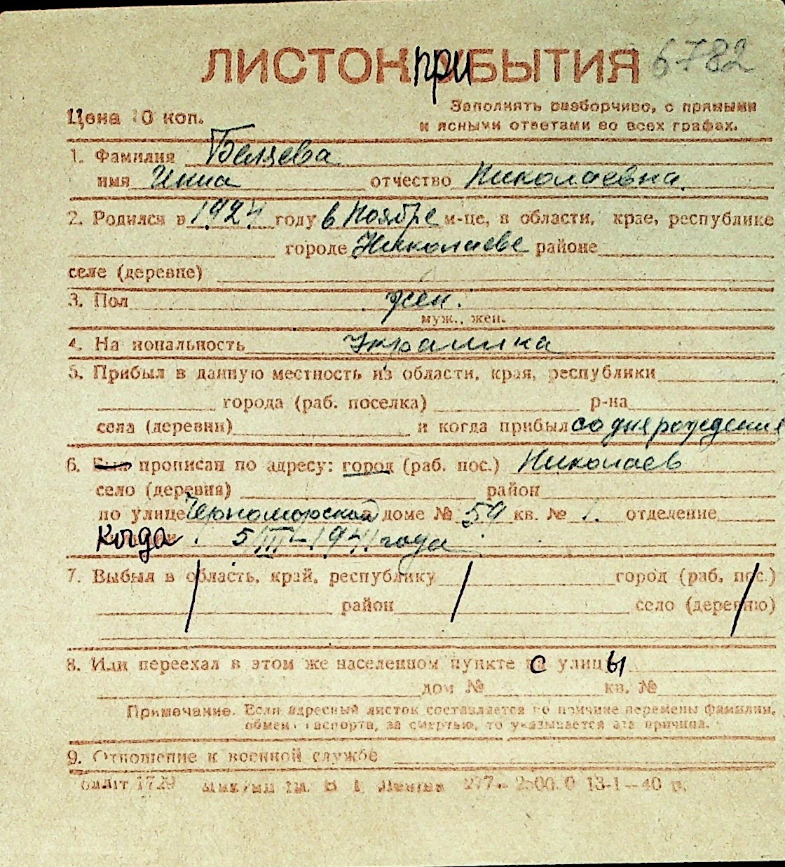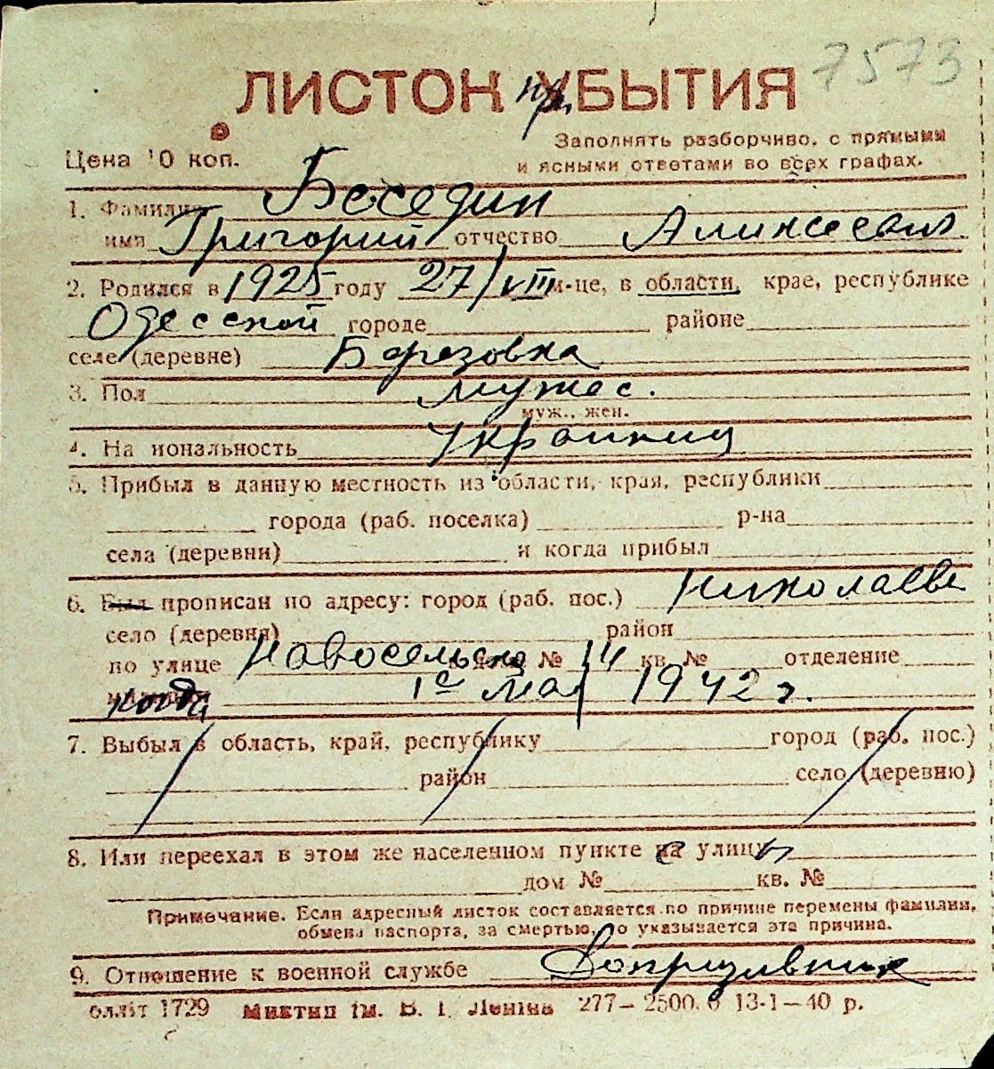 ◦ ◦ Перелік карток на осіб, які мешкали у м. Миколаїв у період окупації 1941–1944 років