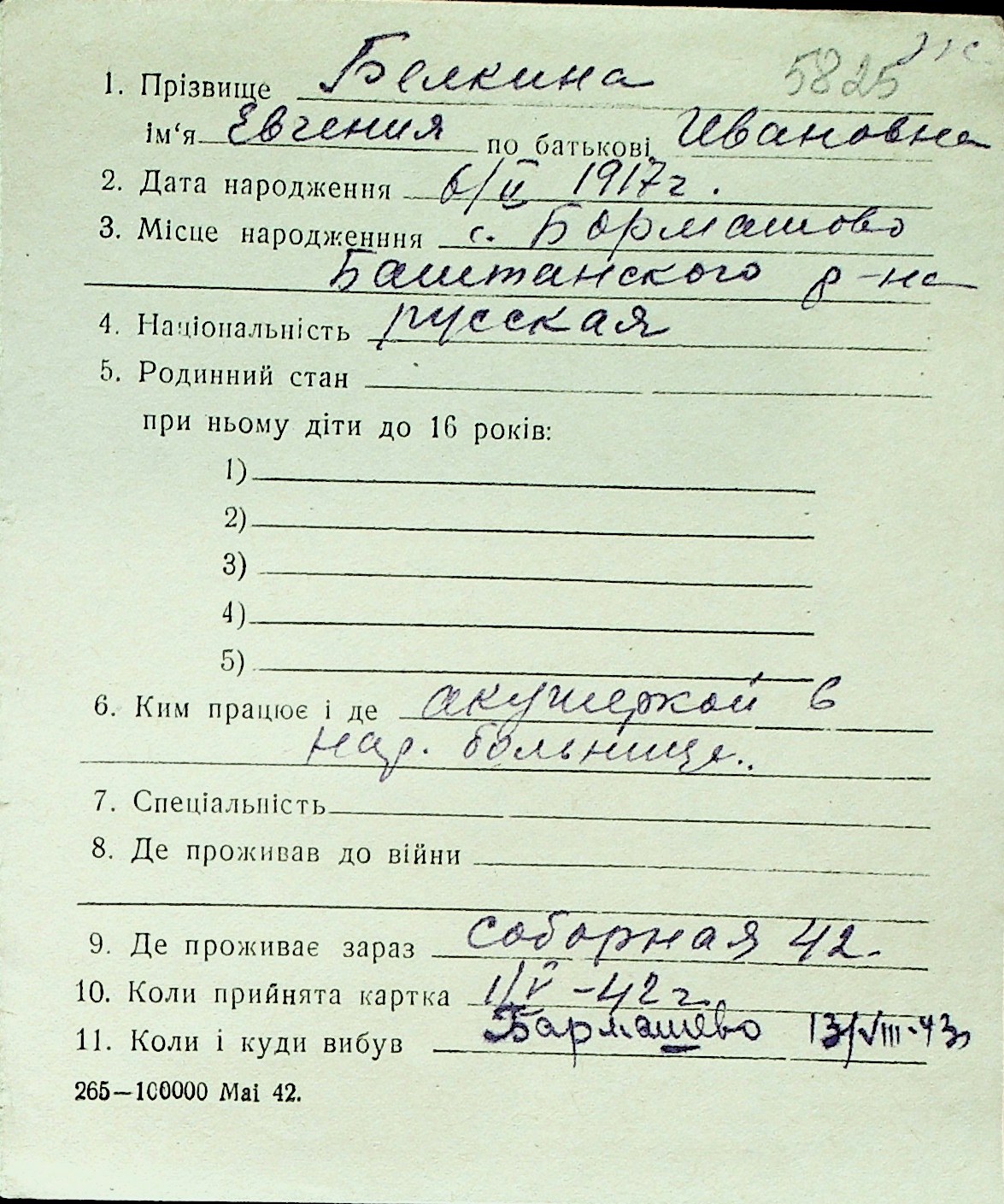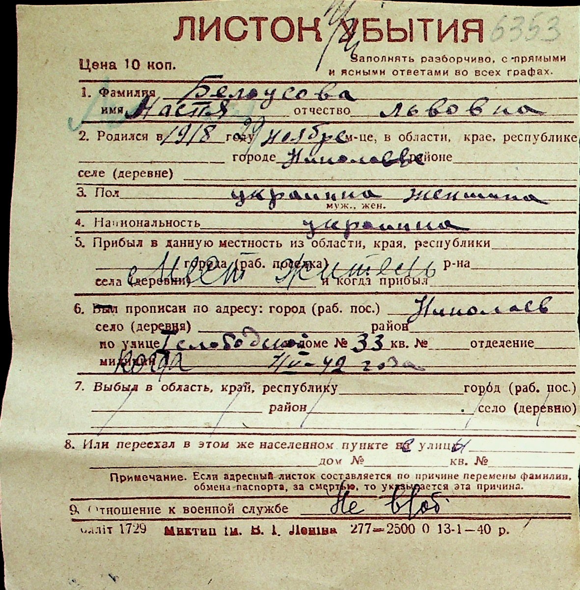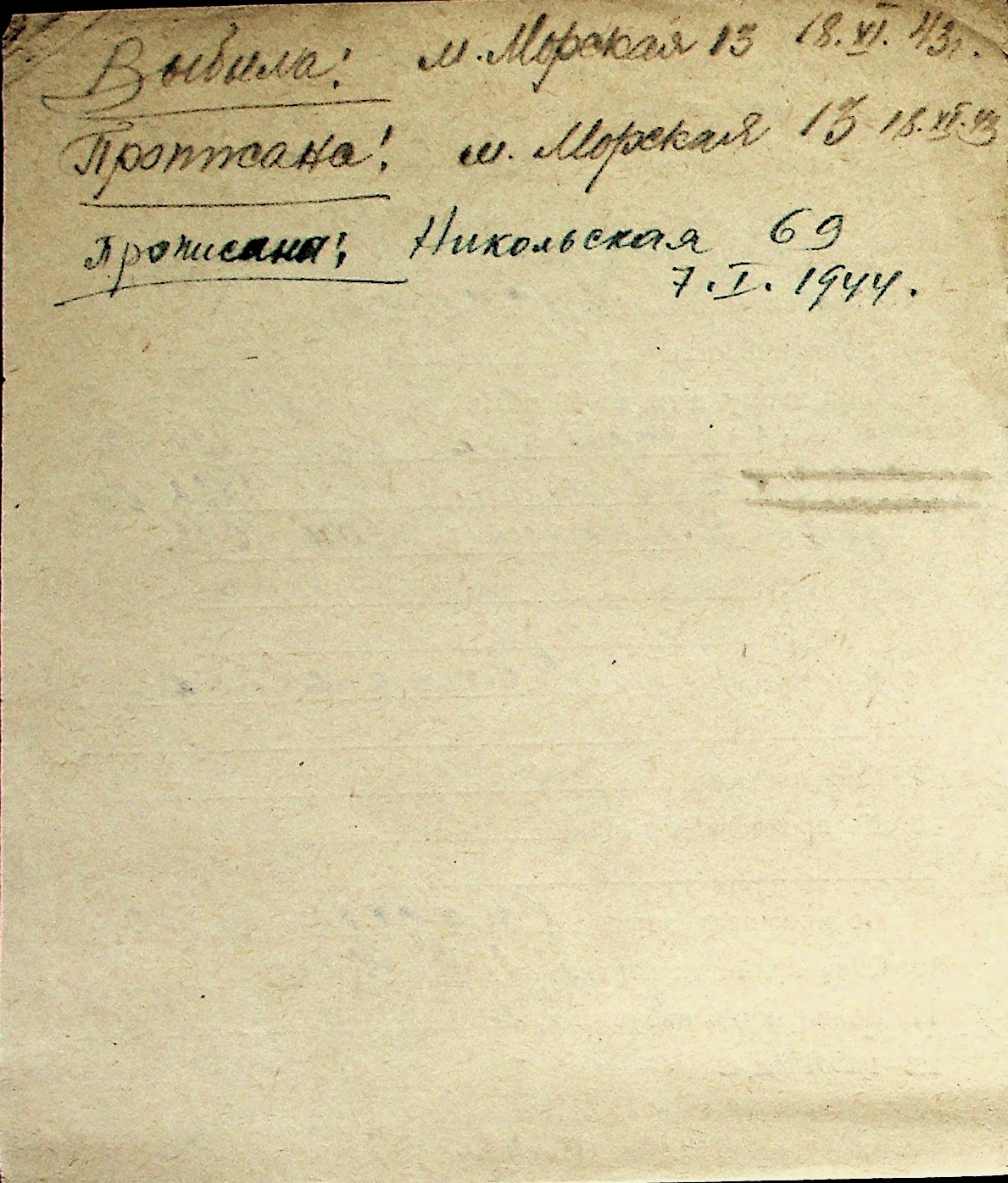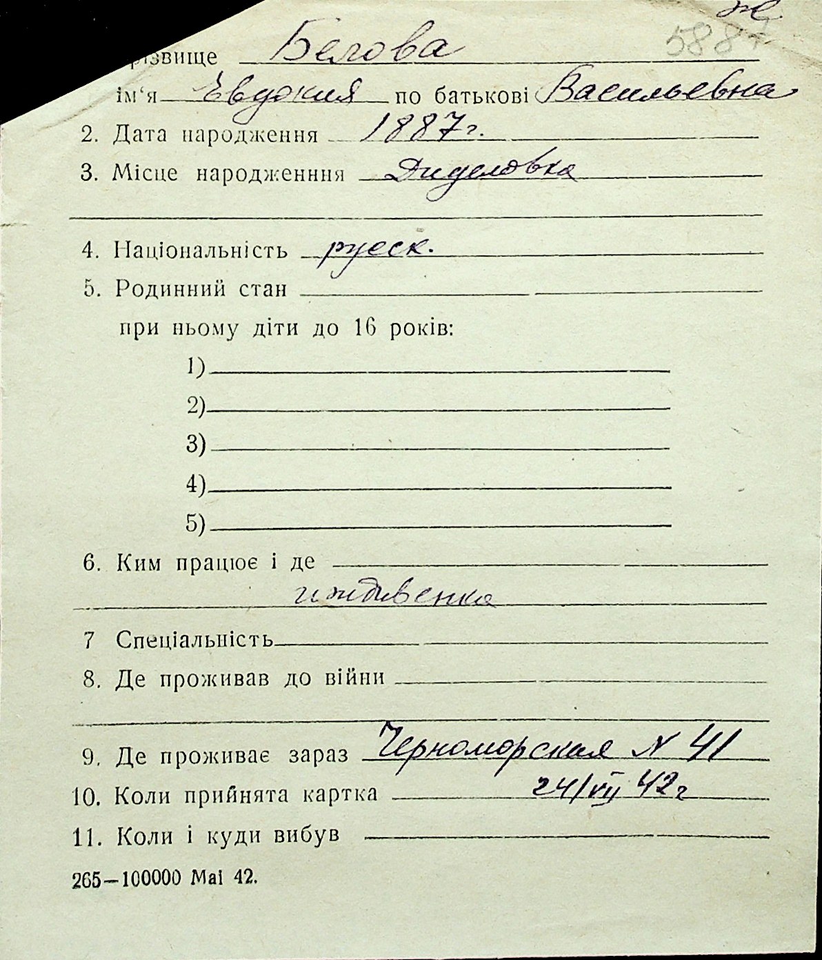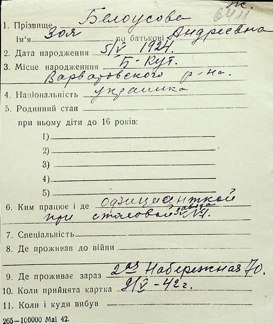 ◦ ◦ Перелік карток на осіб, які мешкали у м. Миколаїв у період окупації 1941–1944 років