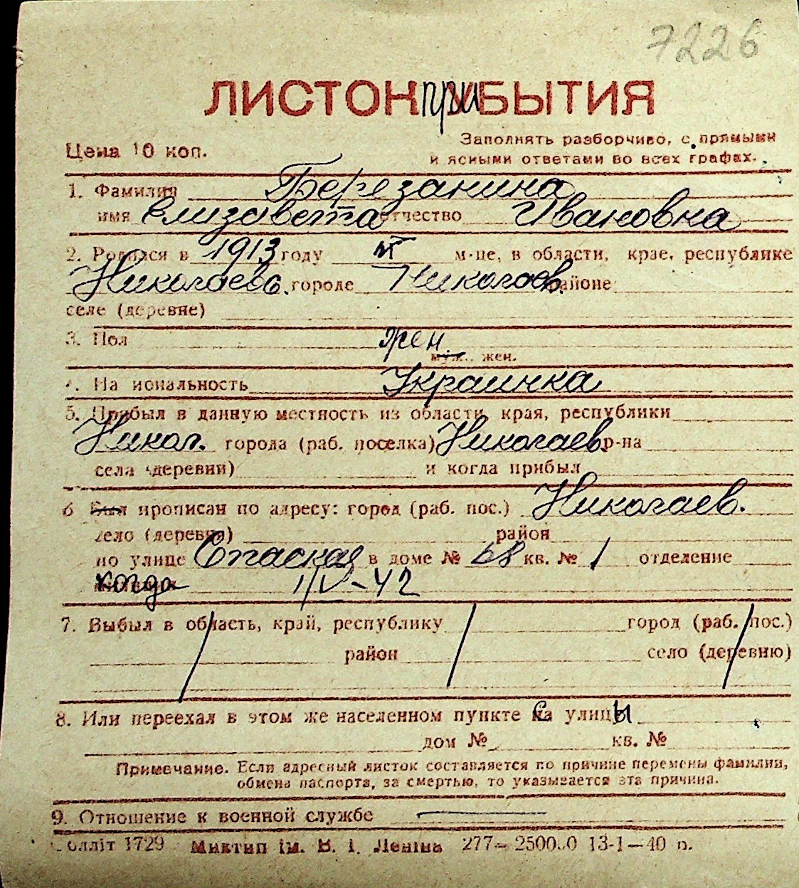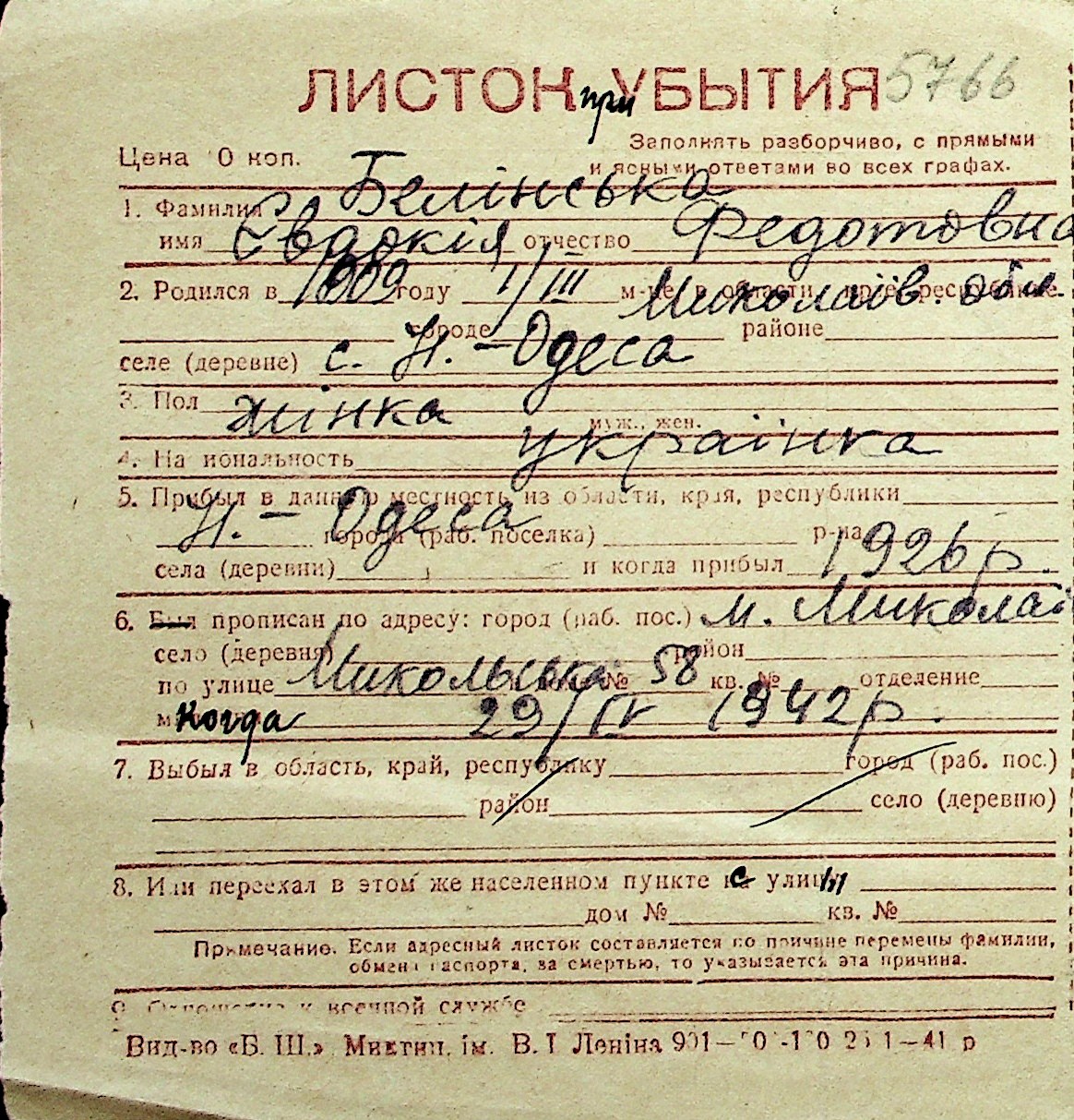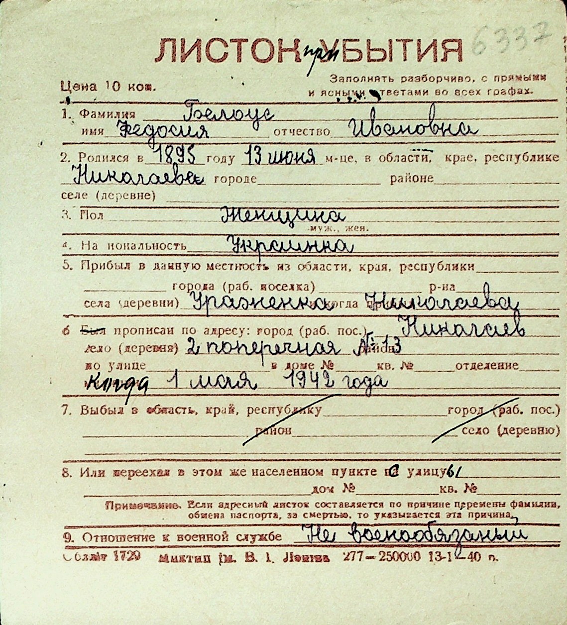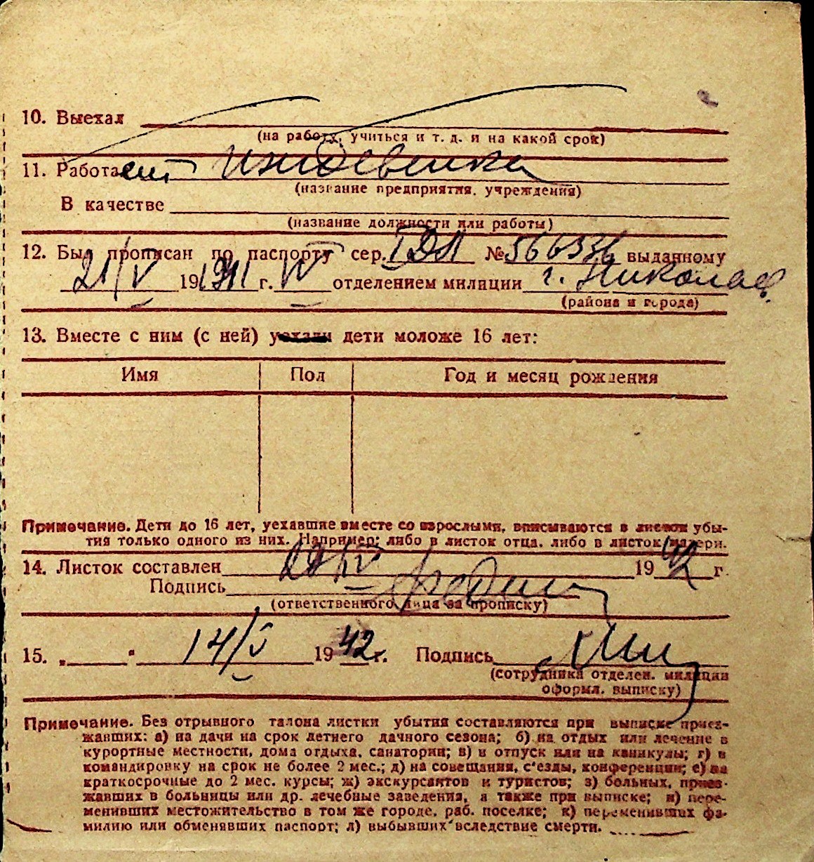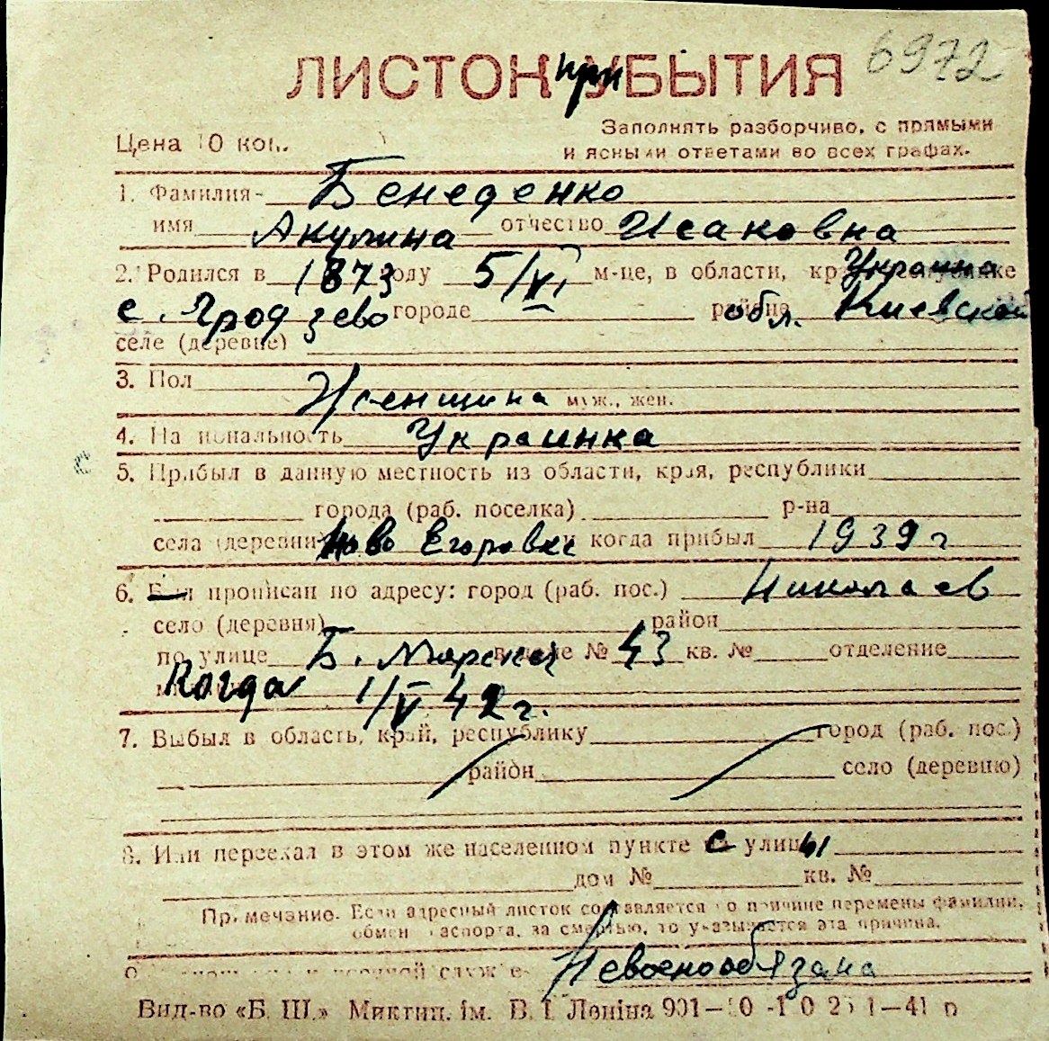 ◦ ◦ Перелік карток на осіб, які мешкали у м. Миколаїв у період окупації 1941–1944 років