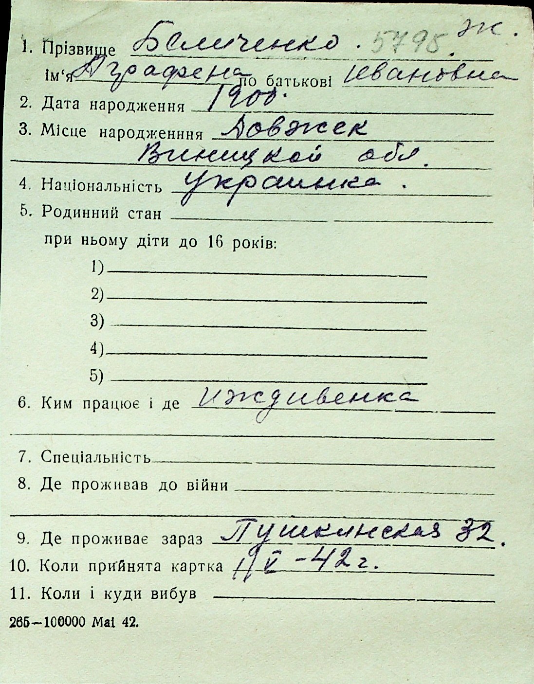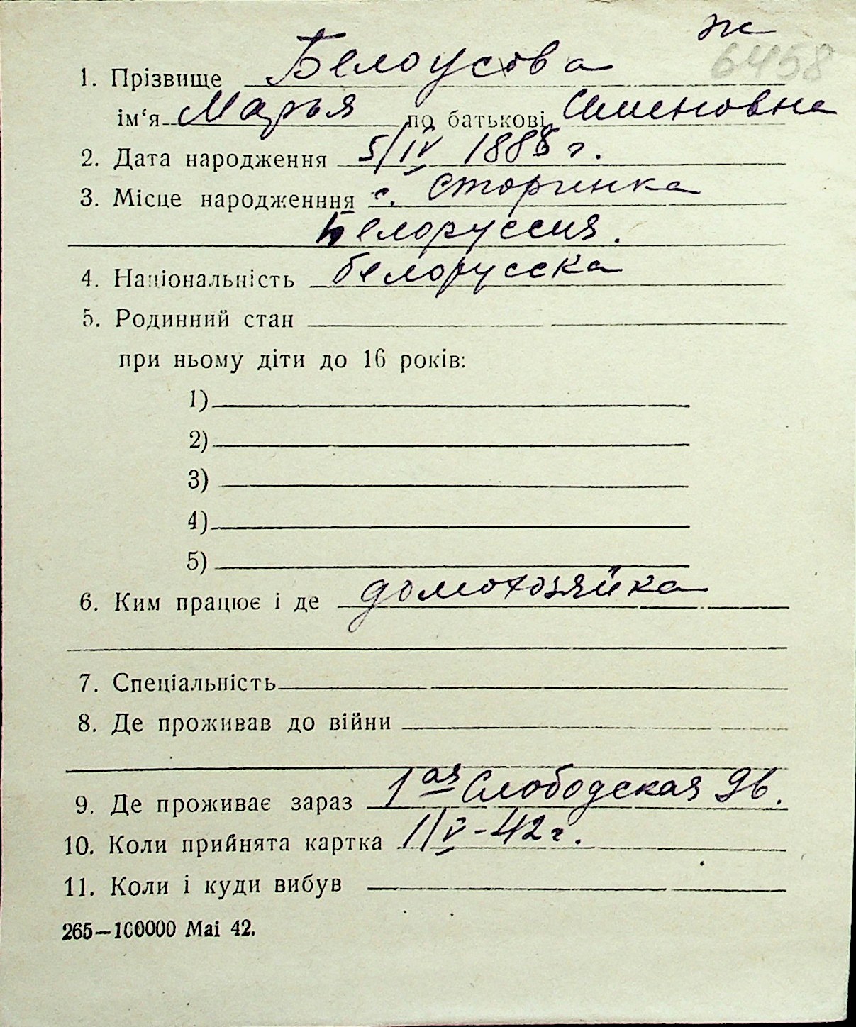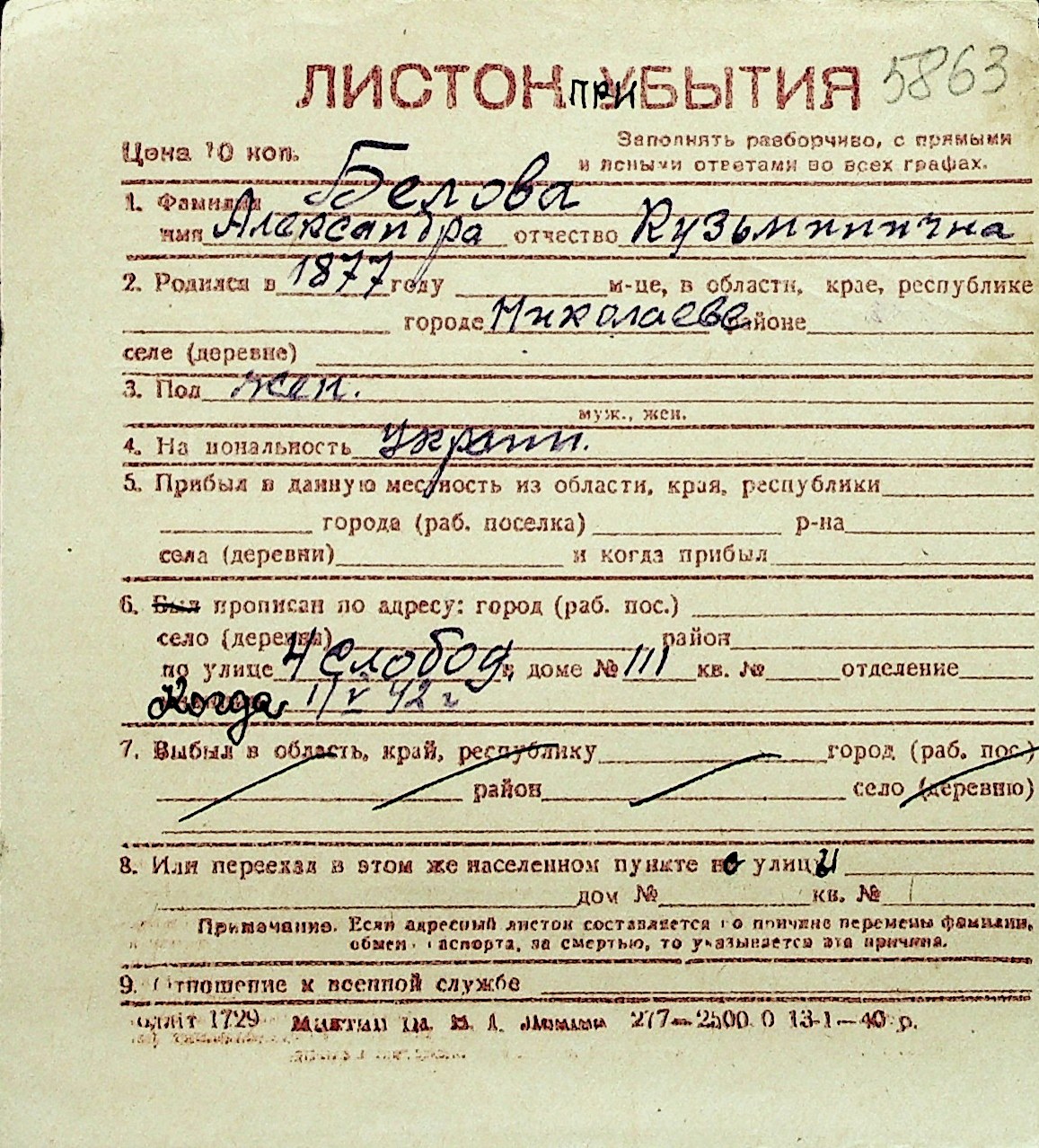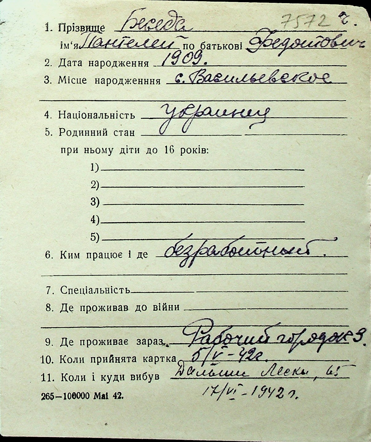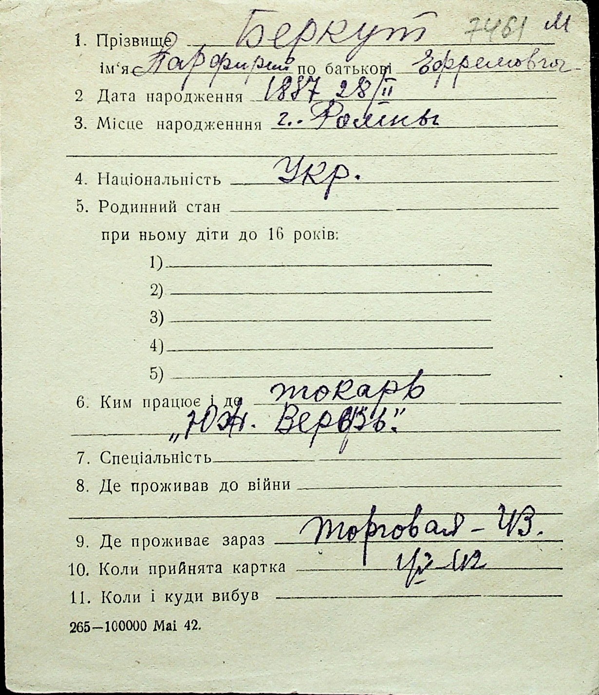 ◦ ◦ Перелік карток на осіб, які мешкали у м. Миколаїв у період окупації 1941–1944 років