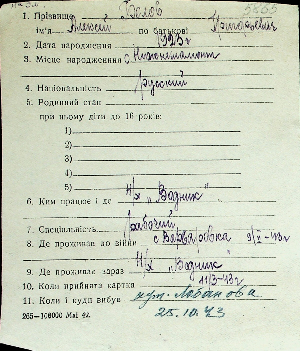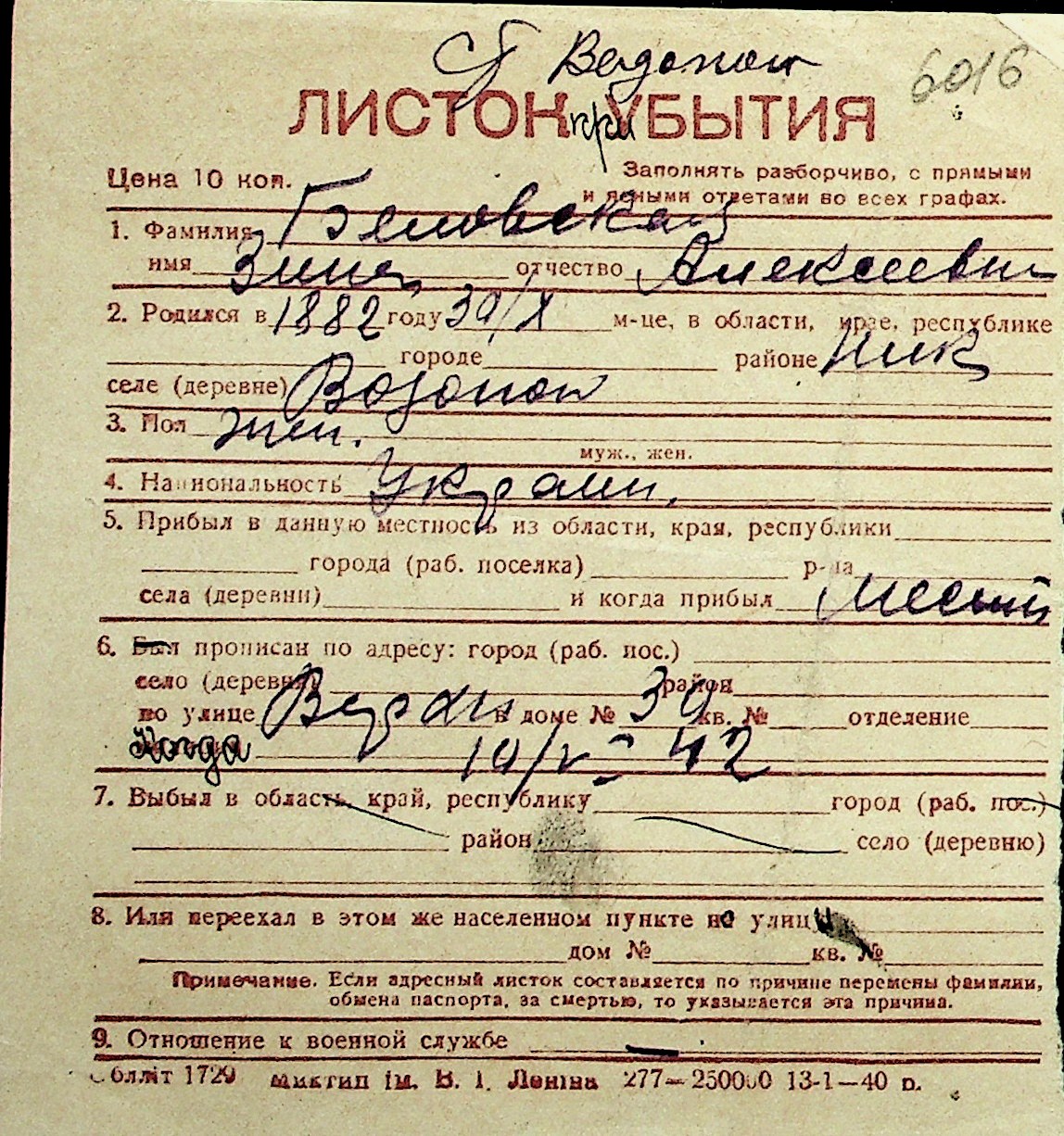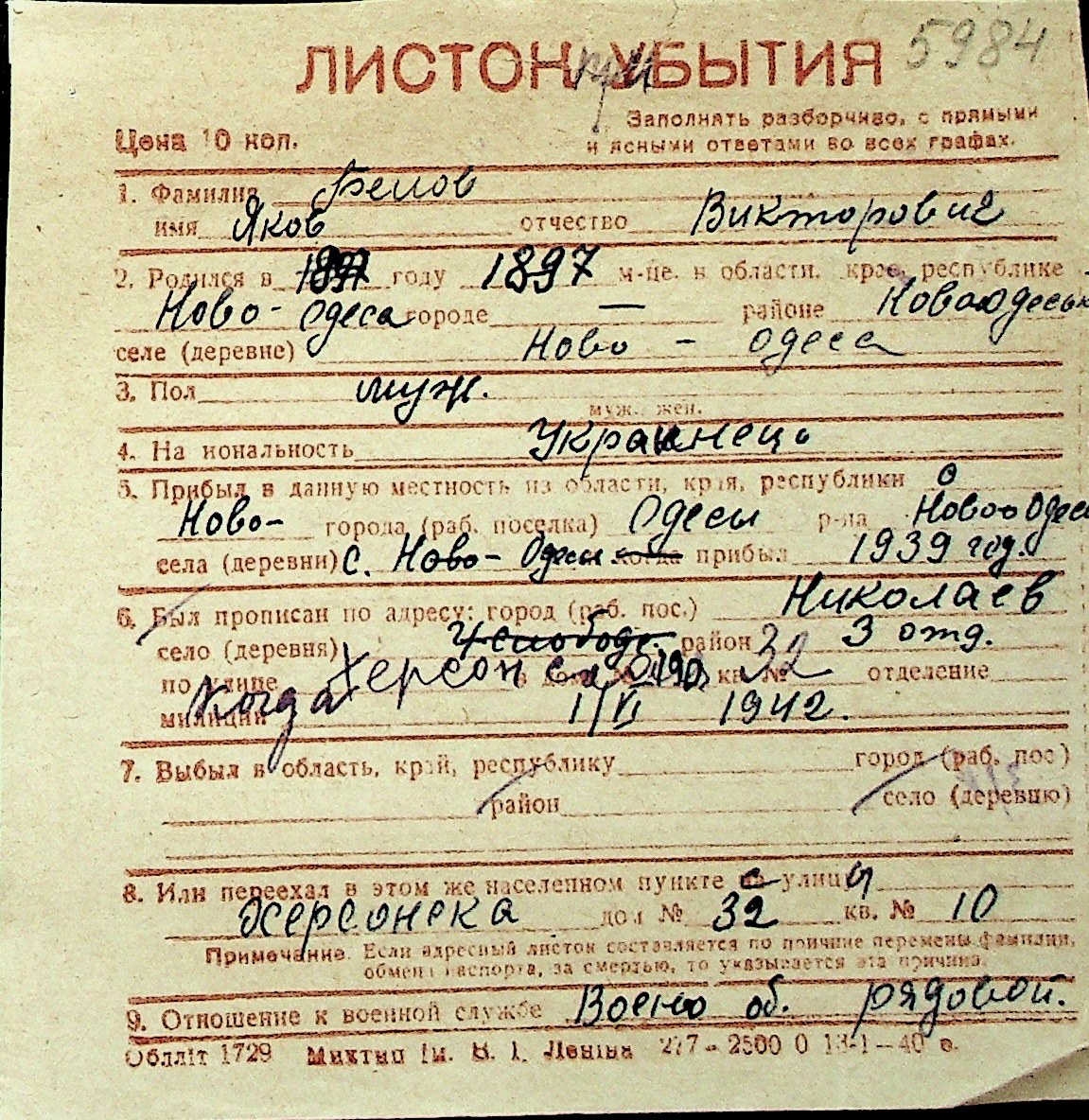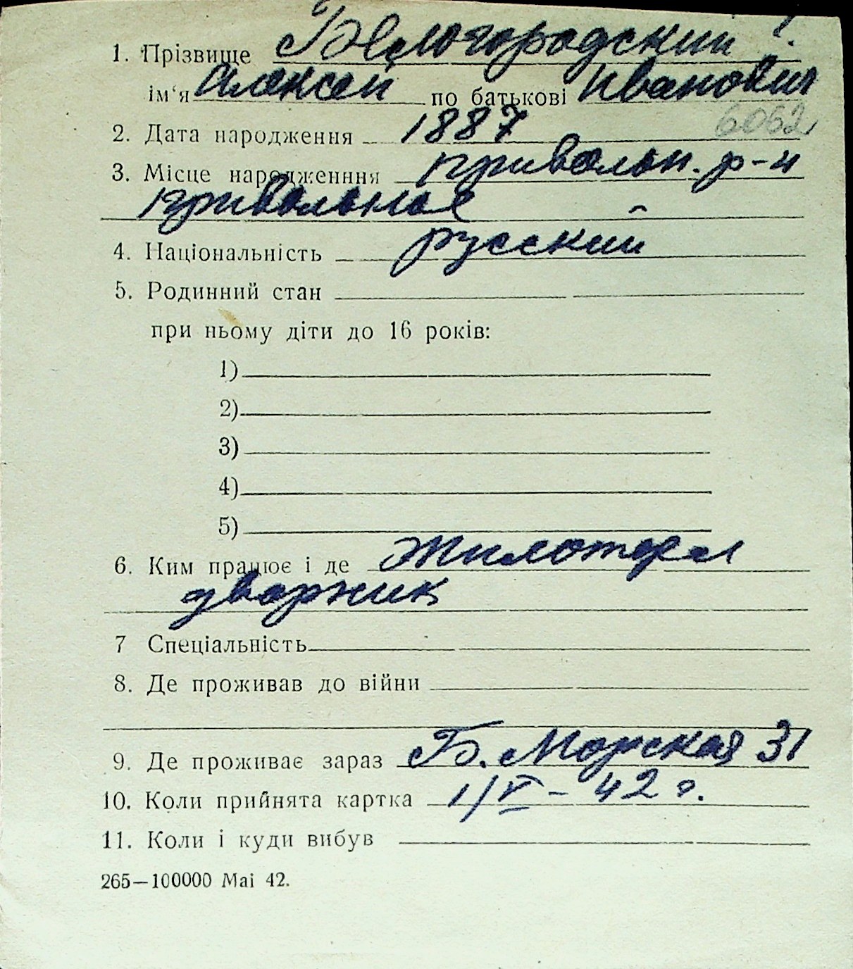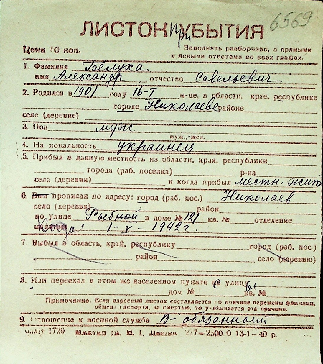 ◦ ◦ Перелік карток на осіб, які мешкали у м. Миколаїв у період окупації 1941–1944 років