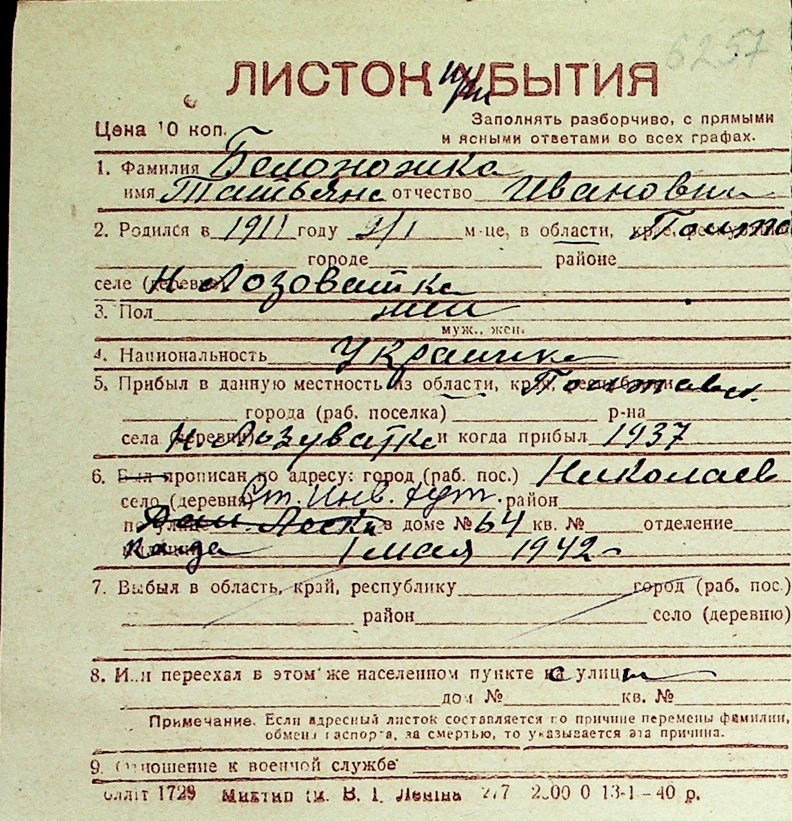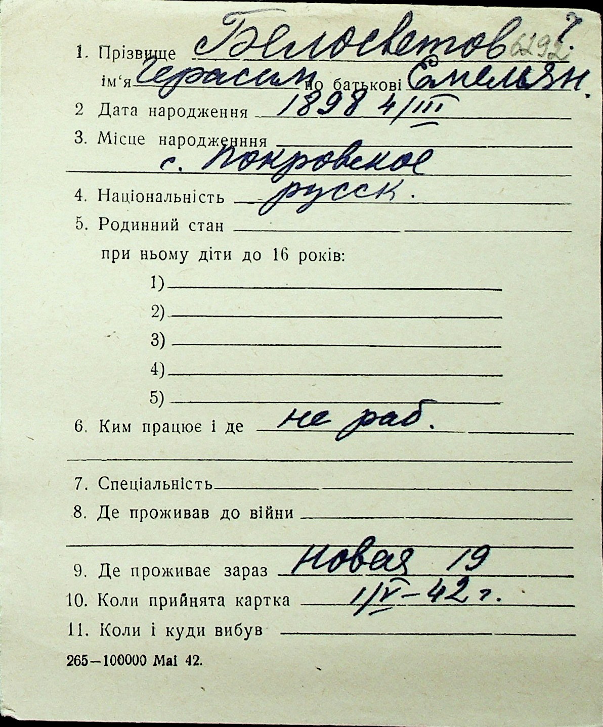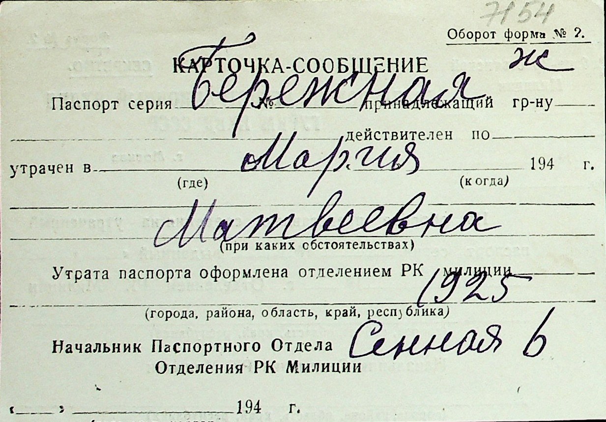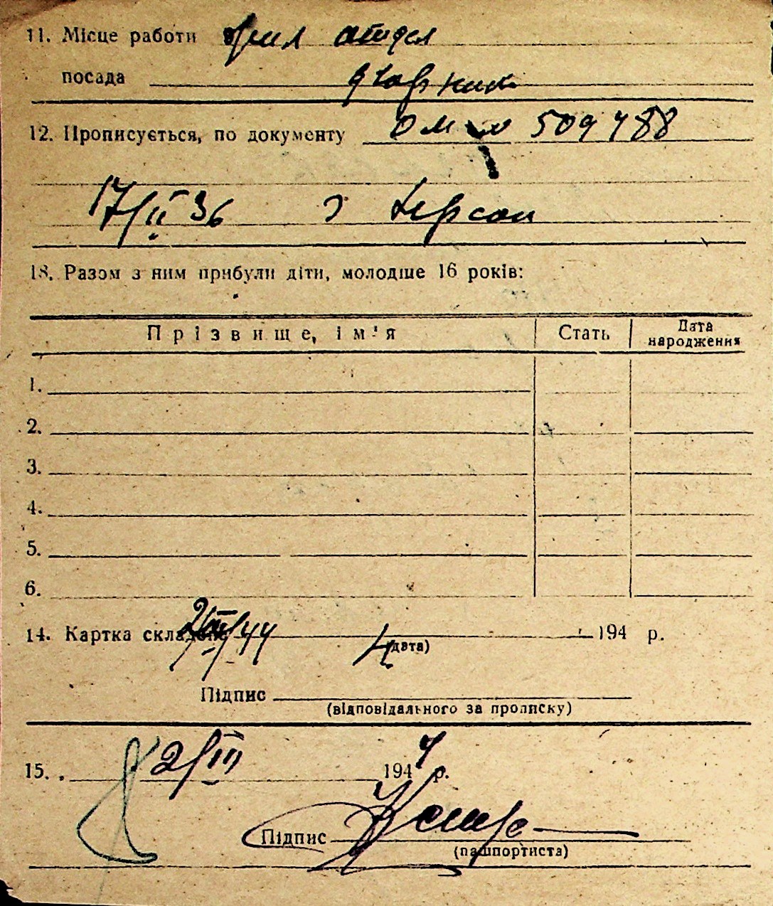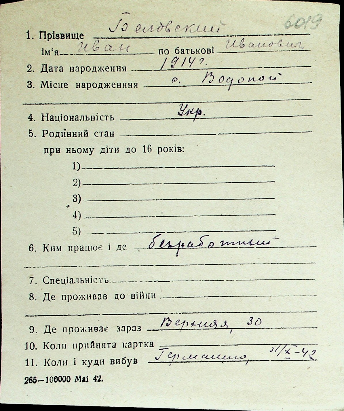 ◦ ◦ Перелік карток на осіб, які мешкали у м. Миколаїв у період окупації 1941–1944 років