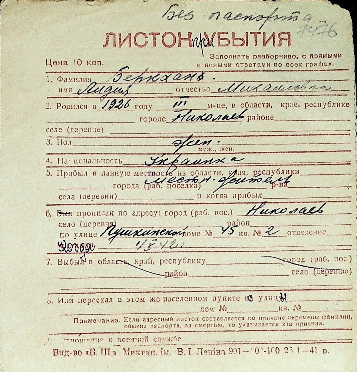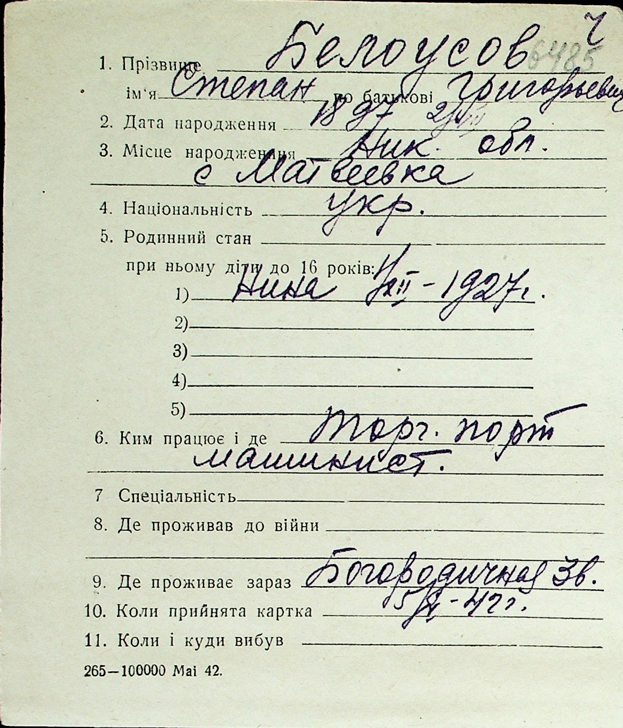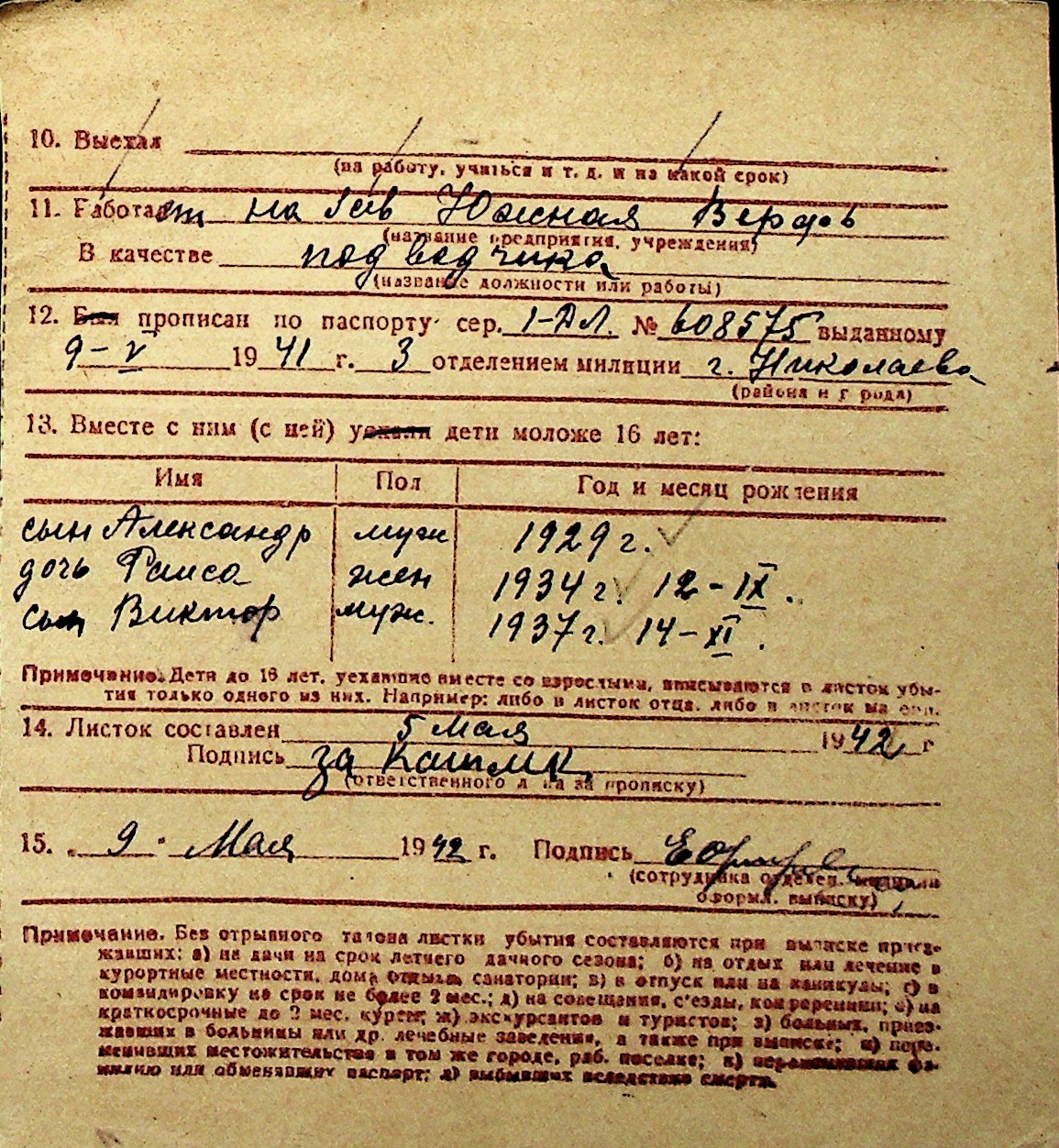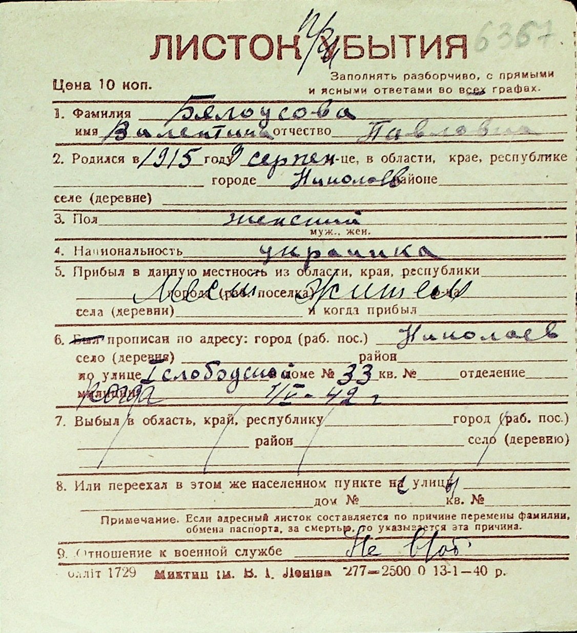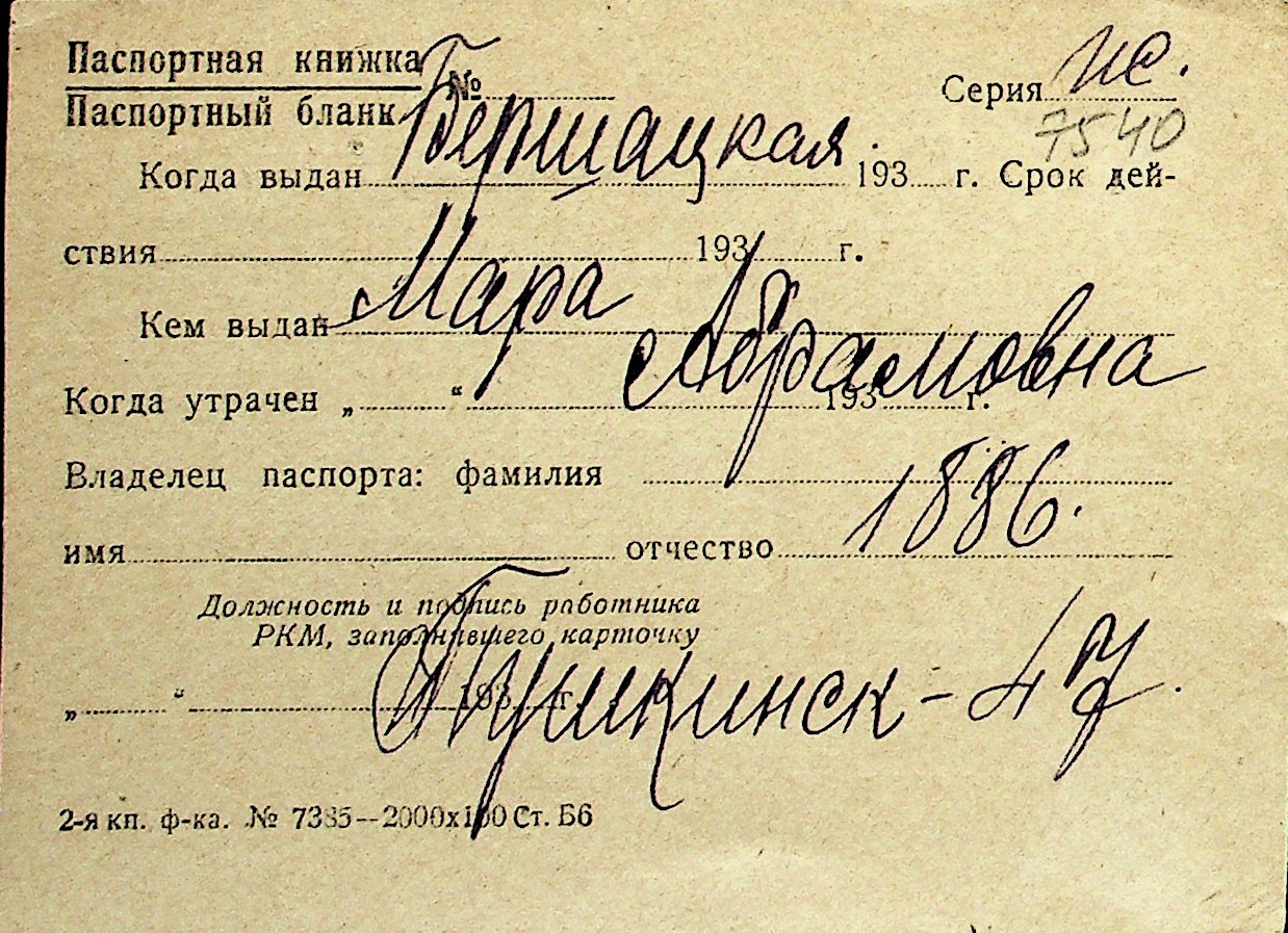 ◦ ◦ Перелік карток на осіб, які мешкали у м. Миколаїв у період окупації 1941–1944 років