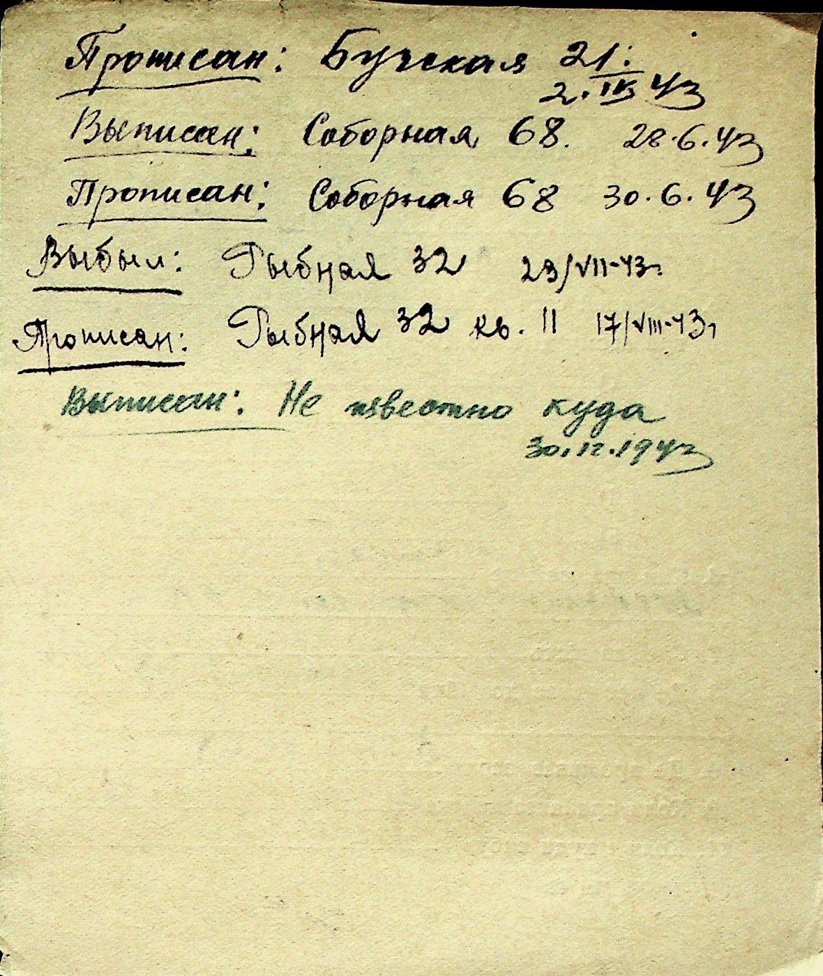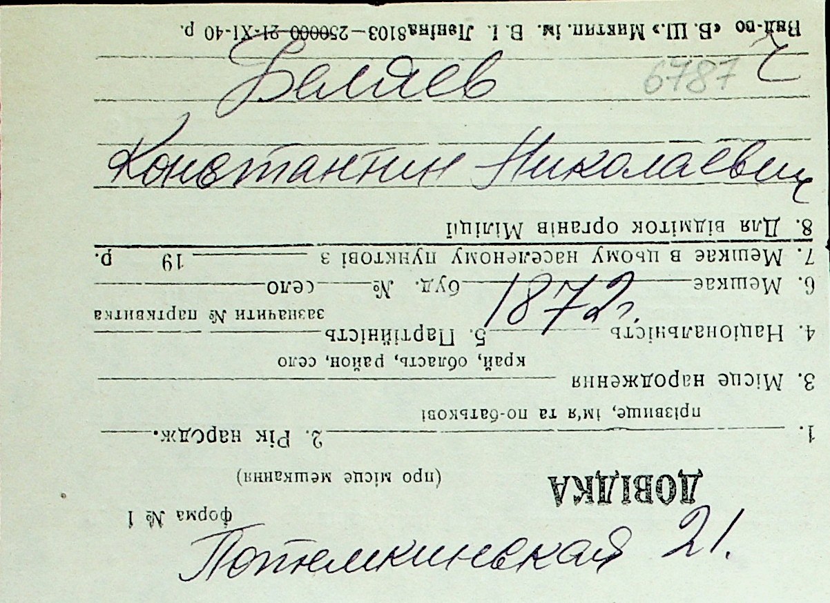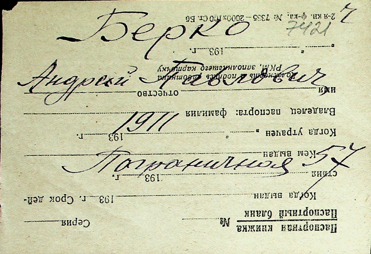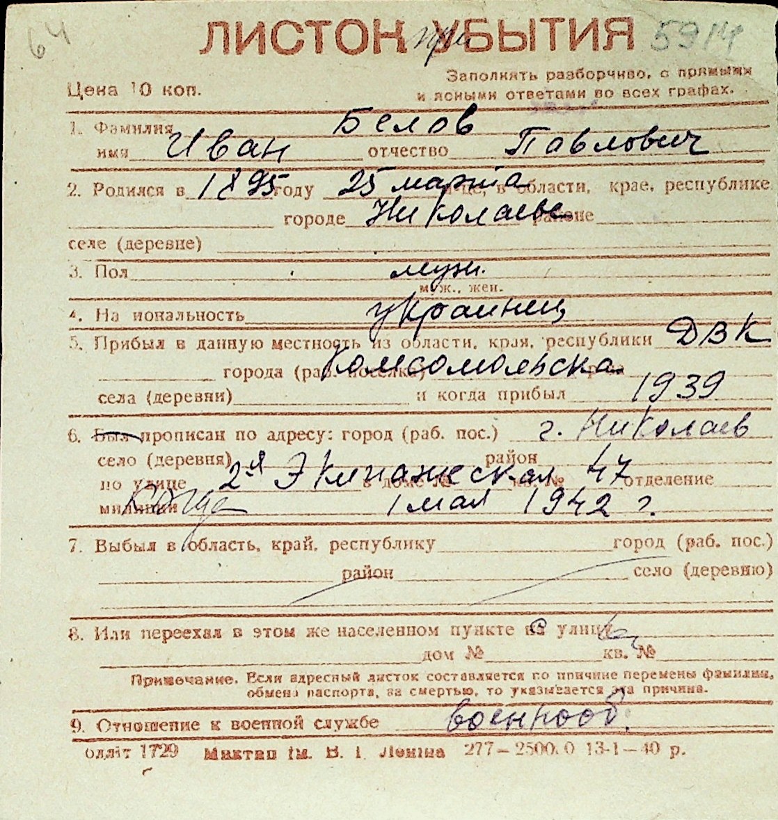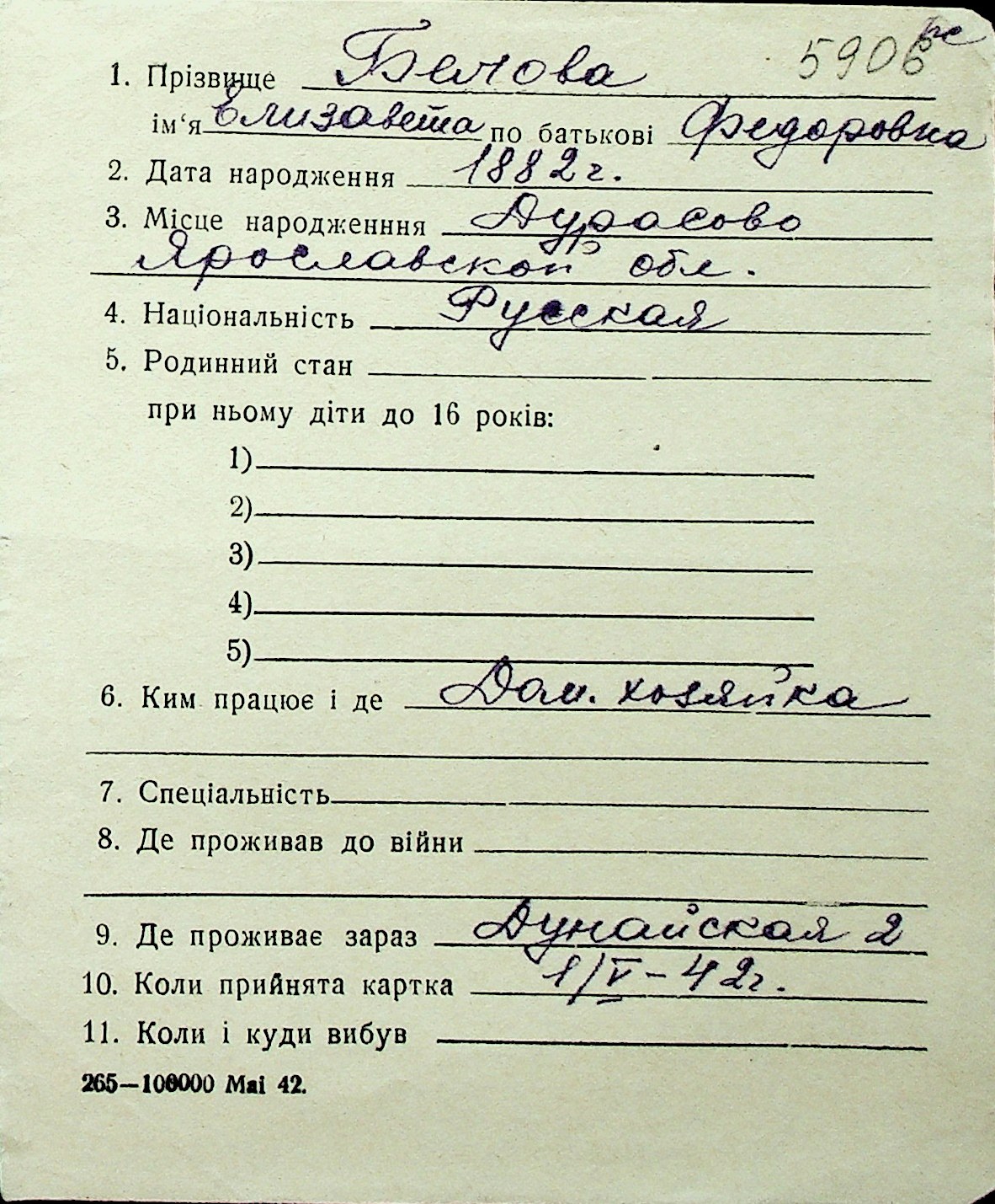 ◦ ◦ Перелік карток на осіб, які мешкали у м. Миколаїв у період окупації 1941–1944 років