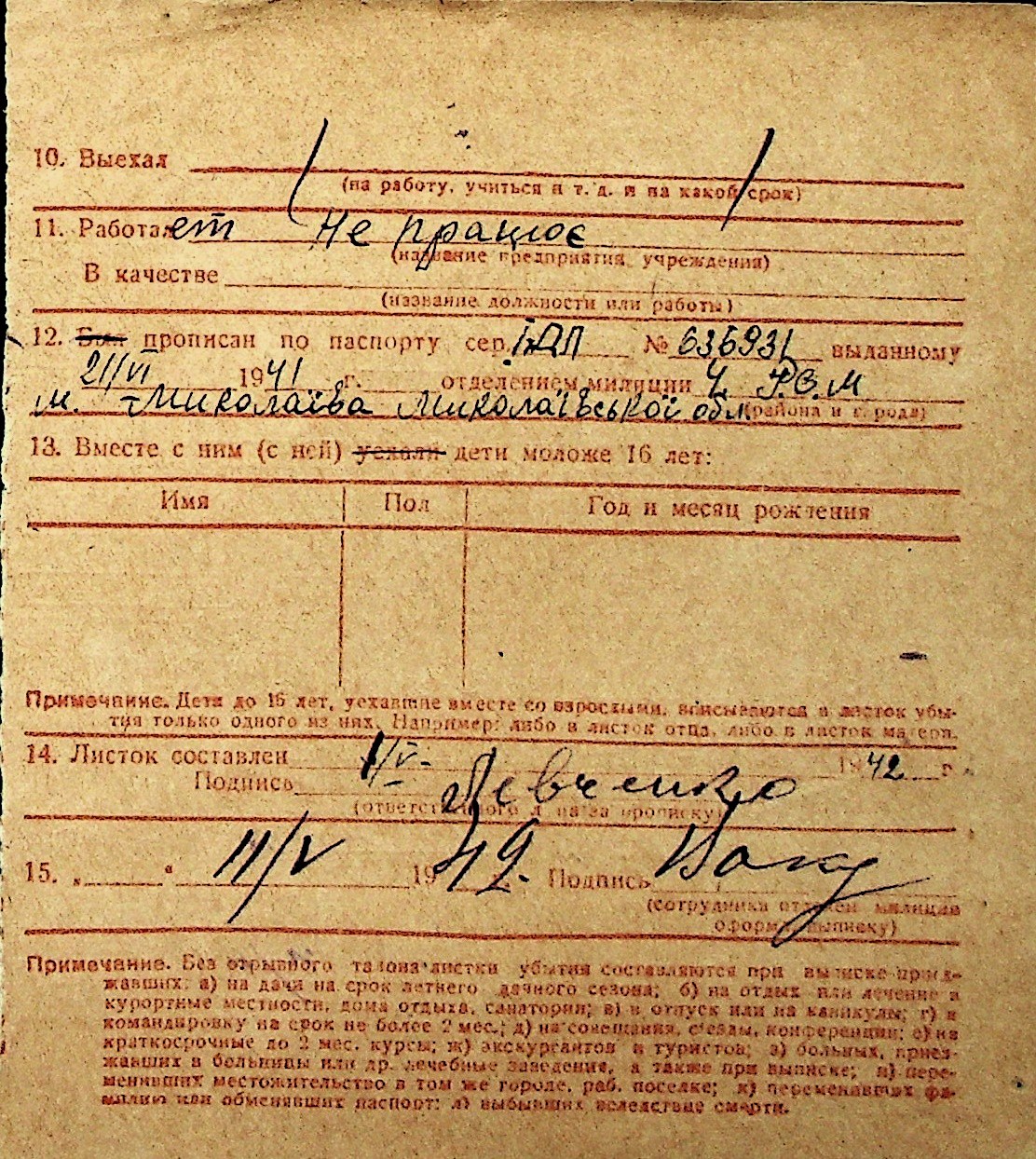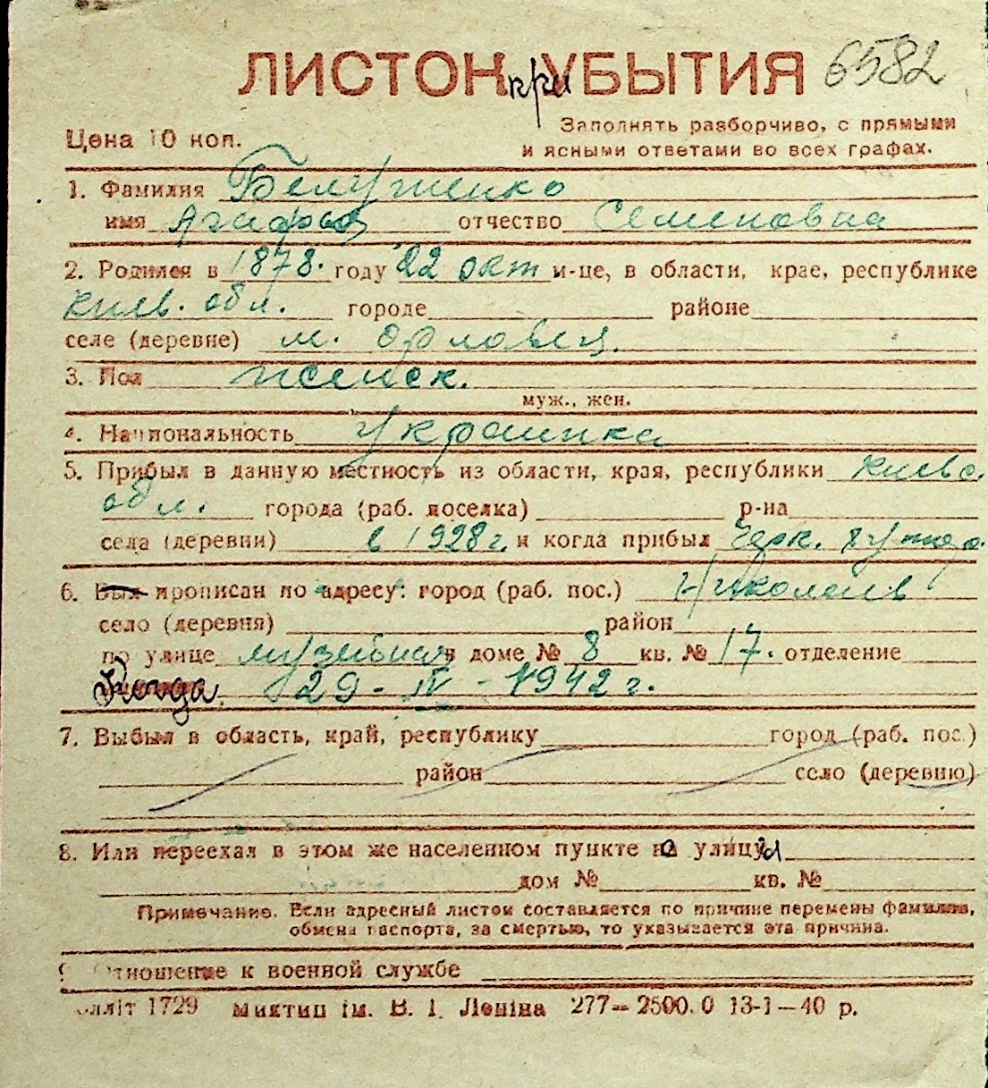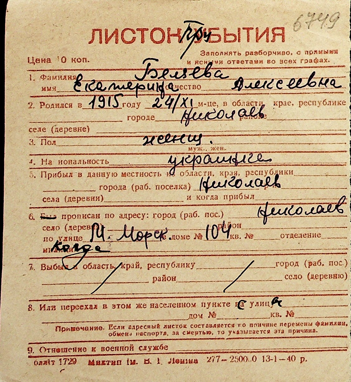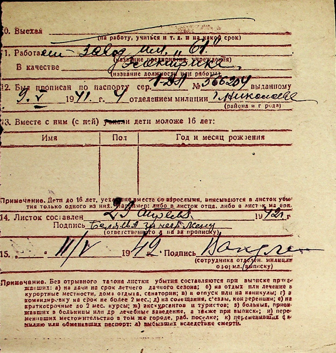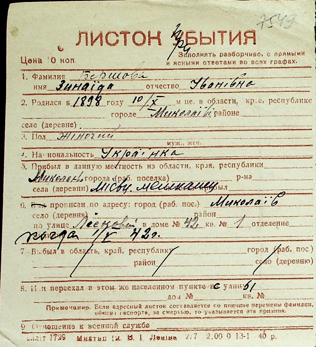 ◦ ◦ Перелік карток на осіб, які мешкали у м. Миколаїв у період окупації 1941–1944 років