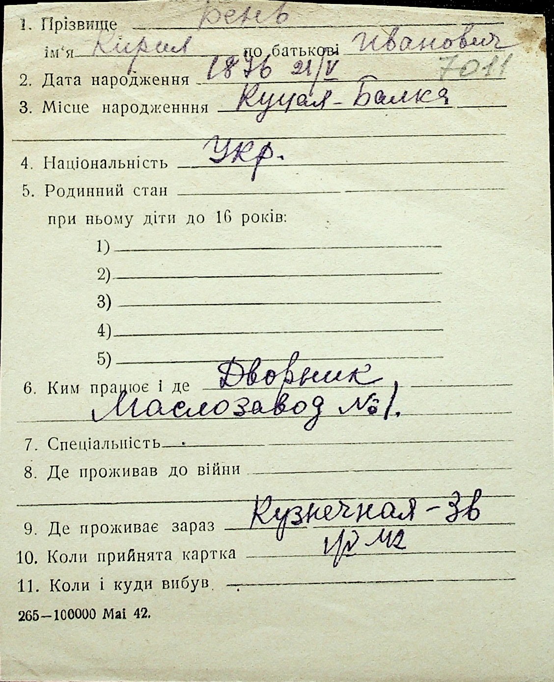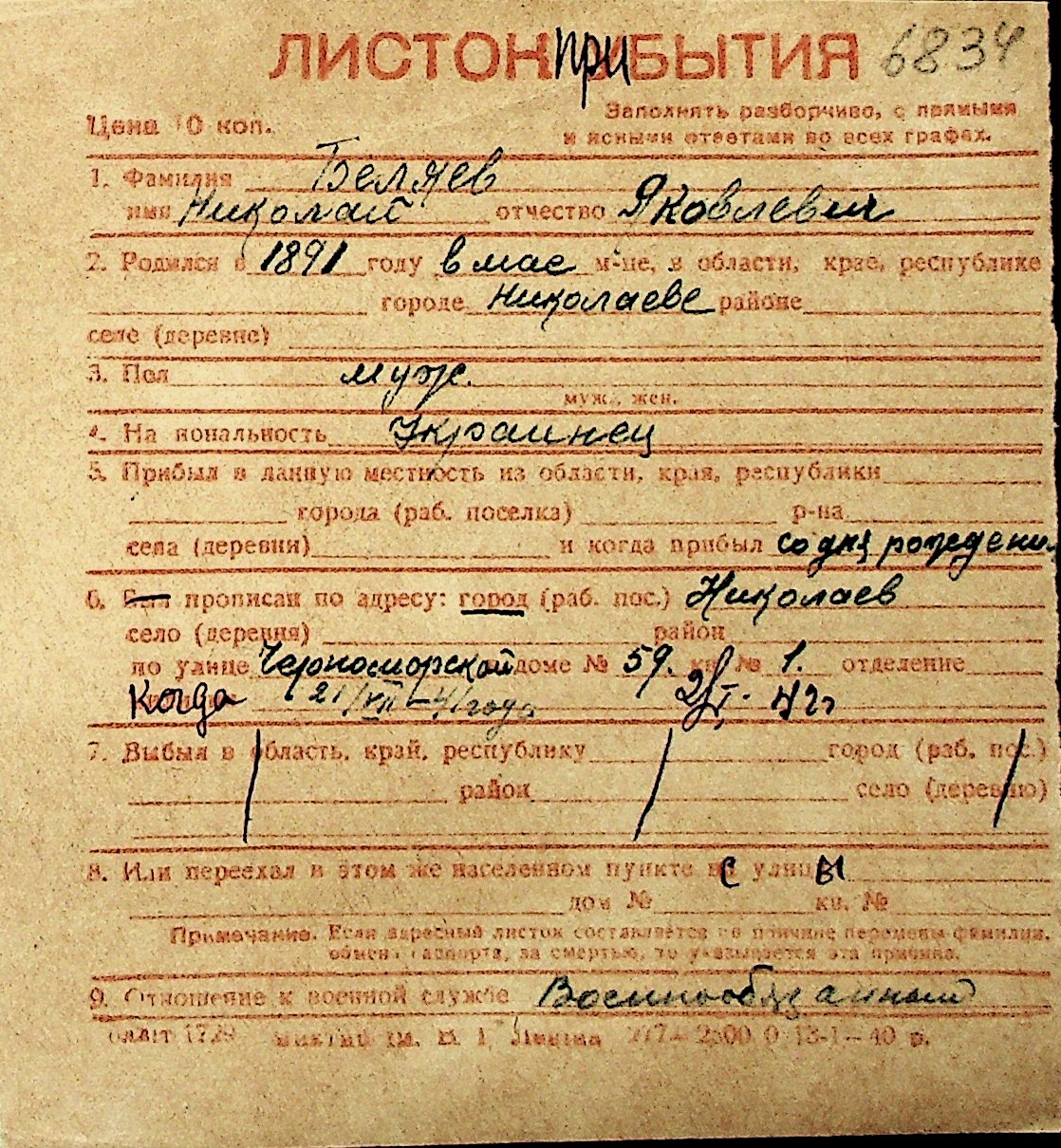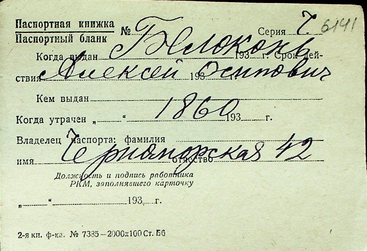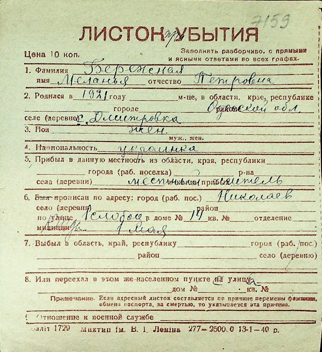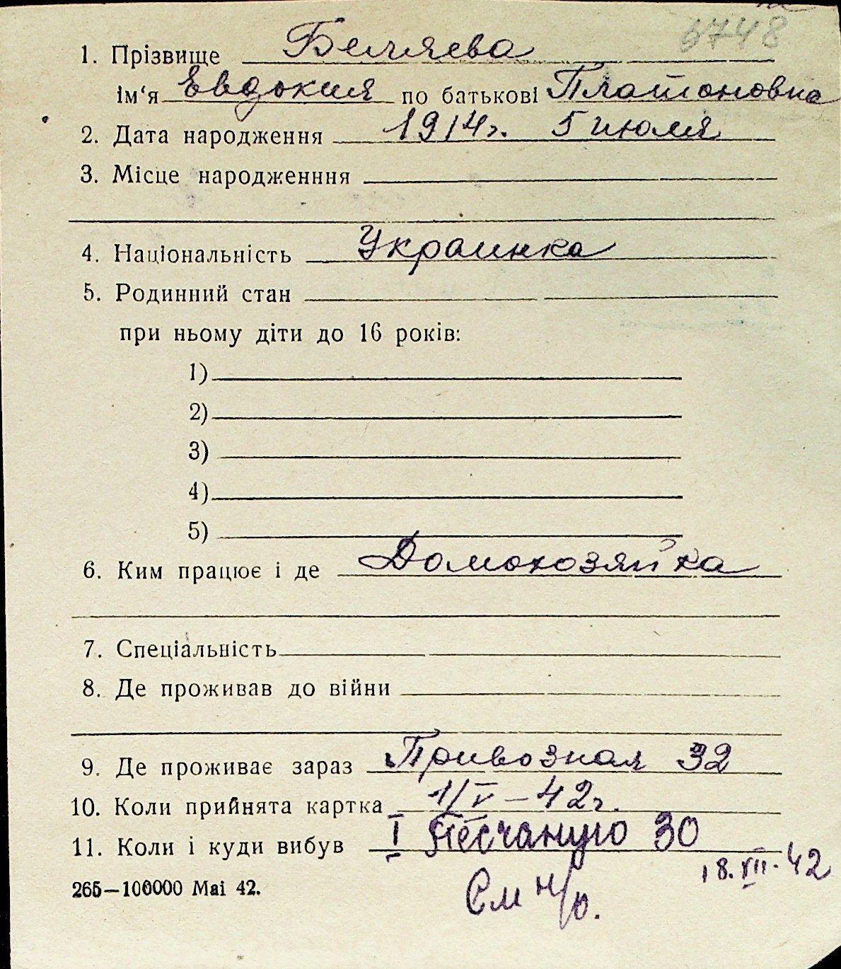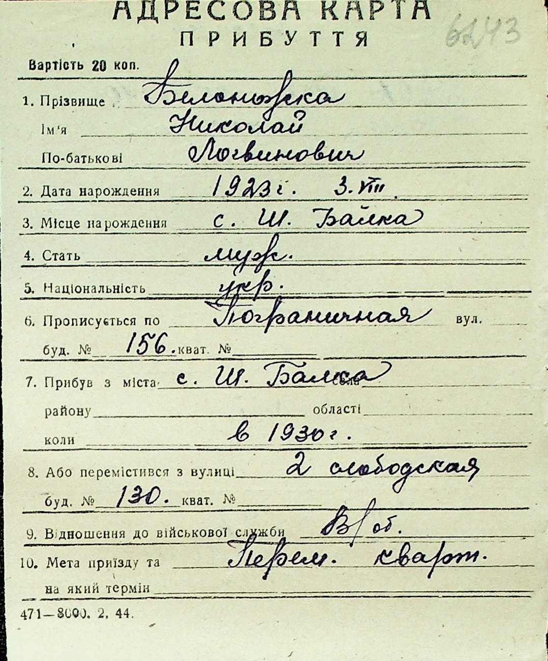 ◦ ◦ Перелік карток на осіб, які мешкали у м. Миколаїв у період окупації 1941–1944 років