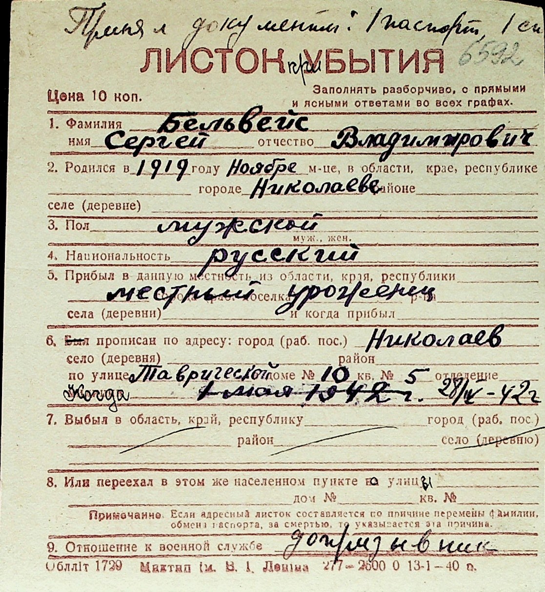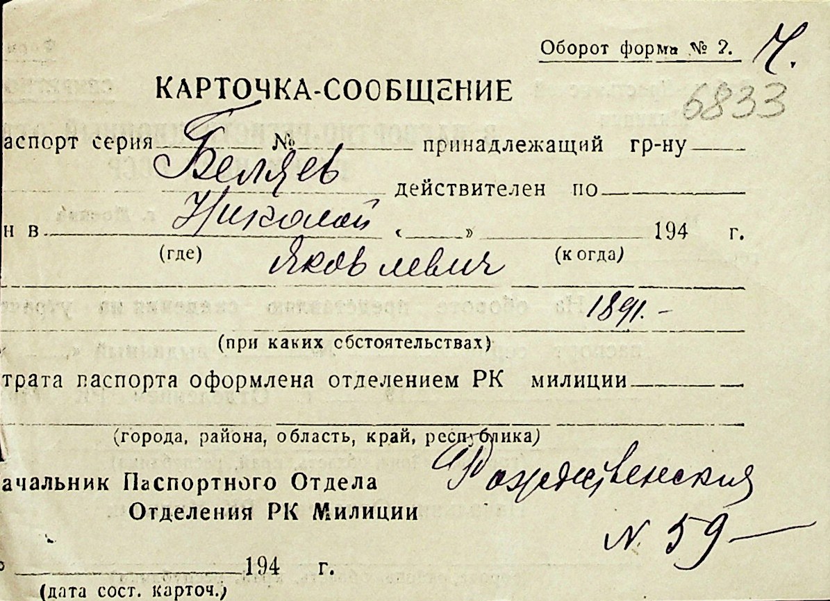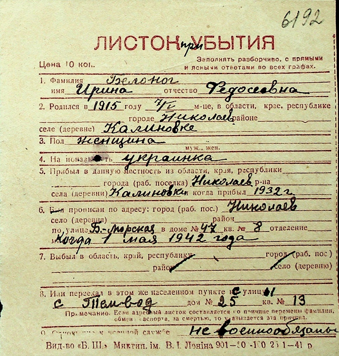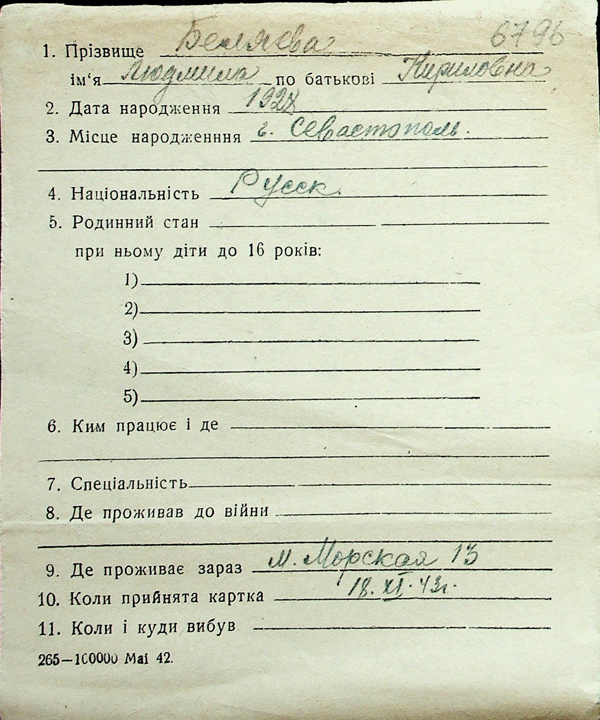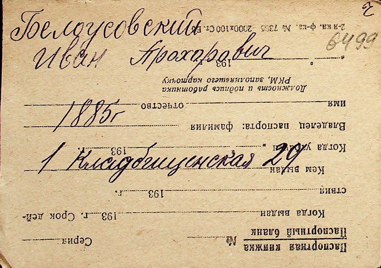◦ ◦ Перелік карток на осіб, які мешкали у м. Миколаїв у період окупації 1941–1944 років