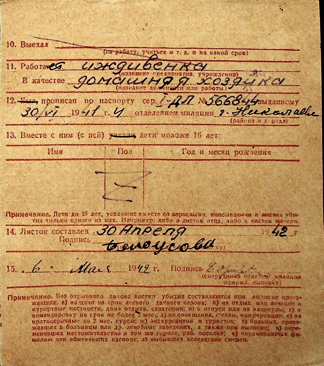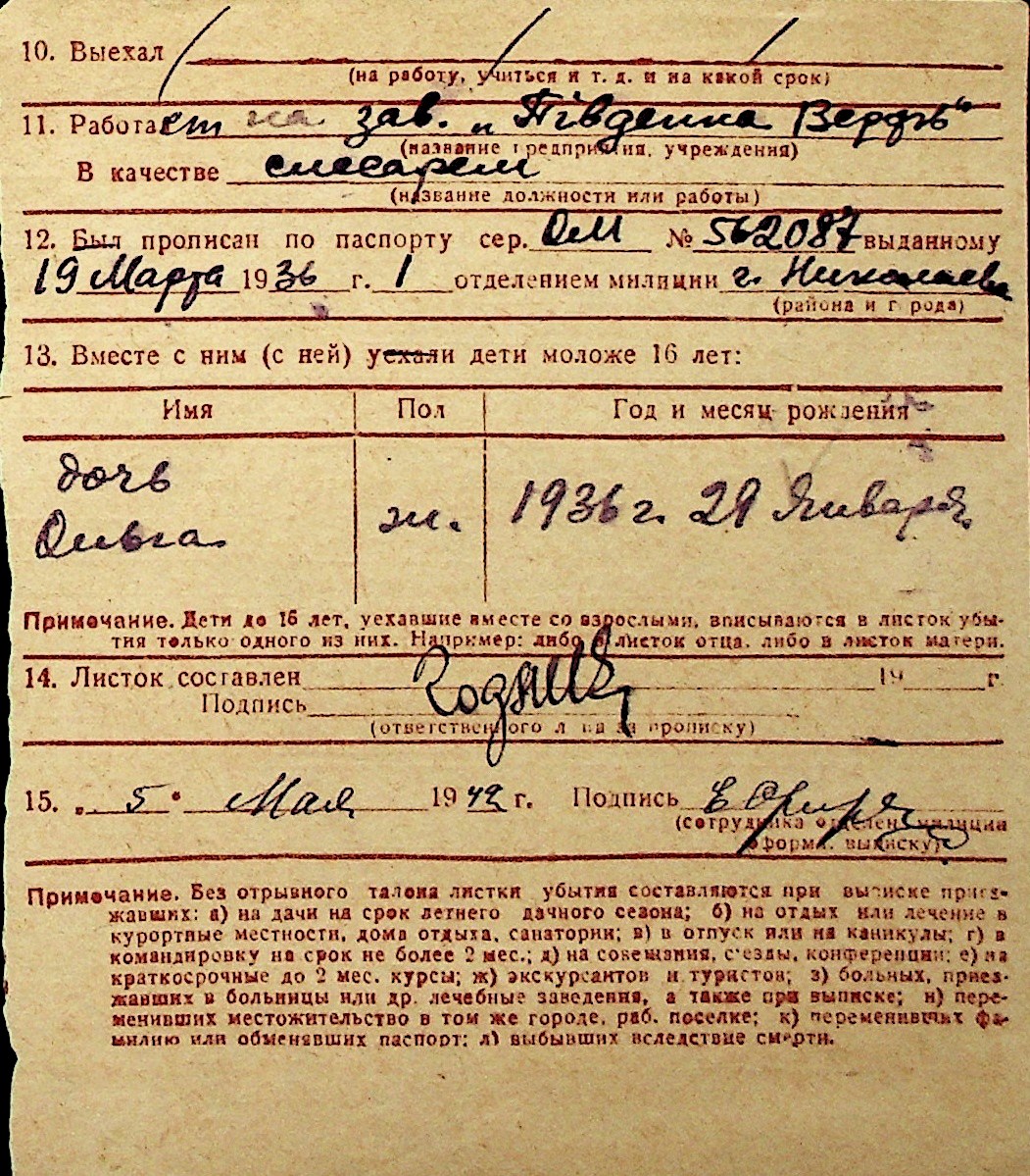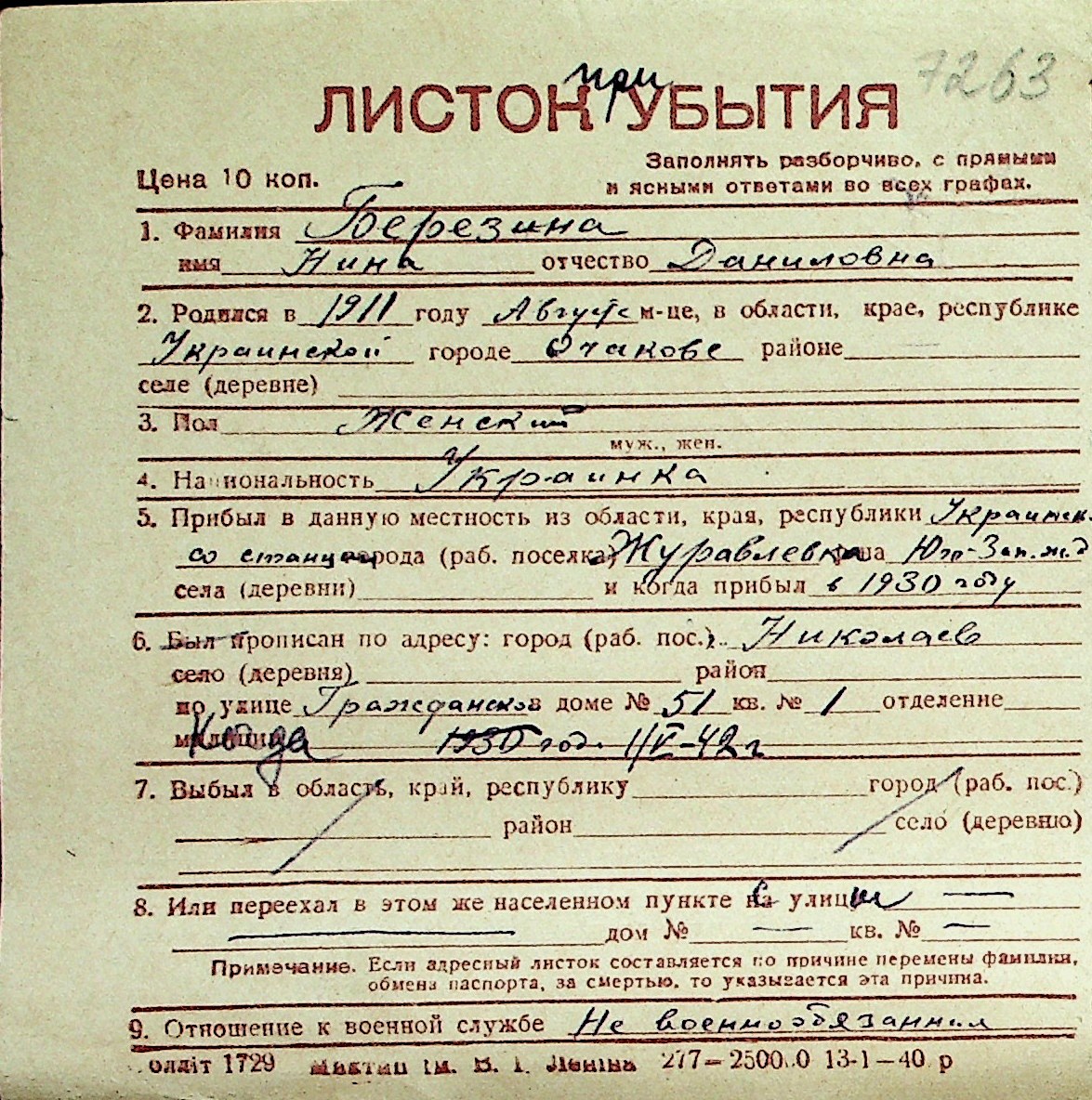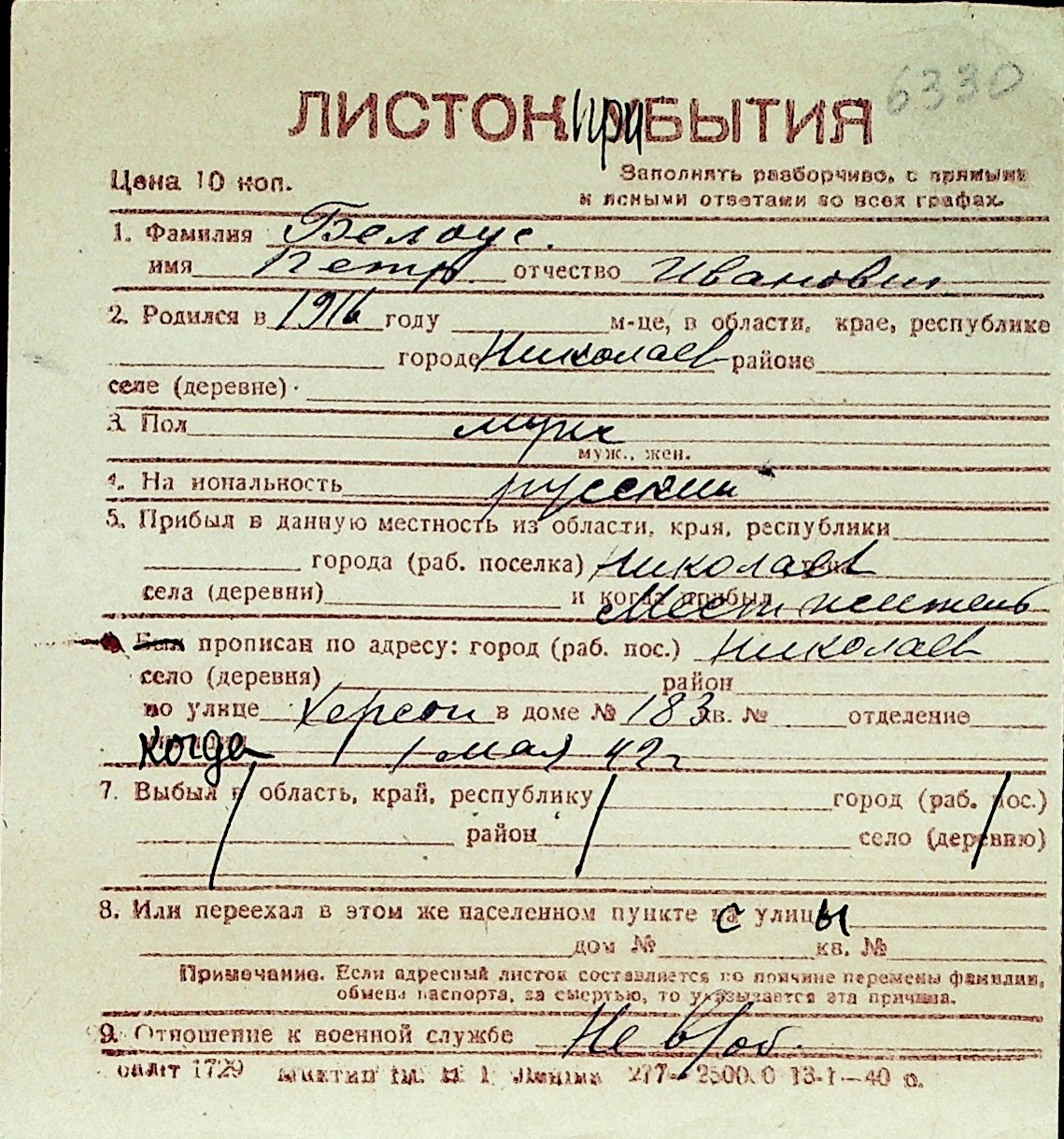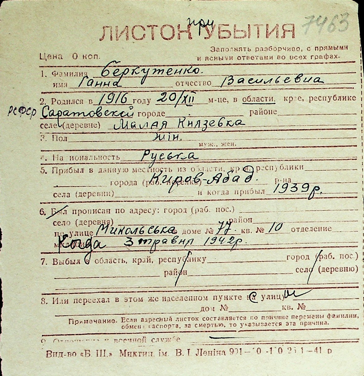 ◦ ◦ Перелік карток на осіб, які мешкали у м. Миколаїв у період окупації 1941–1944 років