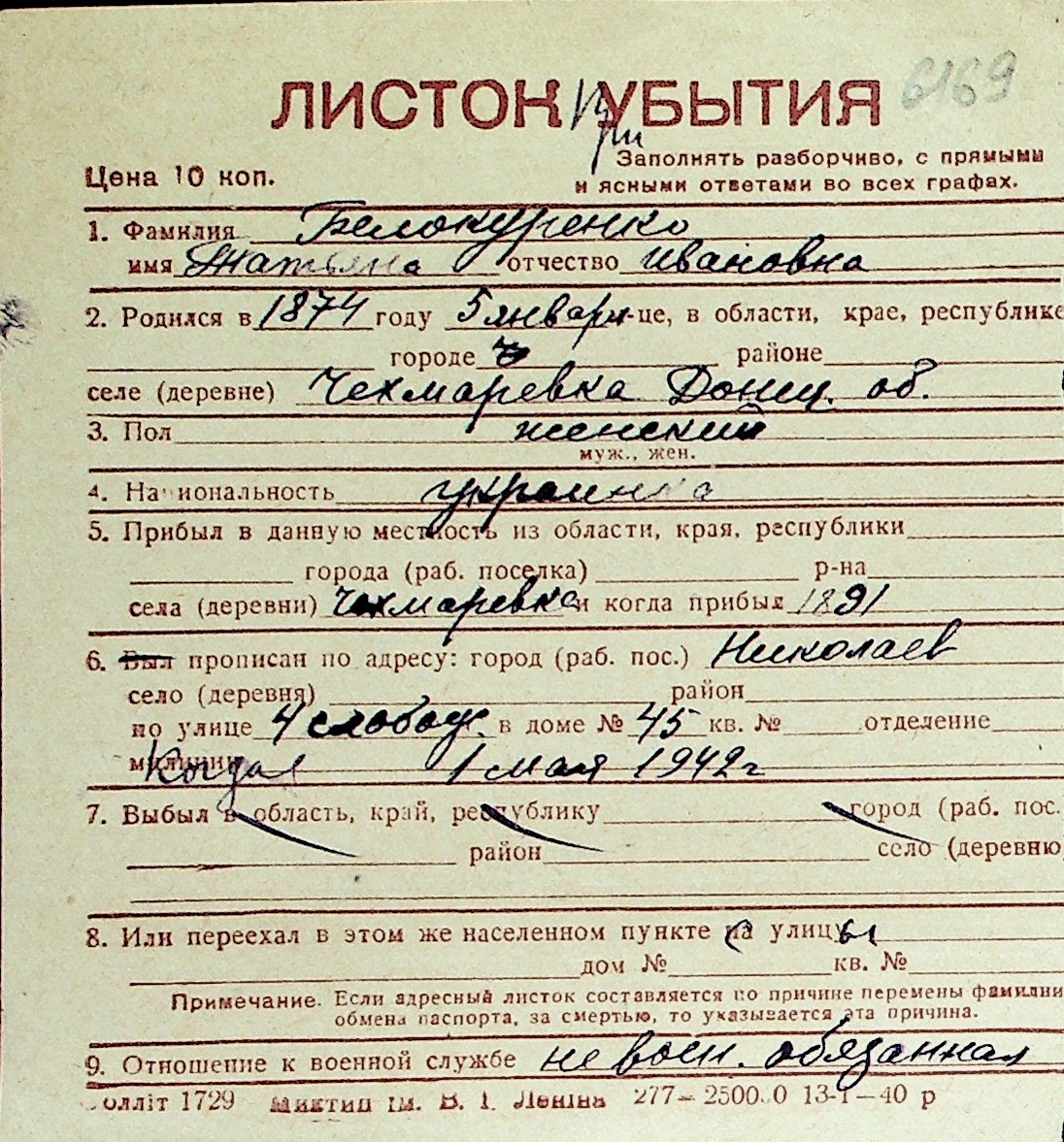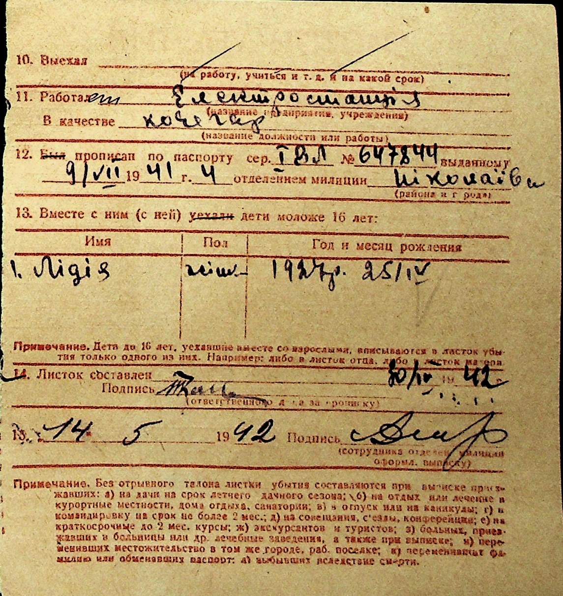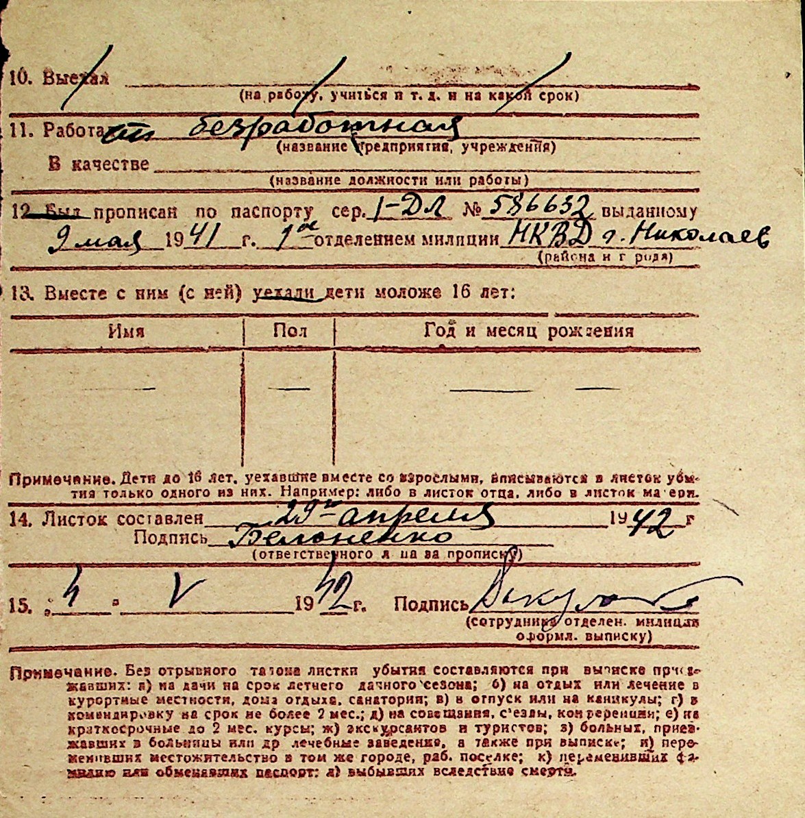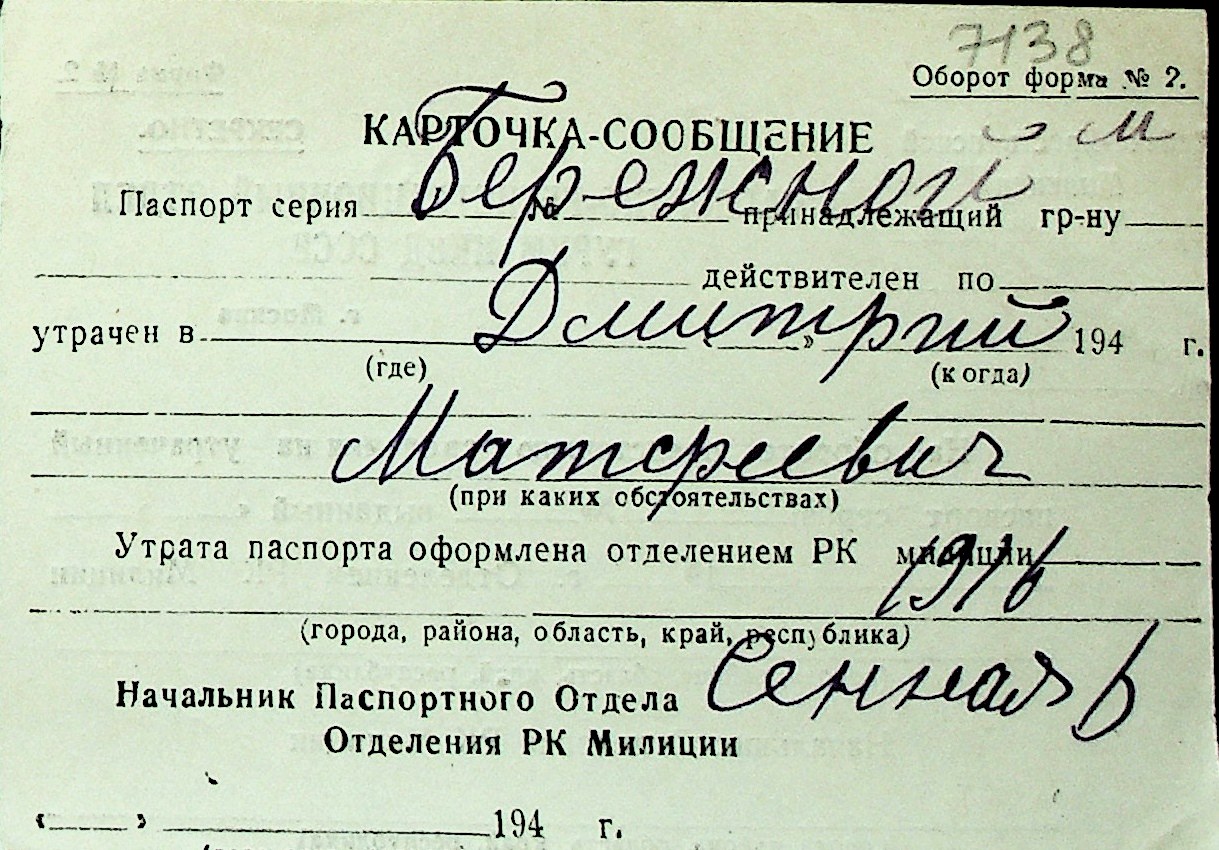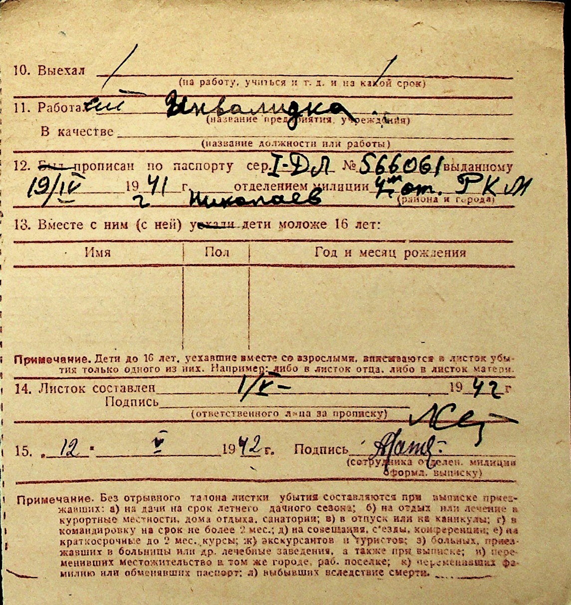 ◦ ◦ Перелік карток на осіб, які мешкали у м. Миколаїв у період окупації 1941–1944 років