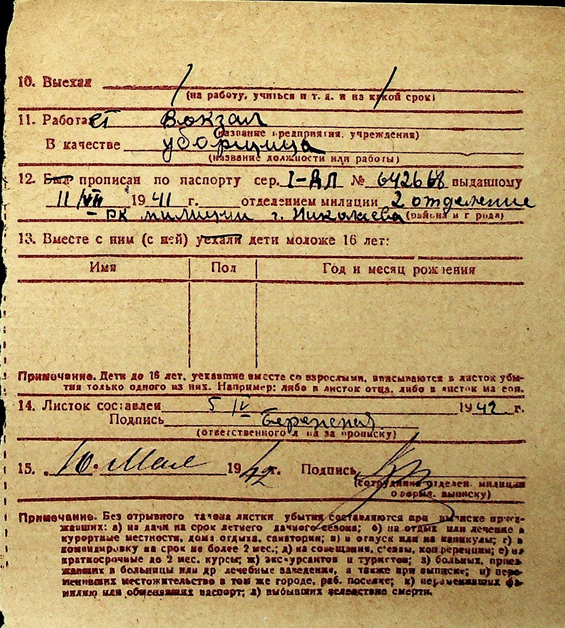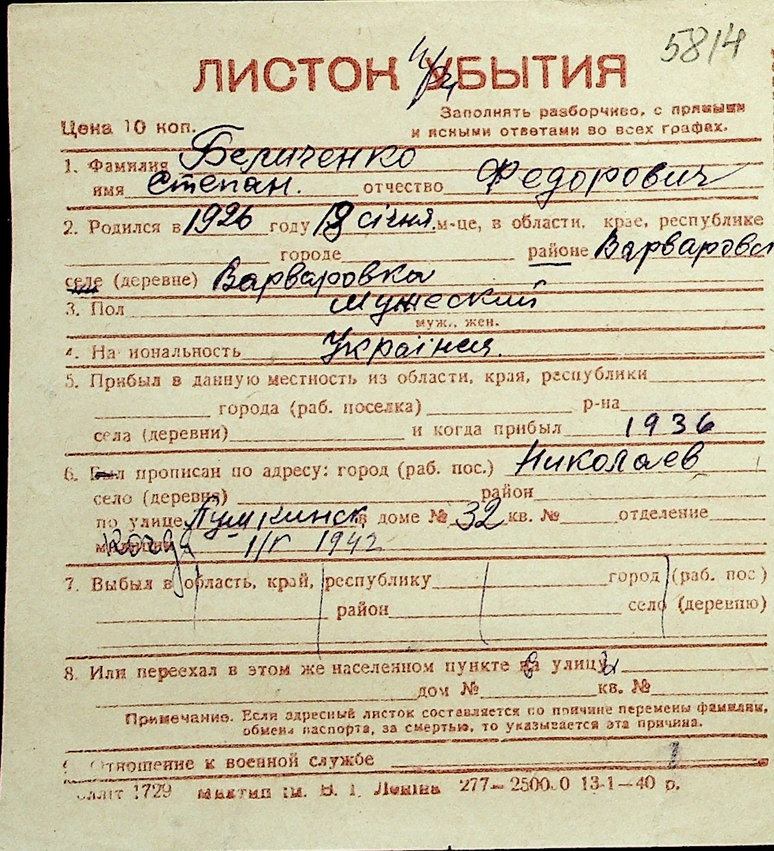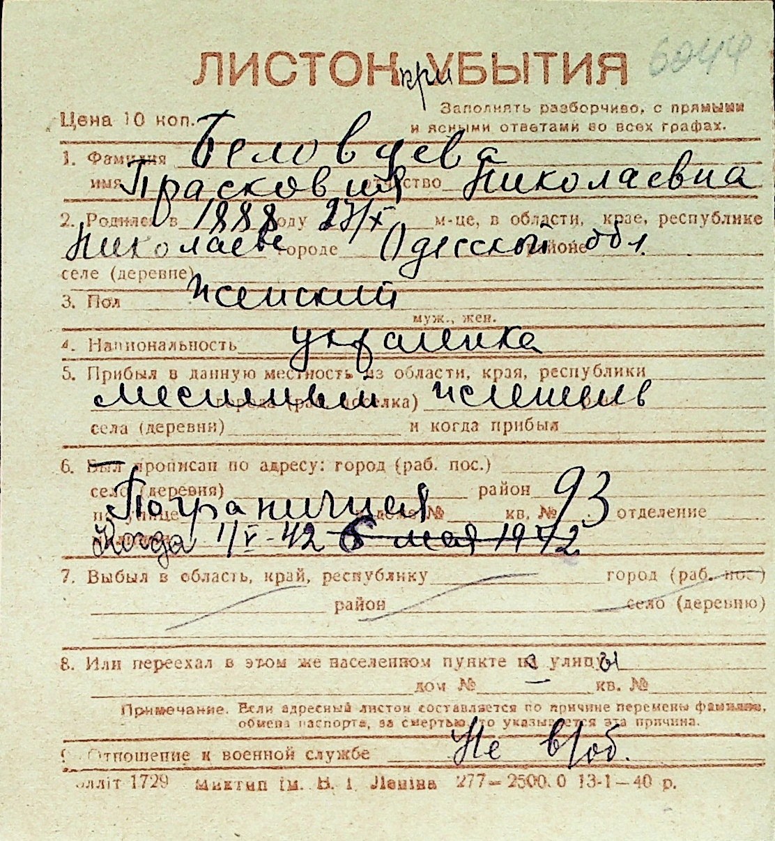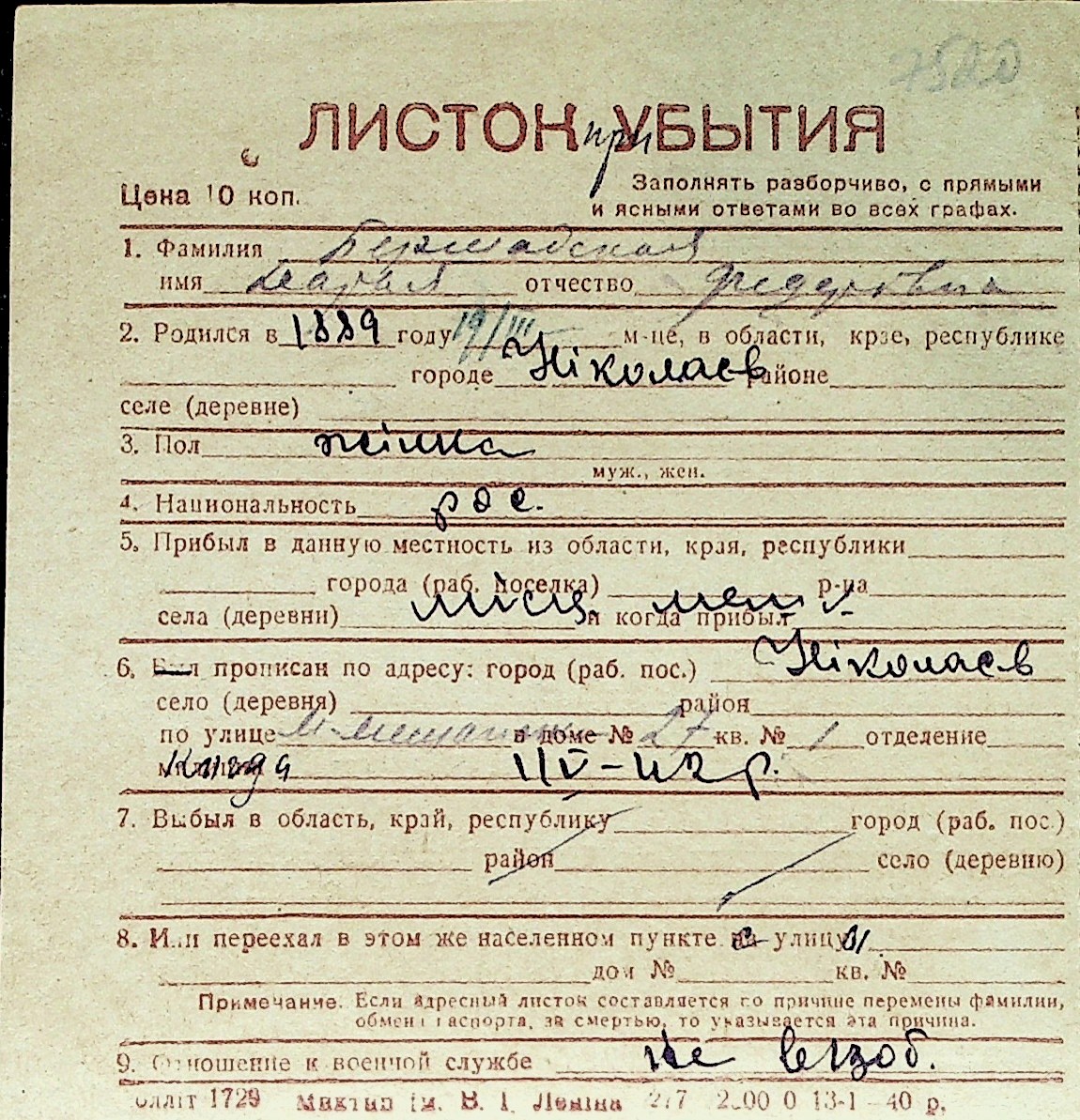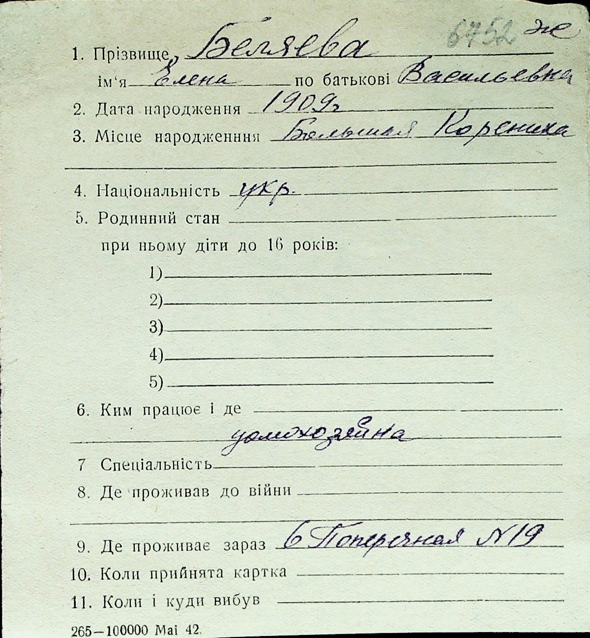◦ ◦ Перелік карток на осіб, які мешкали у м. Миколаїв у період окупації 1941–1944 років