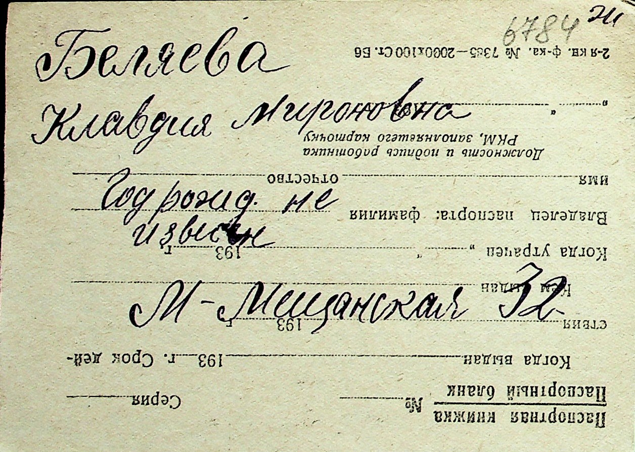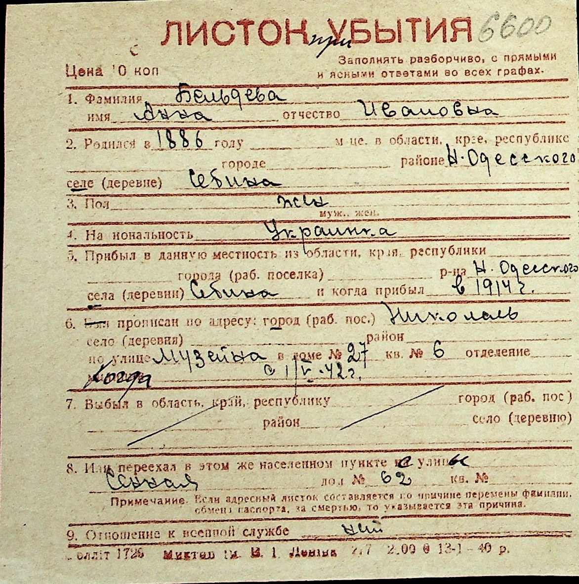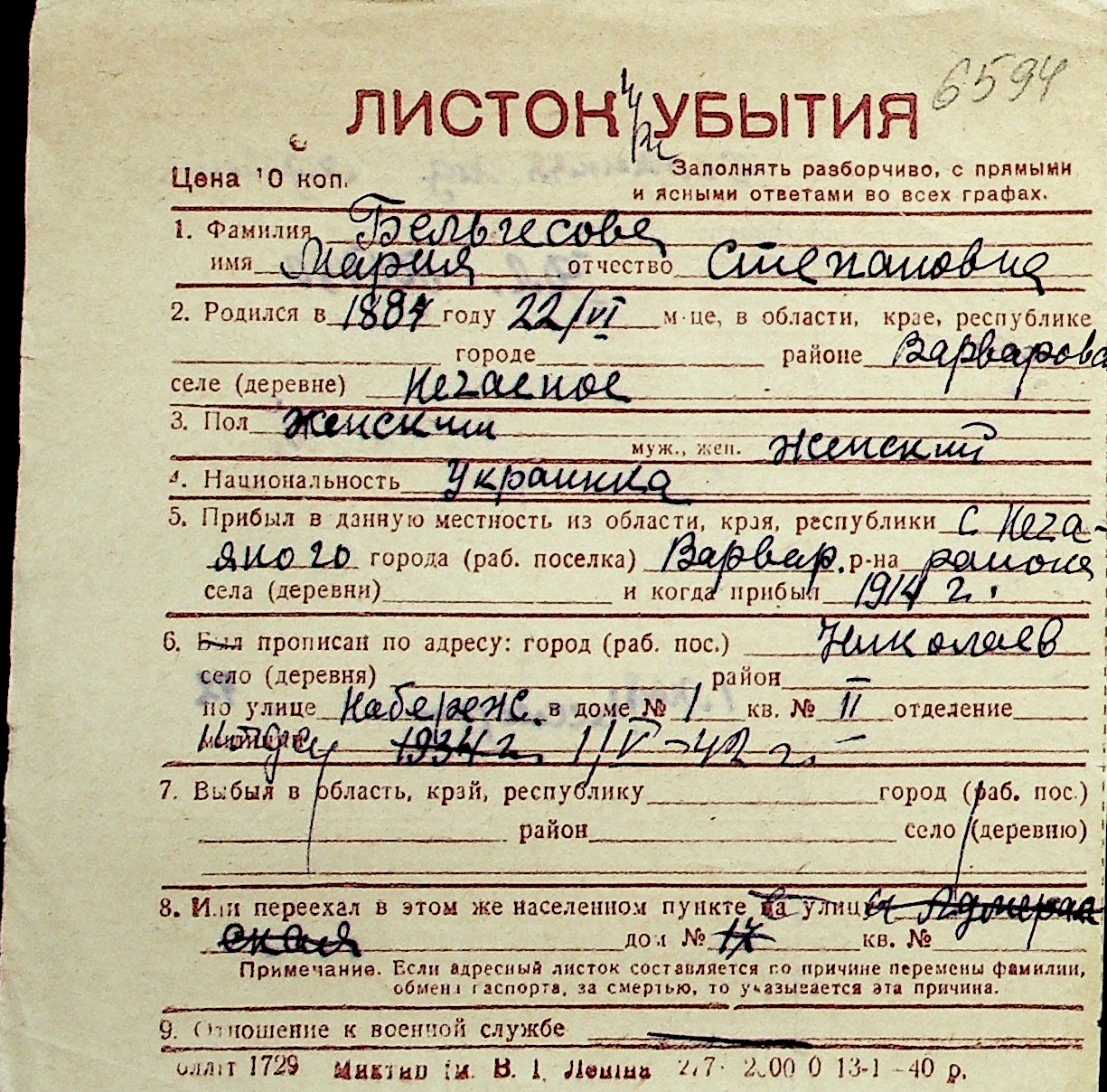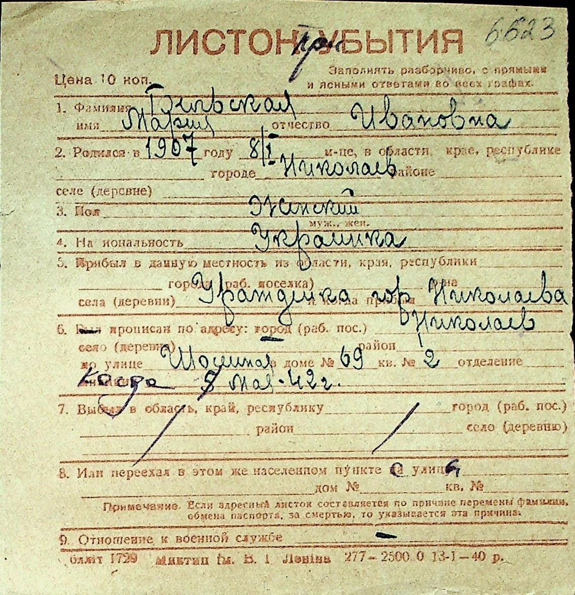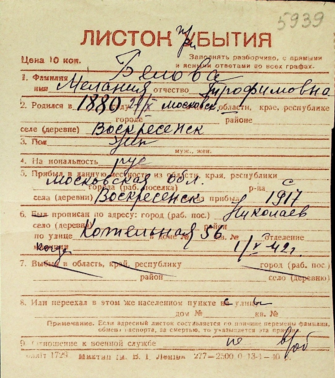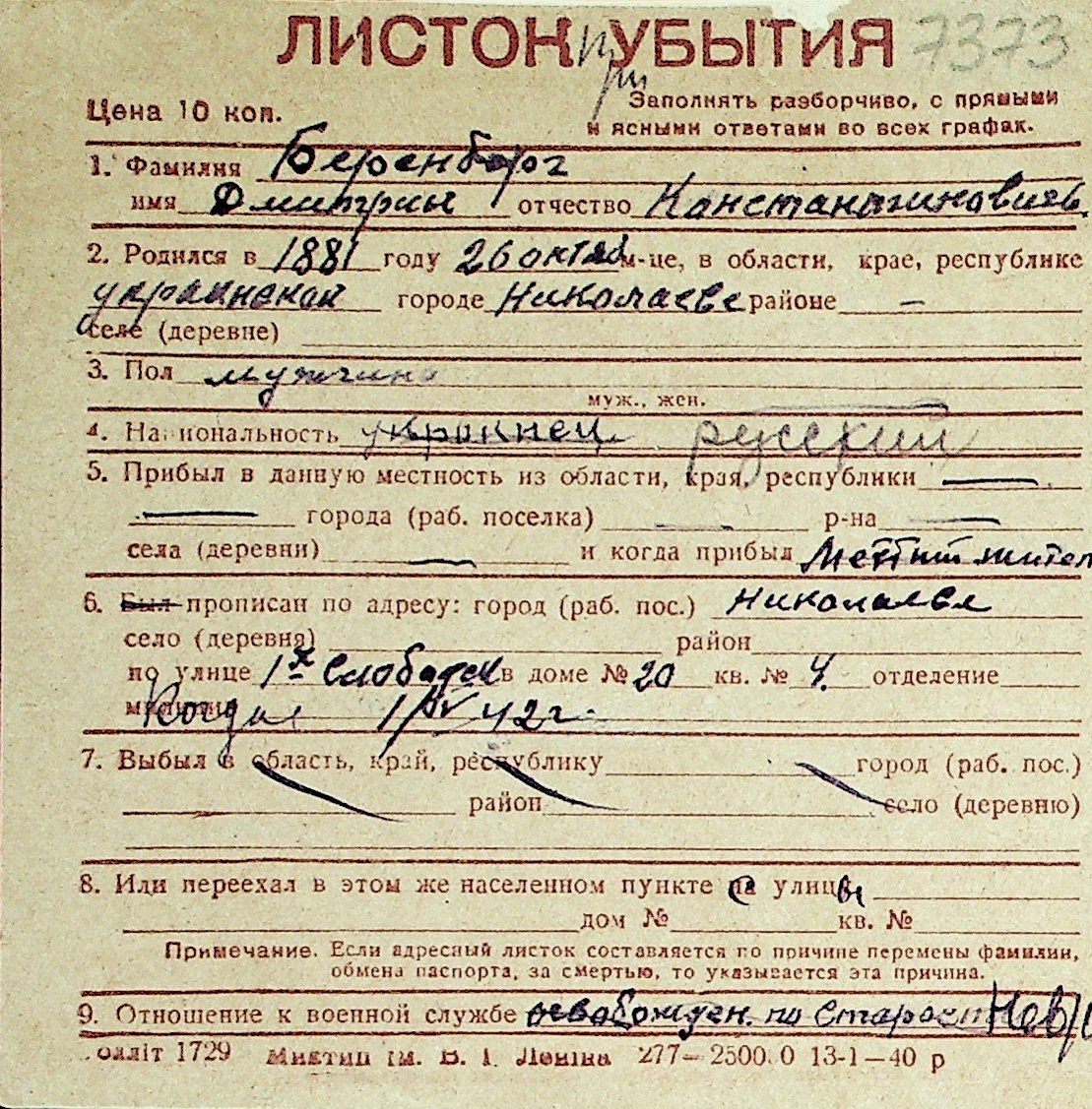 ◦ ◦ Перелік карток на осіб, які мешкали у м. Миколаїв у період окупації 1941–1944 років