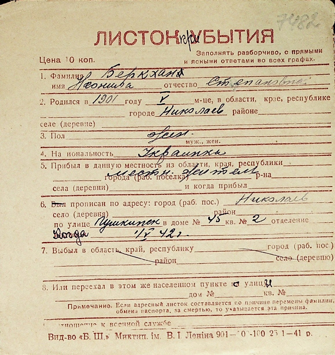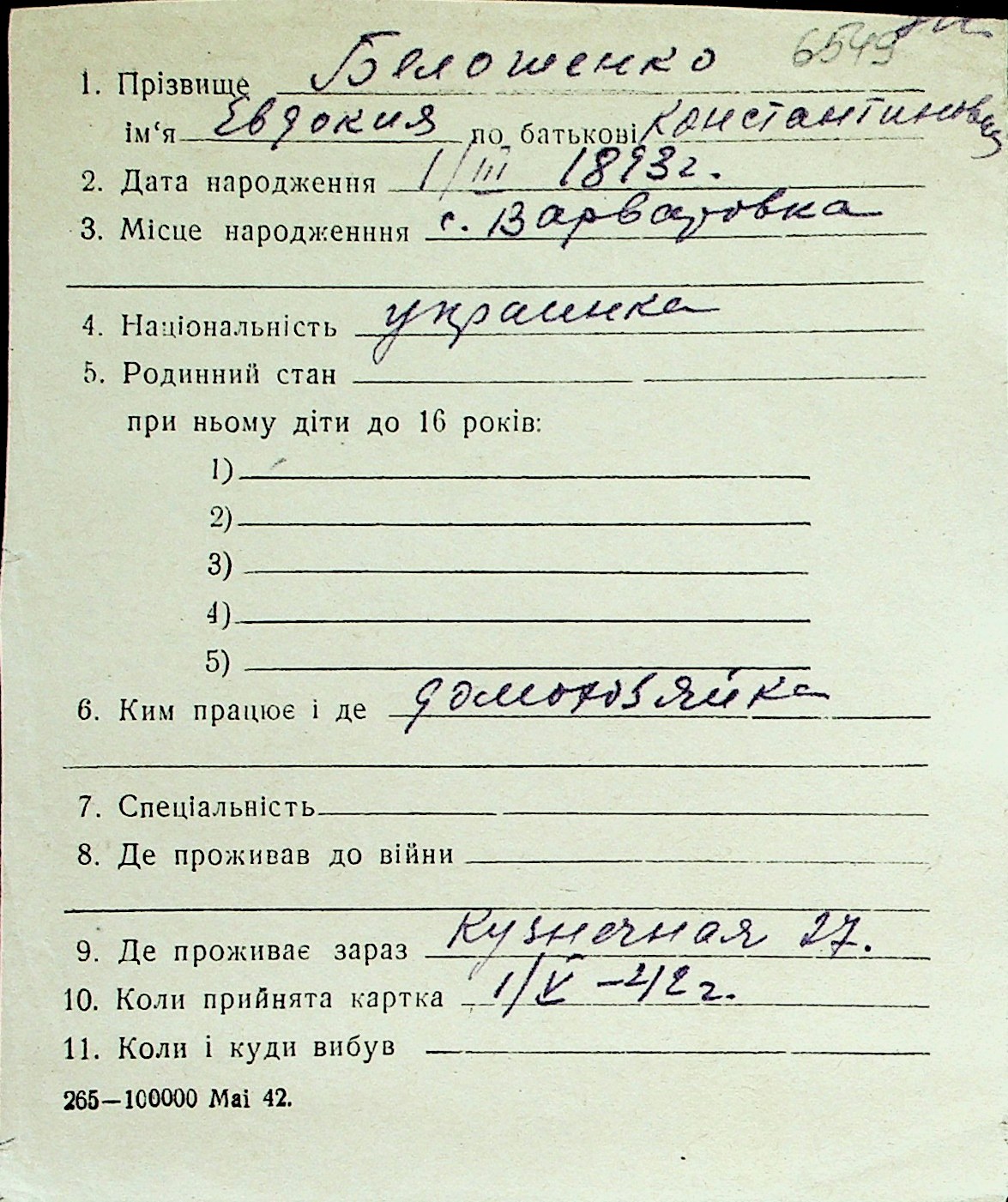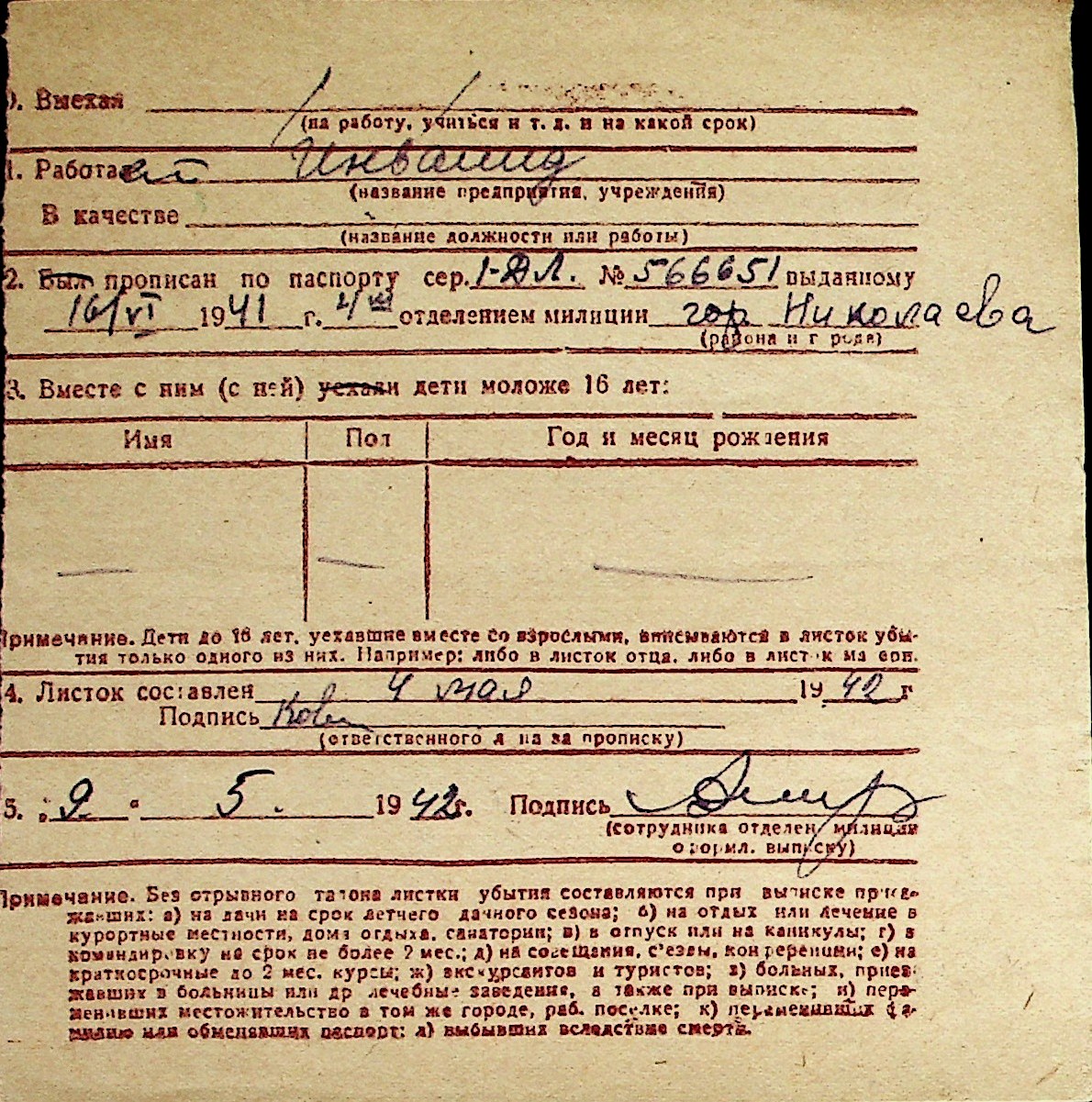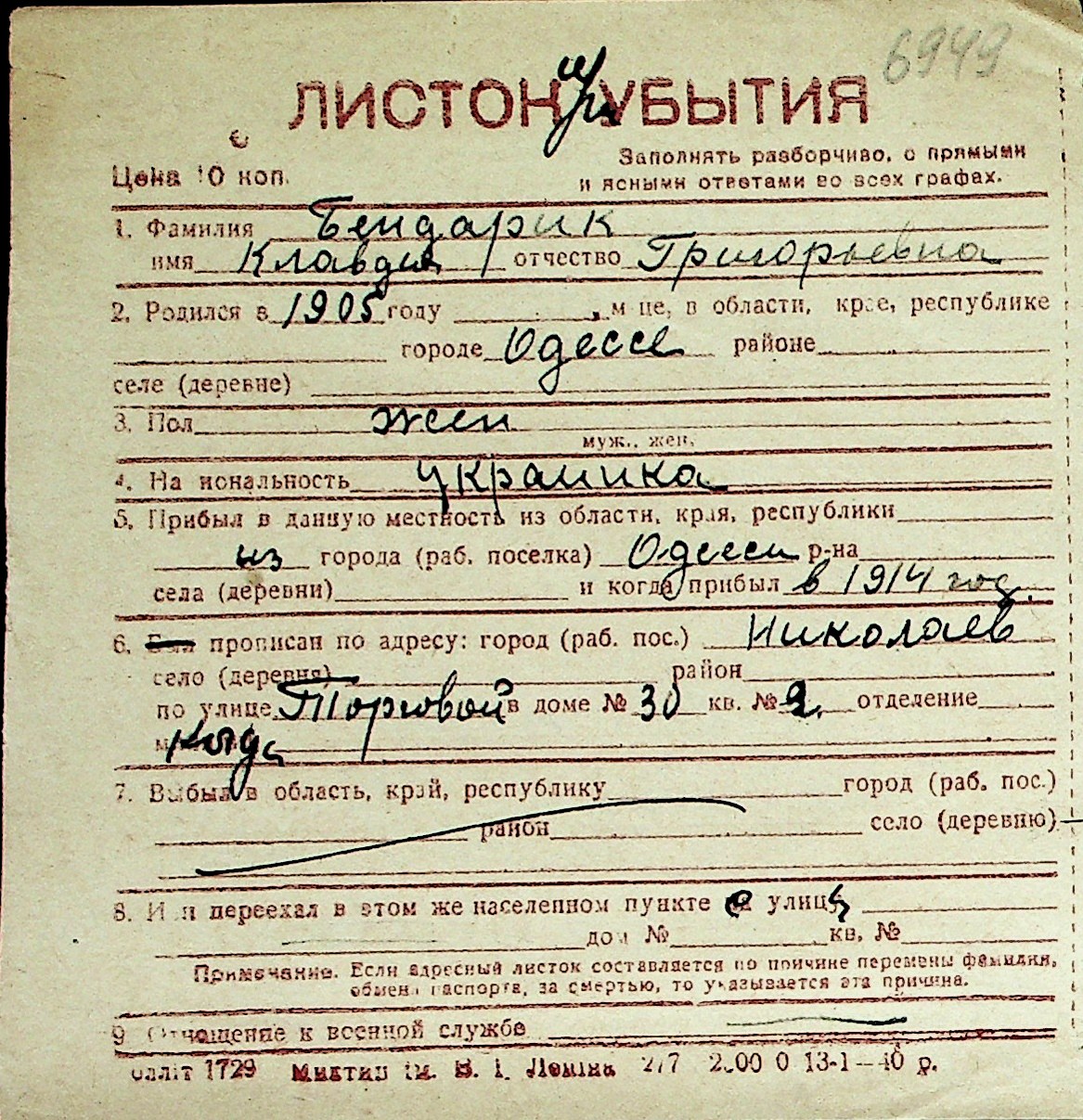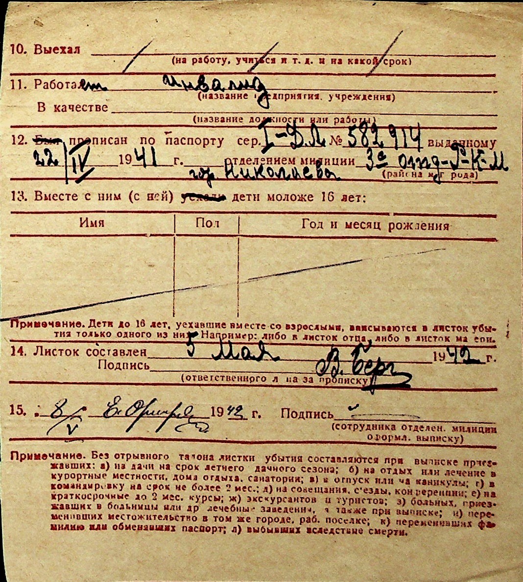 ◦ ◦ Перелік карток на осіб, які мешкали у м. Миколаїв у період окупації 1941–1944 років