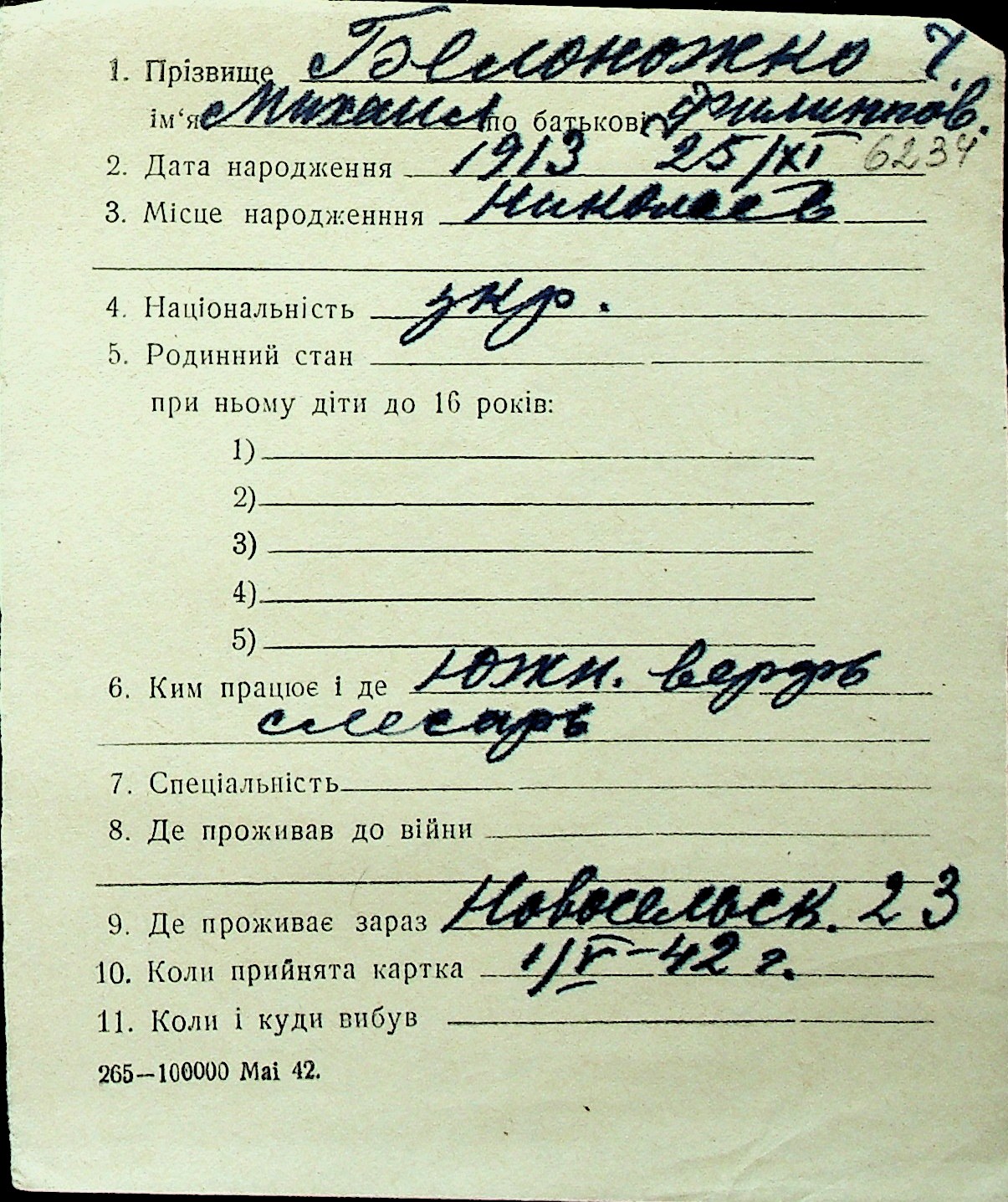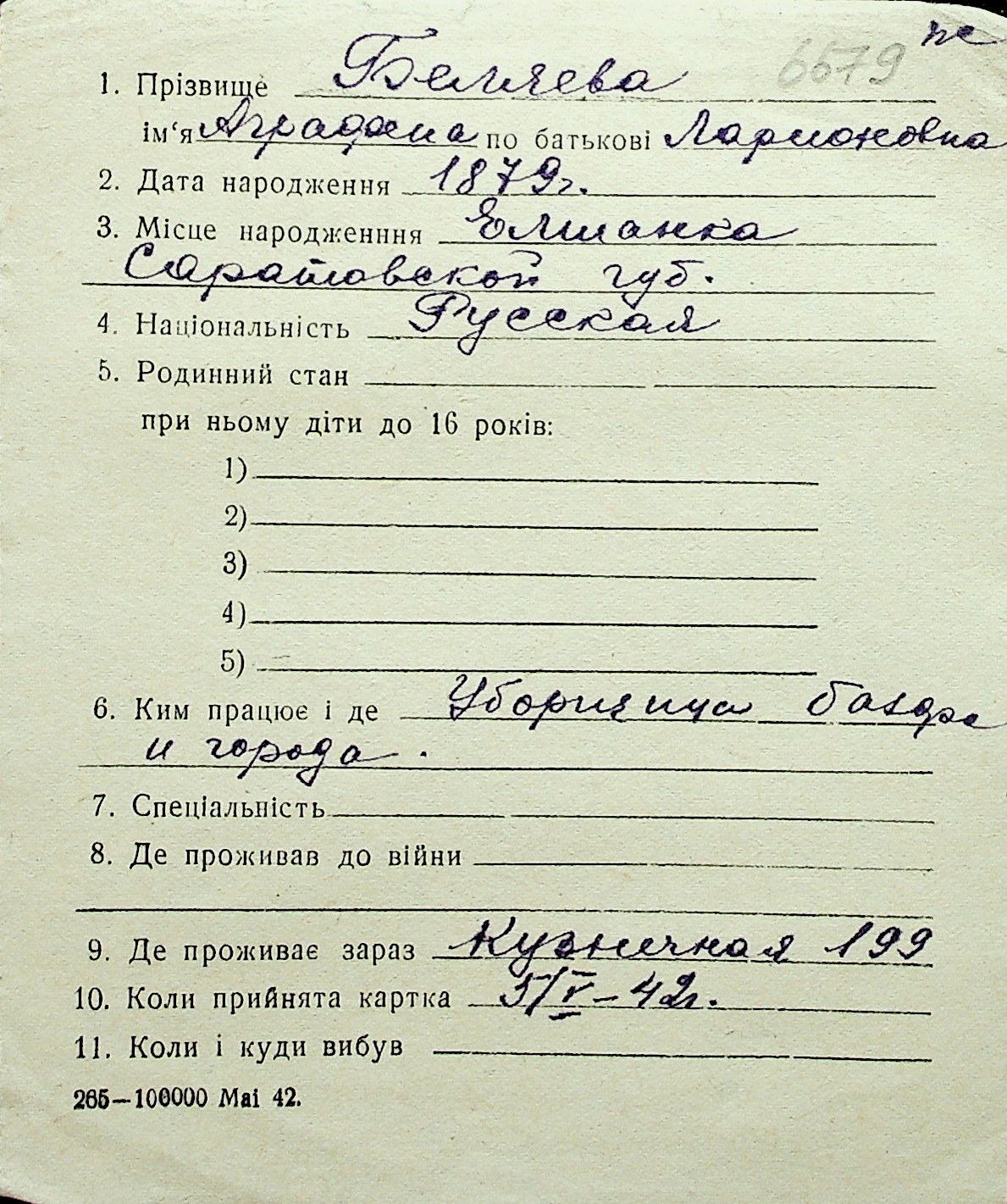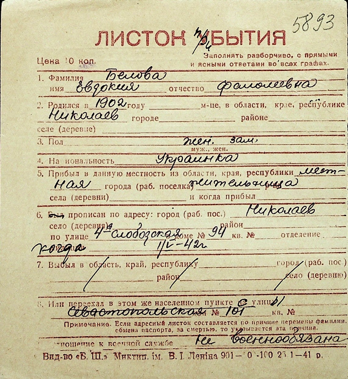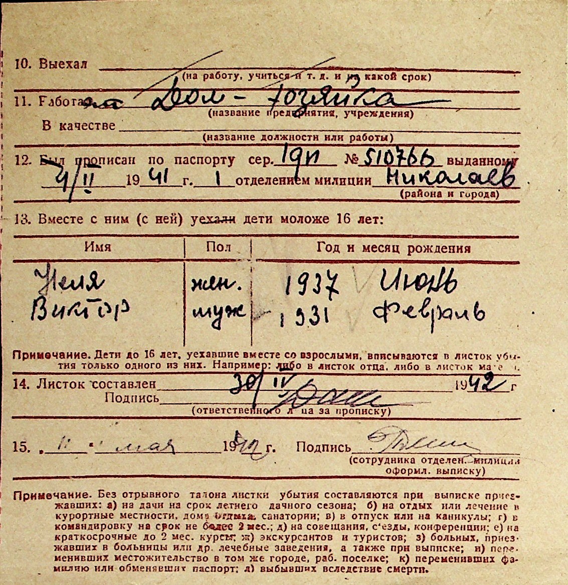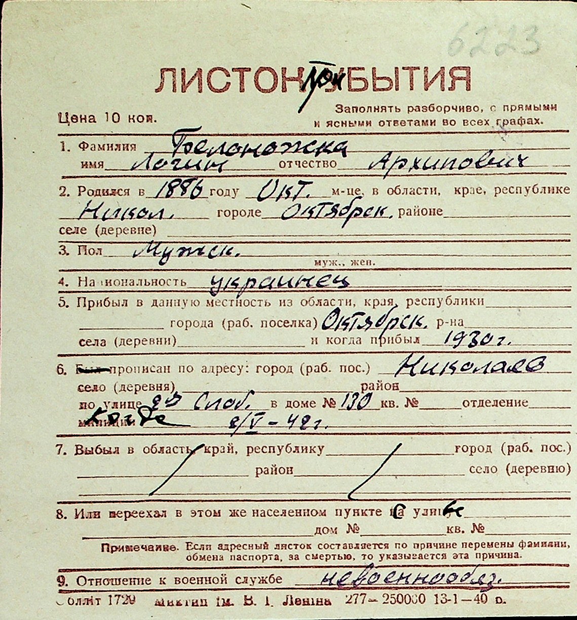 ◦ ◦ Перелік карток на осіб, які мешкали у м. Миколаїв у період окупації 1941–1944 років