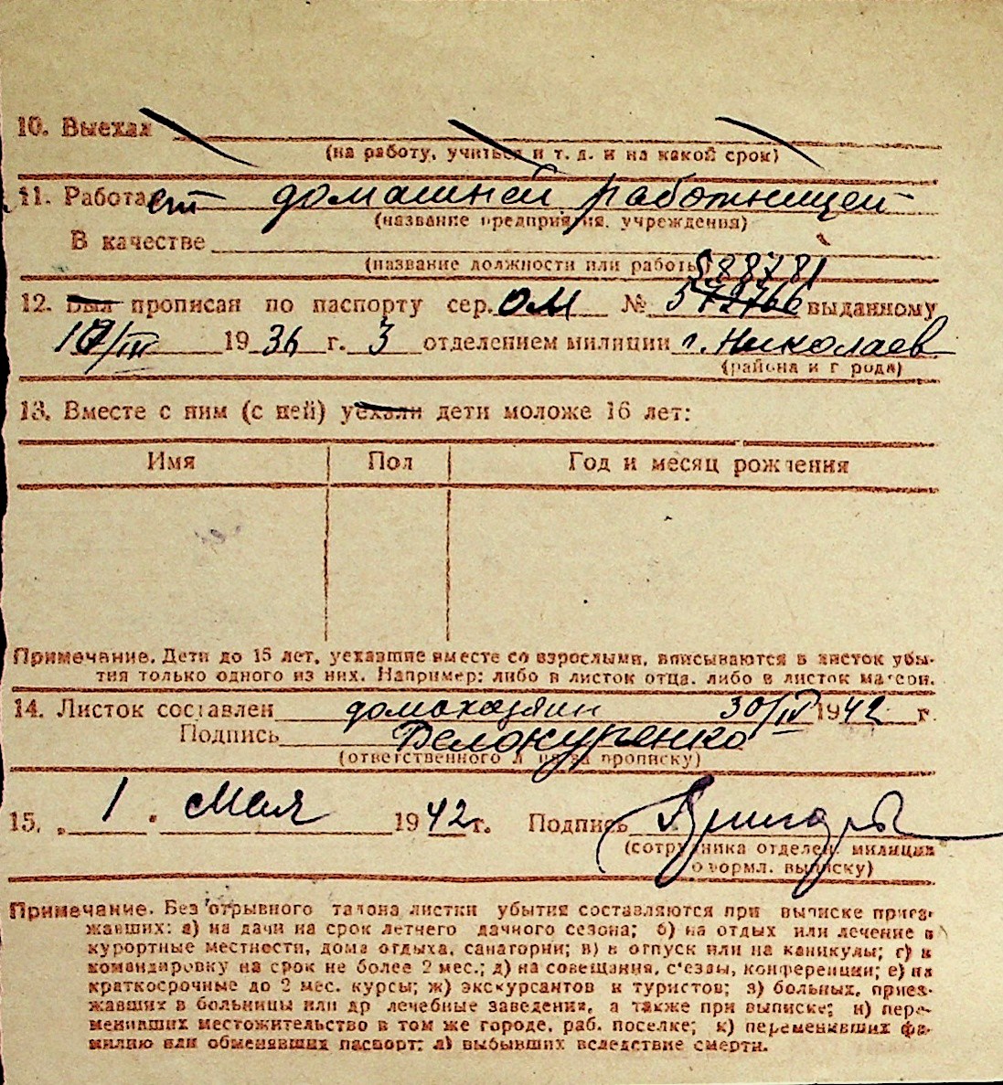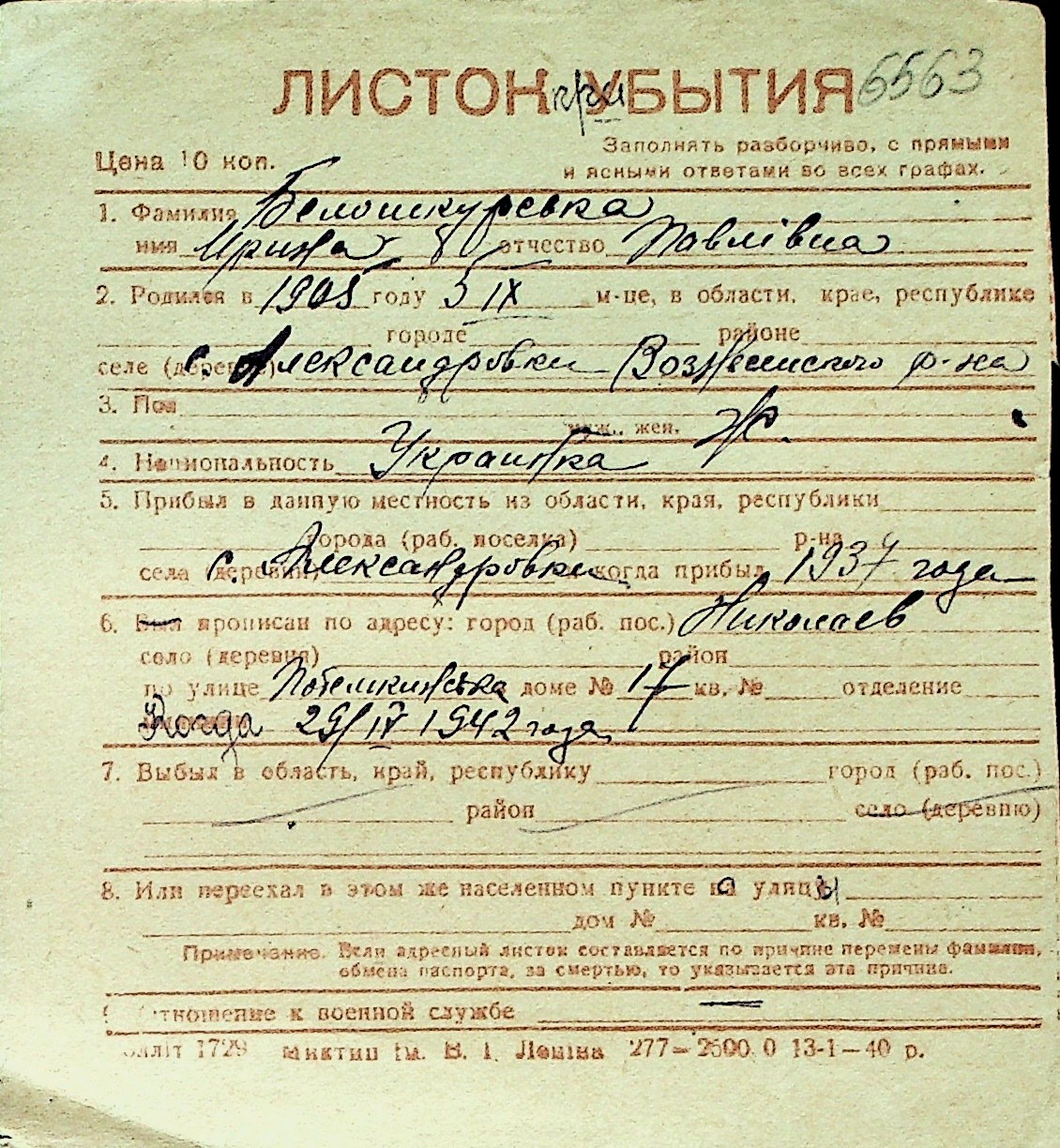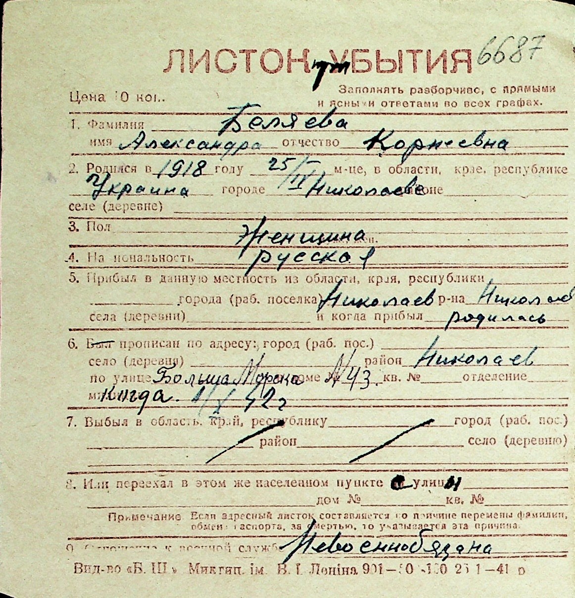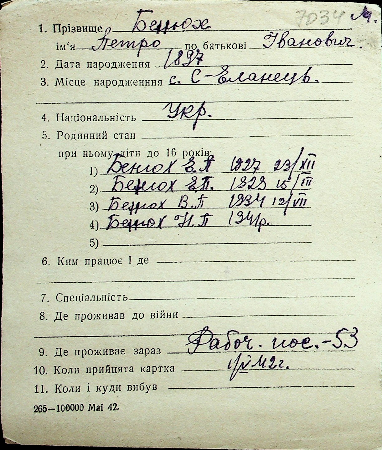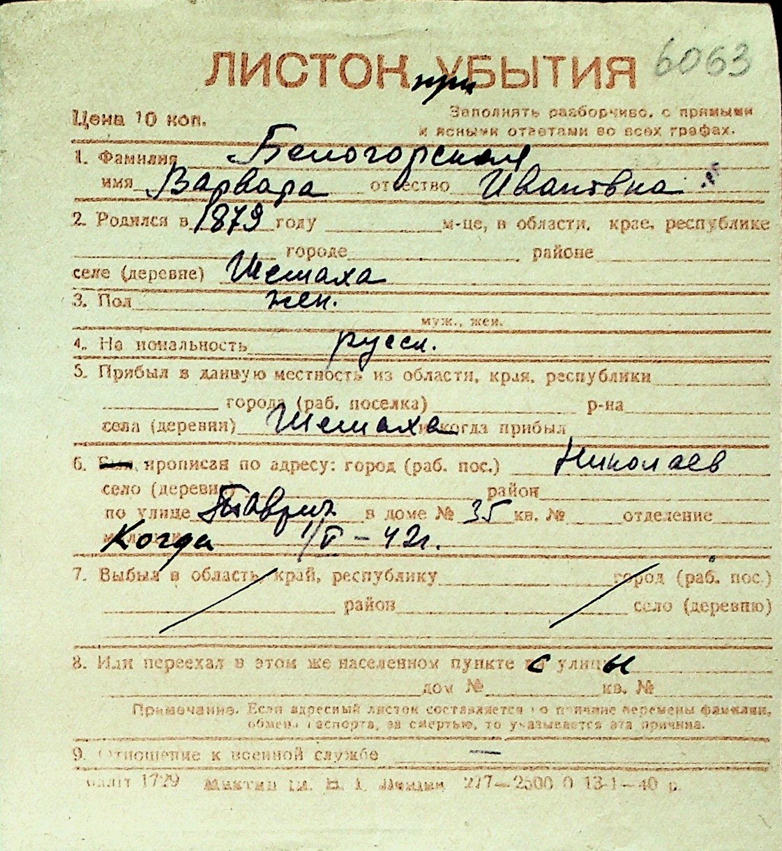 ◦ ◦ Перелік карток на осіб, які мешкали у м. Миколаїв у період окупації 1941–1944 років