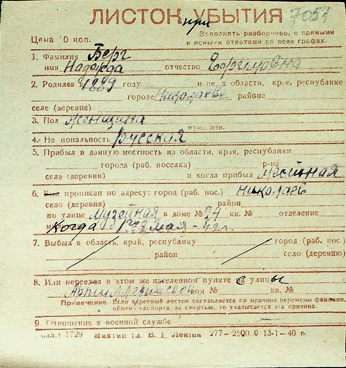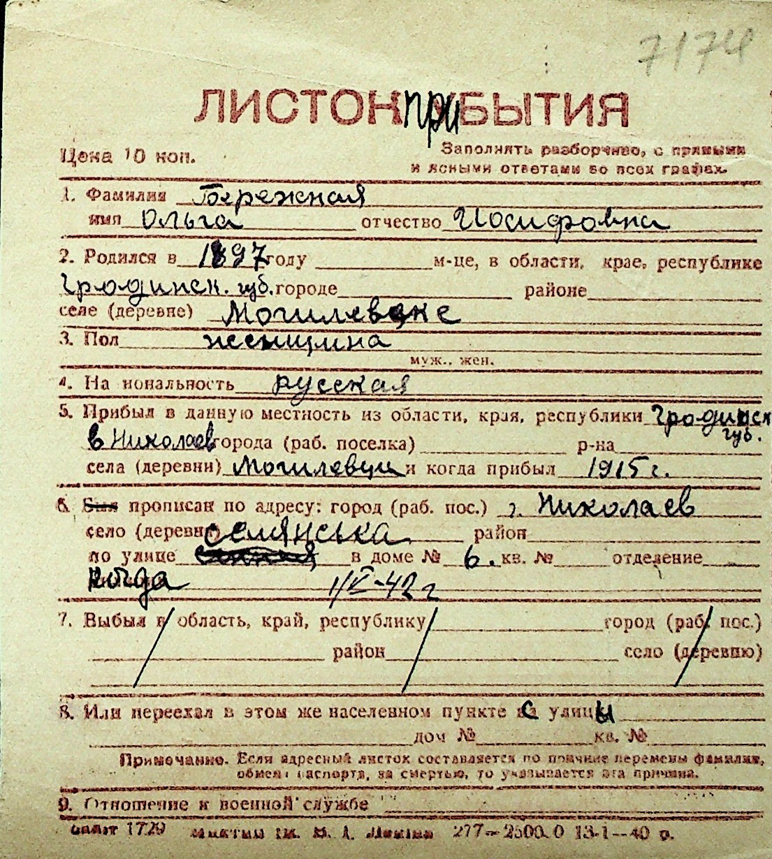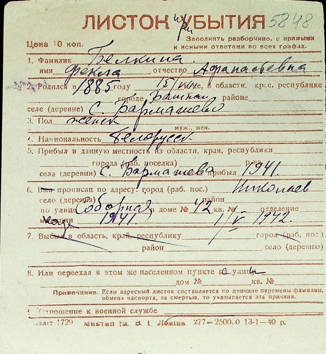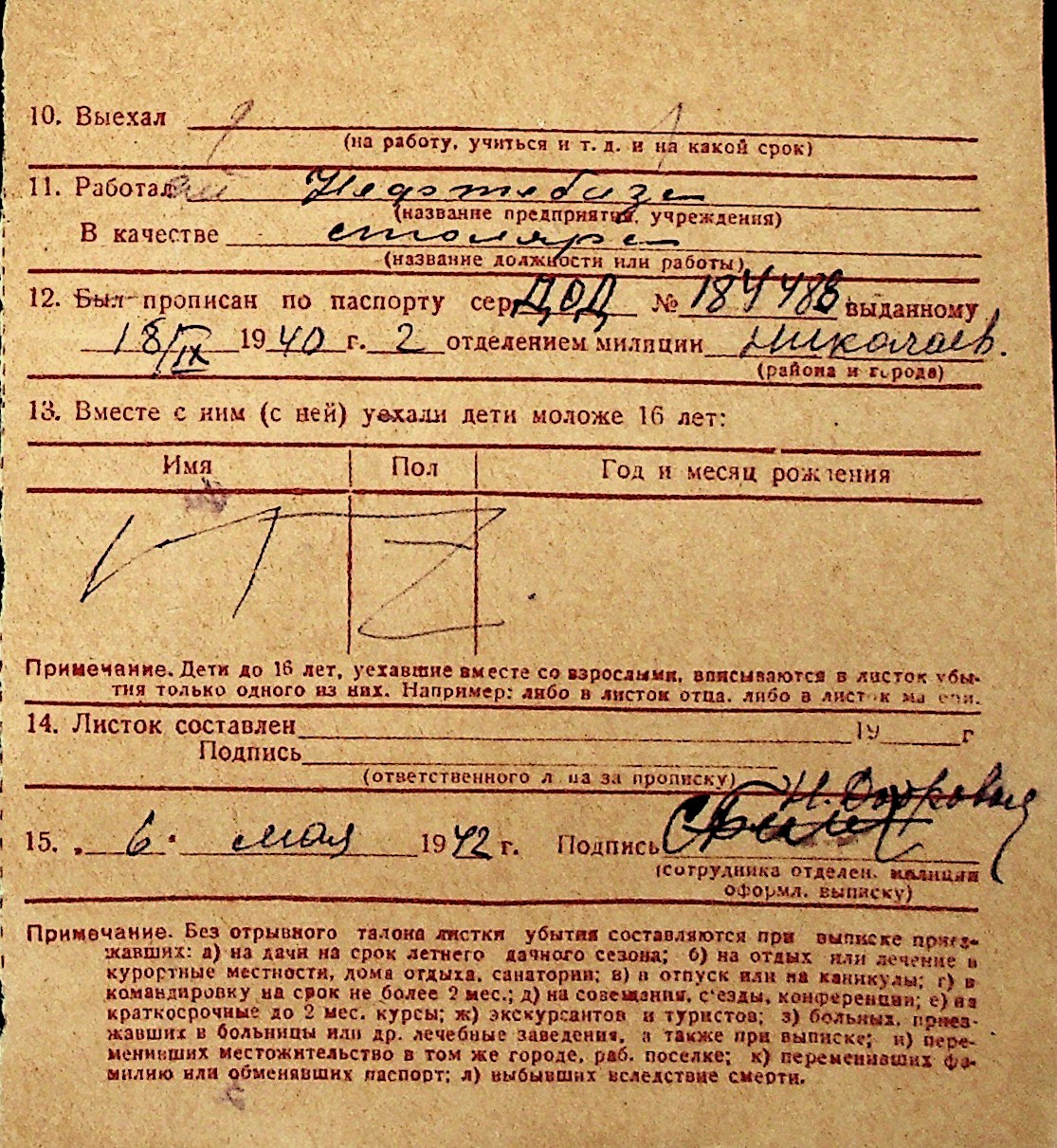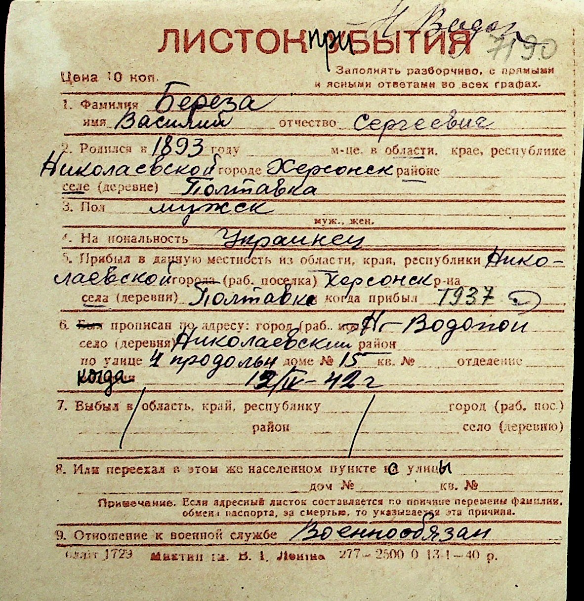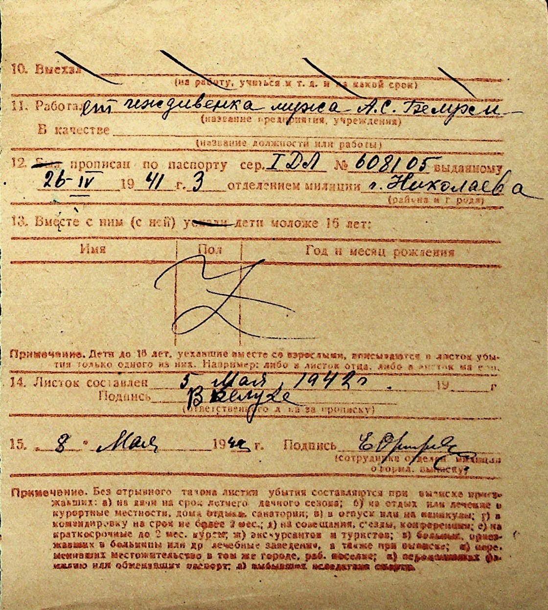 ◦ ◦ Перелік карток на осіб, які мешкали у м. Миколаїв у період окупації 1941–1944 років