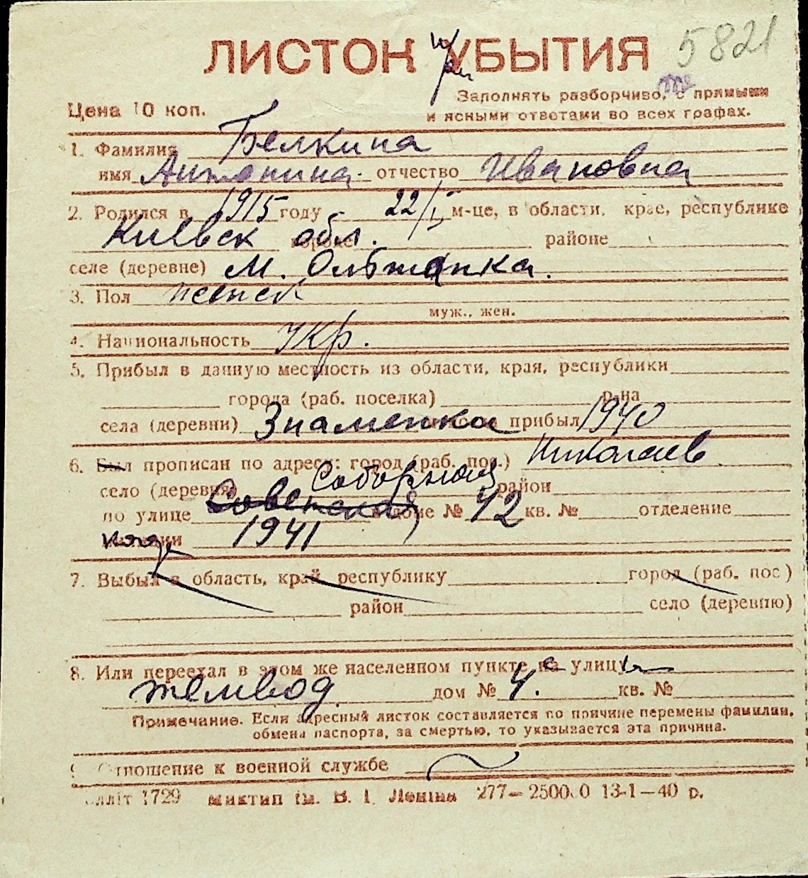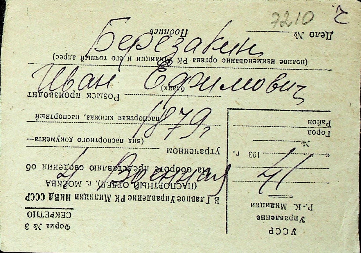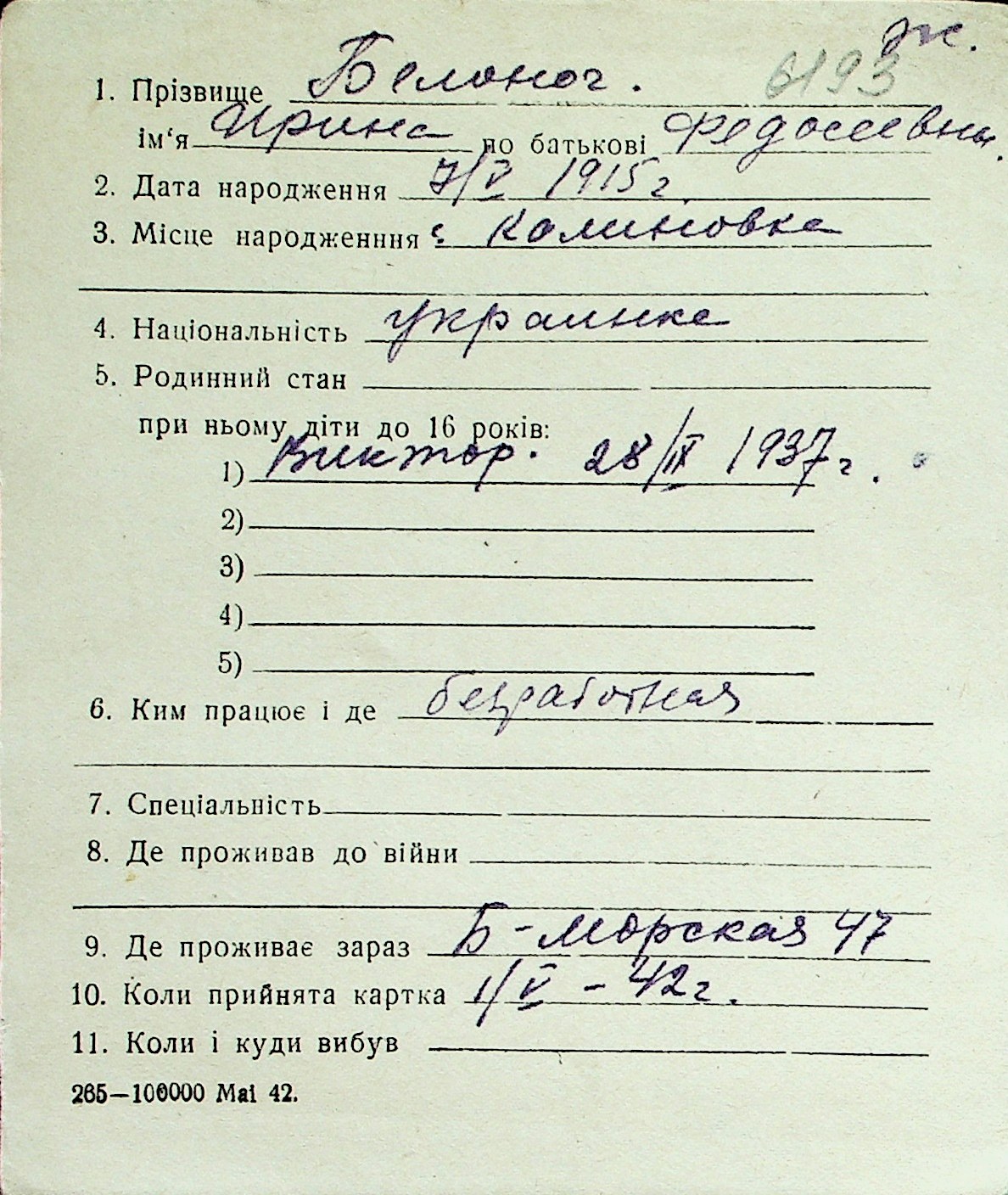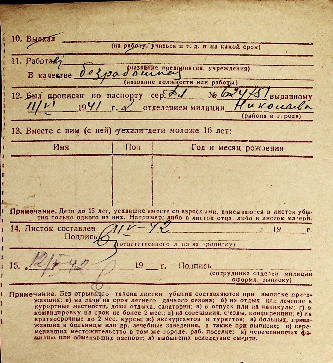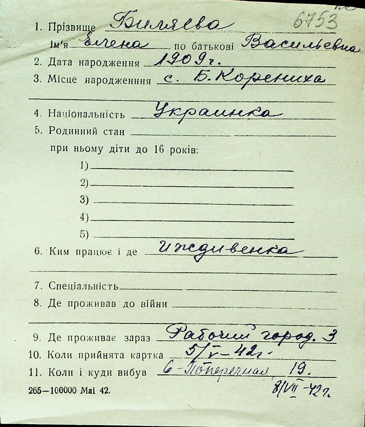 ◦ ◦ Перелік карток на осіб, які мешкали у м. Миколаїв у період окупації 1941–1944 років