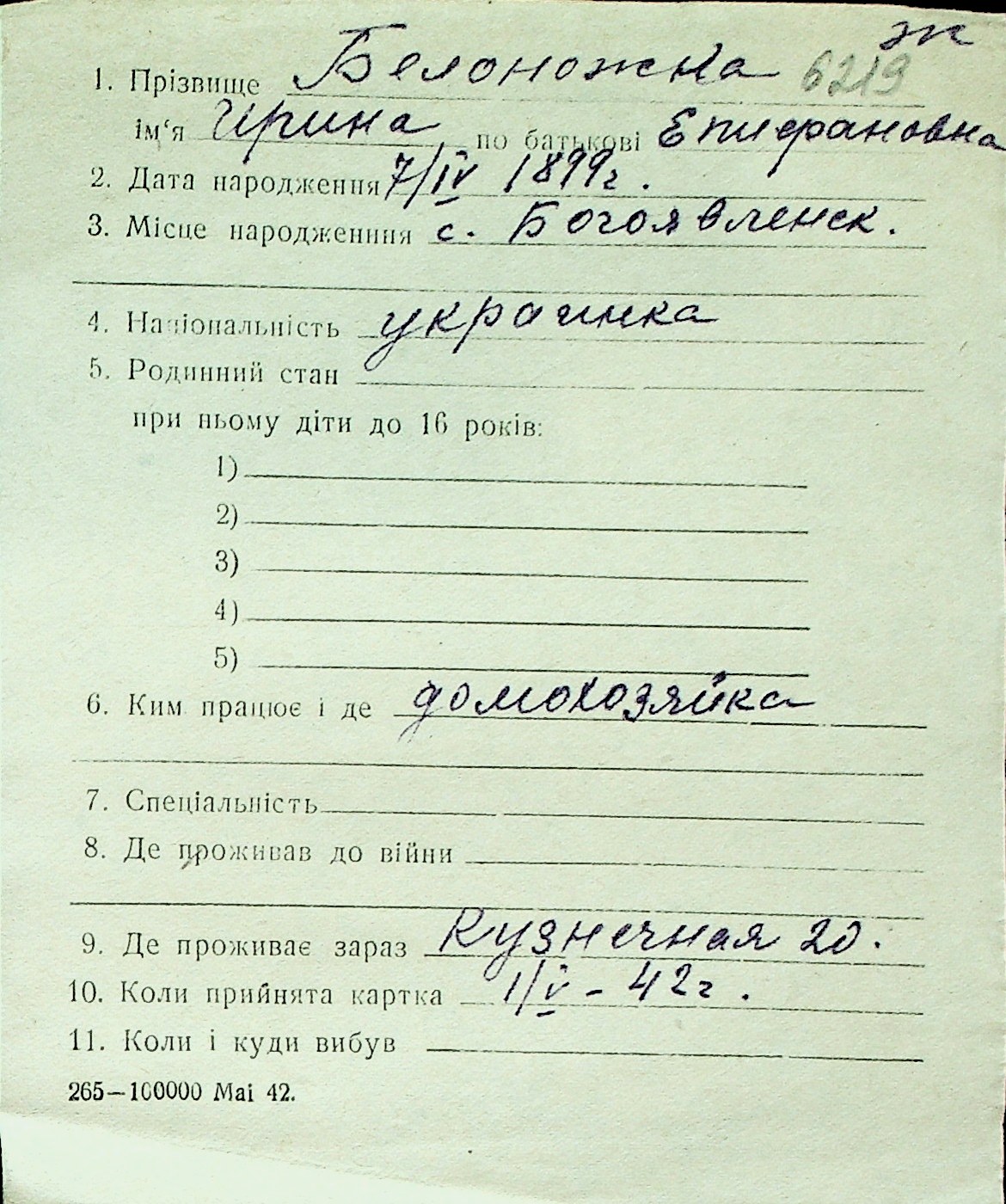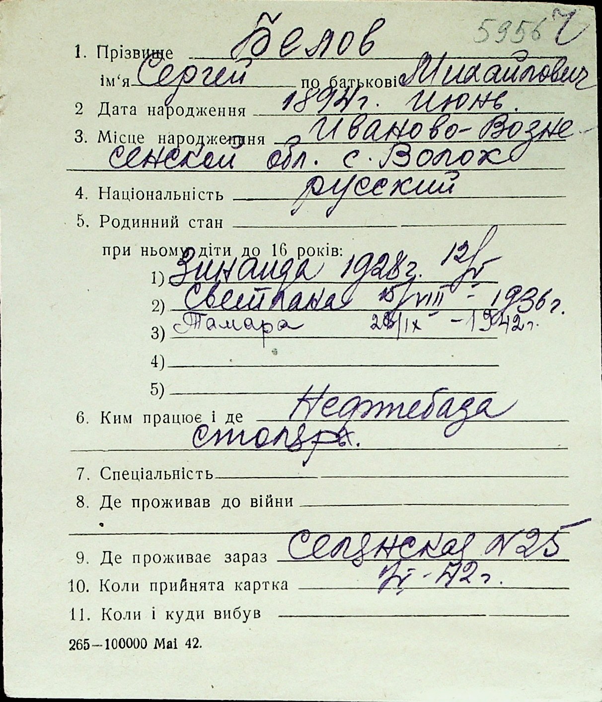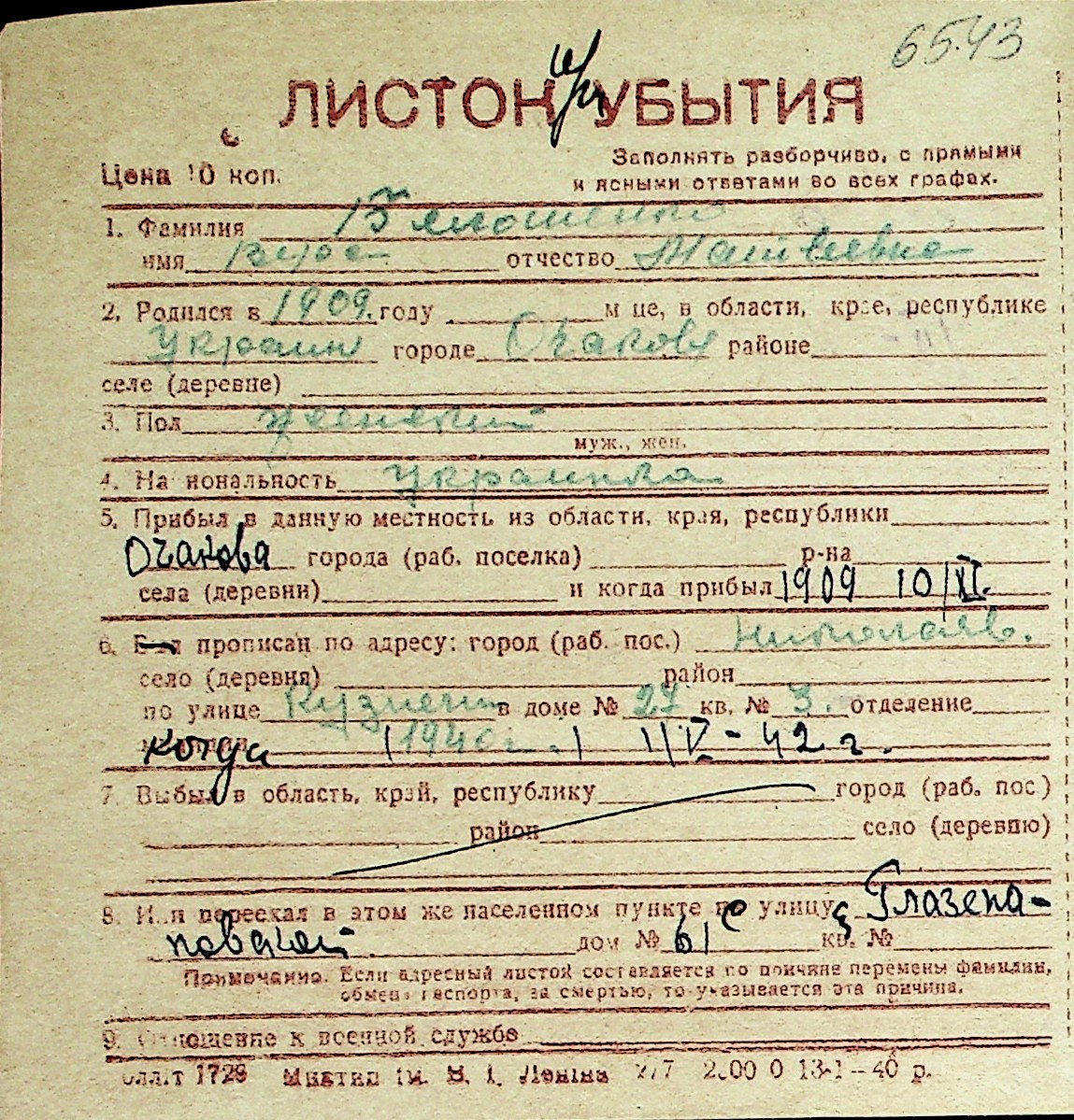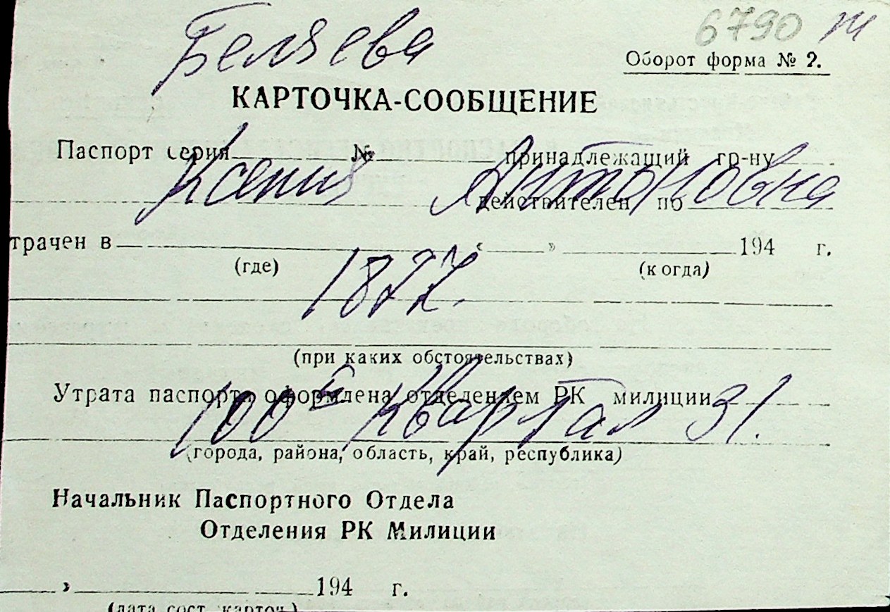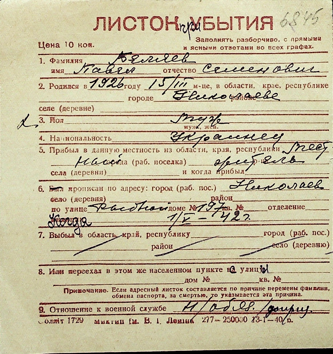 ◦ ◦ Перелік карток на осіб, які мешкали у м. Миколаїв у період окупації 1941–1944 років