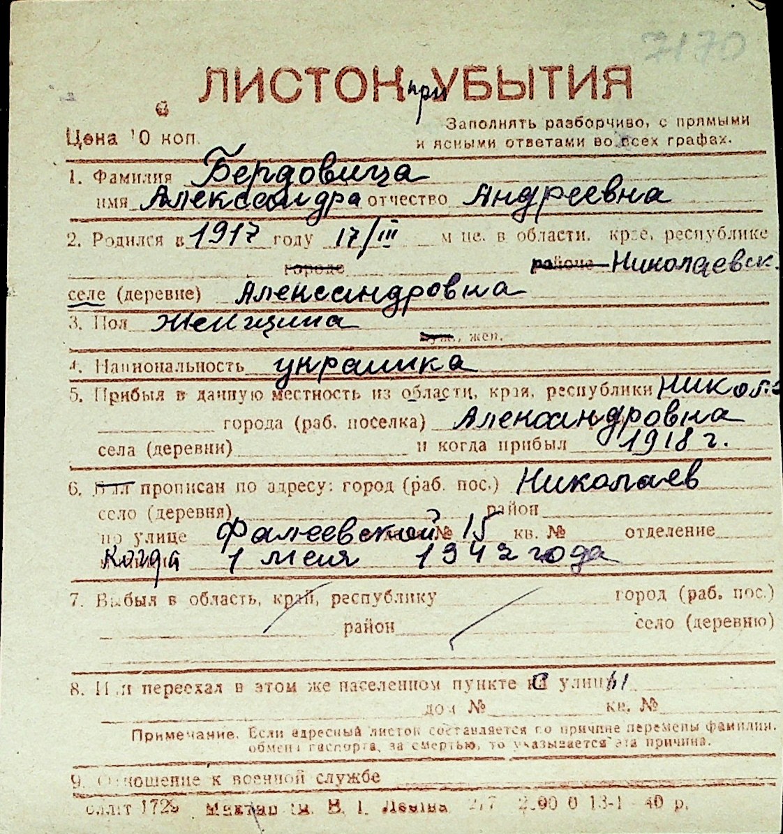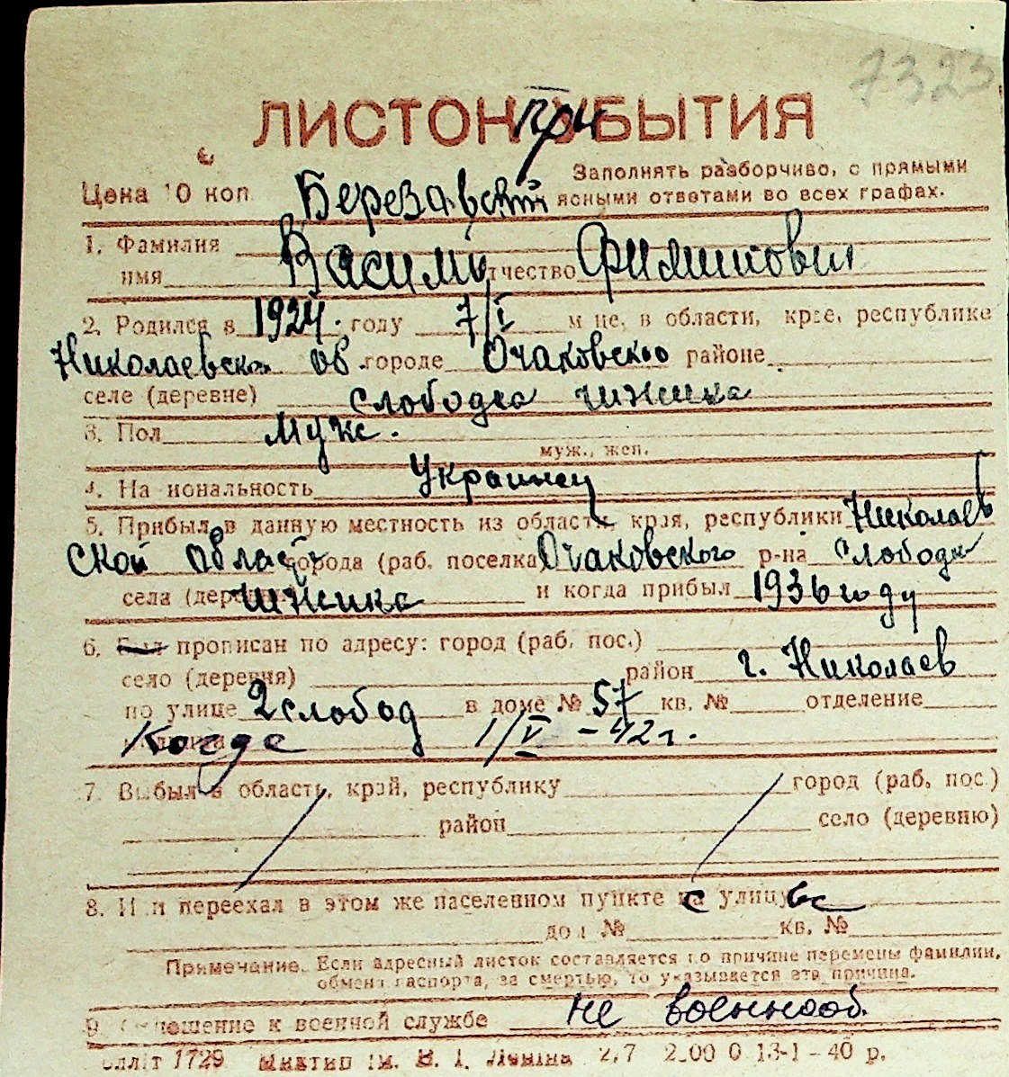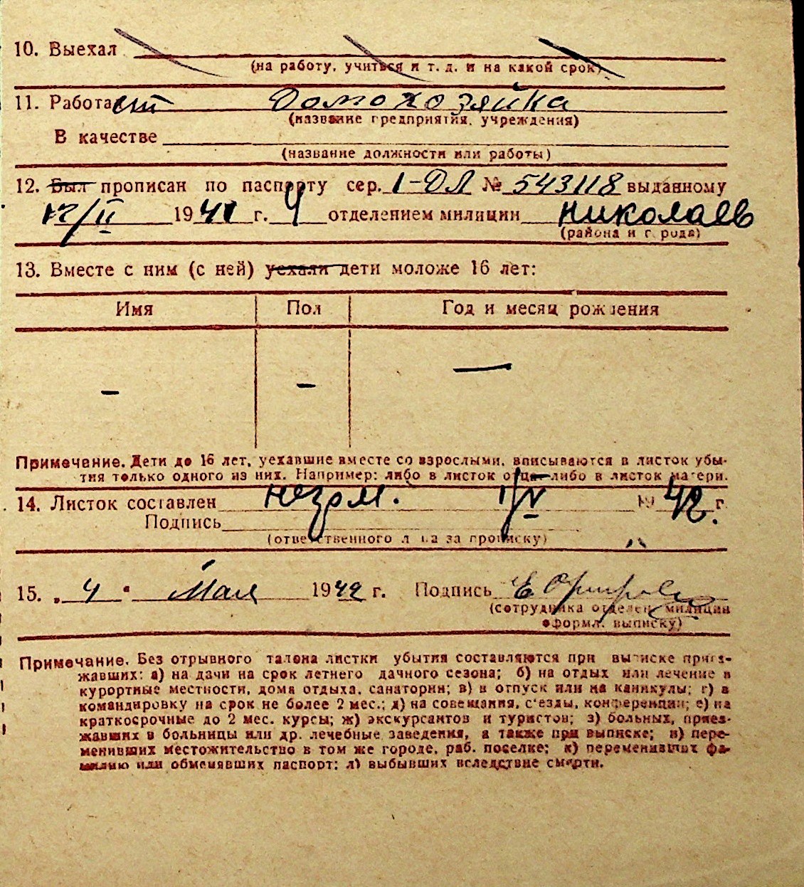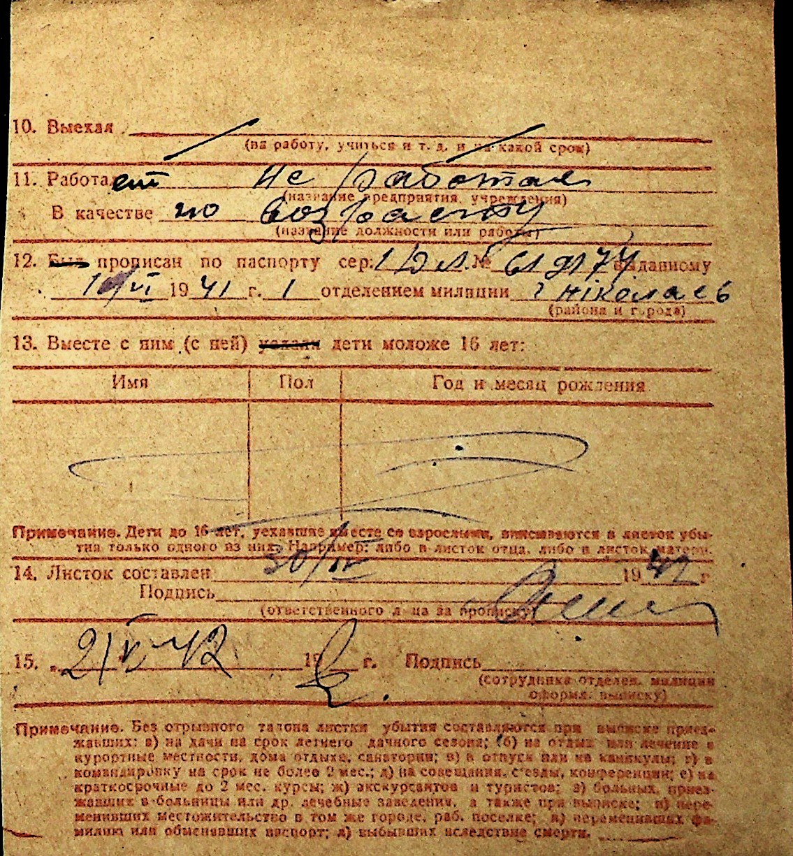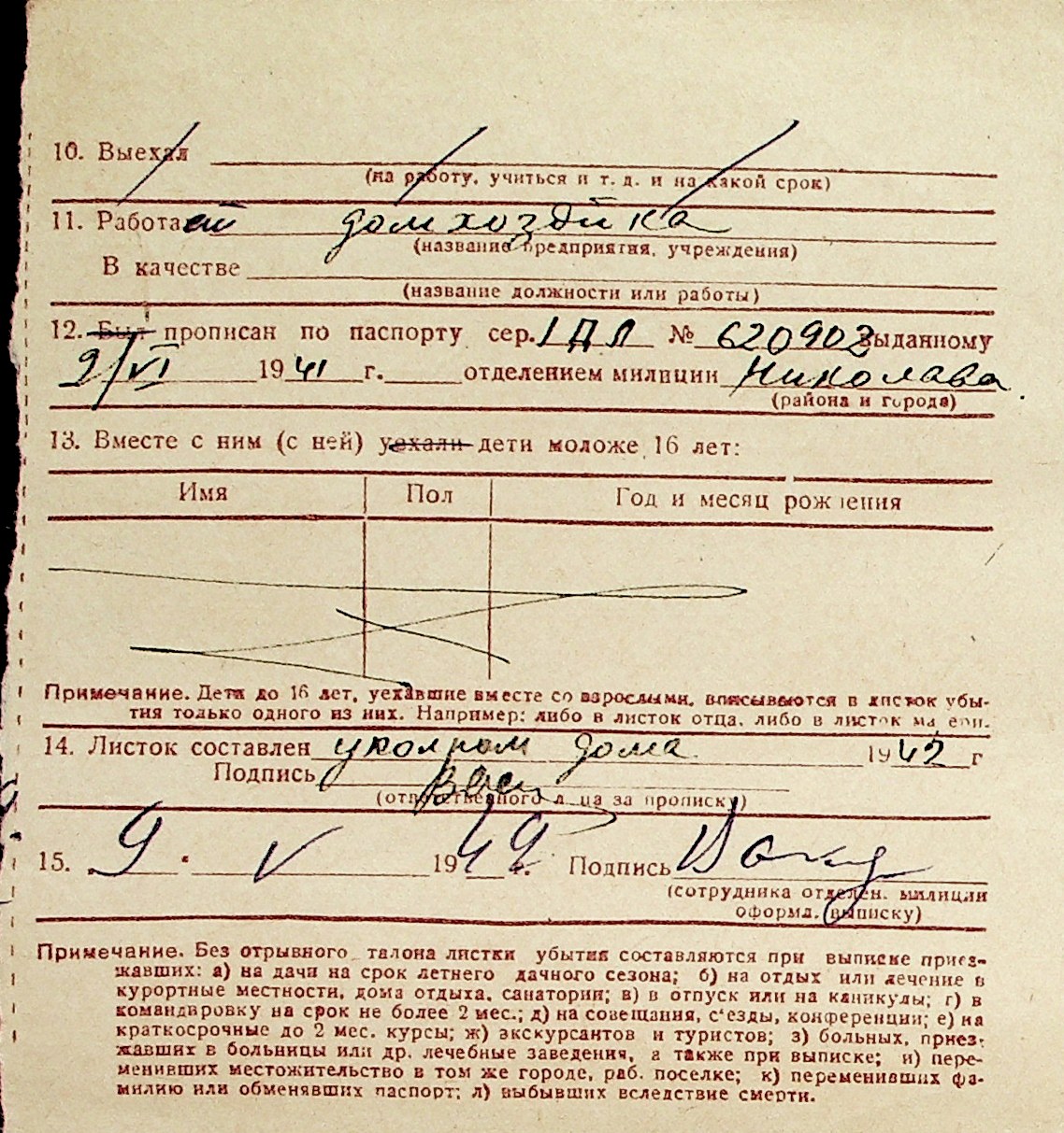 ◦ ◦ Перелік карток на осіб, які мешкали у м. Миколаїв у період окупації 1941–1944 років