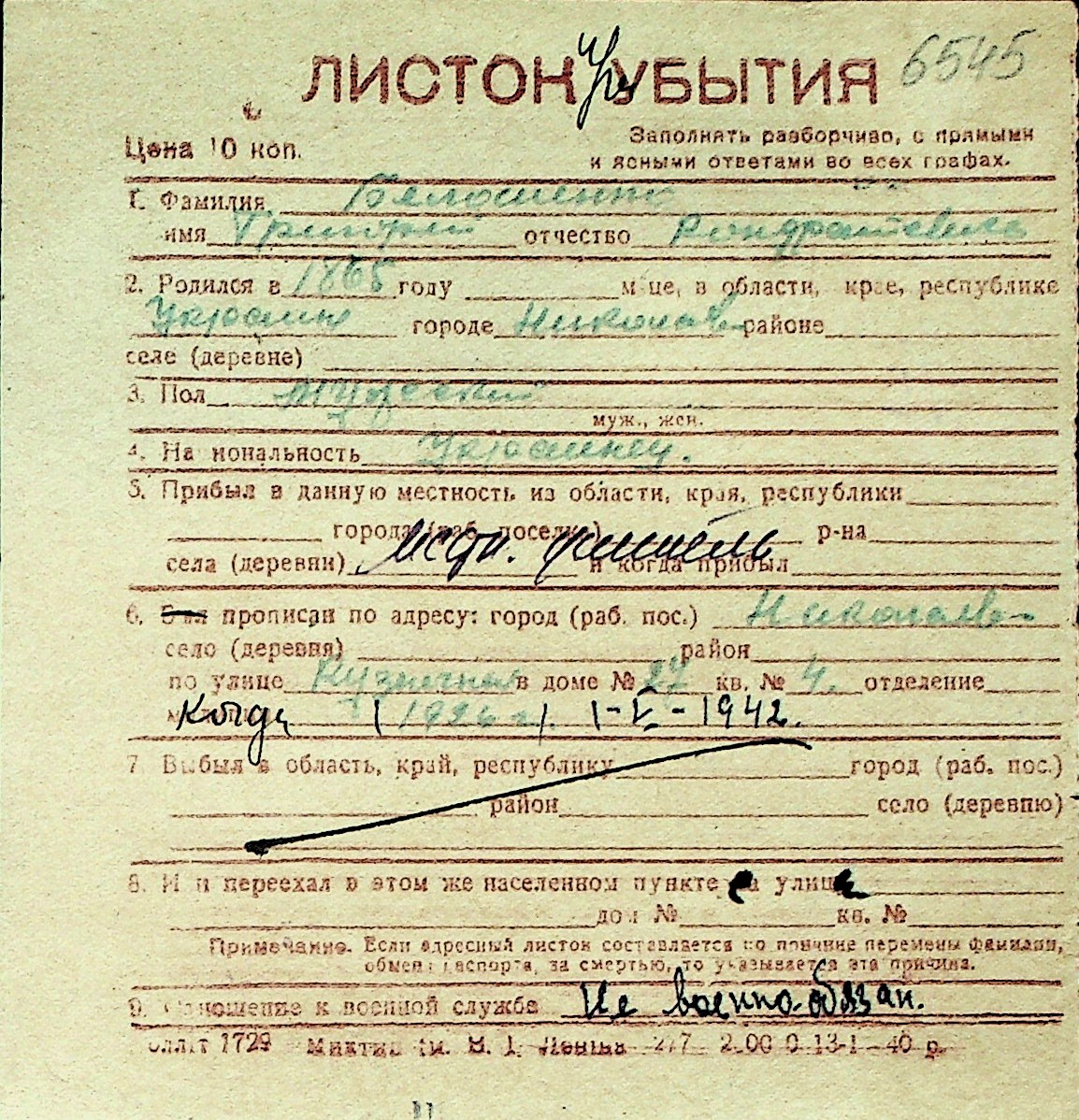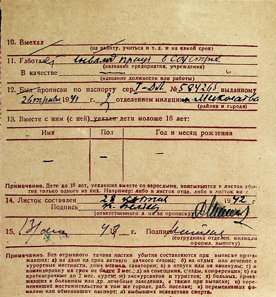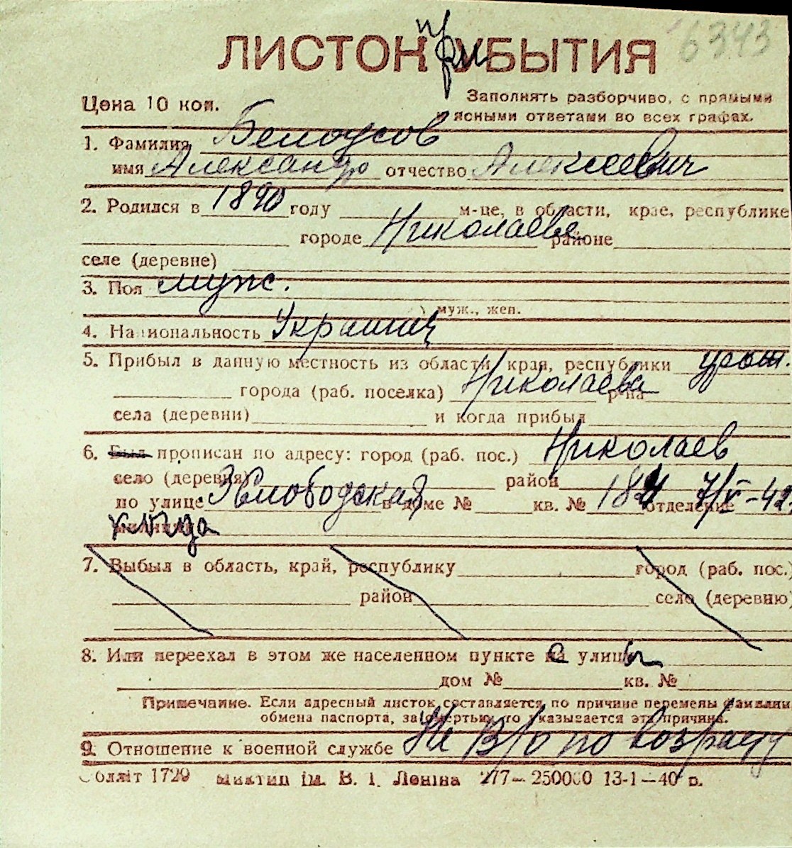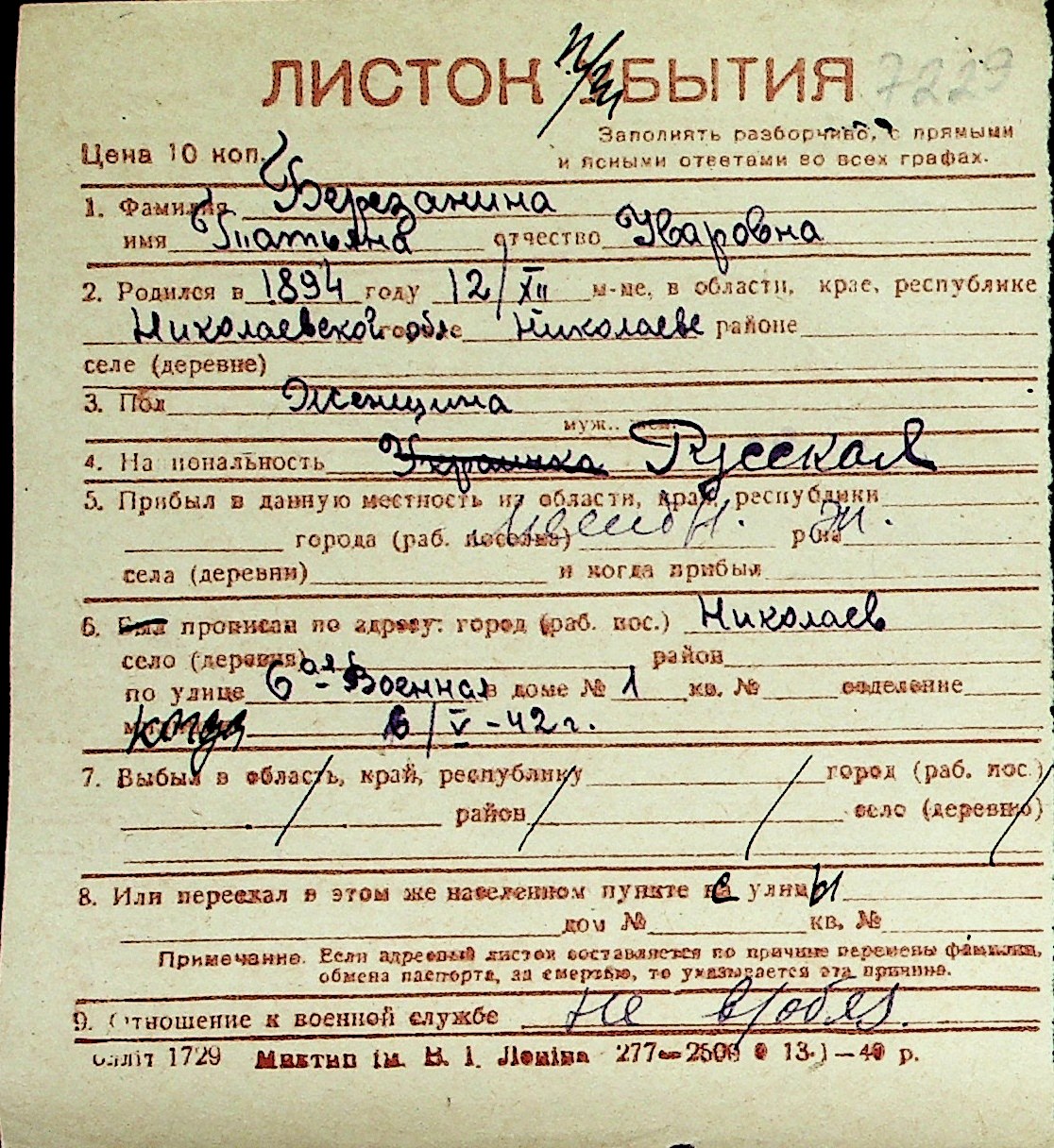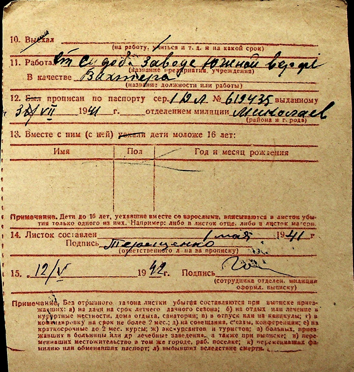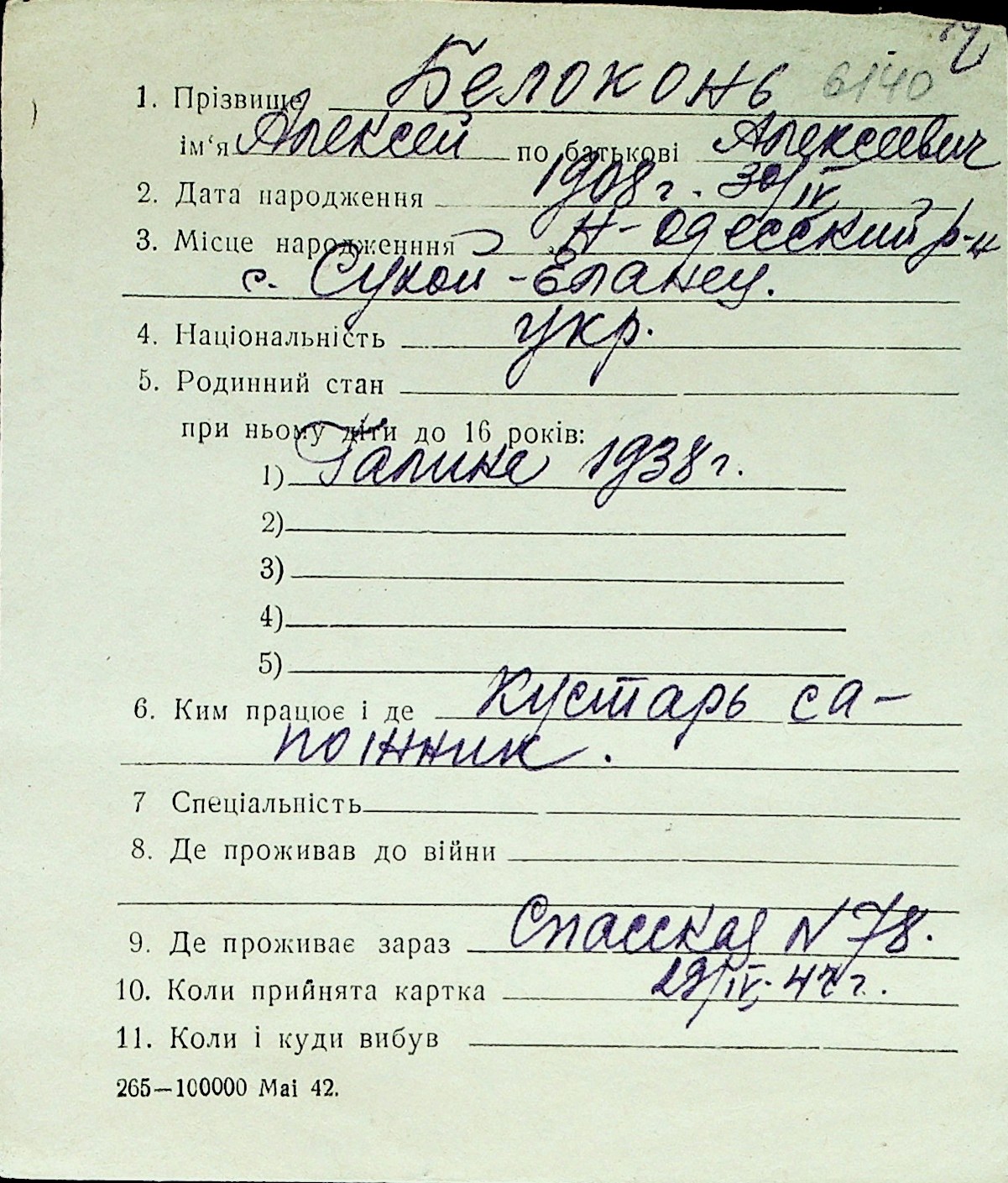 ◦ ◦ Перелік карток на осіб, які мешкали у м. Миколаїв у період окупації 1941–1944 років