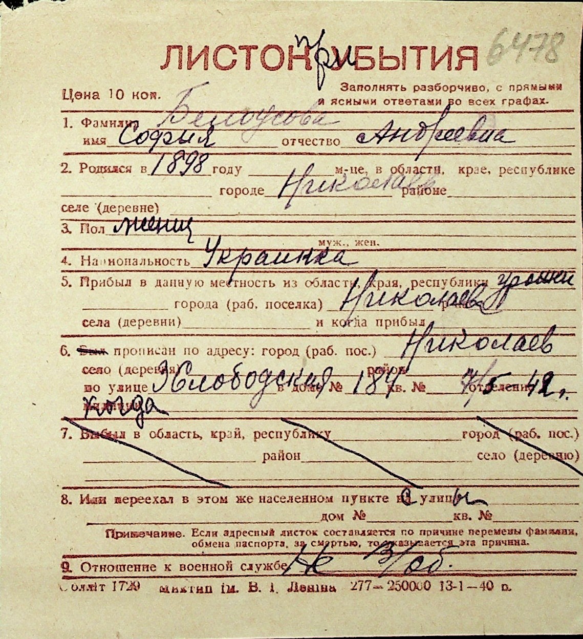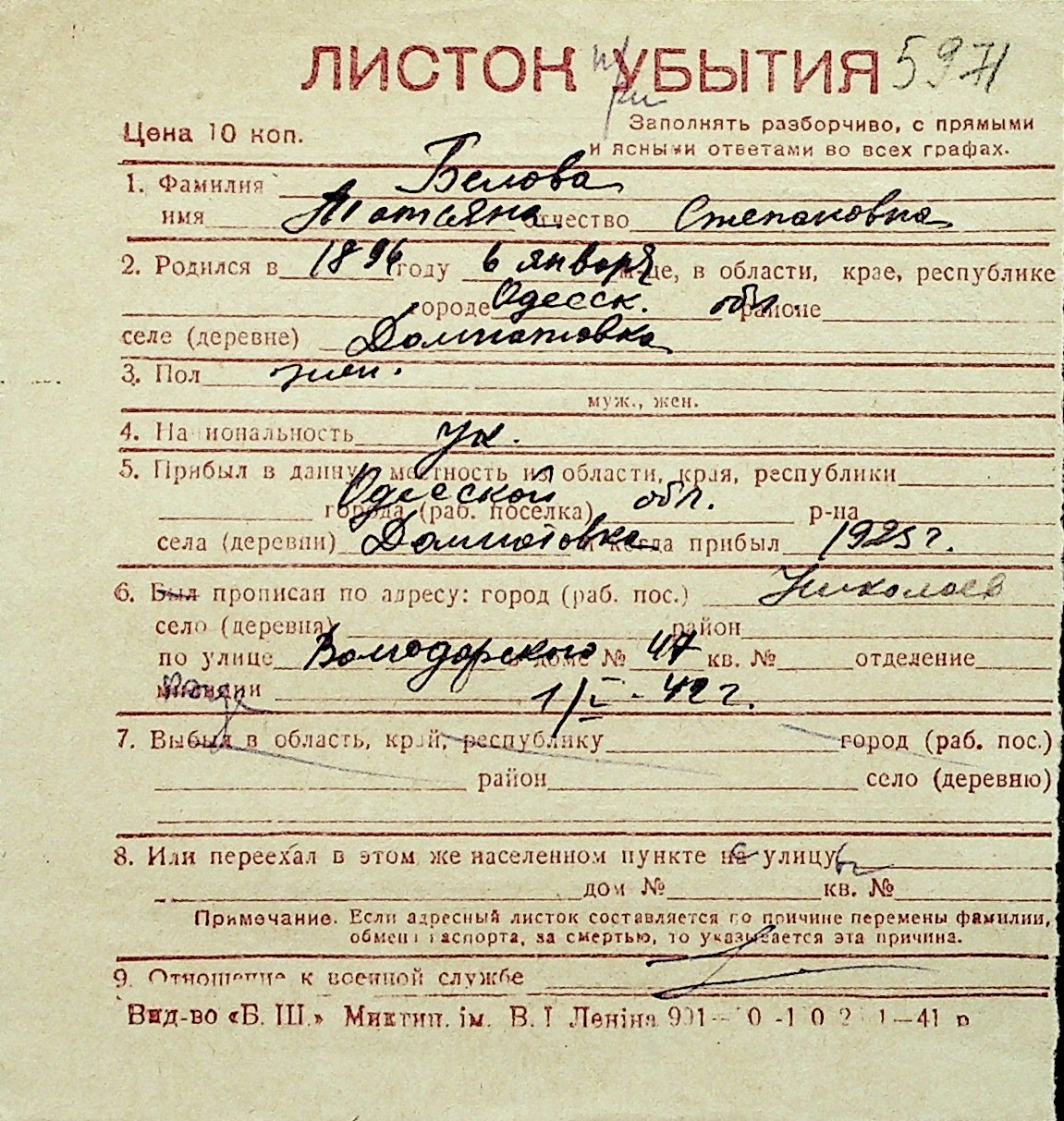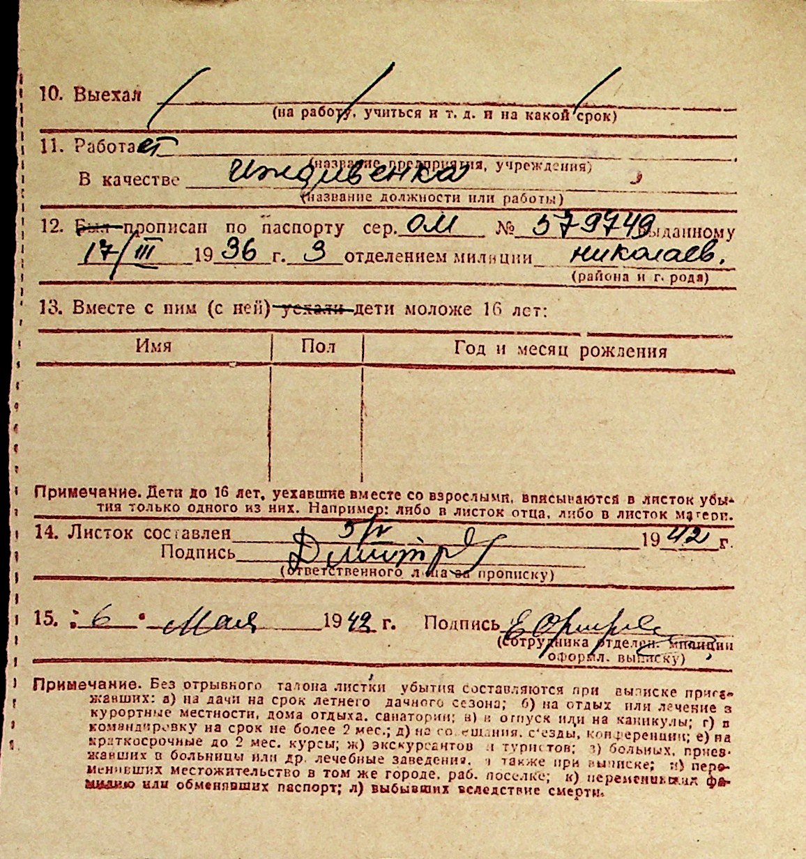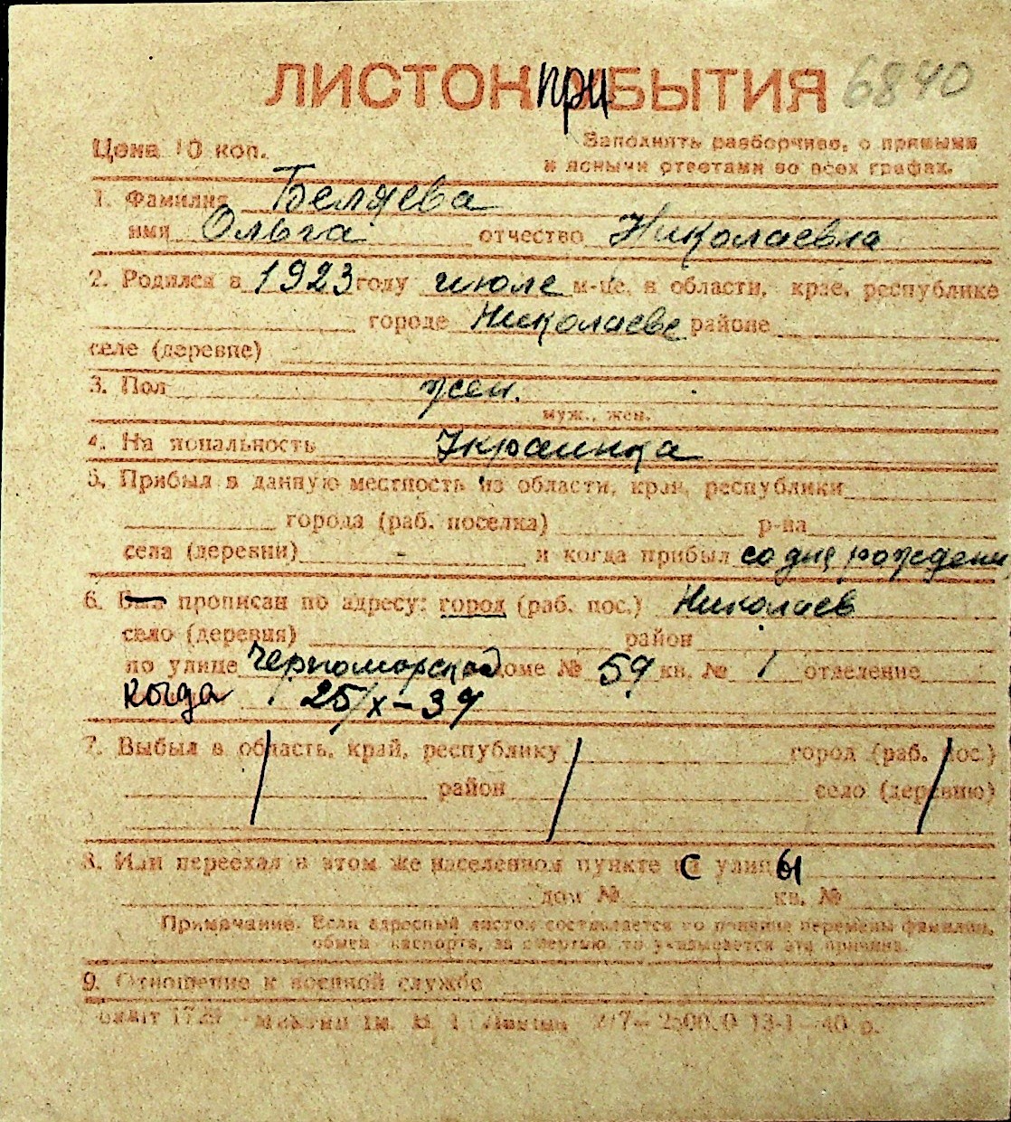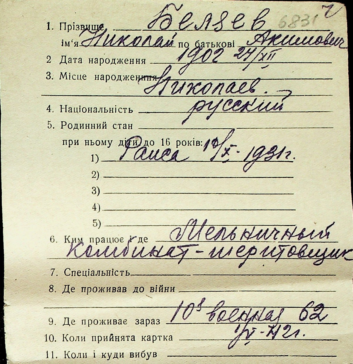 ◦ ◦ Перелік карток на осіб, які мешкали у м. Миколаїв у період окупації 1941–1944 років