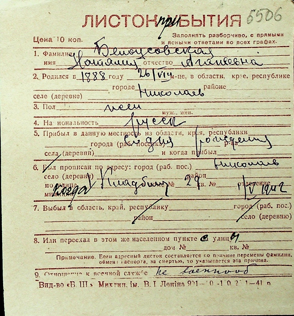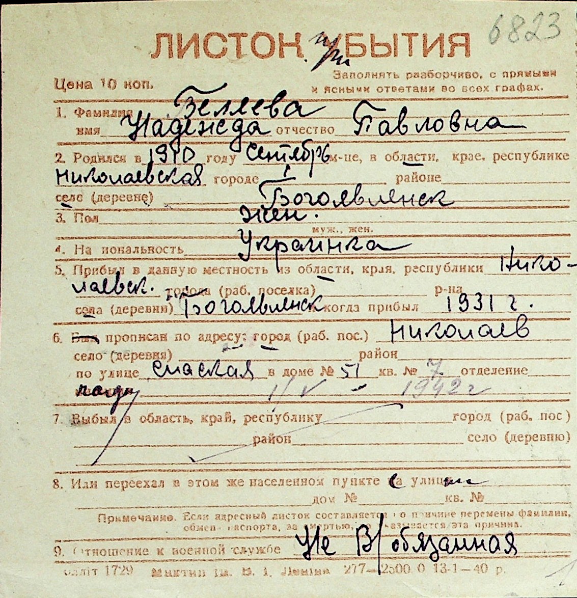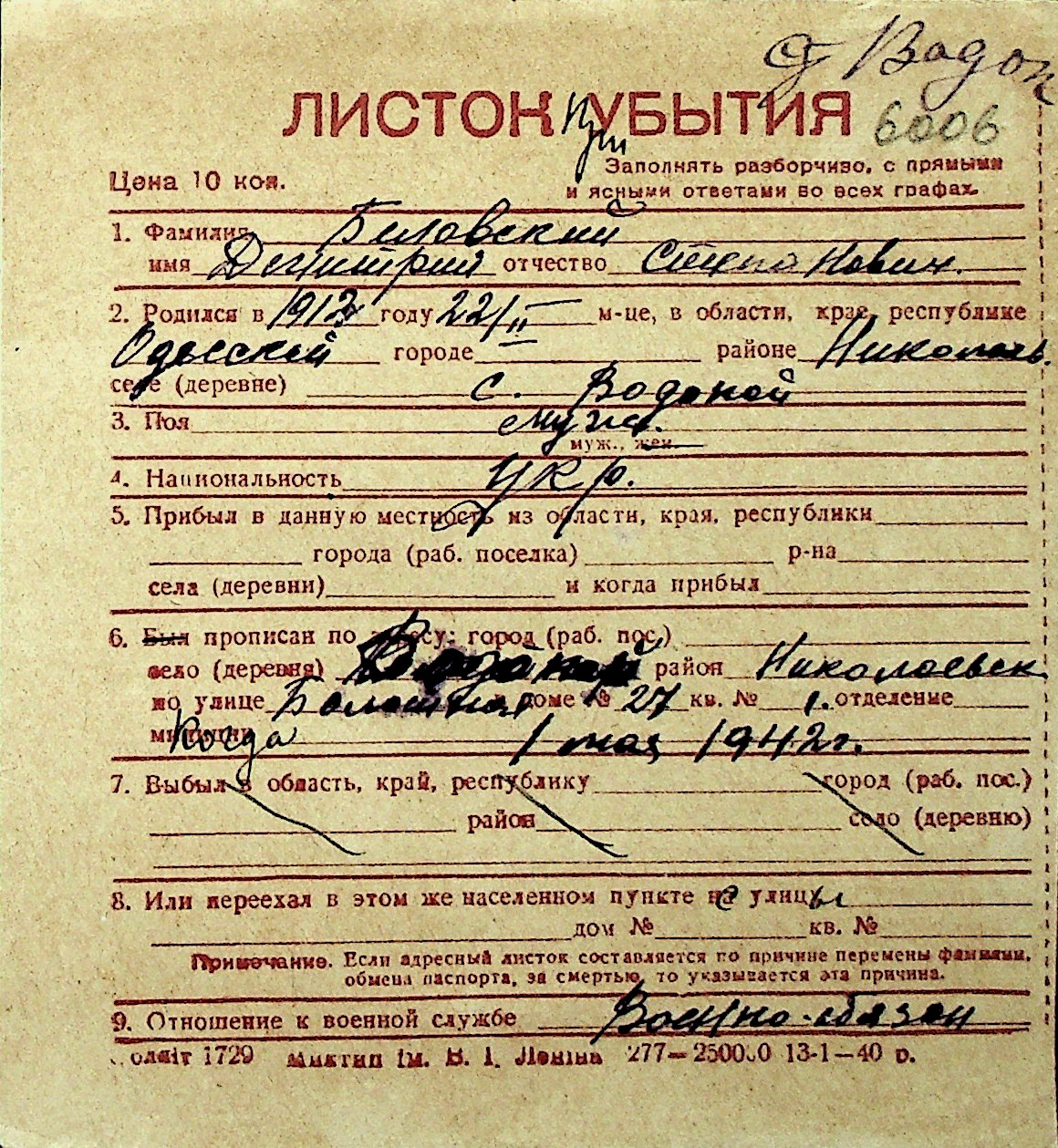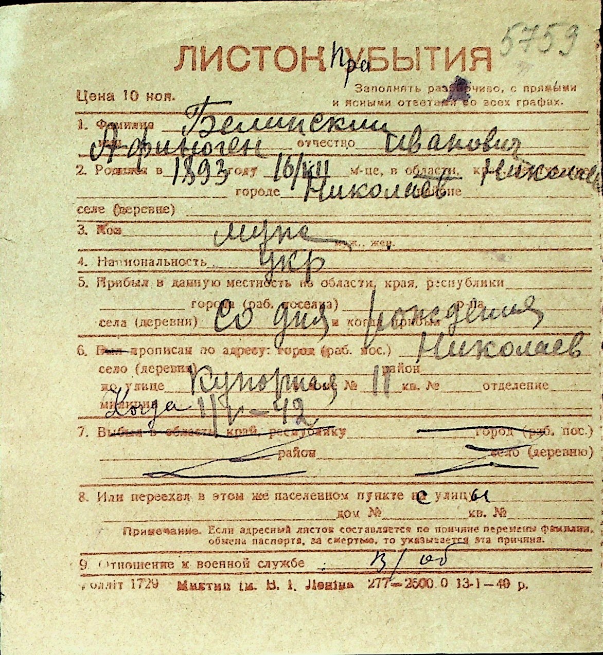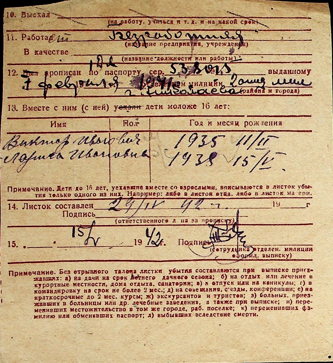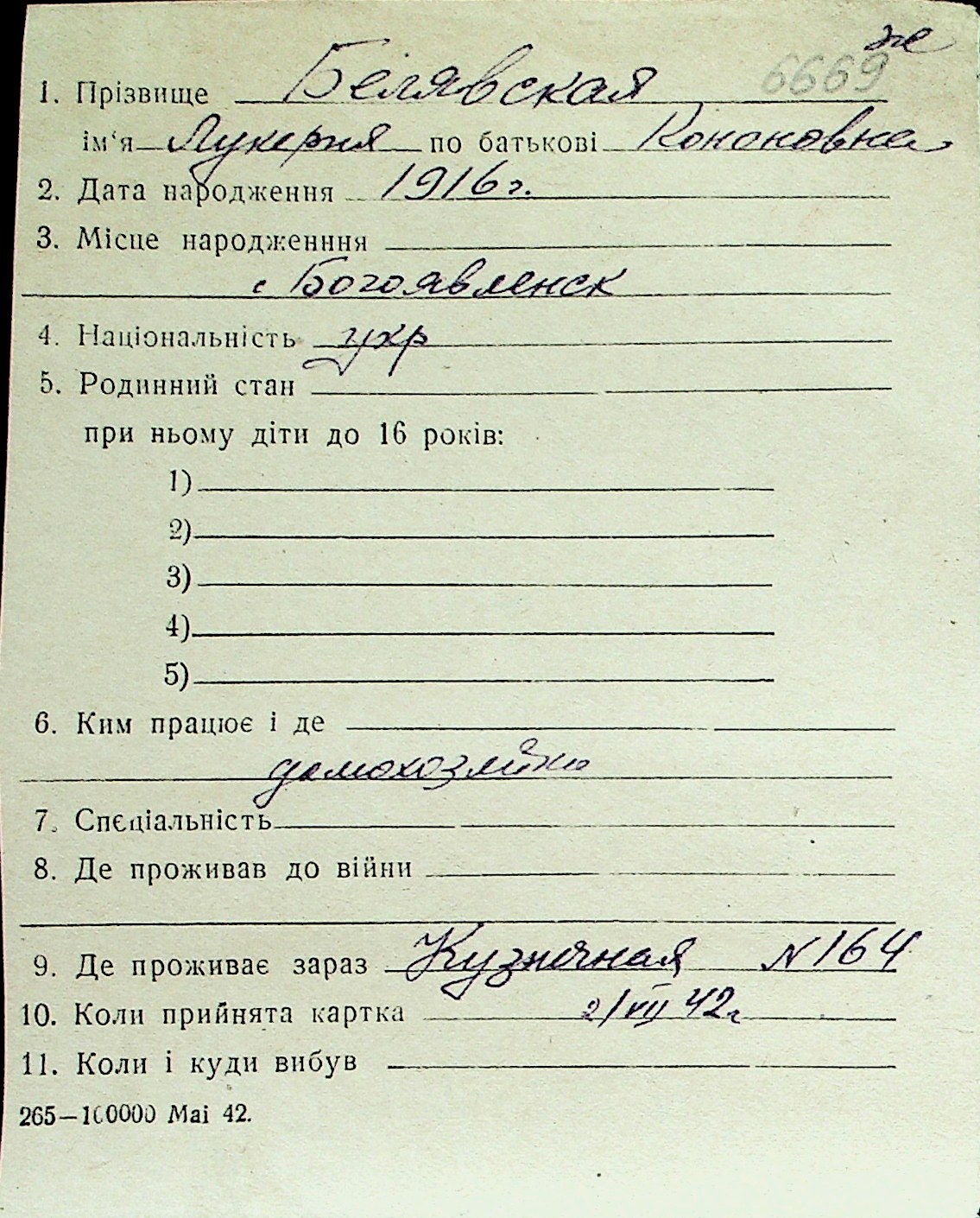 ◦ ◦ Перелік карток на осіб, які мешкали у м. Миколаїв у період окупації 1941–1944 років