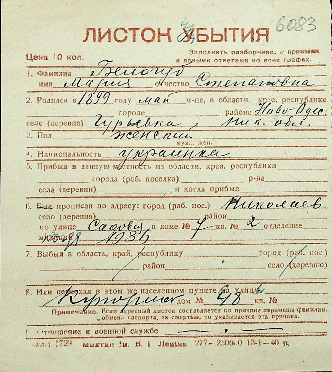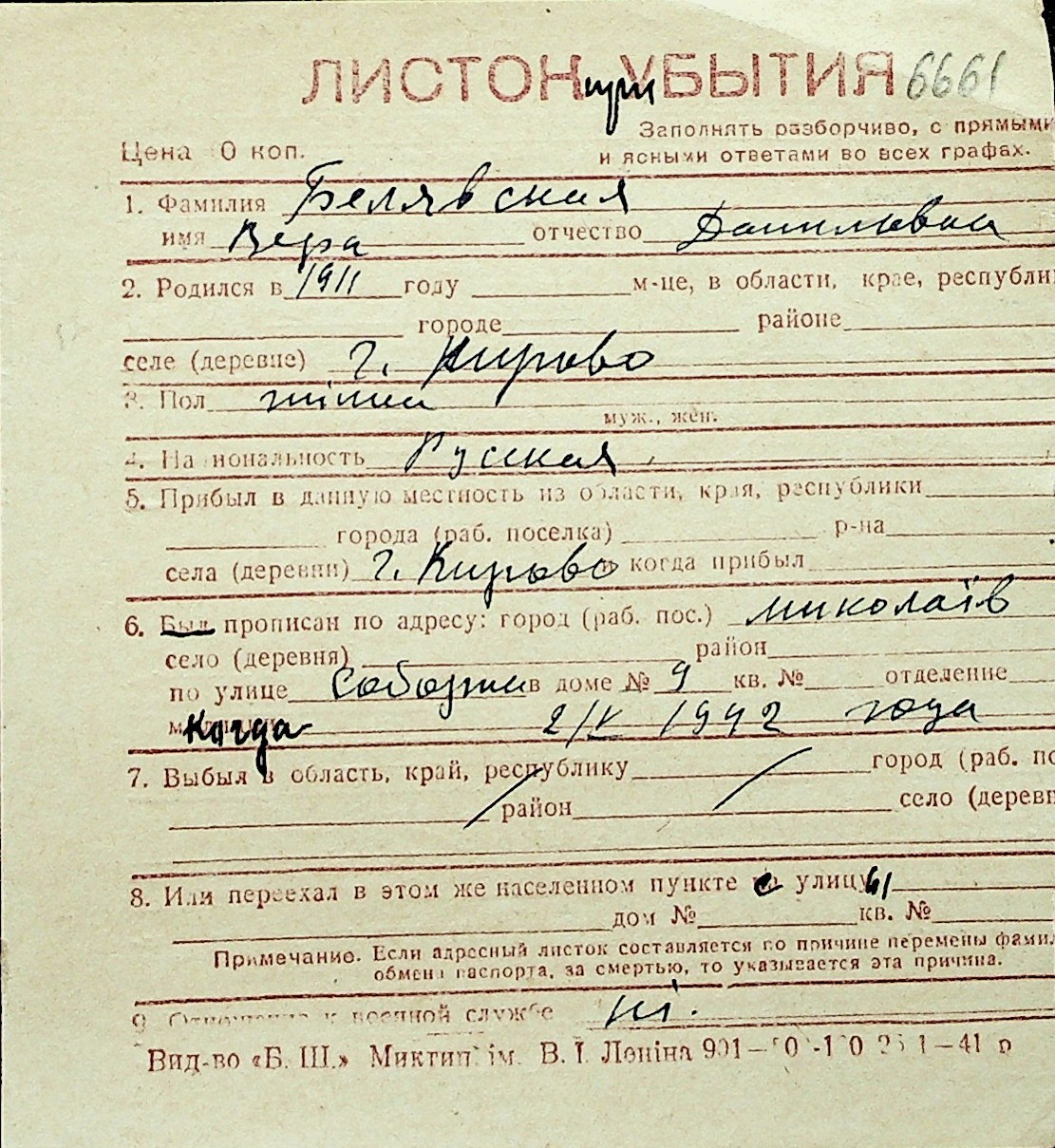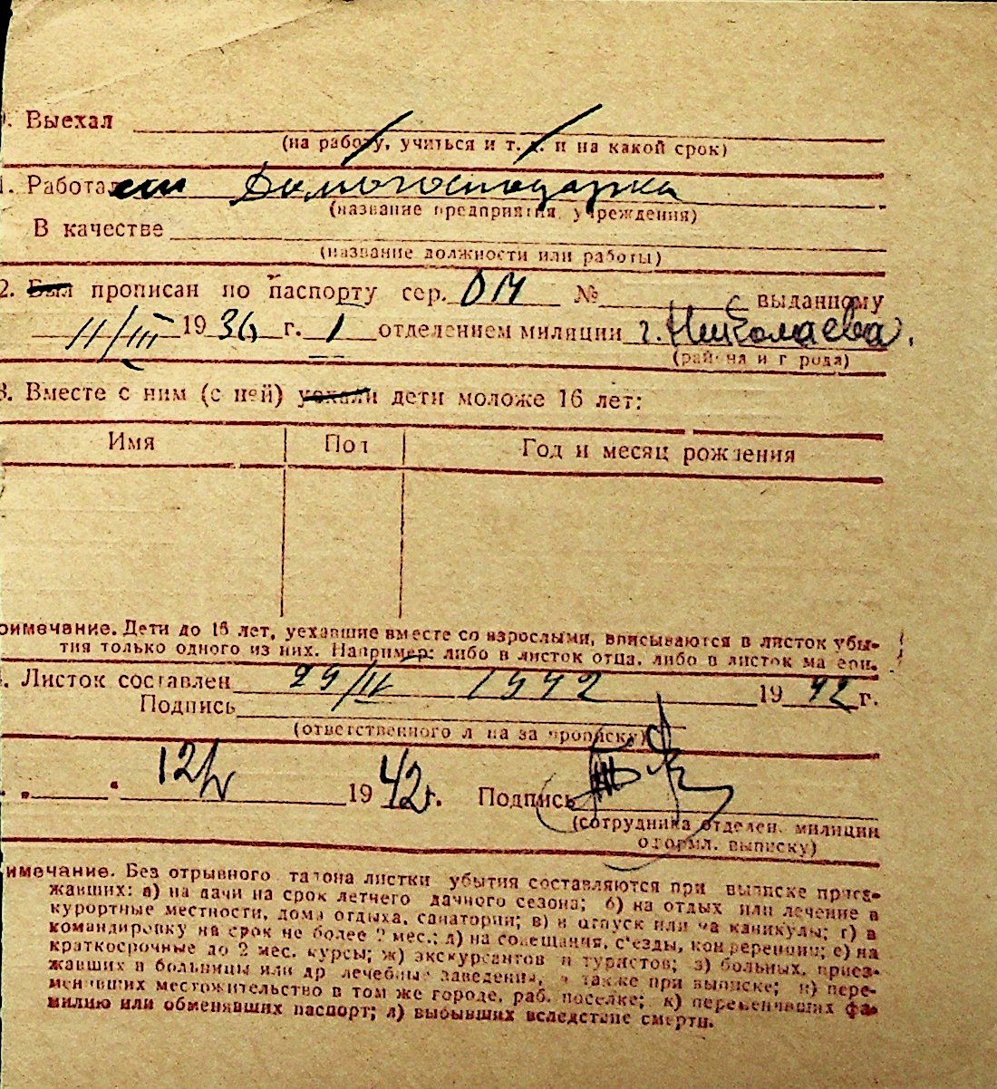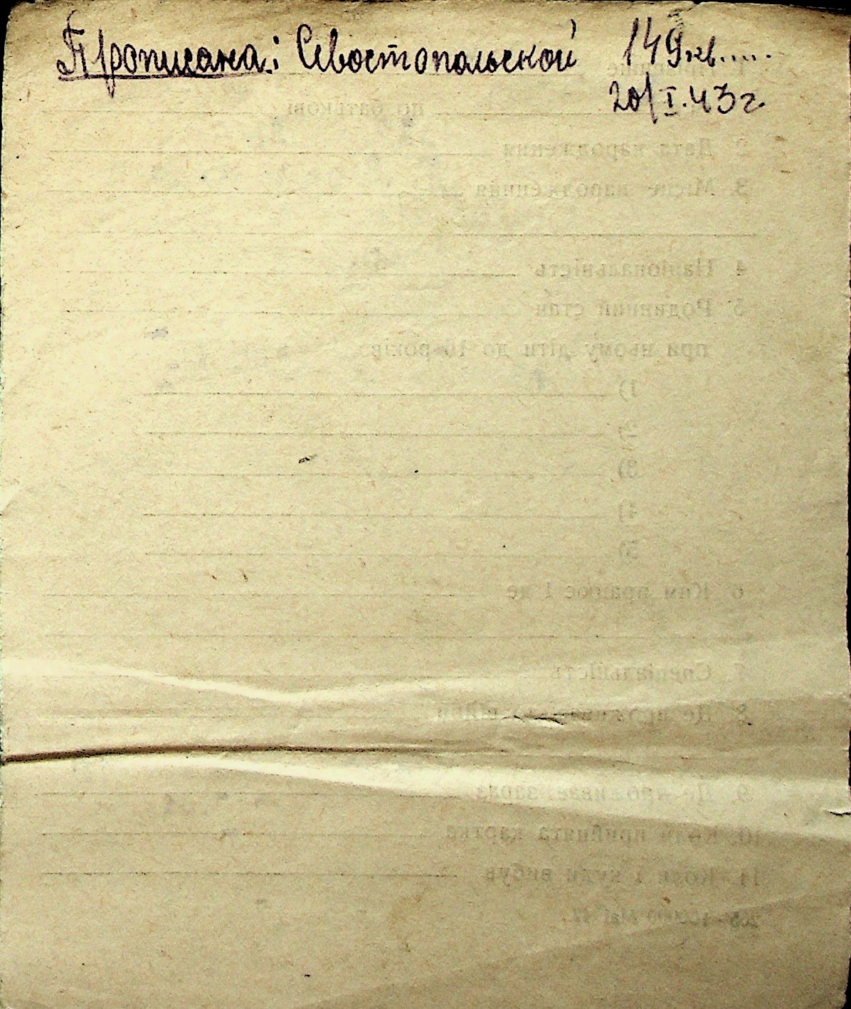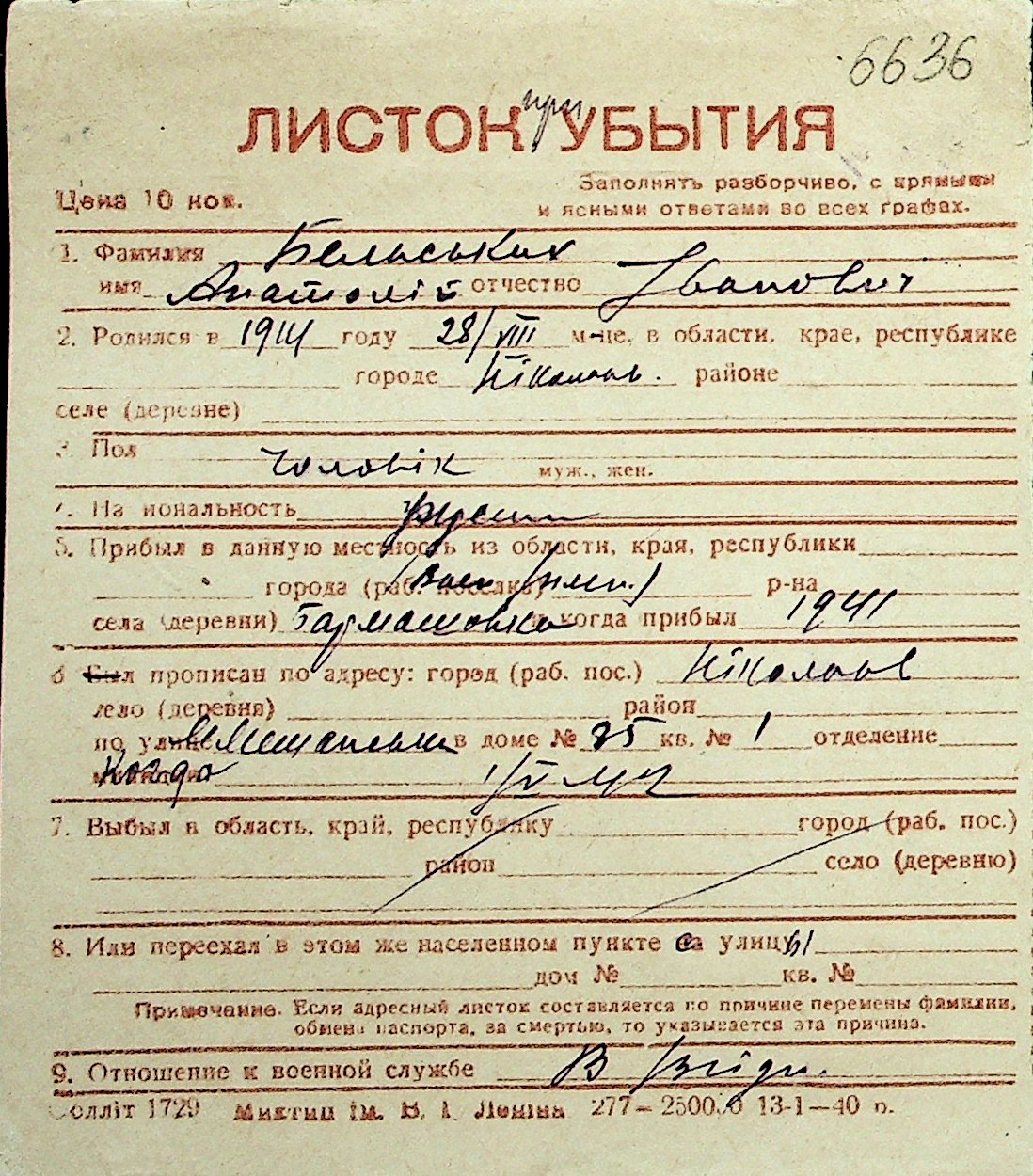 ◦ ◦ Перелік карток на осіб, які мешкали у м. Миколаїв у період окупації 1941–1944 років